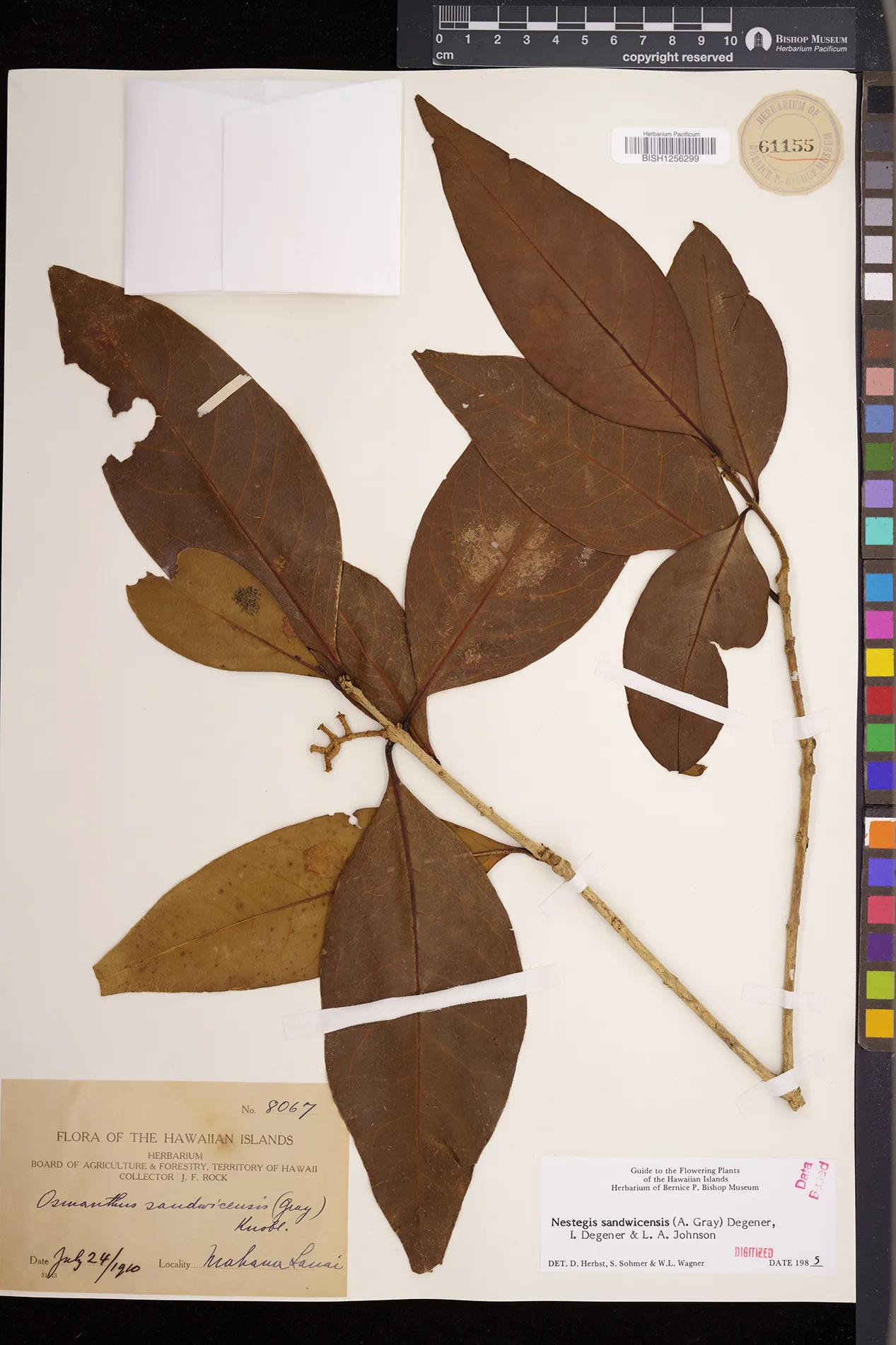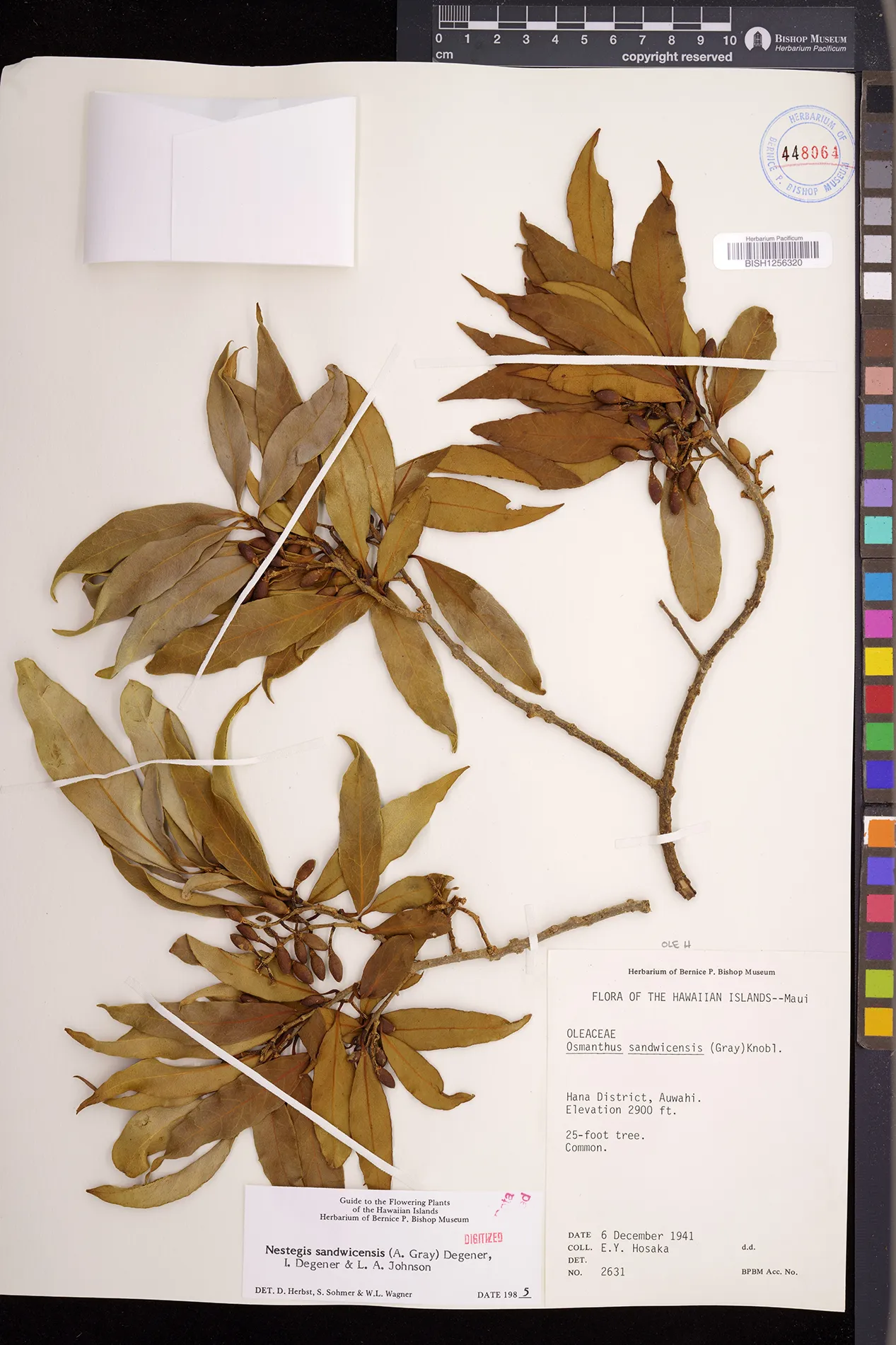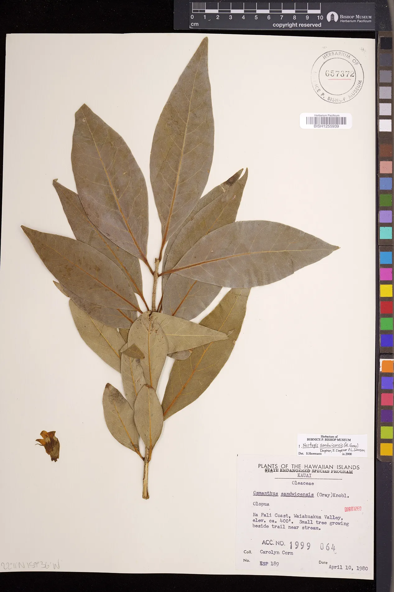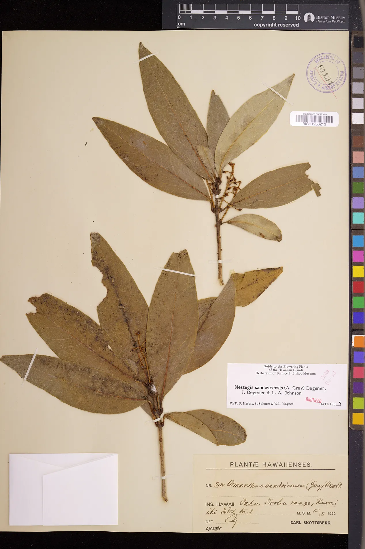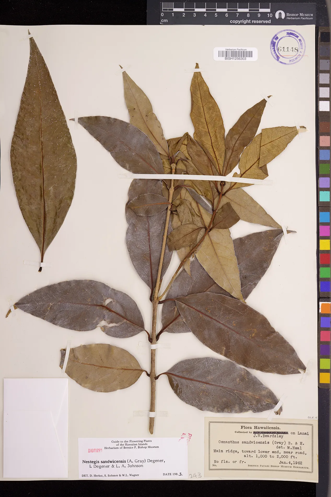 Wagner et al. 1990:992 (K, O, Mo, L, M, H [as Nestegis sandwicensis]); Dupin et al. 2022:16 (COMBNOV, Syn. Nestegis sandwicensis = Notelaea sandwicensis)