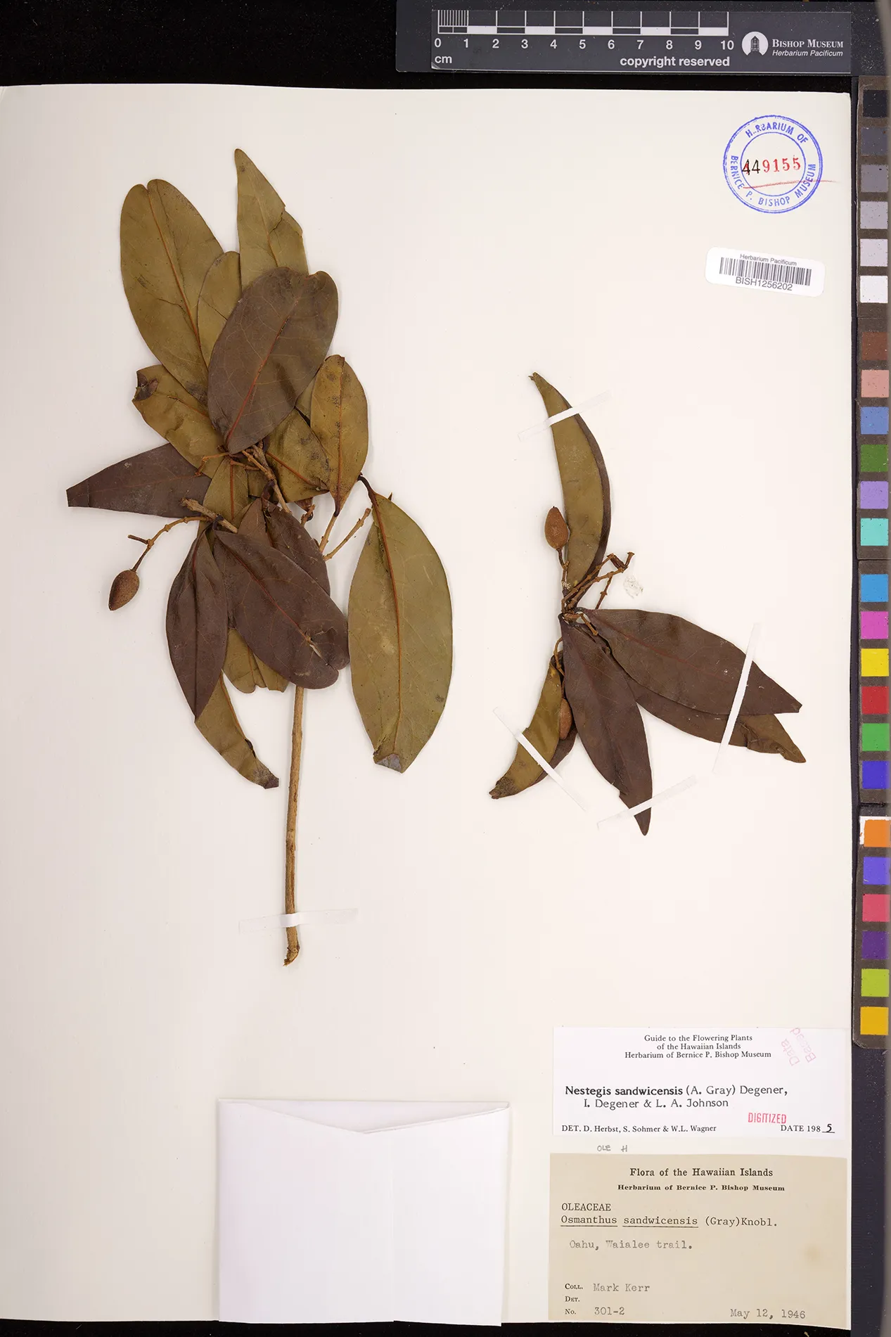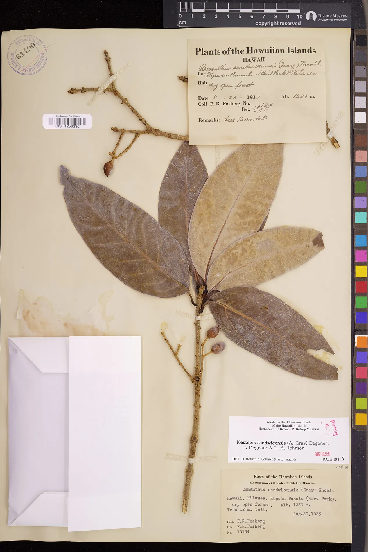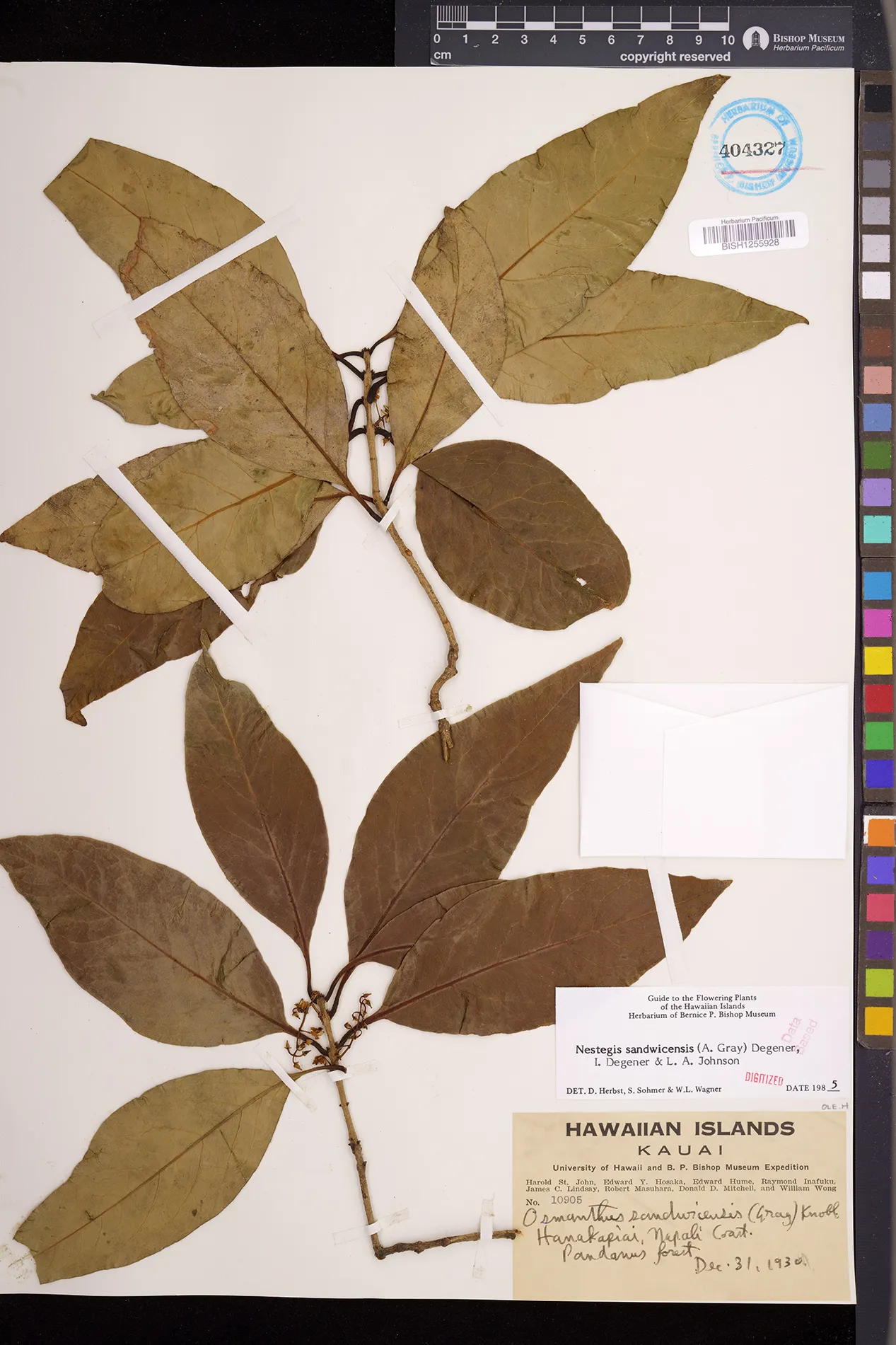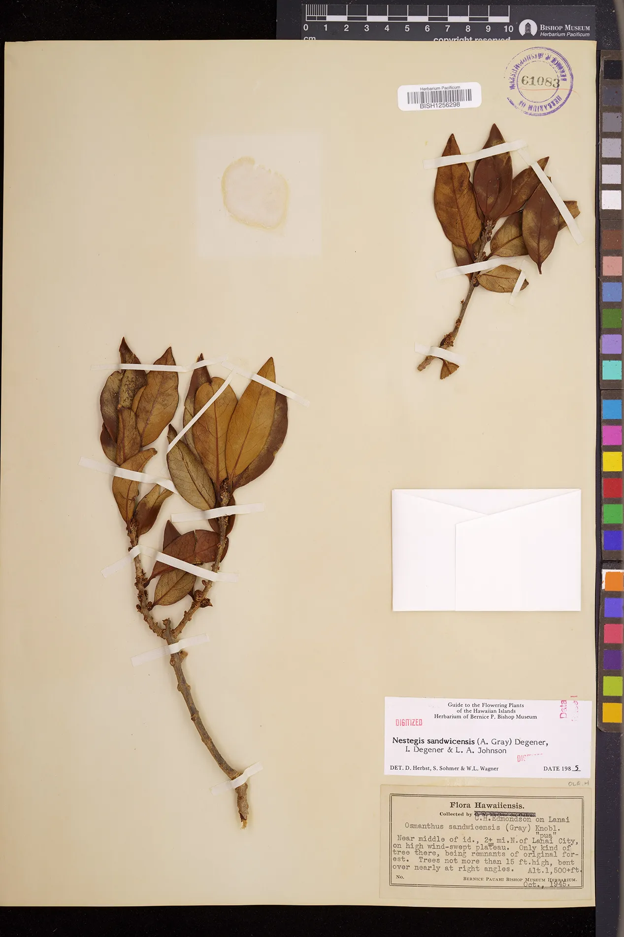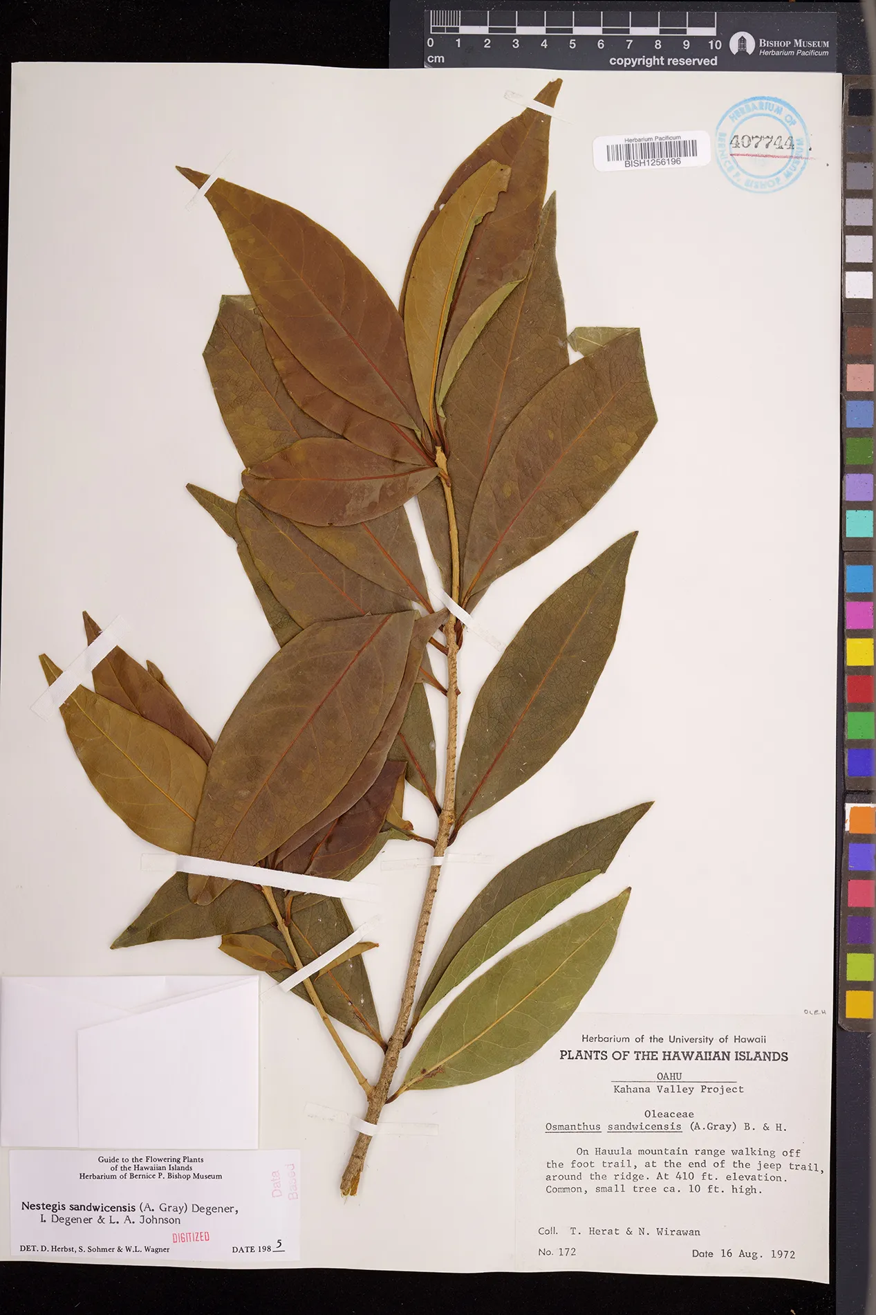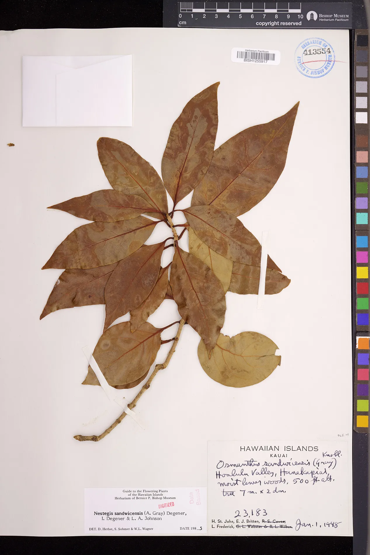 Wagner et al. 1990:992 (K, O, Mo, L, M, H [as Nestegis sandwicensis]); Dupin et al. 2022:16 (COMBNOV, Syn. Nestegis sandwicensis = Notelaea sandwicensis)