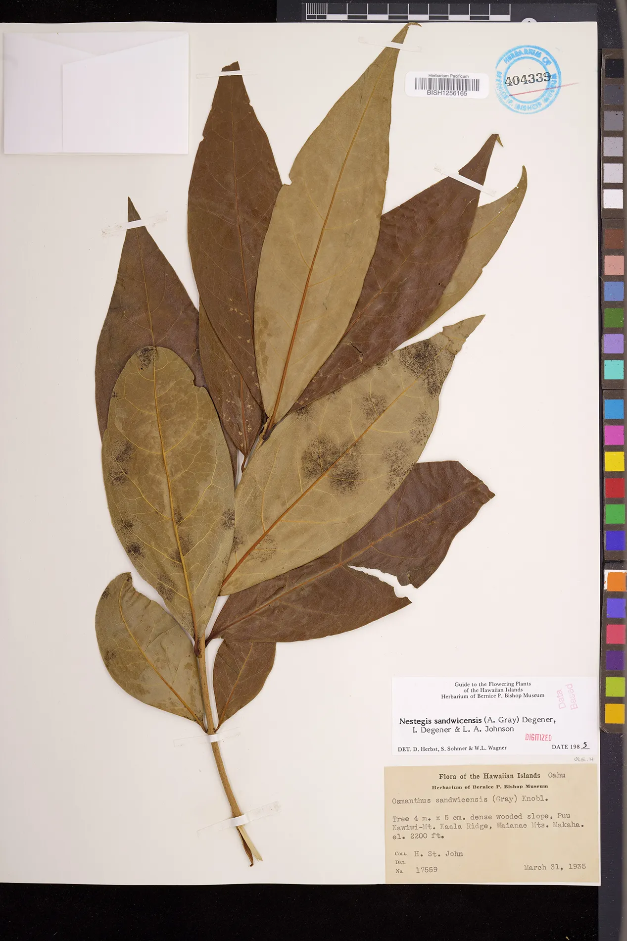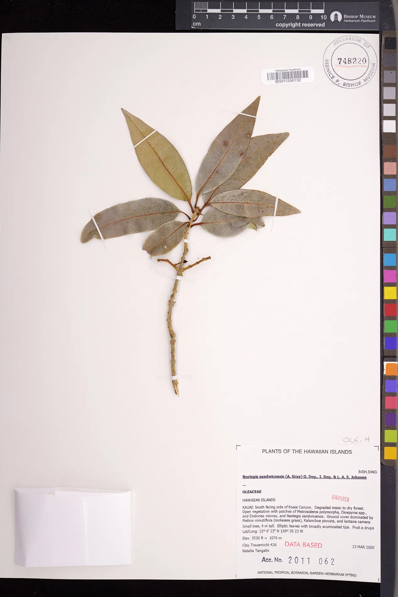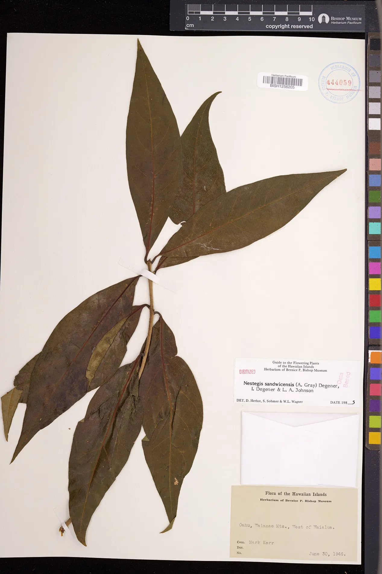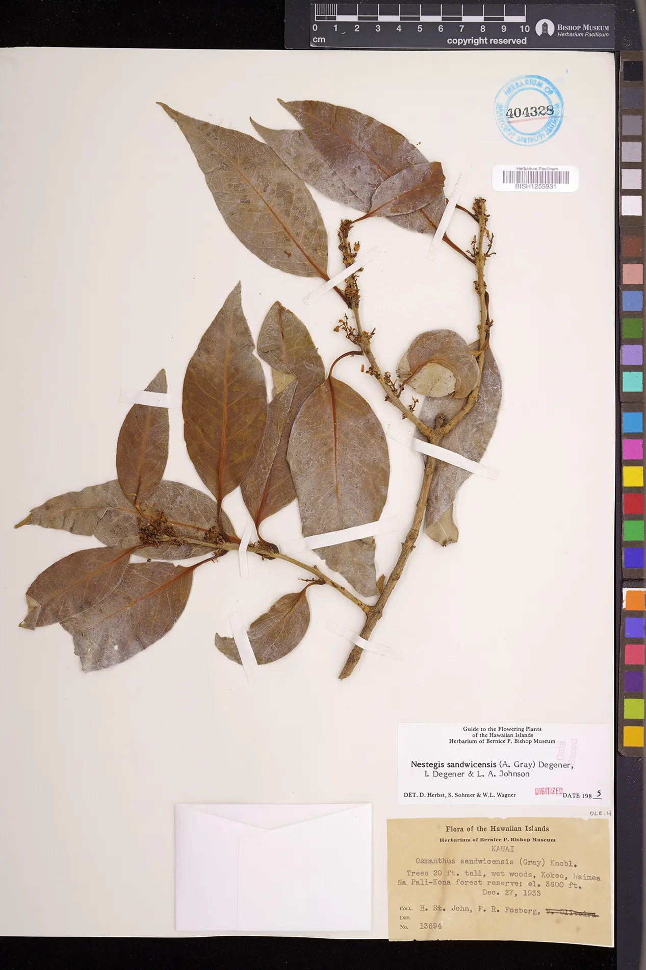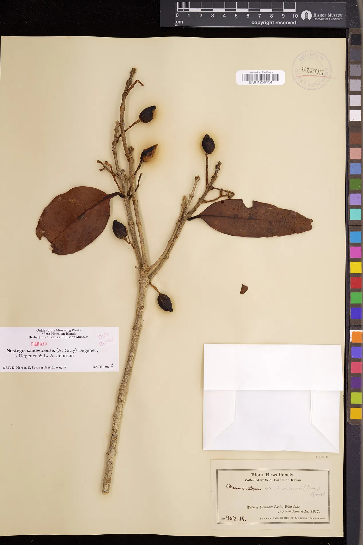 Wagner et al. 1990:992 (K, O, Mo, L, M, H [as Nestegis sandwicensis]); Dupin et al. 2022:16 (COMBNOV, Syn. Nestegis sandwicensis = Notelaea sandwicensis)