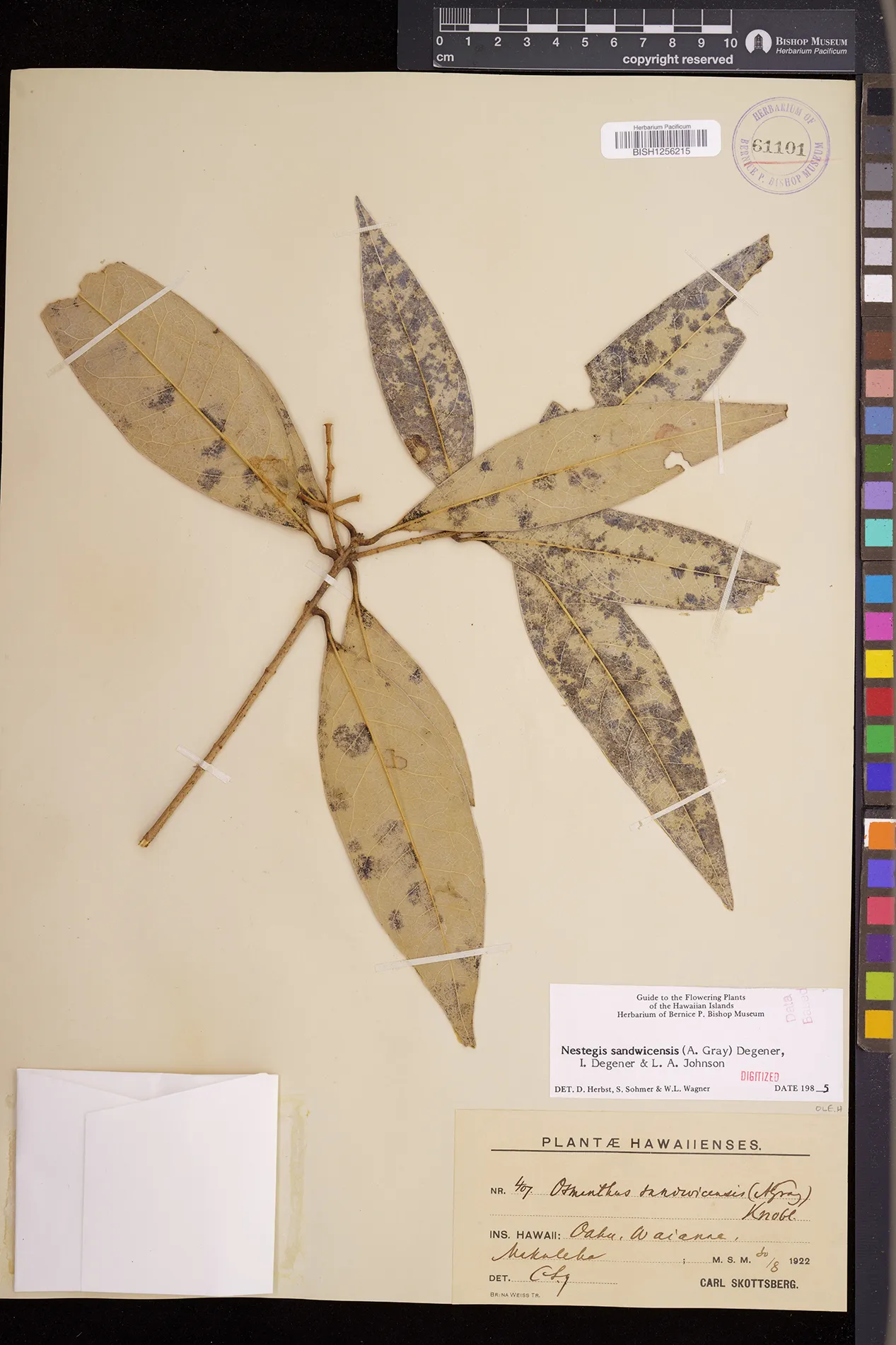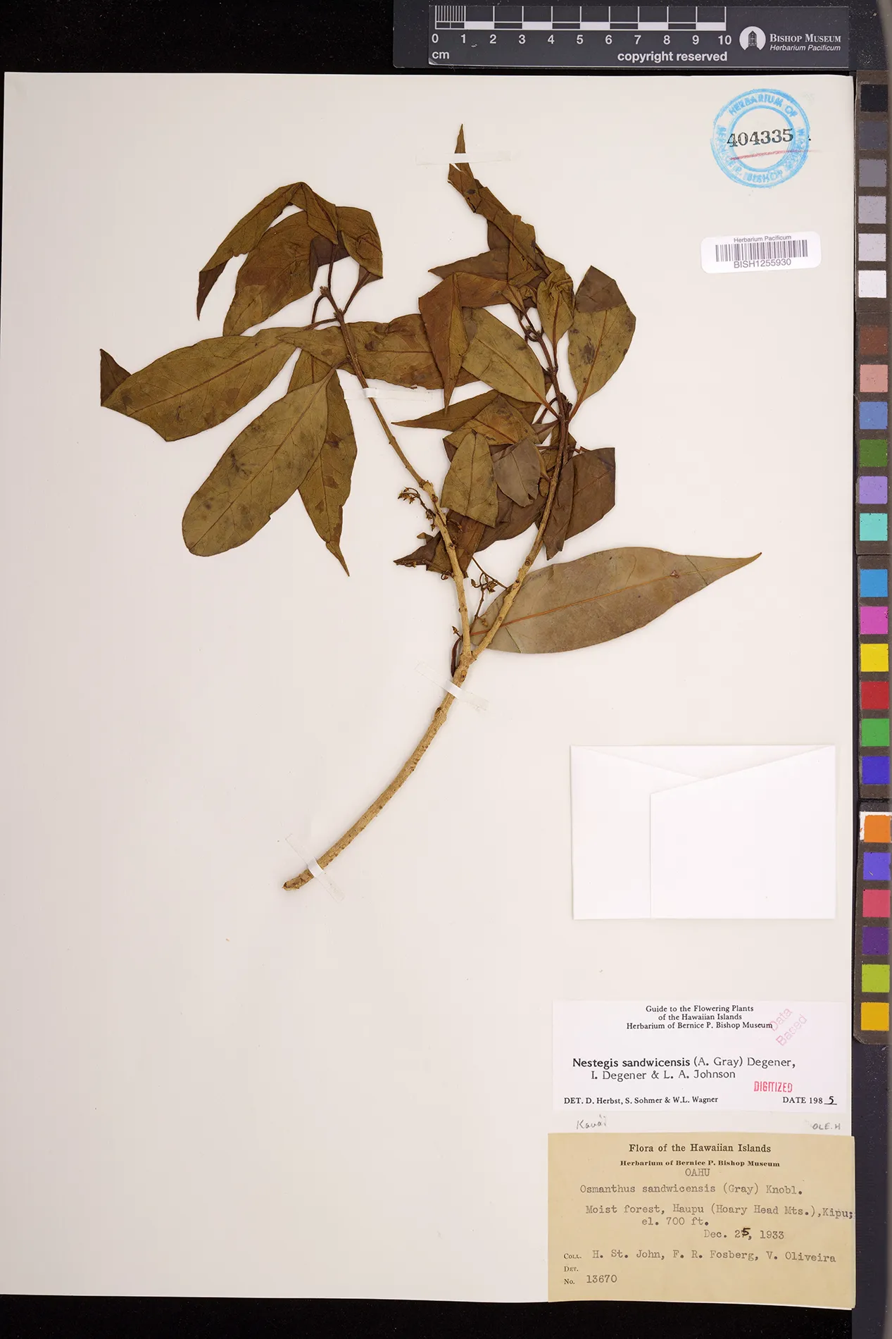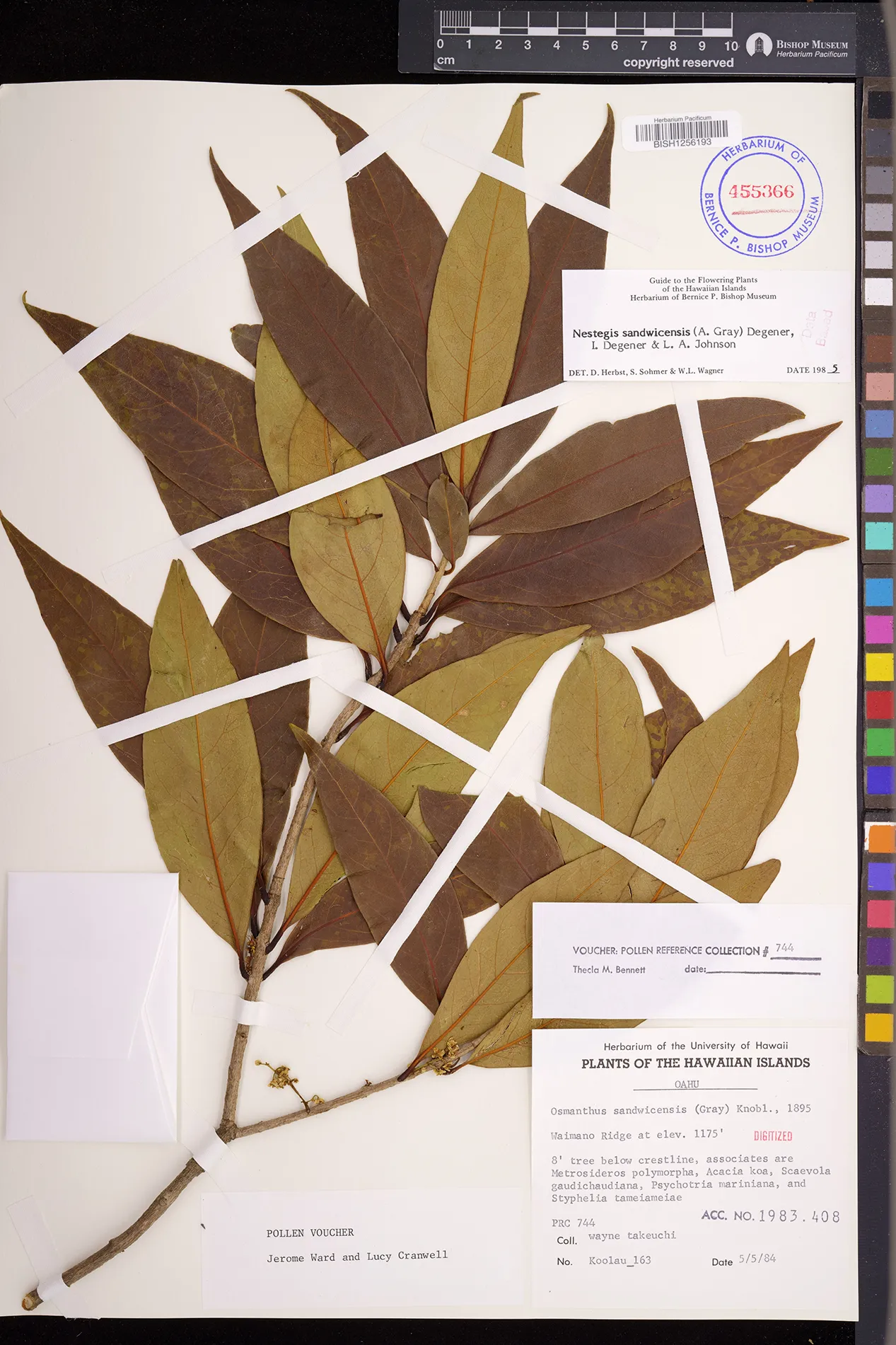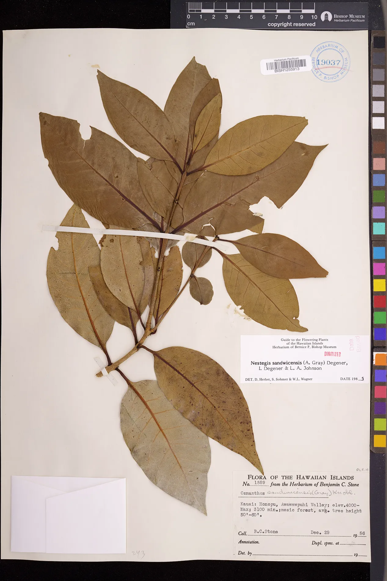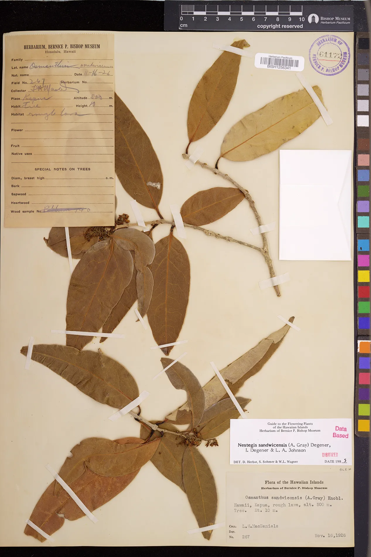 Wagner et al. 1990:992 (K, O, Mo, L, M, H [as Nestegis sandwicensis]); Dupin et al. 2022:16 (COMBNOV, Syn. Nestegis sandwicensis = Notelaea sandwicensis)