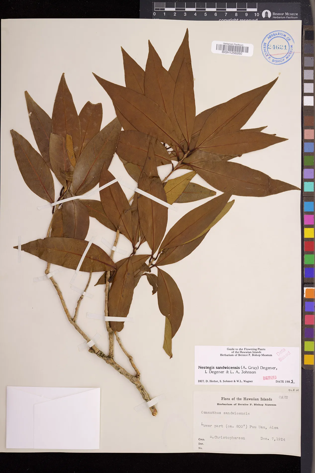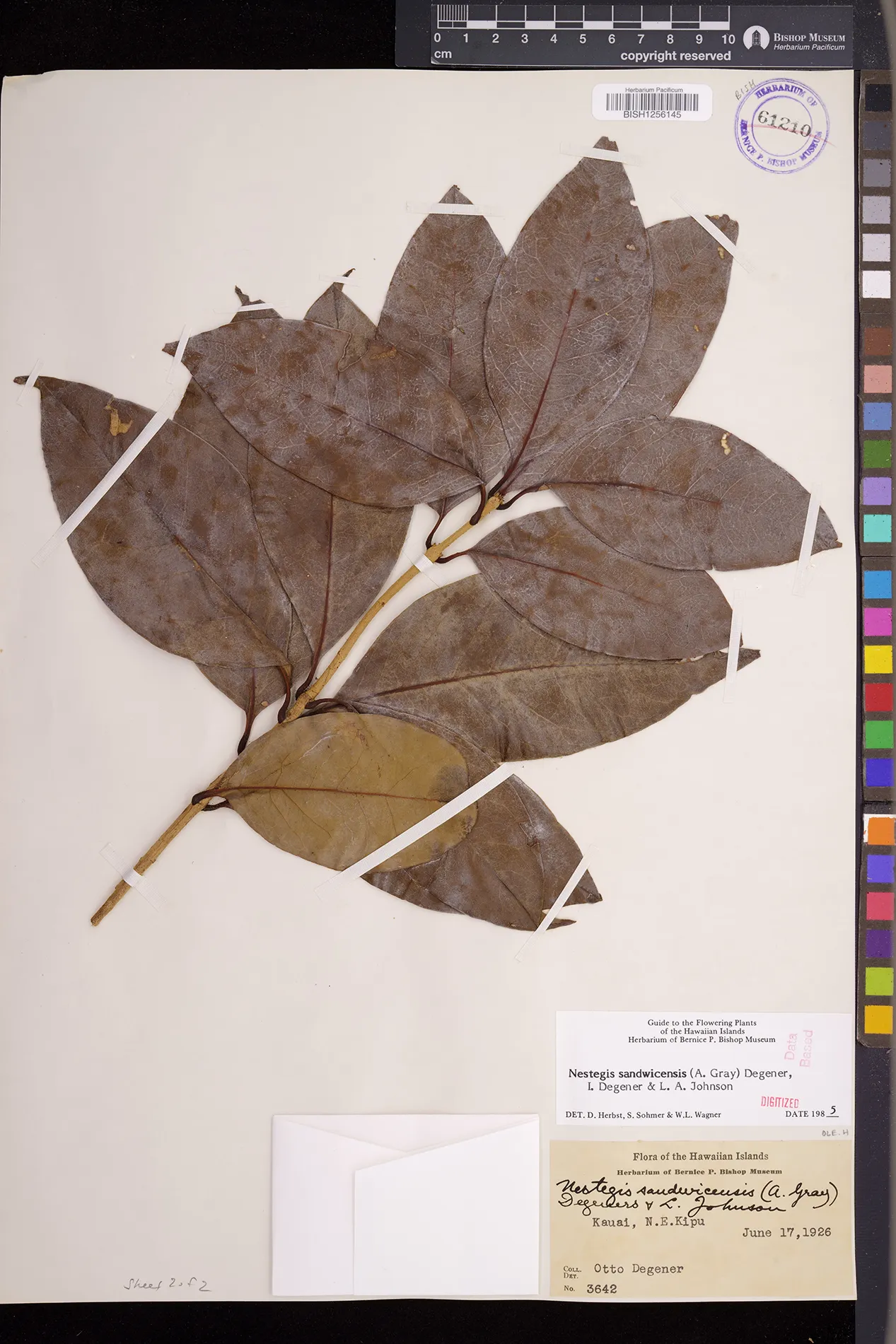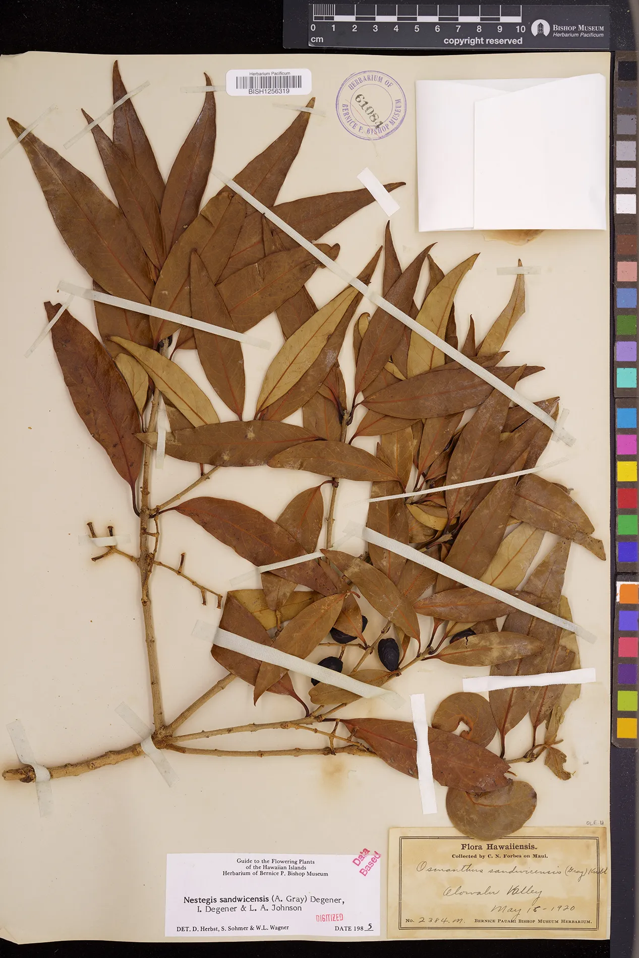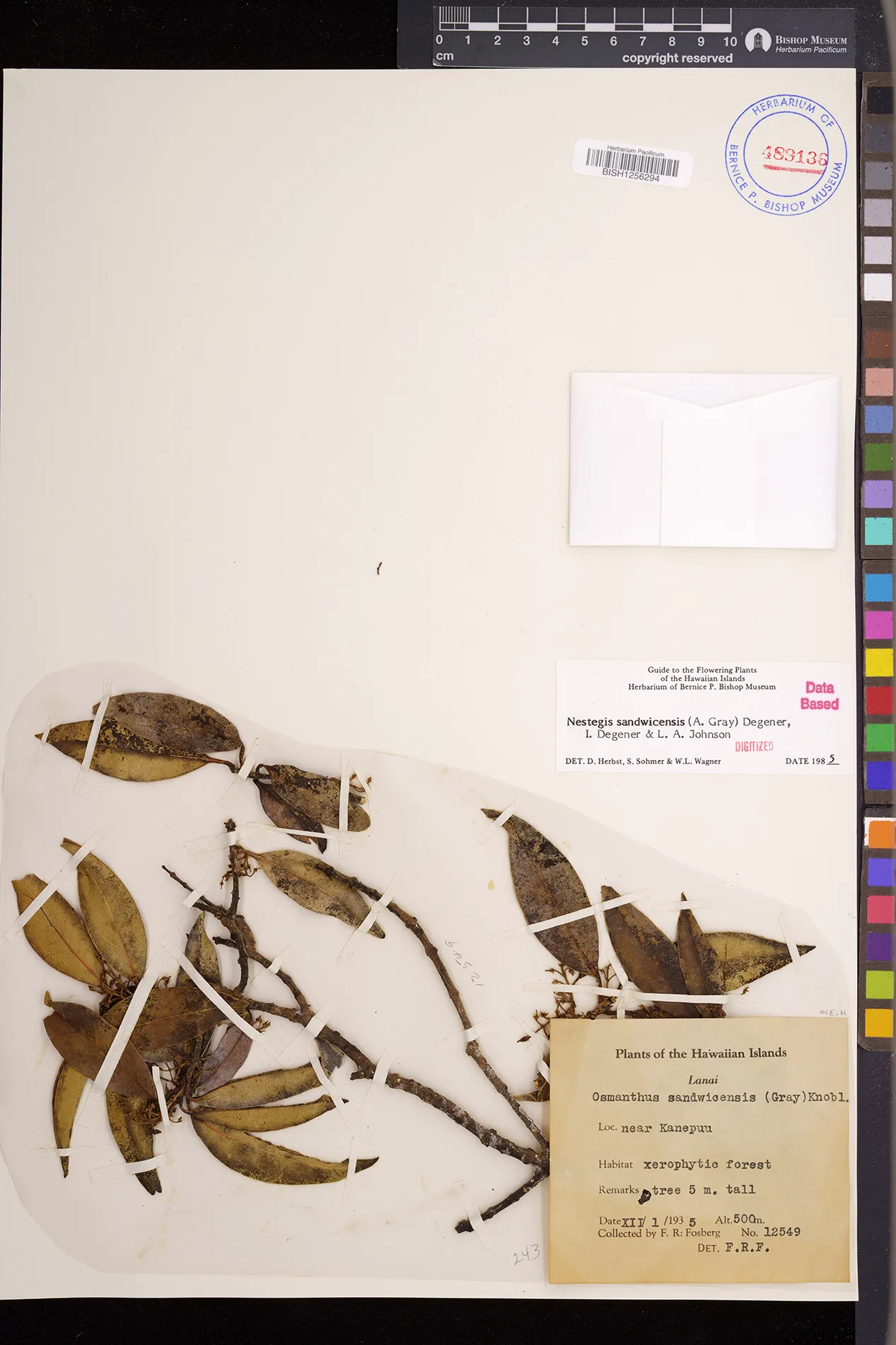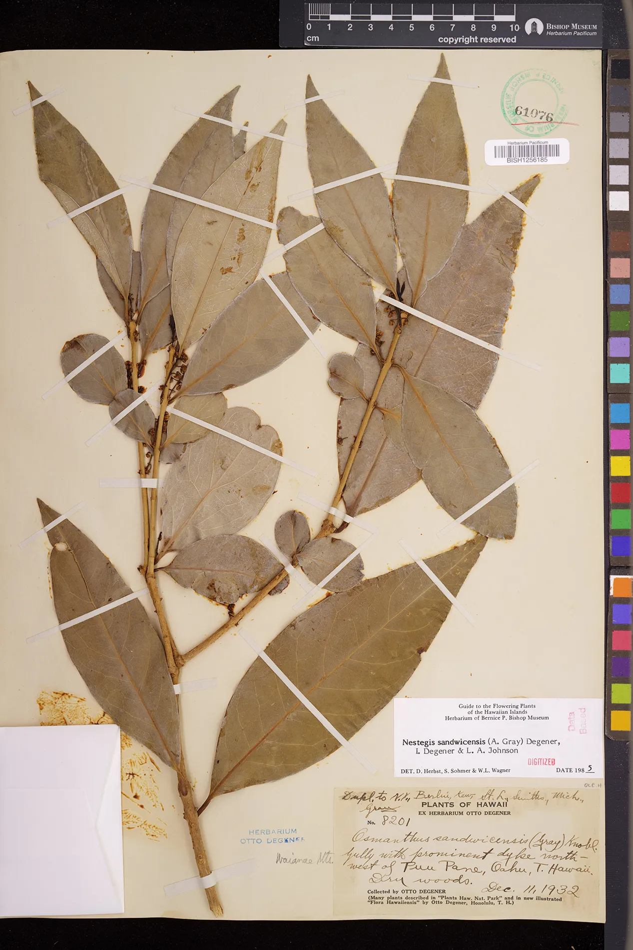 Wagner et al. 1990:992 (K, O, Mo, L, M, H [as Nestegis sandwicensis]); Dupin et al. 2022:16 (COMBNOV, Syn. Nestegis sandwicensis = Notelaea sandwicensis)