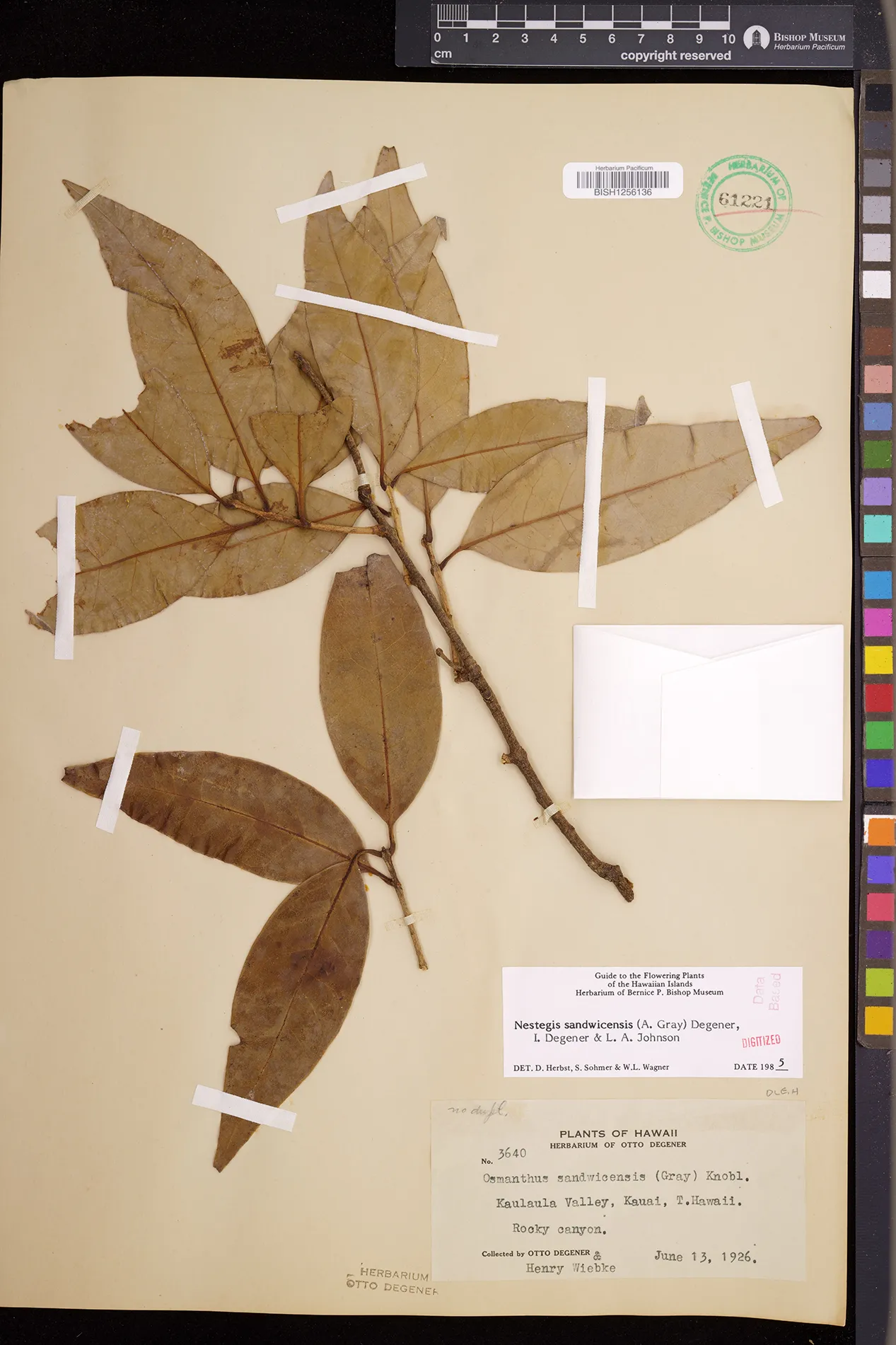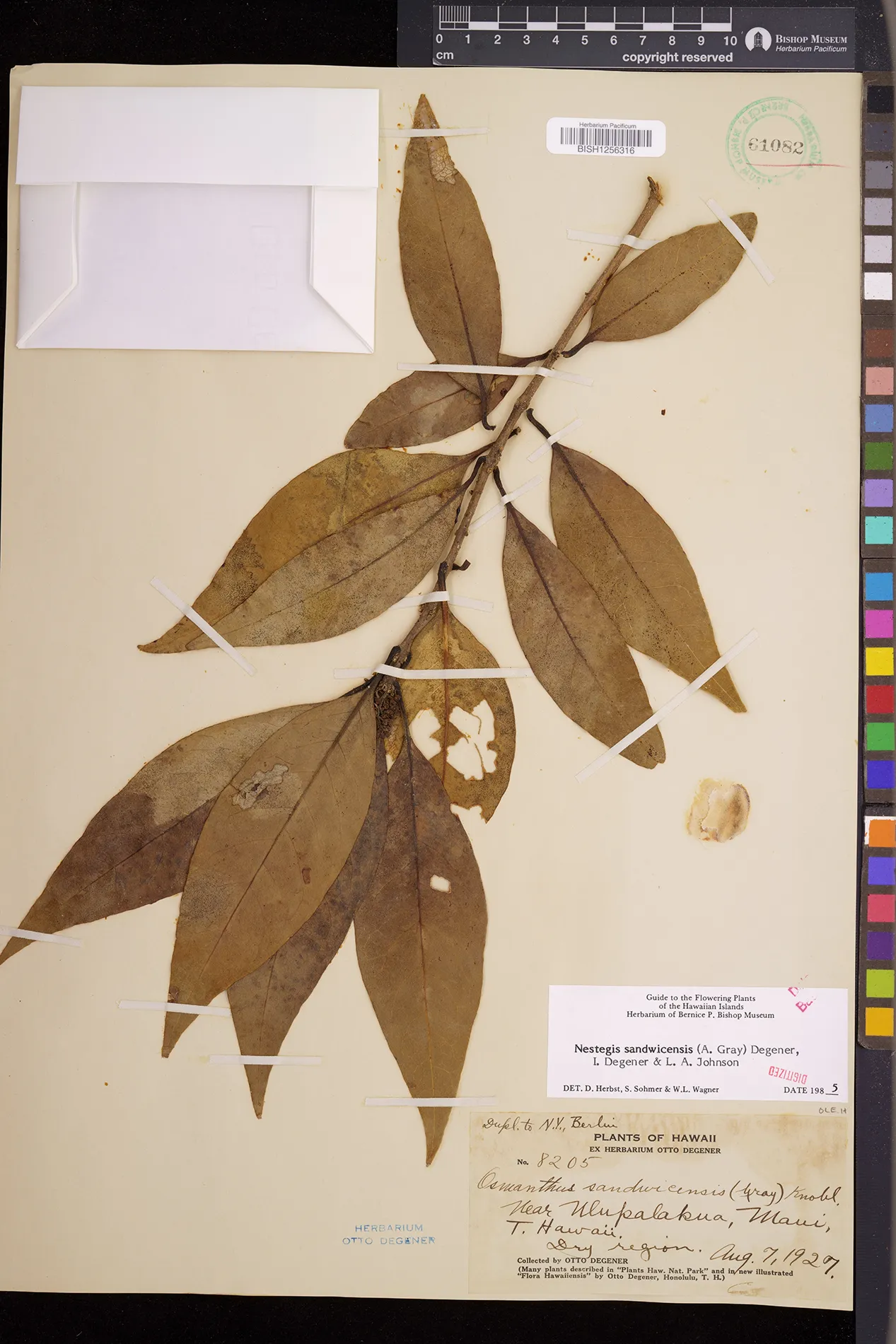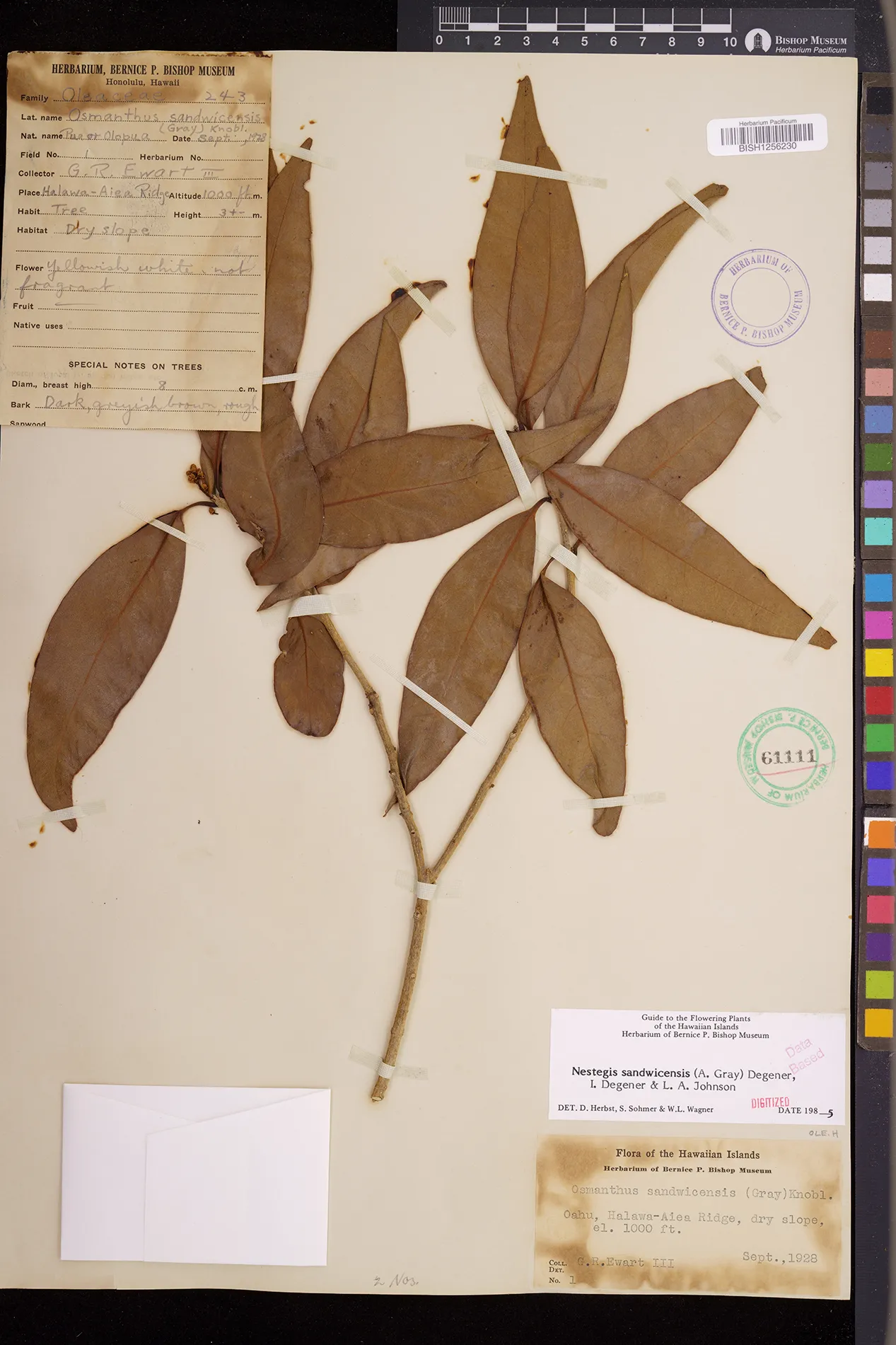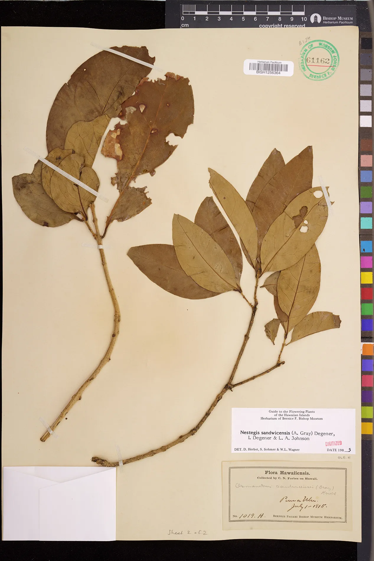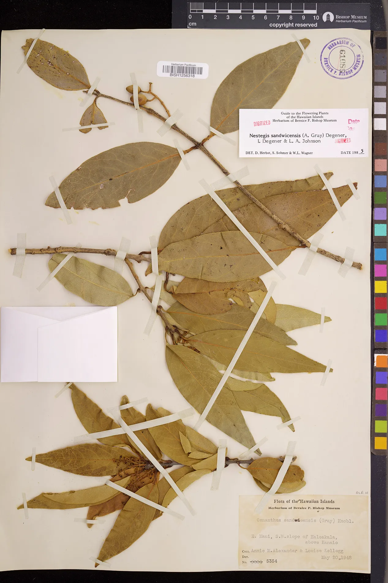 Wagner et al. 1990:992 (K, O, Mo, L, M, H [as Nestegis sandwicensis]); Dupin et al. 2022:16 (COMBNOV, Syn. Nestegis sandwicensis = Notelaea sandwicensis)