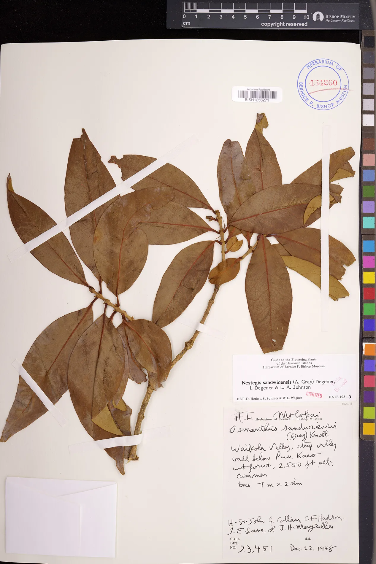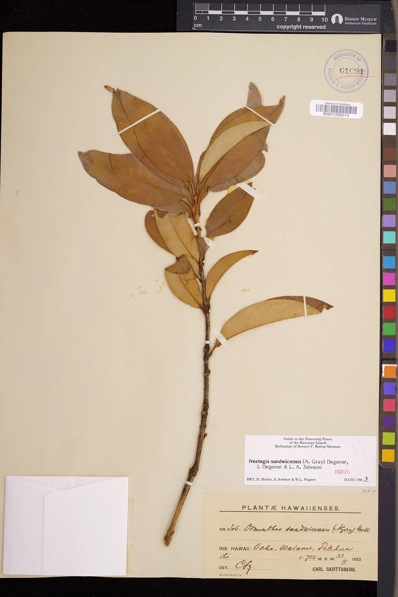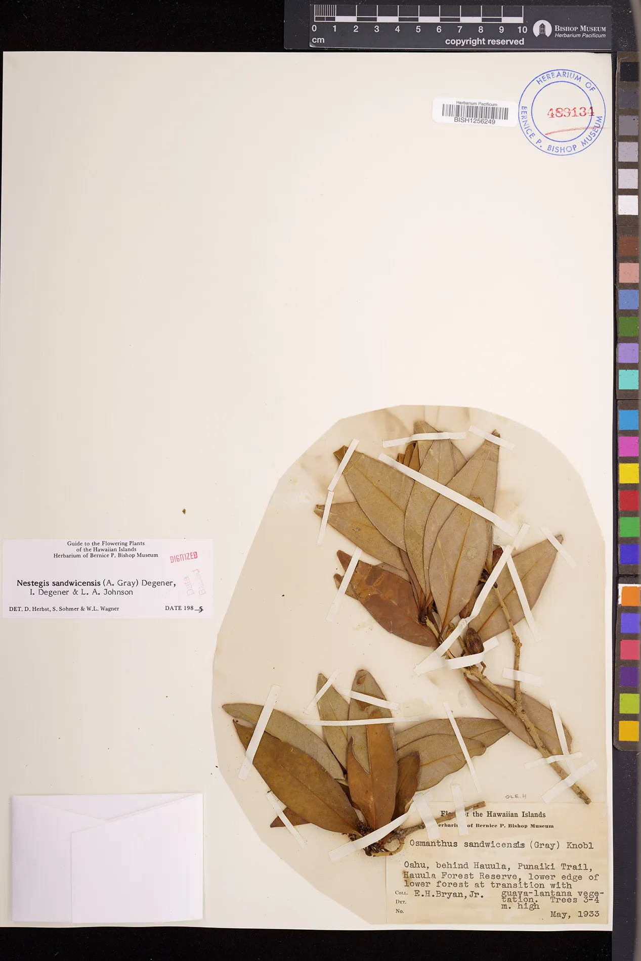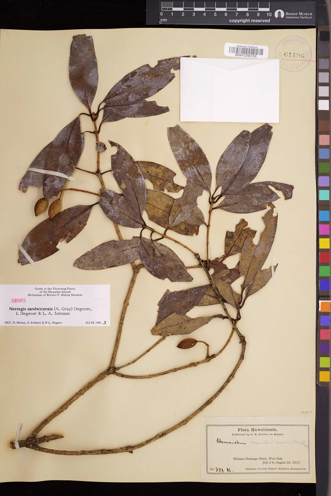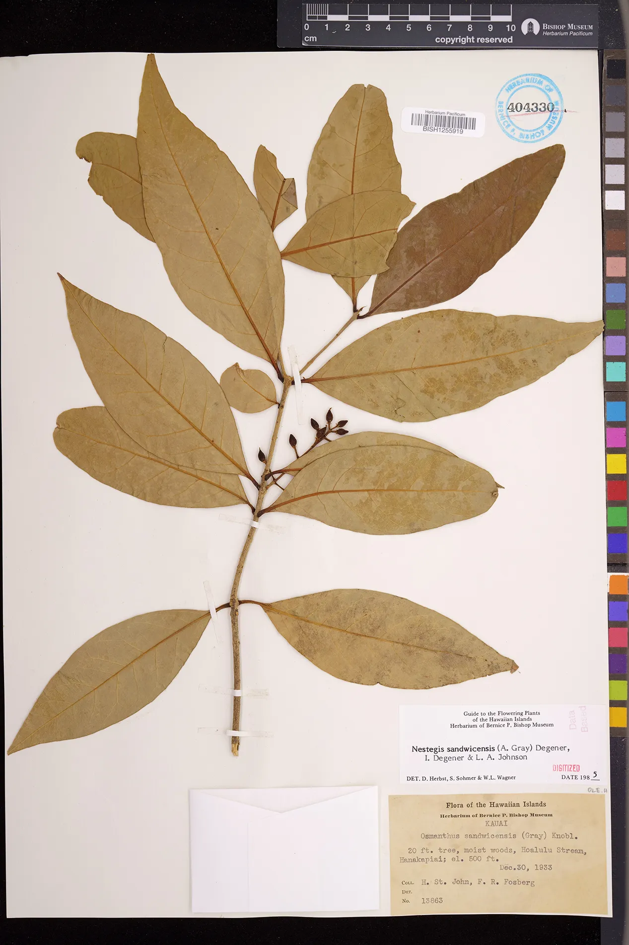 Wagner et al. 1990:992 (K, O, Mo, L, M, H [as Nestegis sandwicensis]); Dupin et al. 2022:16 (COMBNOV, Syn. Nestegis sandwicensis = Notelaea sandwicensis)