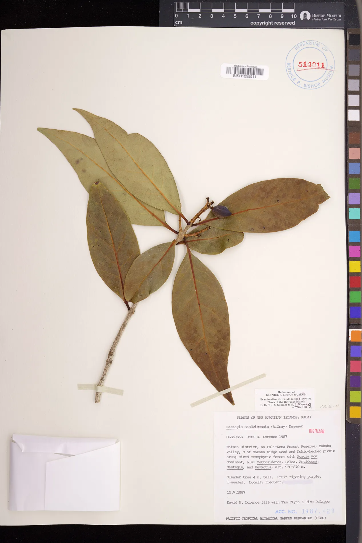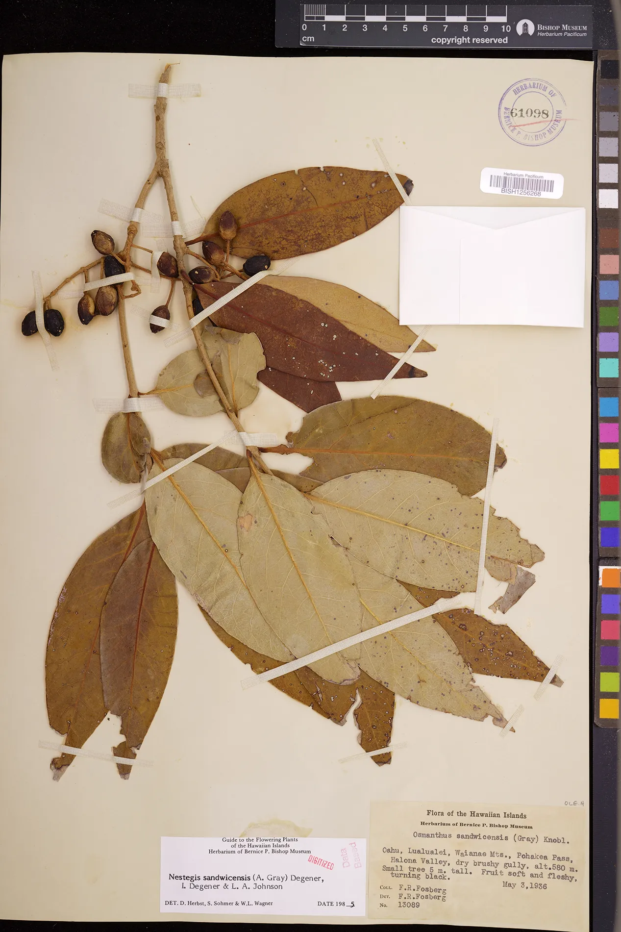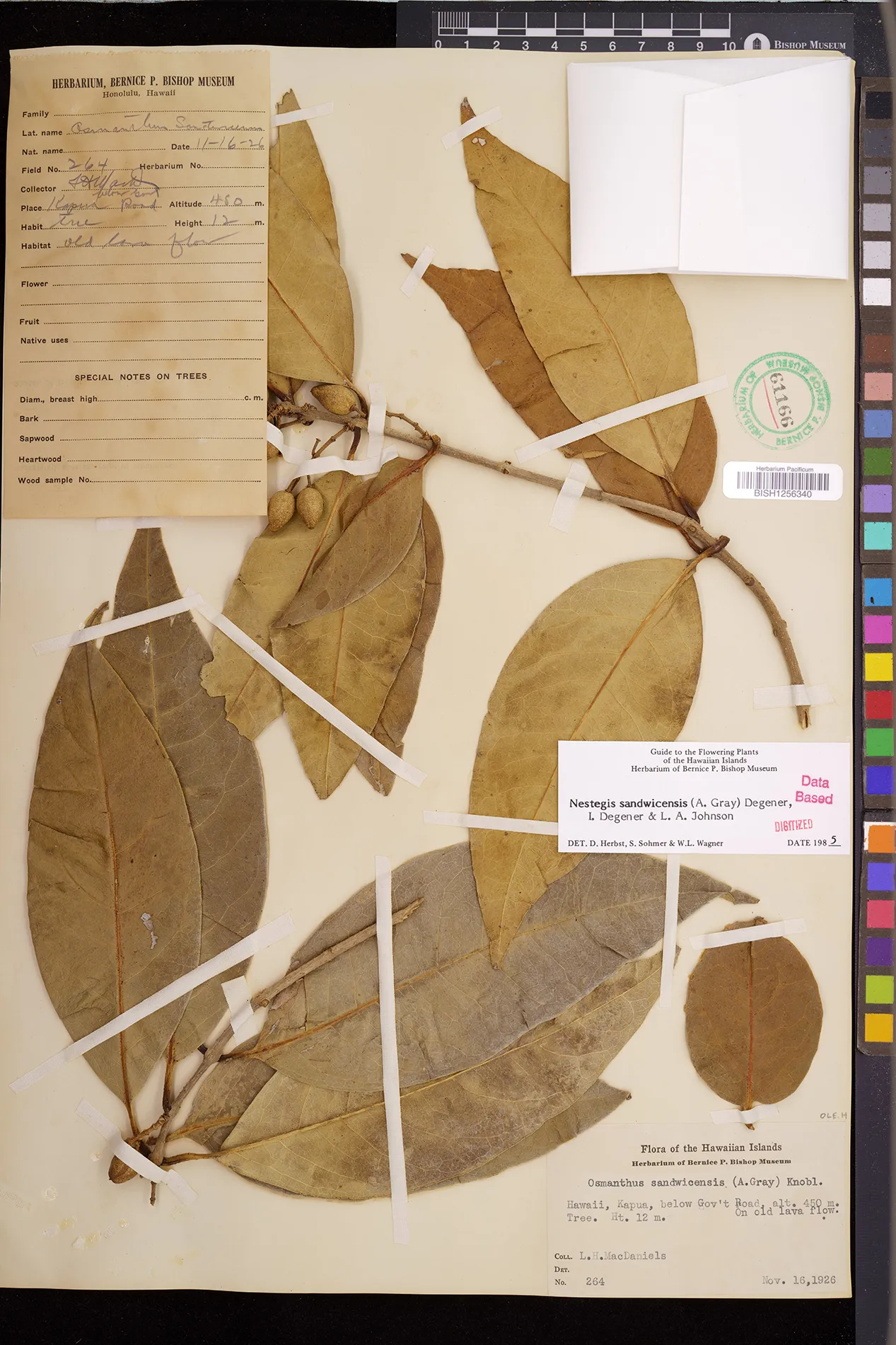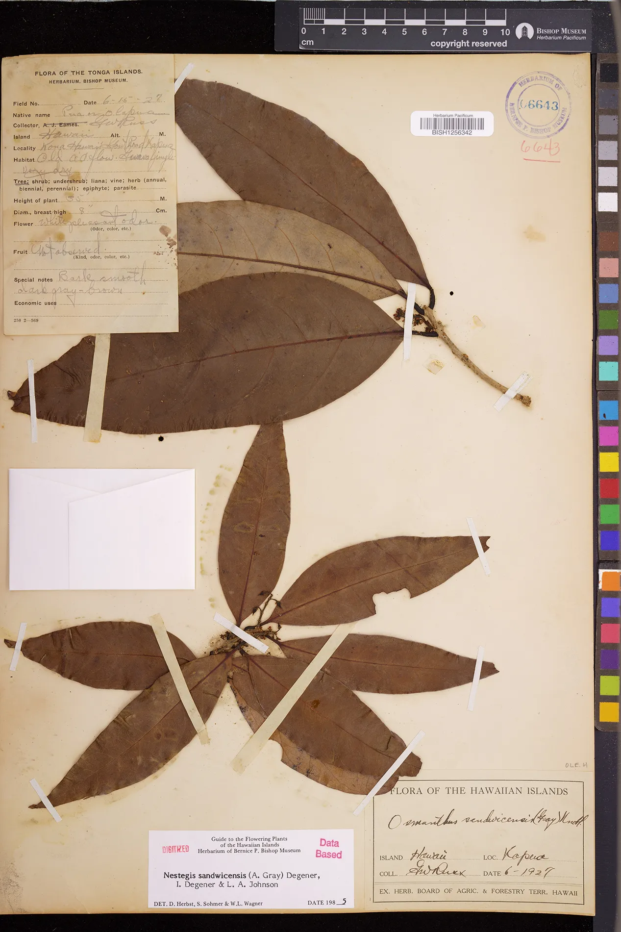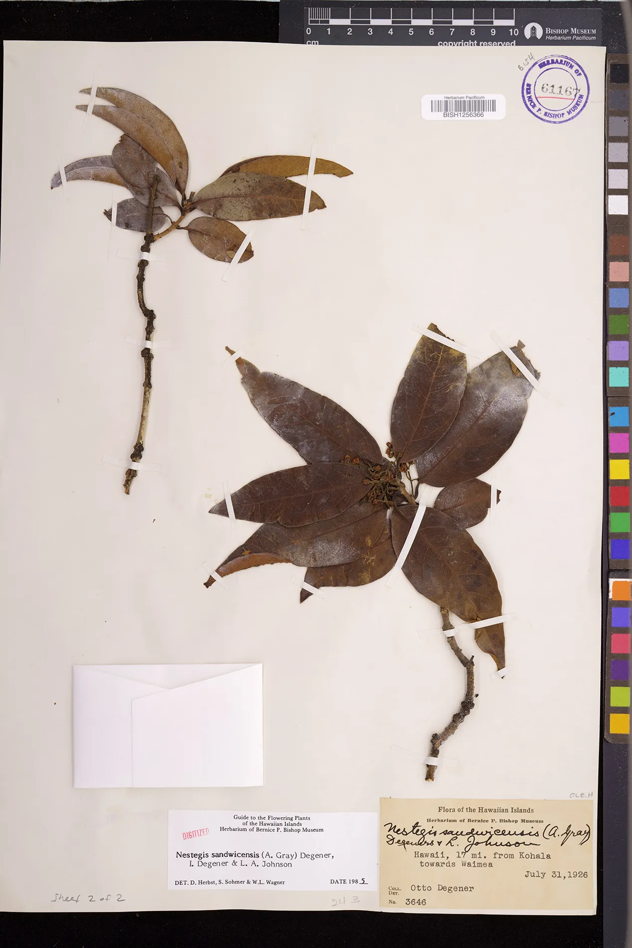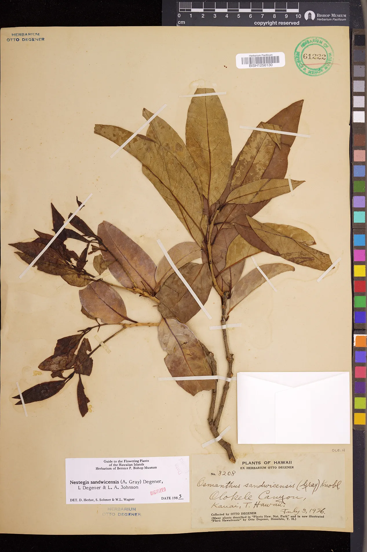 Wagner et al. 1990:992 (K, O, Mo, L, M, H [as Nestegis sandwicensis]); Dupin et al. 2022:16 (COMBNOV, Syn. Nestegis sandwicensis = Notelaea sandwicensis)