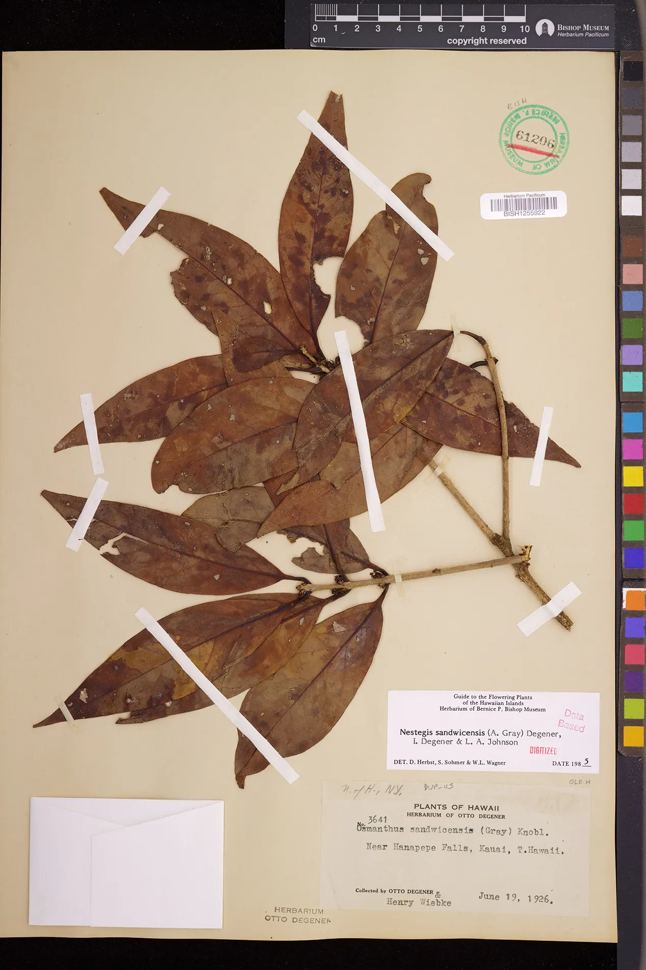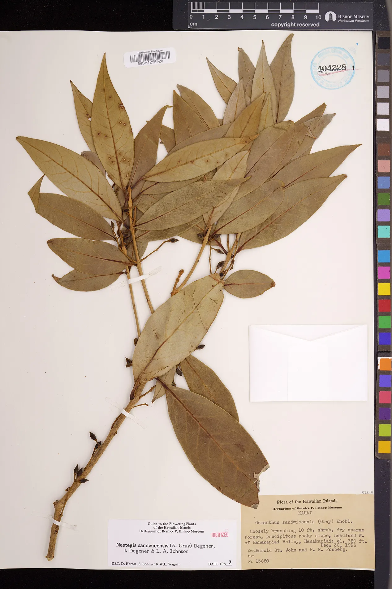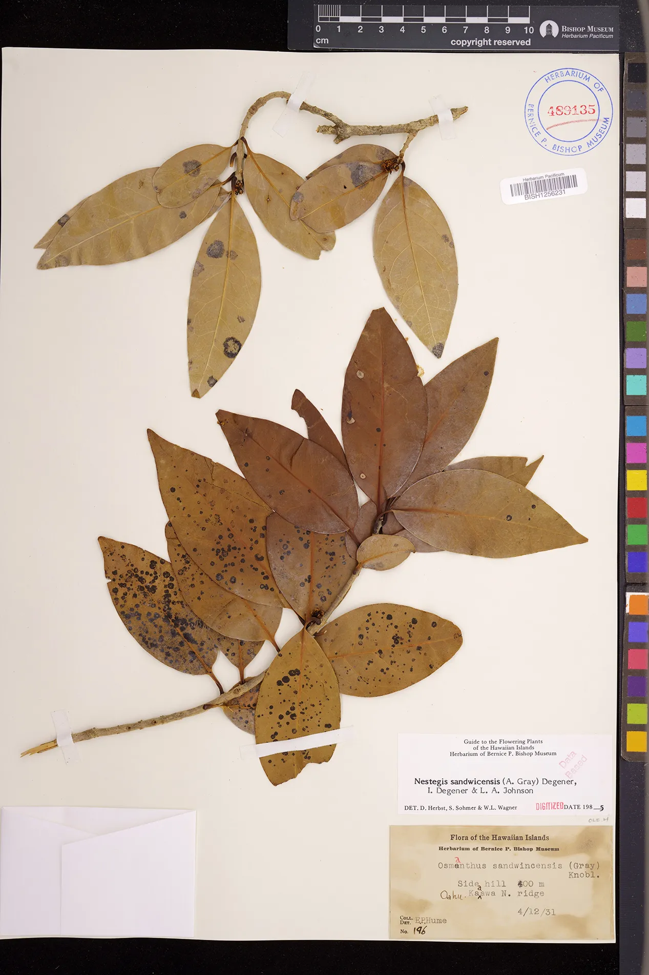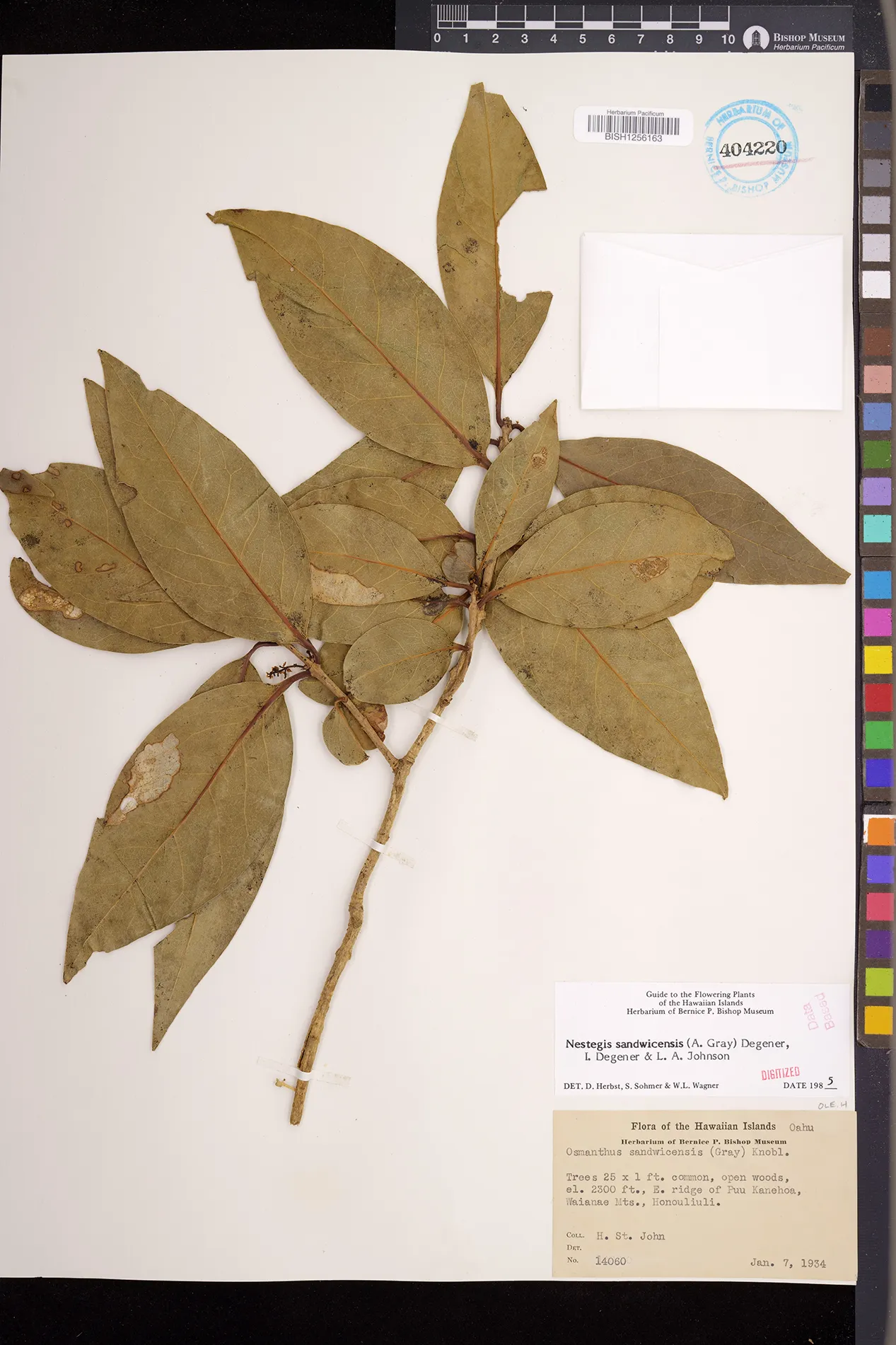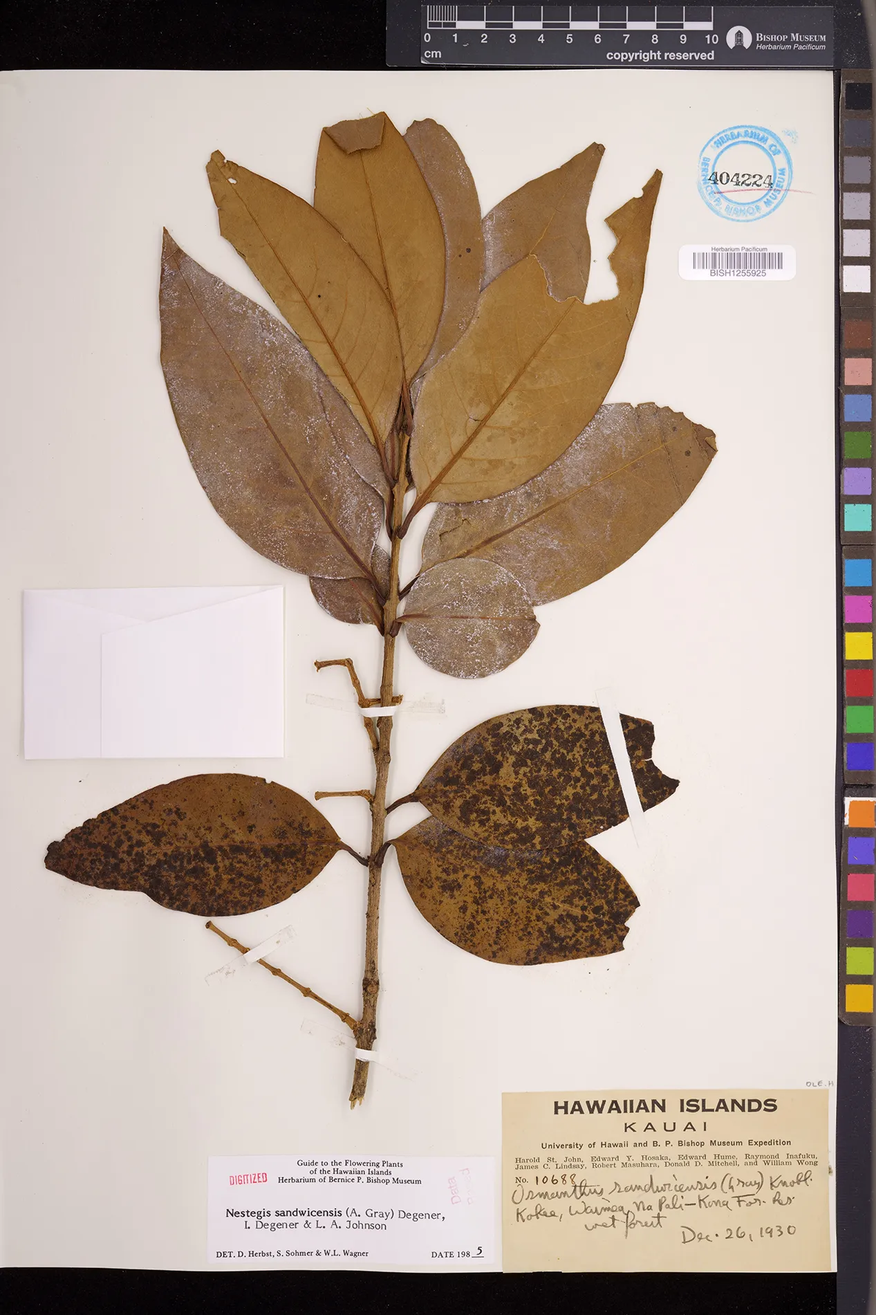 Wagner et al. 1990:992 (K, O, Mo, L, M, H [as Nestegis sandwicensis]); Dupin et al. 2022:16 (COMBNOV, Syn. Nestegis sandwicensis = Notelaea sandwicensis)