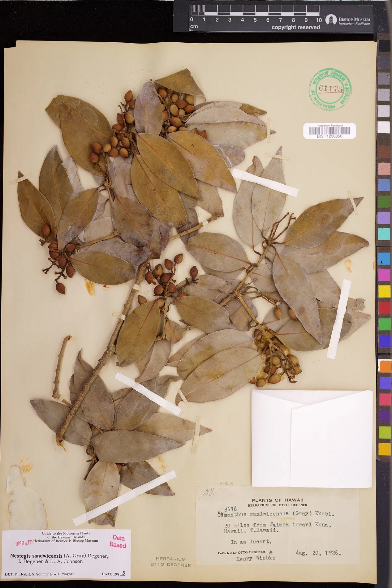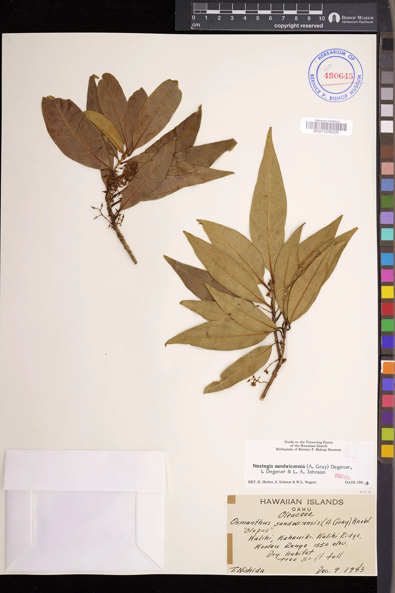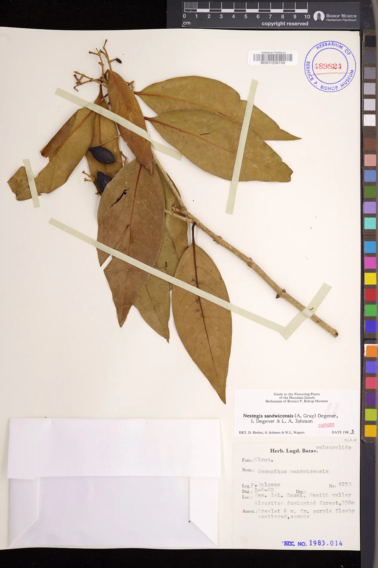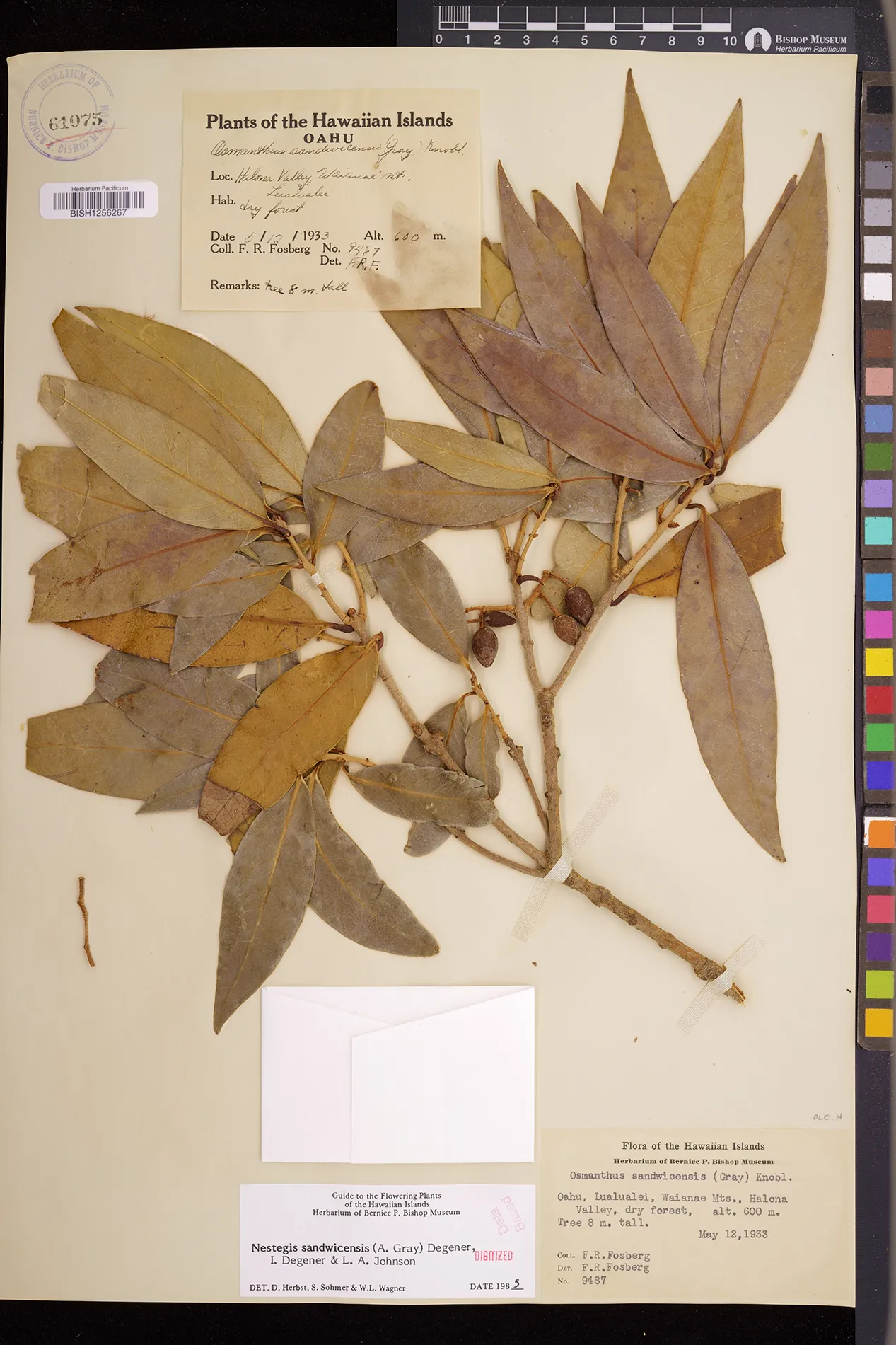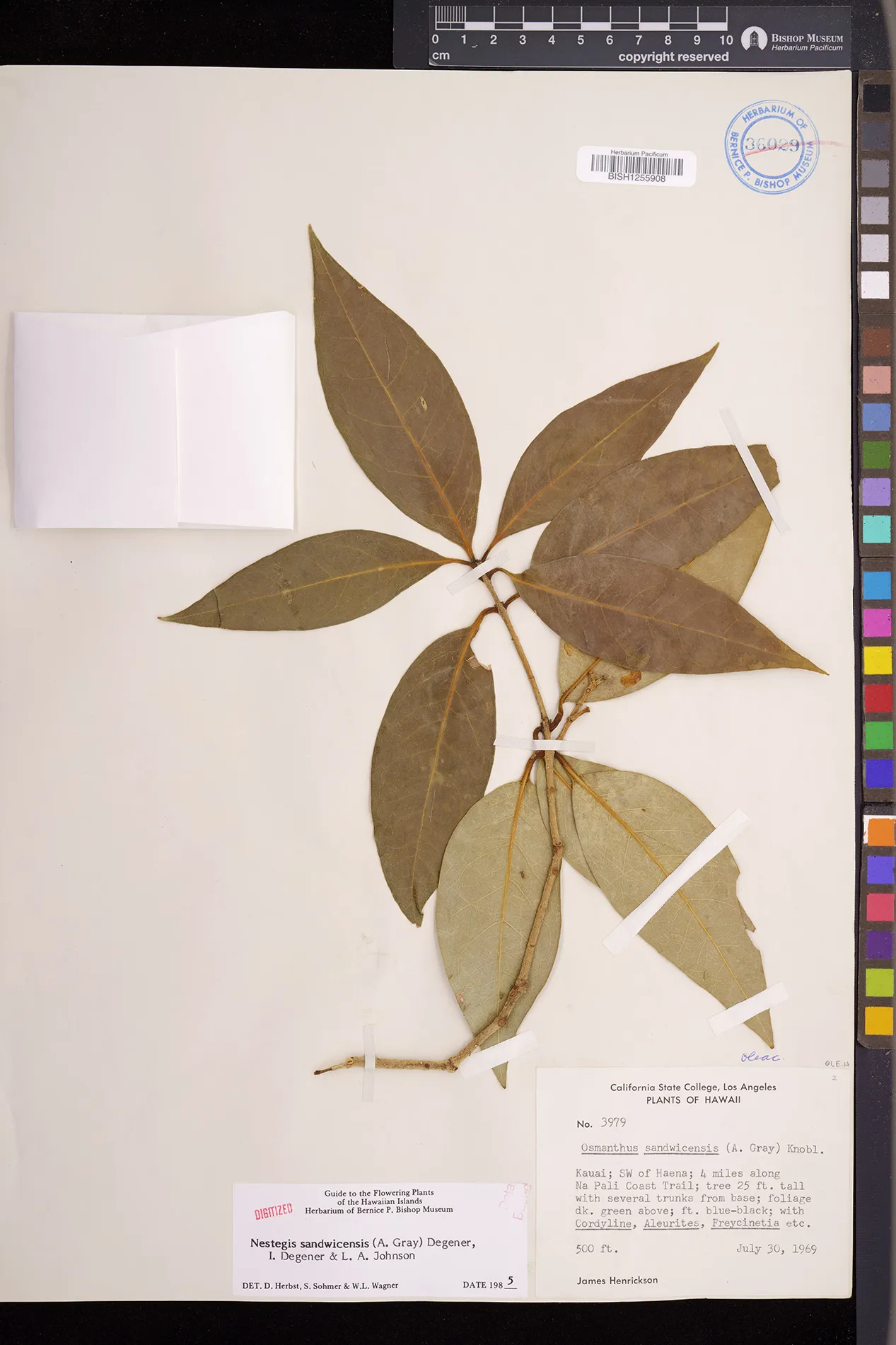 Wagner et al. 1990:992 (K, O, Mo, L, M, H [as Nestegis sandwicensis]); Dupin et al. 2022:16 (COMBNOV, Syn. Nestegis sandwicensis = Notelaea sandwicensis)