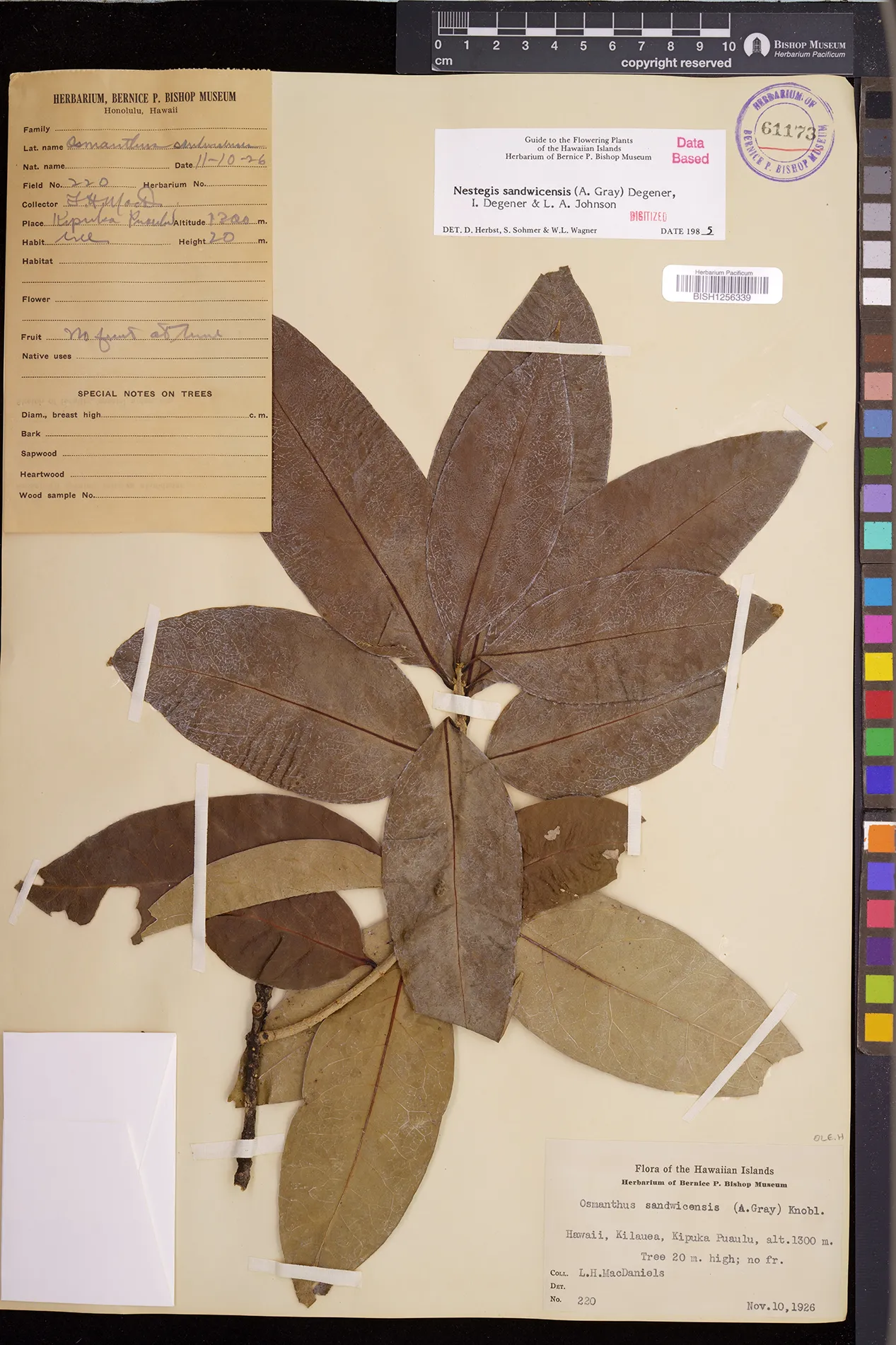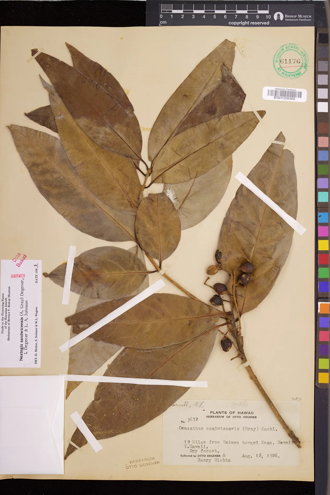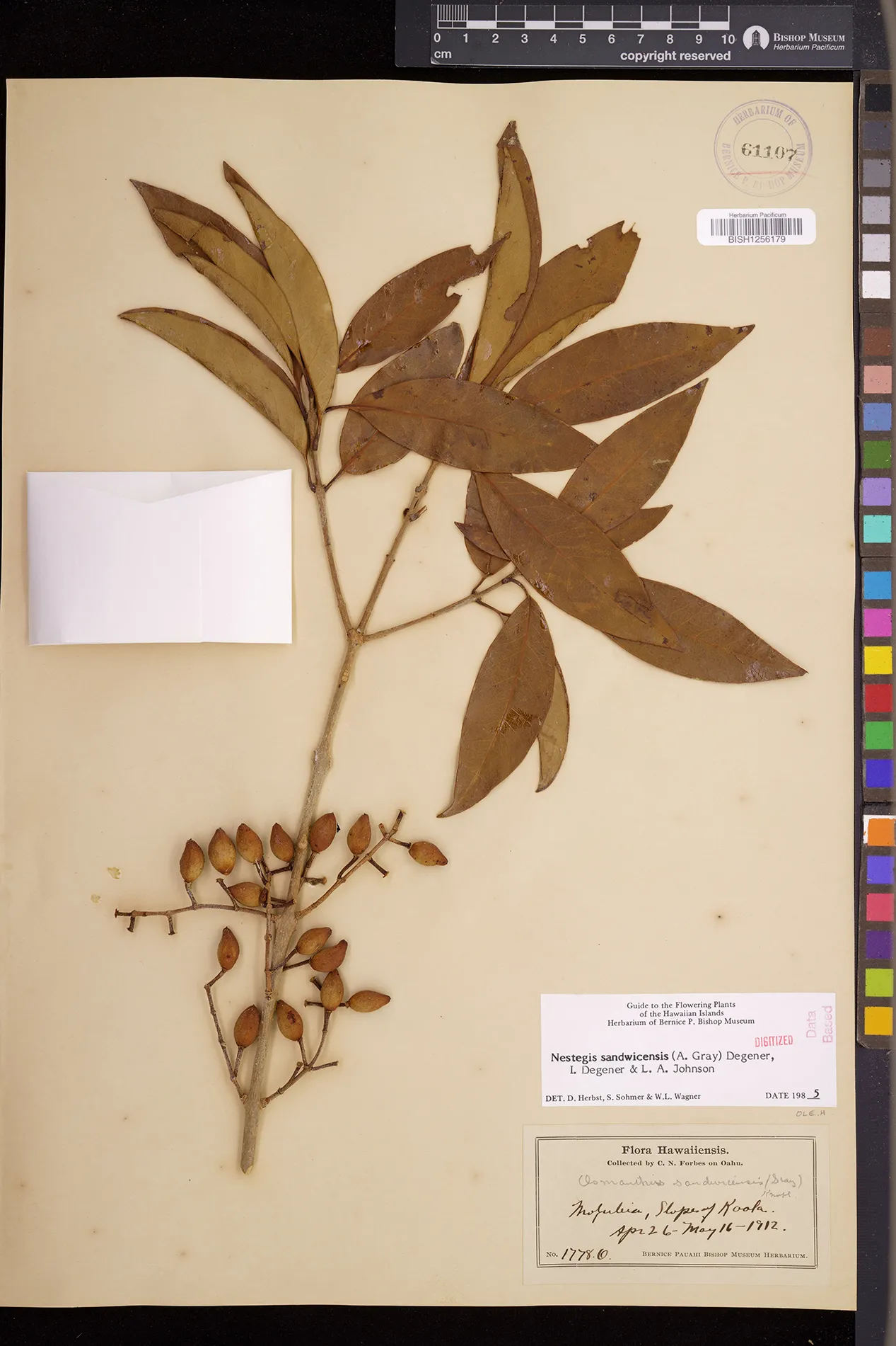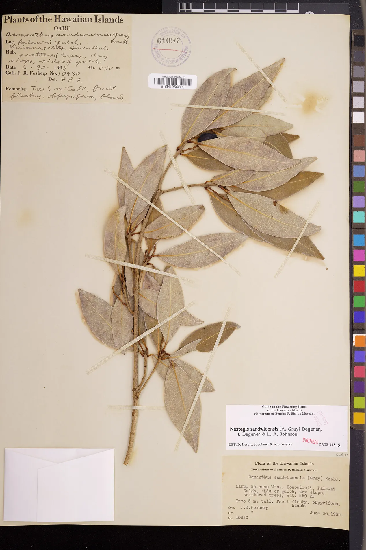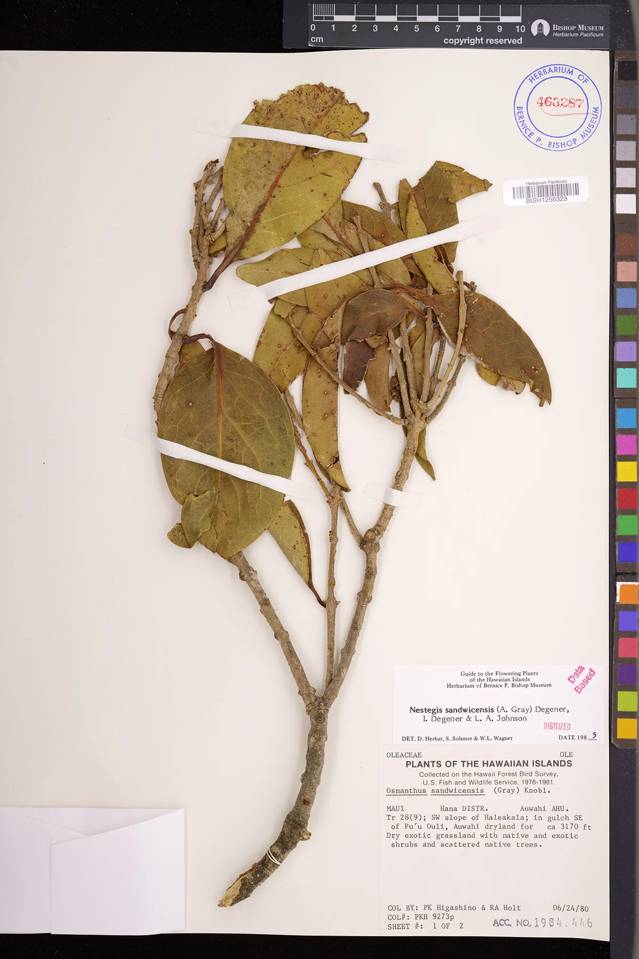 Wagner et al. 1990:992 (K, O, Mo, L, M, H [as Nestegis sandwicensis]); Dupin et al. 2022:16 (COMBNOV, Syn. Nestegis sandwicensis = Notelaea sandwicensis)