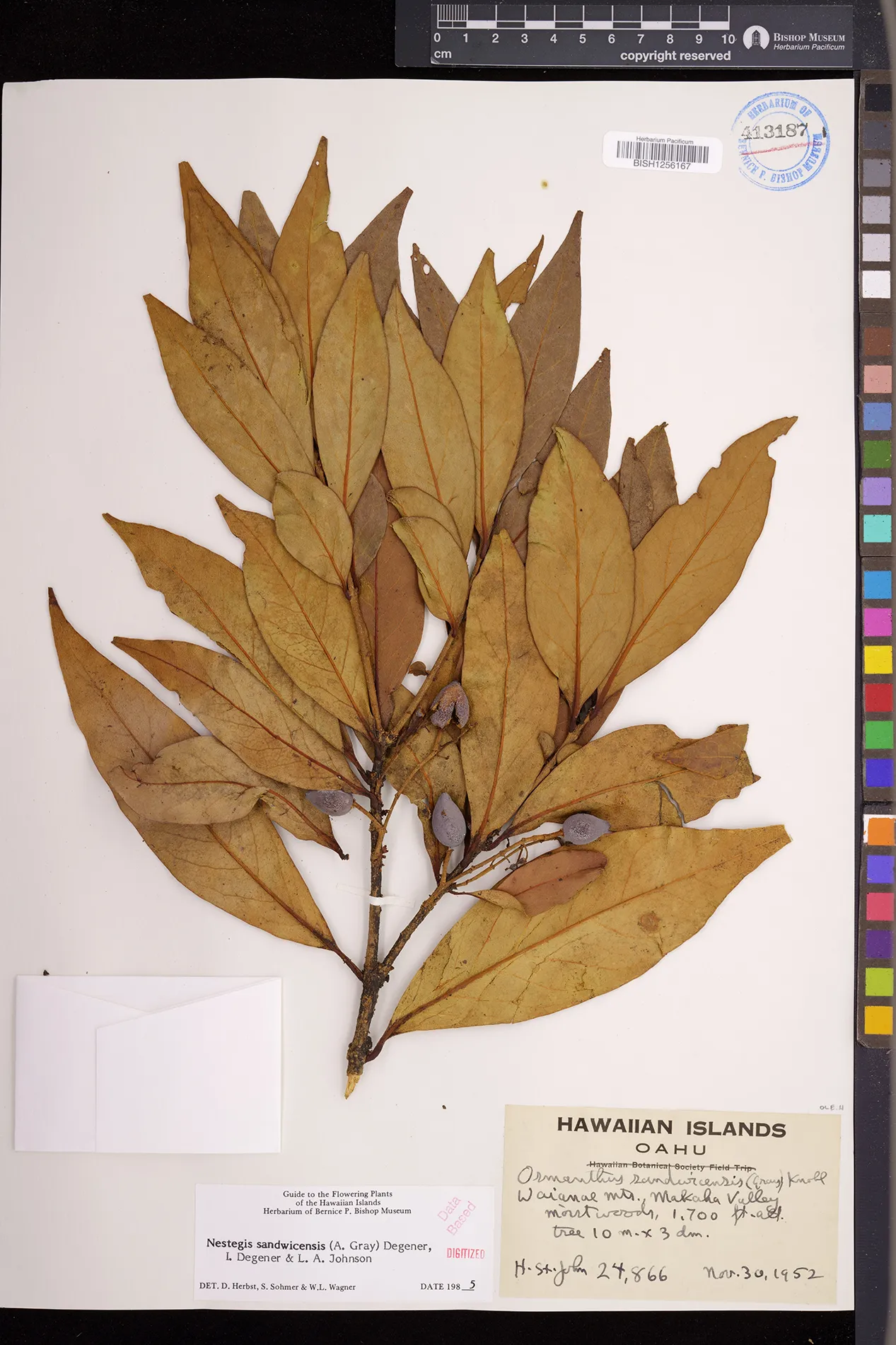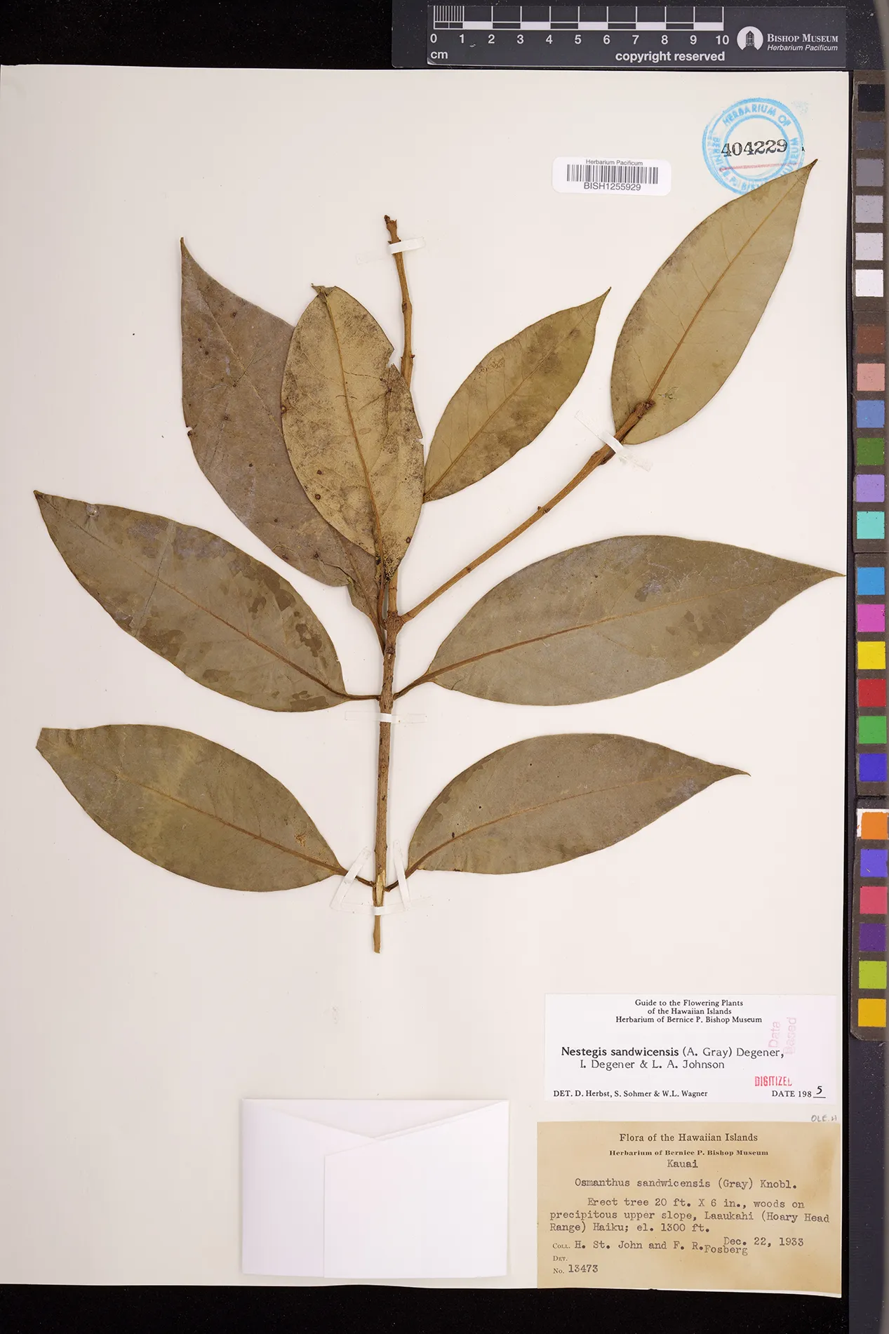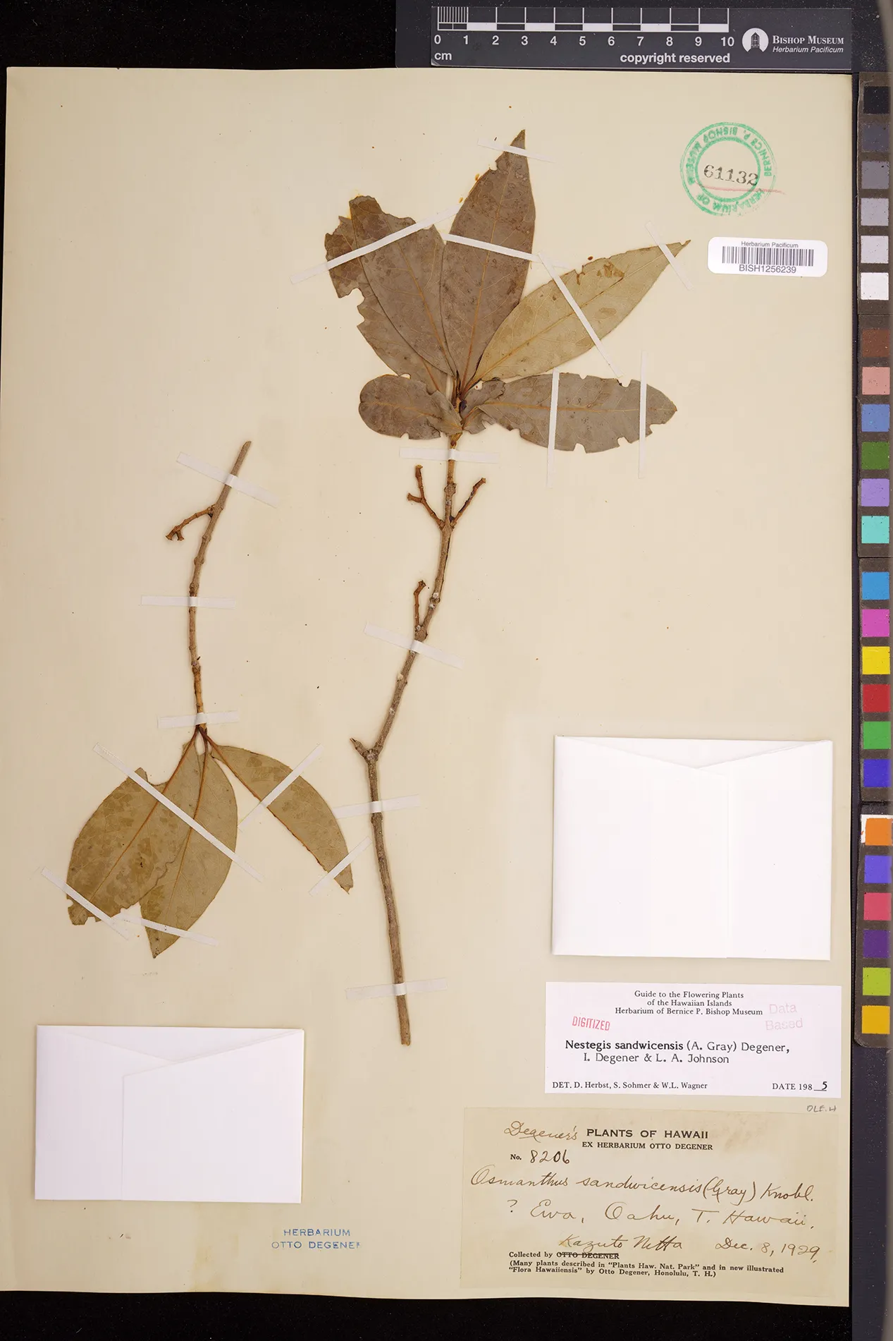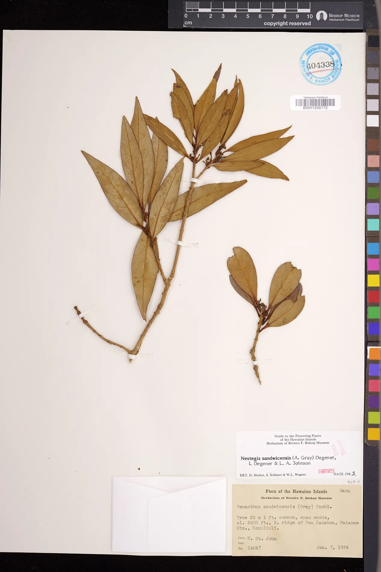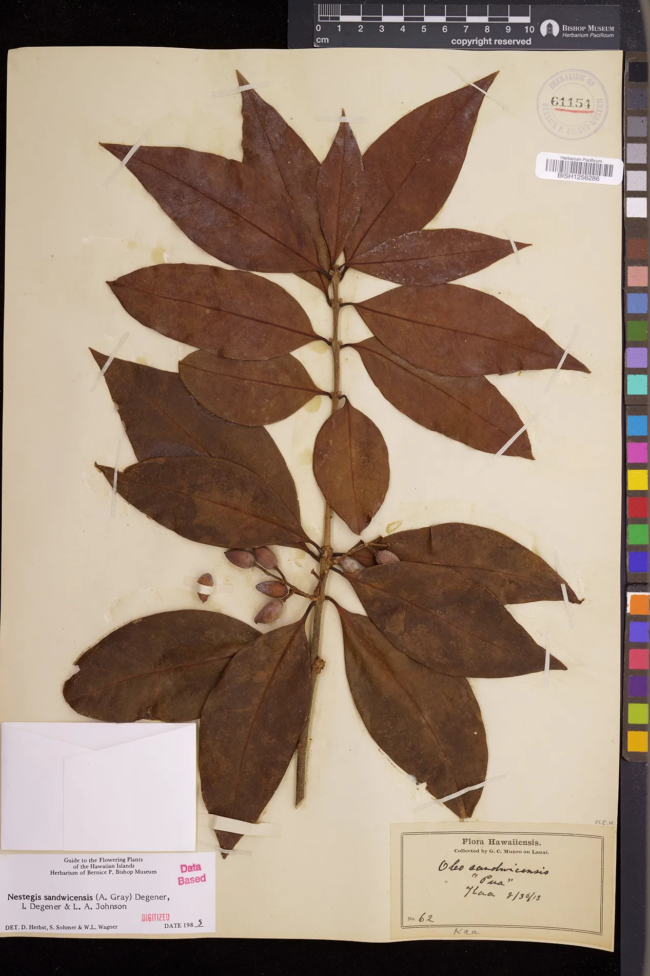 Wagner et al. 1990:992 (K, O, Mo, L, M, H [as Nestegis sandwicensis]); Dupin et al. 2022:16 (COMBNOV, Syn. Nestegis sandwicensis = Notelaea sandwicensis)
