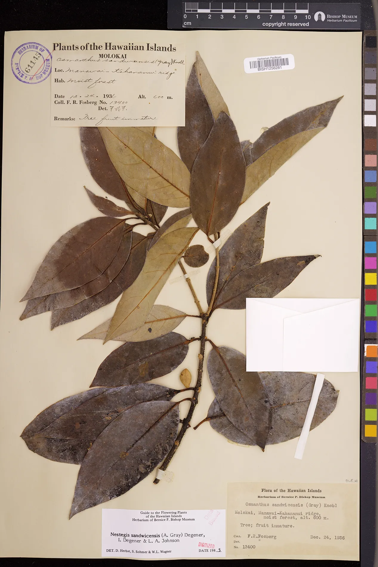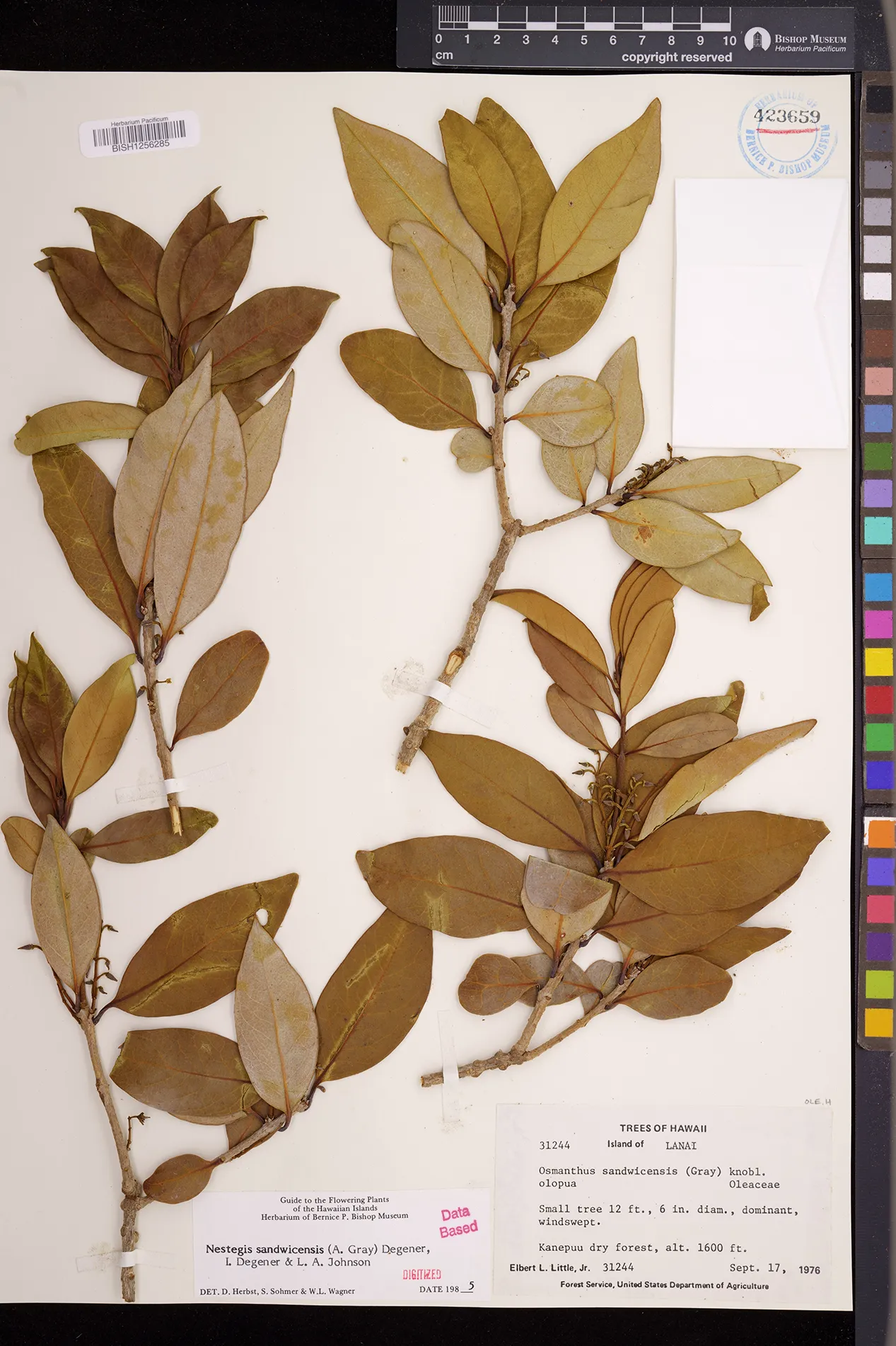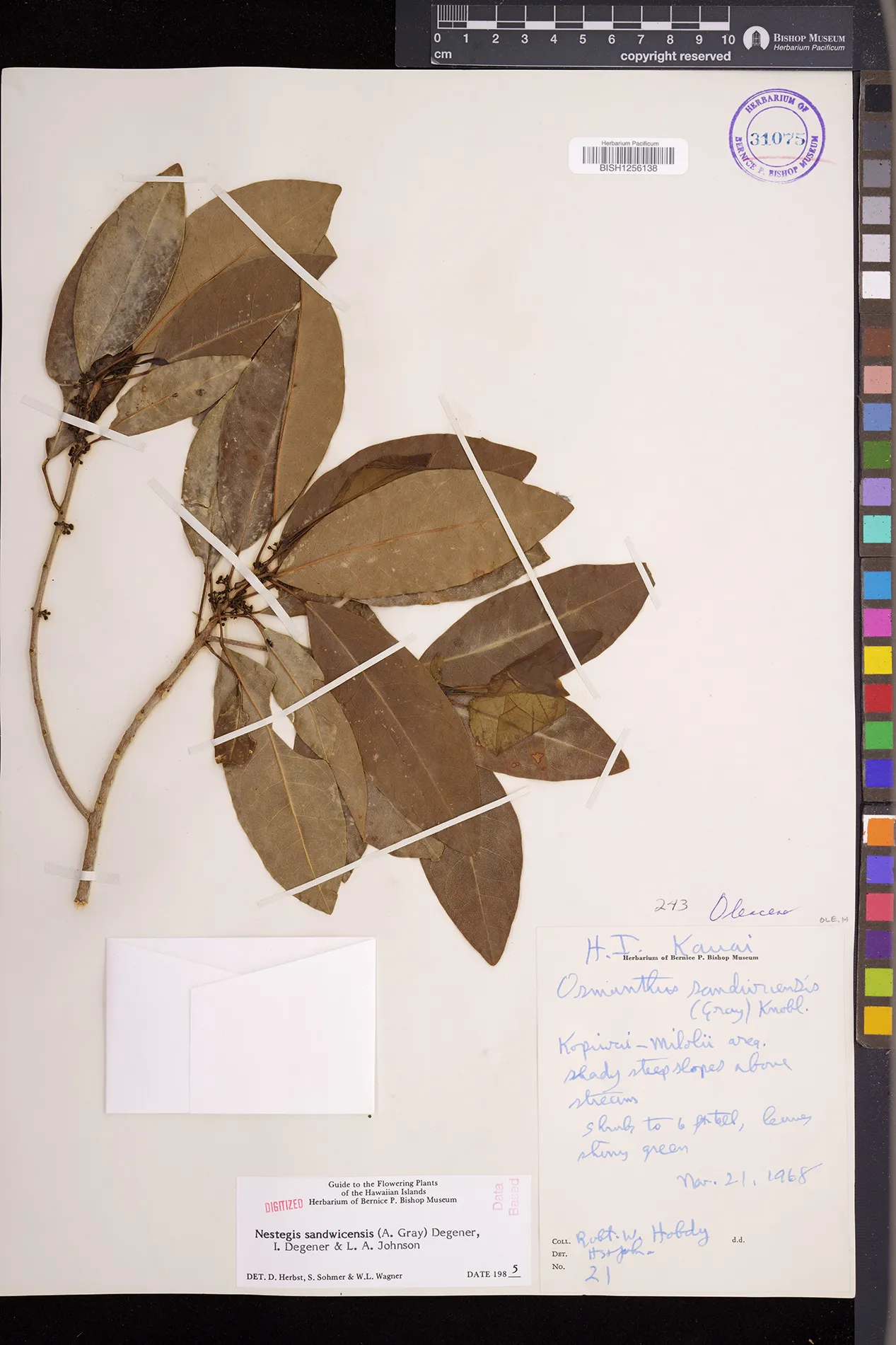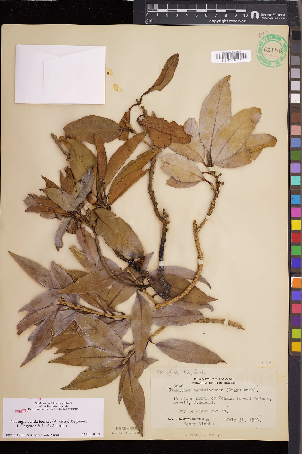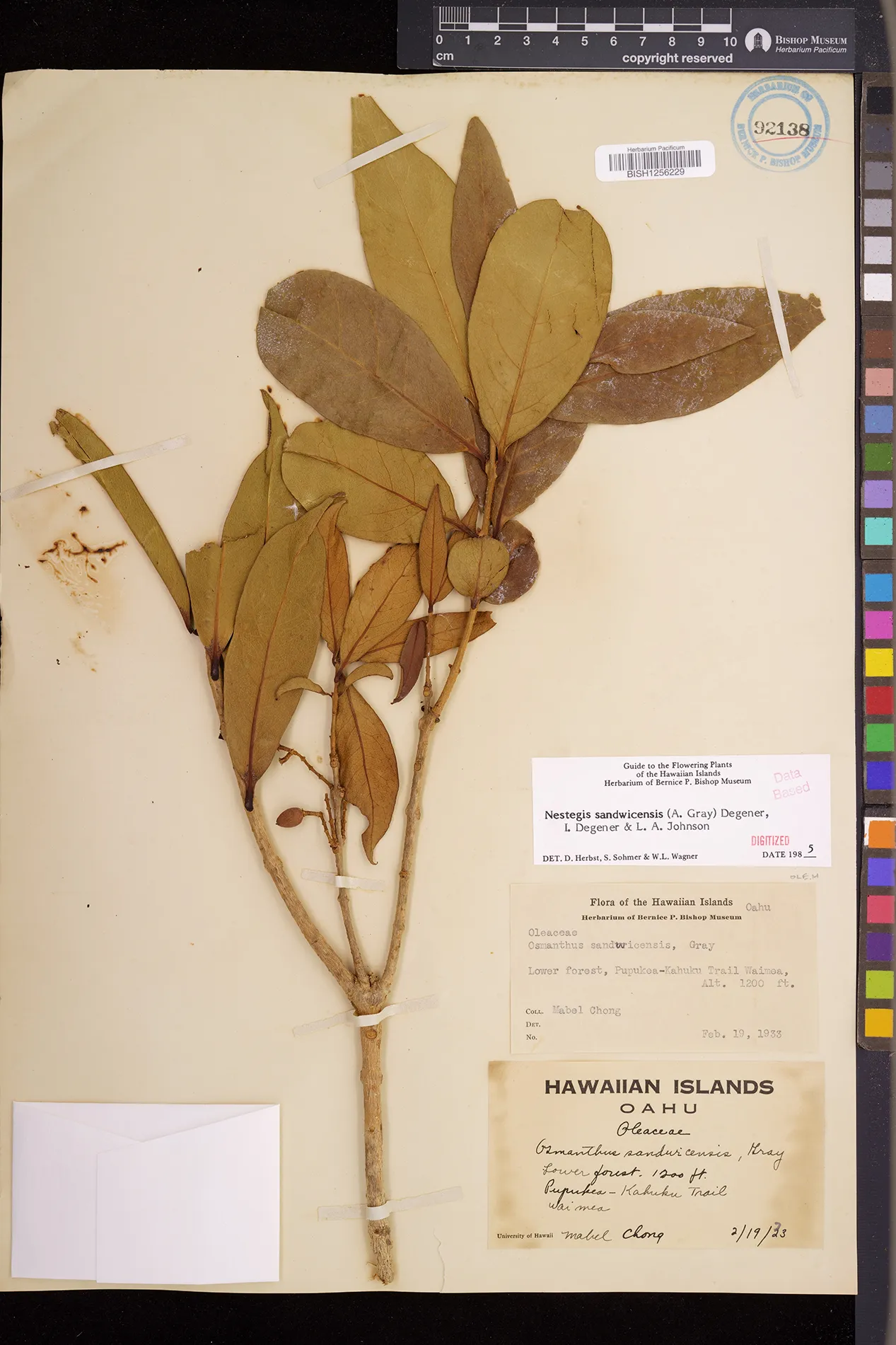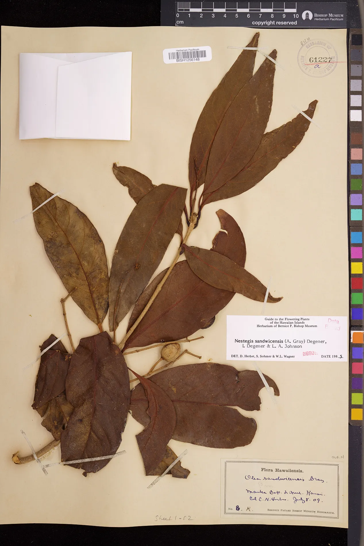 Wagner et al. 1990:992 (K, O, Mo, L, M, H [as Nestegis sandwicensis]); Dupin et al. 2022:16 (COMBNOV, Syn. Nestegis sandwicensis = Notelaea sandwicensis)