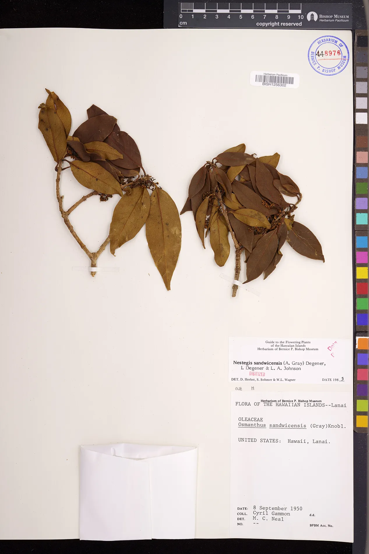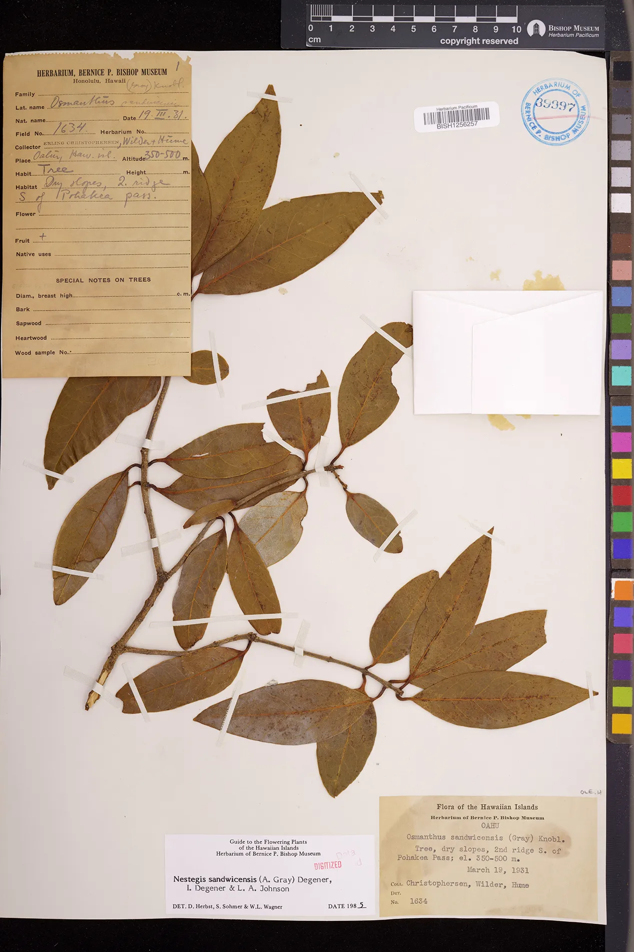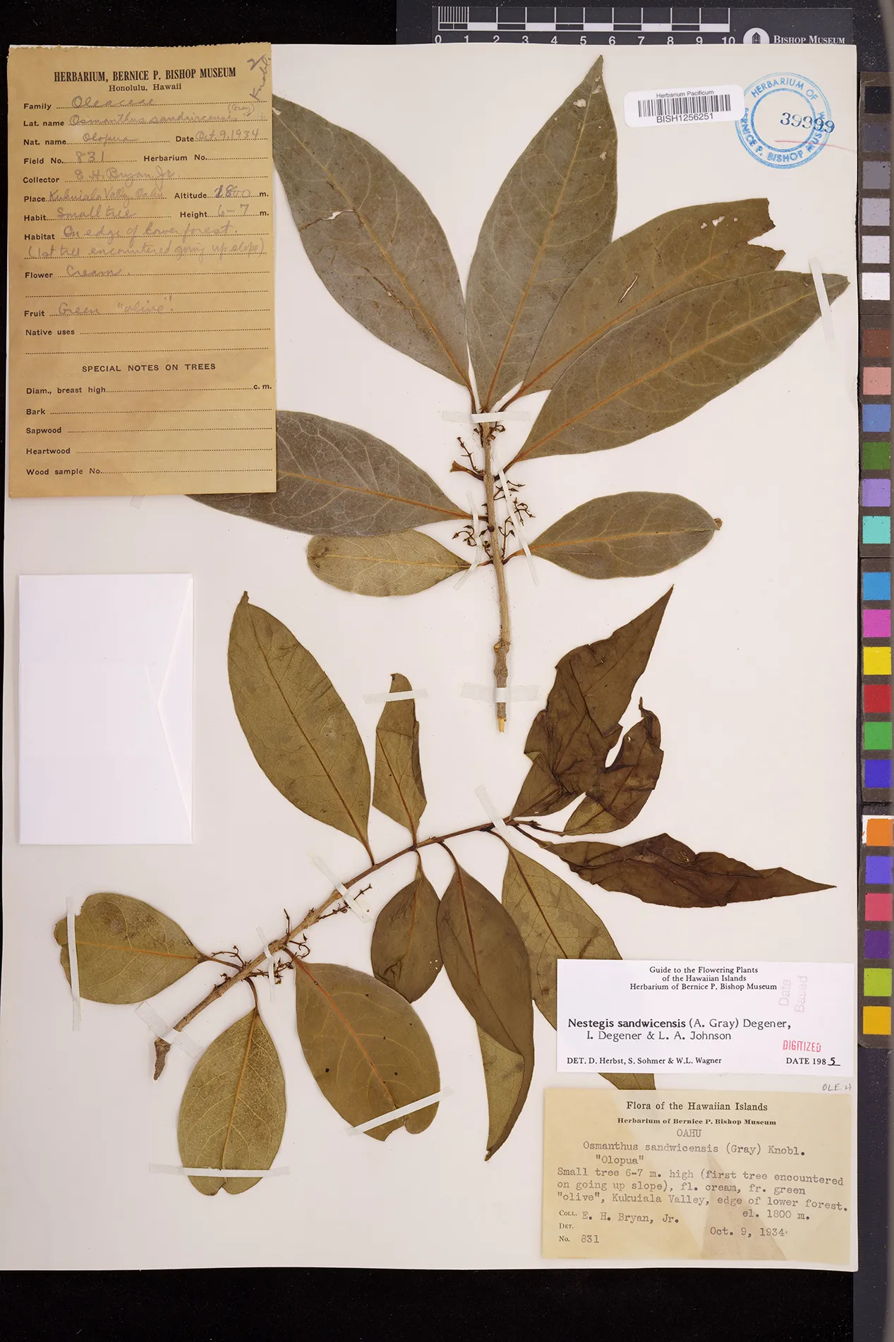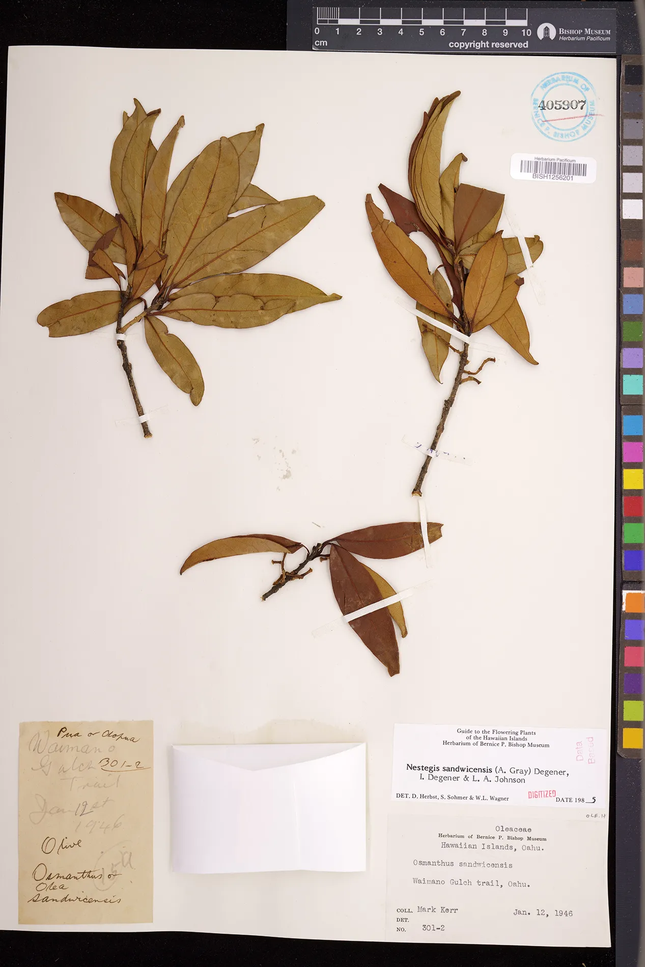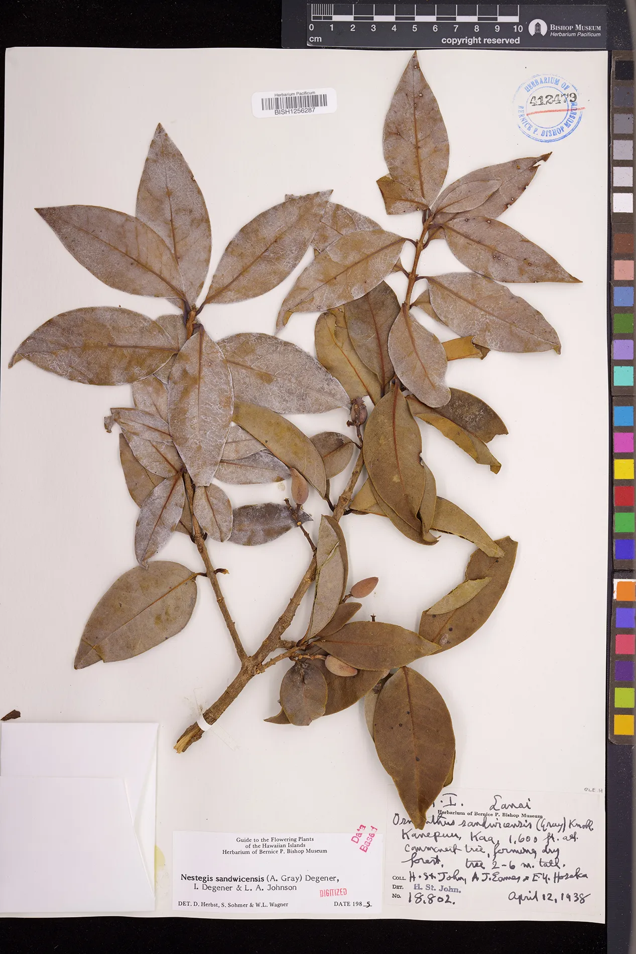 Wagner et al. 1990:992 (K, O, Mo, L, M, H [as Nestegis sandwicensis]); Dupin et al. 2022:16 (COMBNOV, Syn. Nestegis sandwicensis = Notelaea sandwicensis)