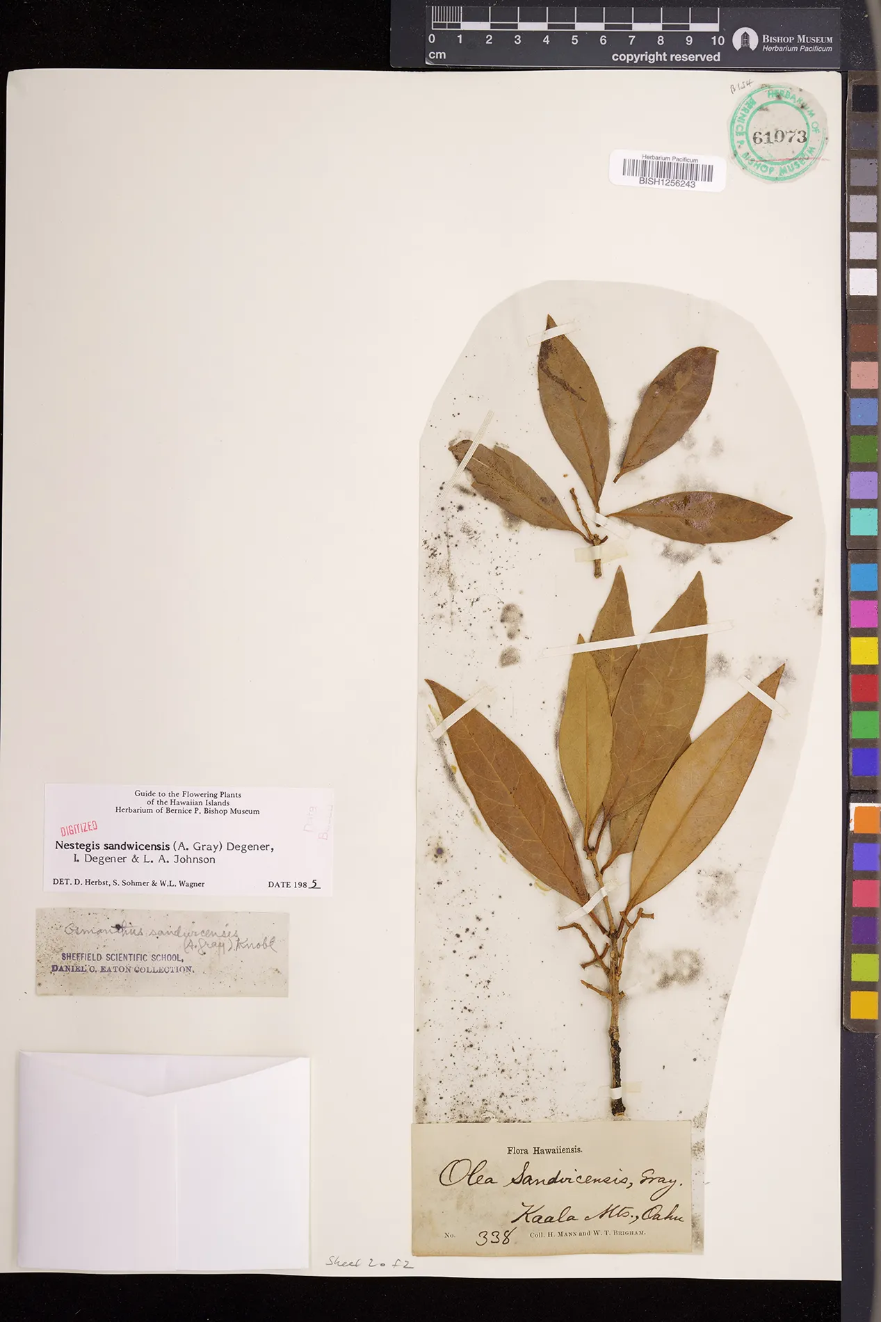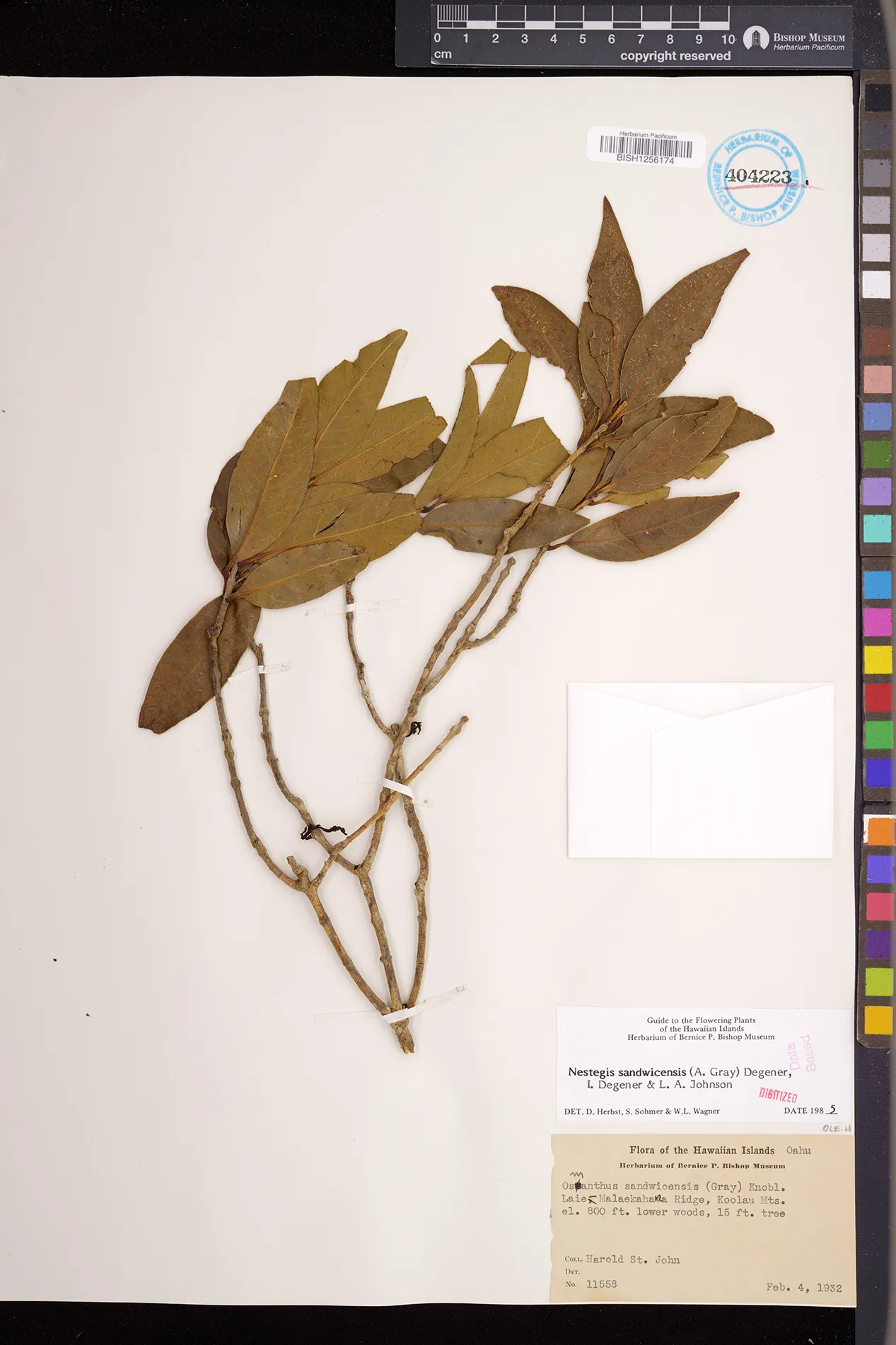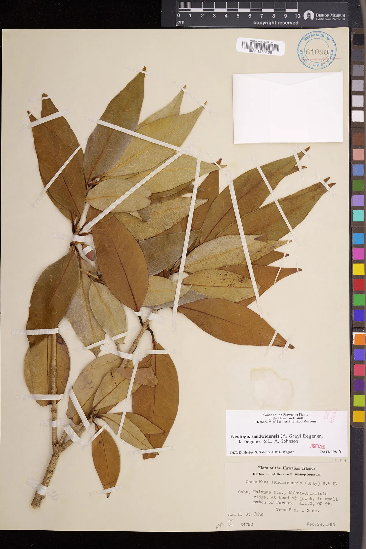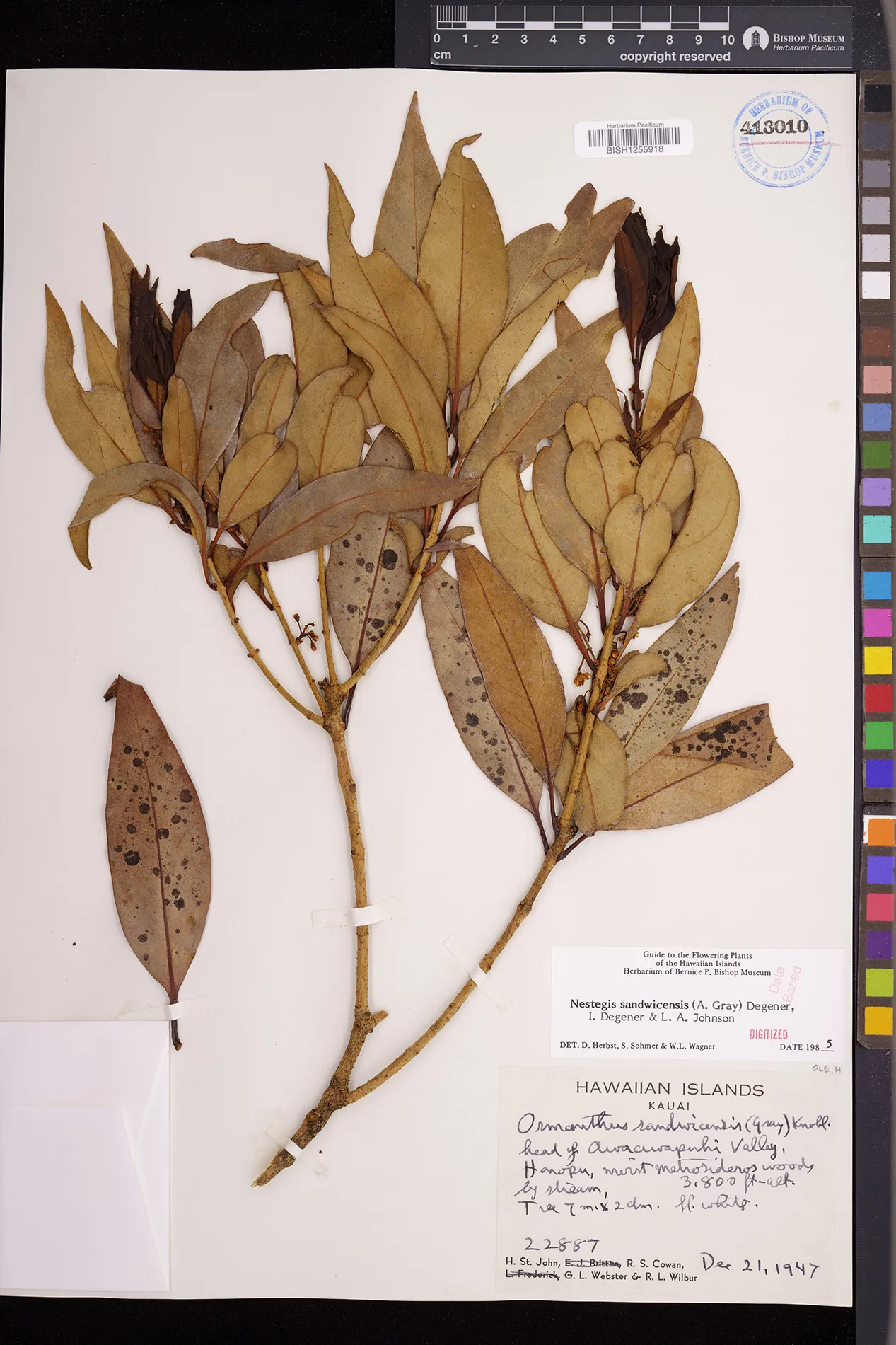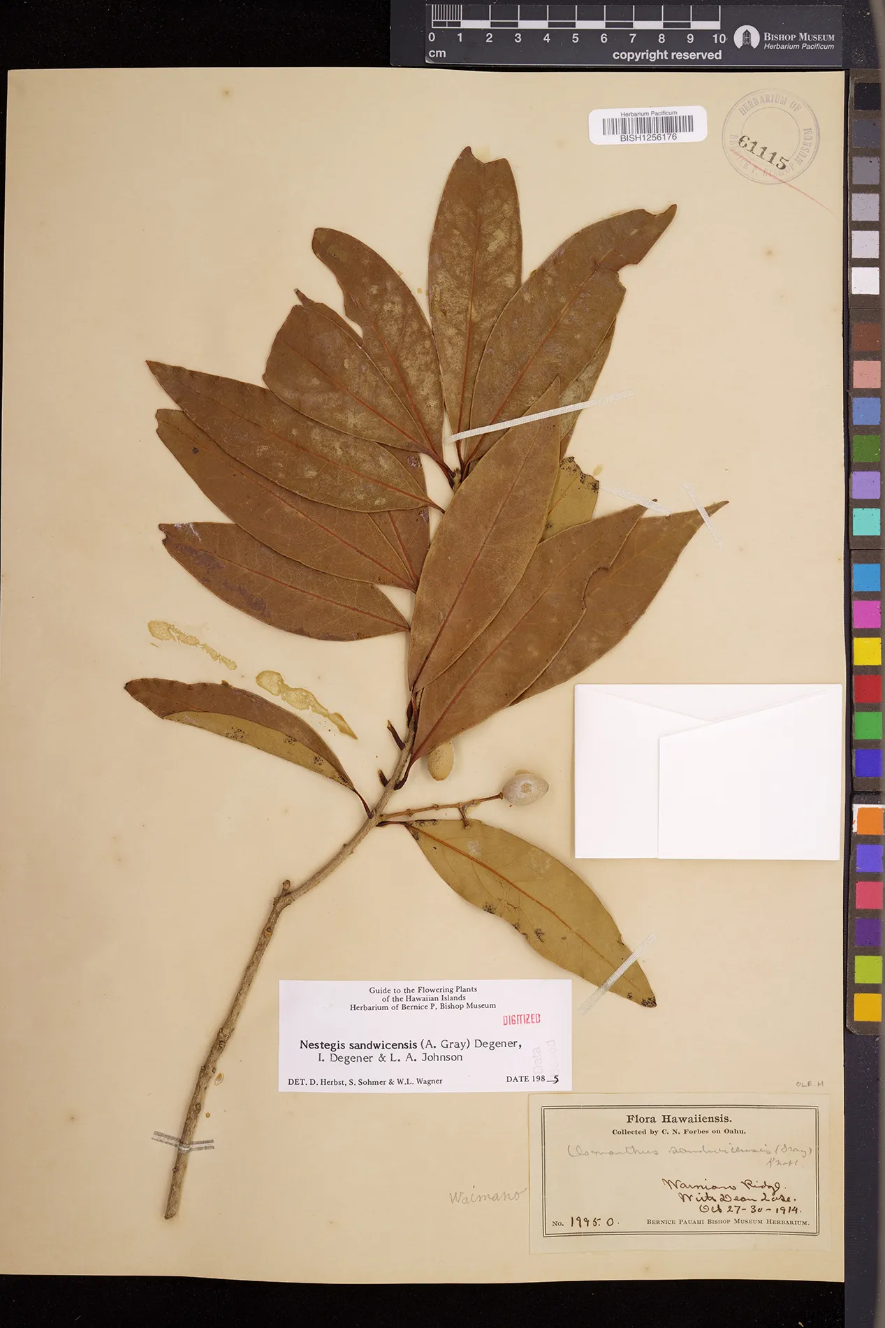 Wagner et al. 1990:992 (K, O, Mo, L, M, H [as Nestegis sandwicensis]); Dupin et al. 2022:16 (COMBNOV, Syn. Nestegis sandwicensis = Notelaea sandwicensis)