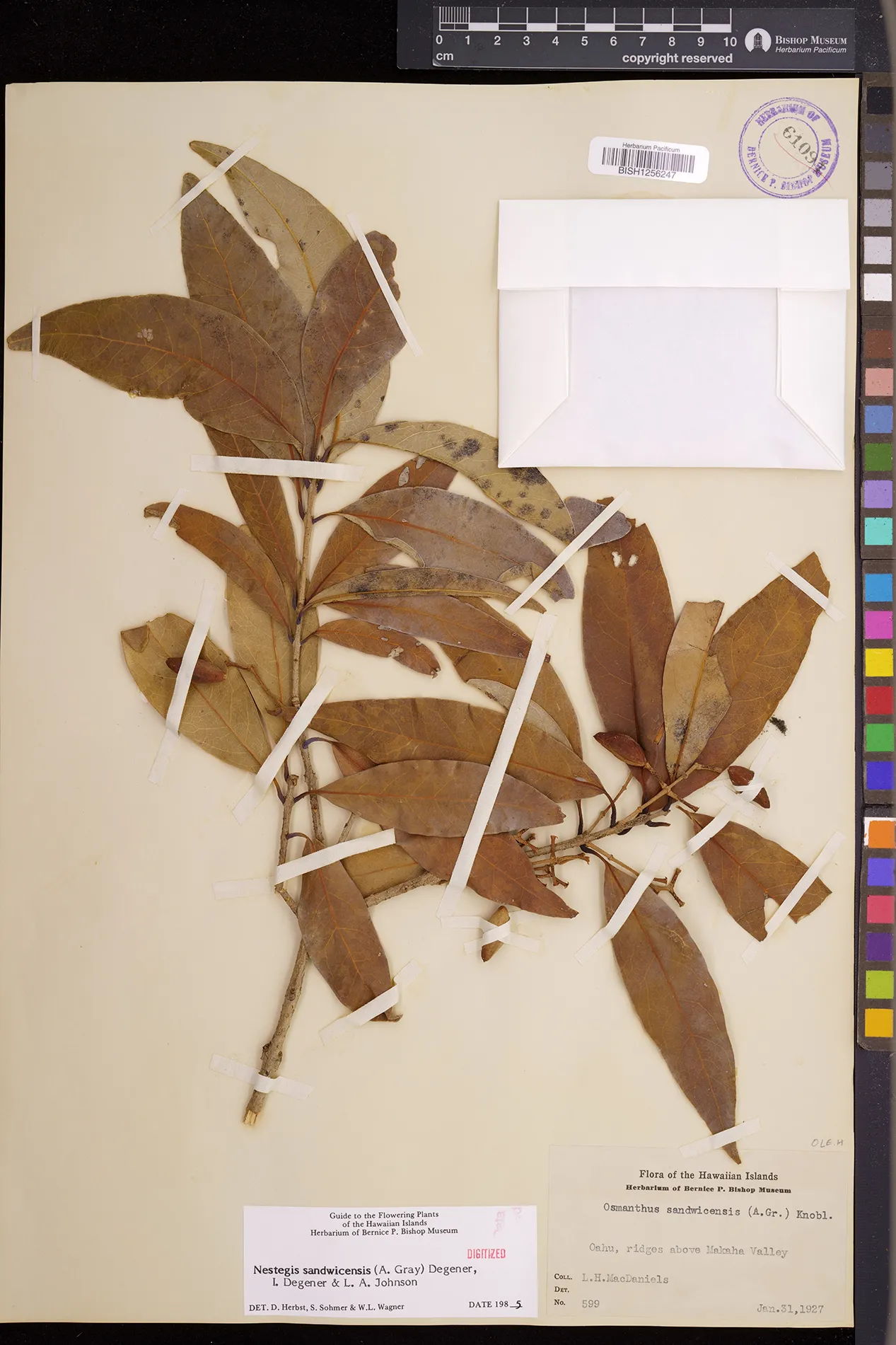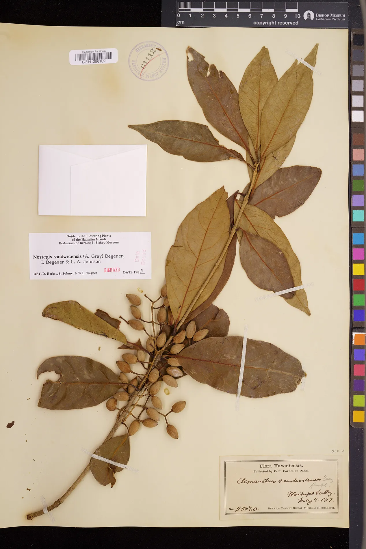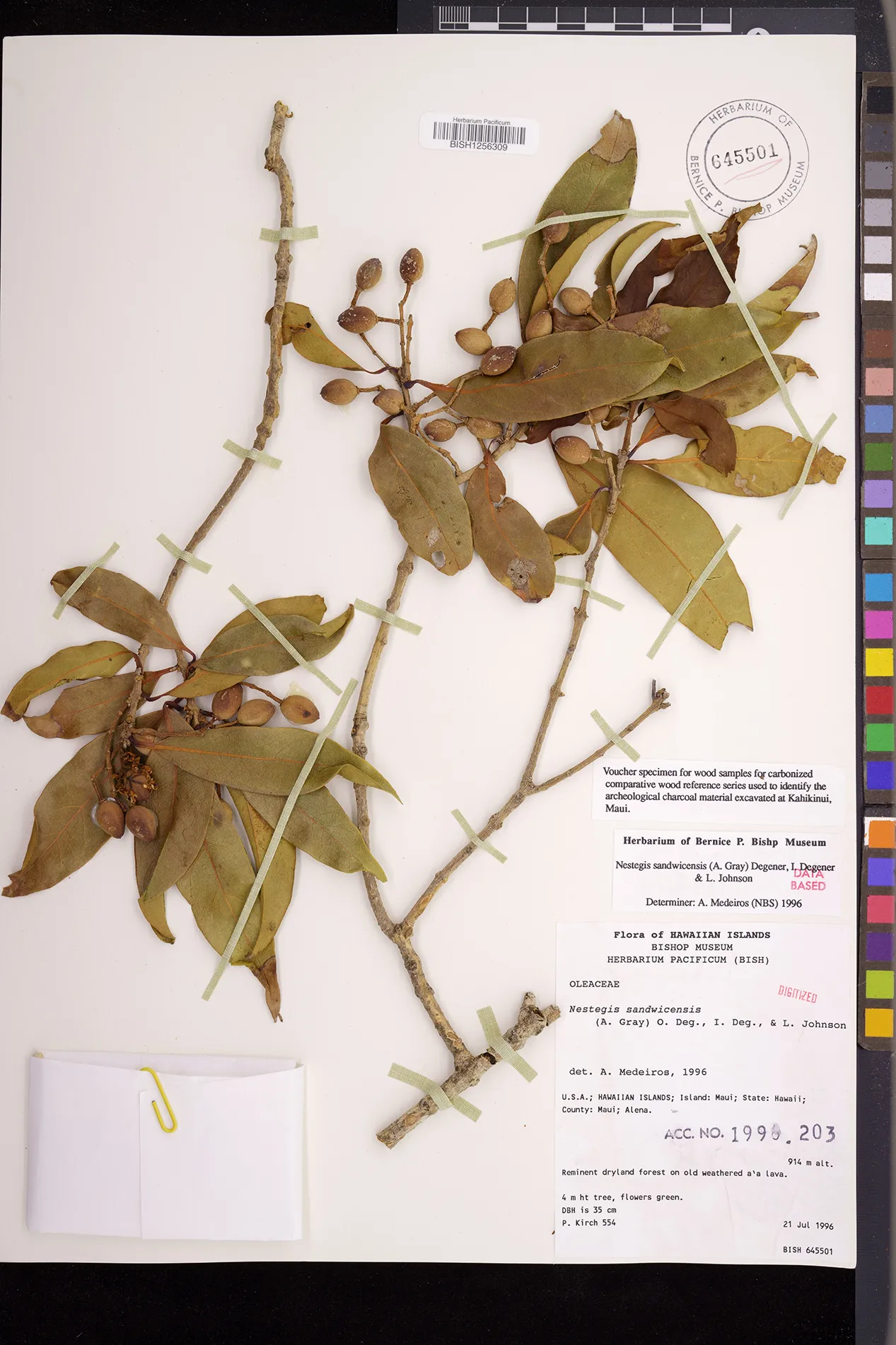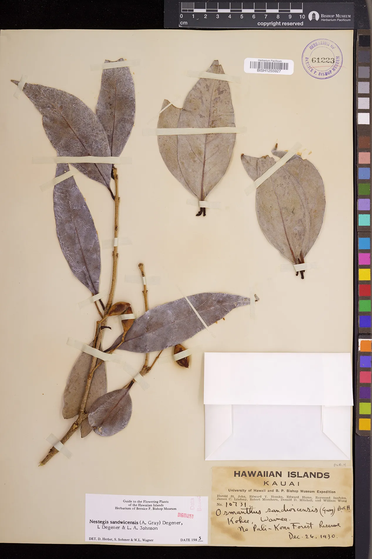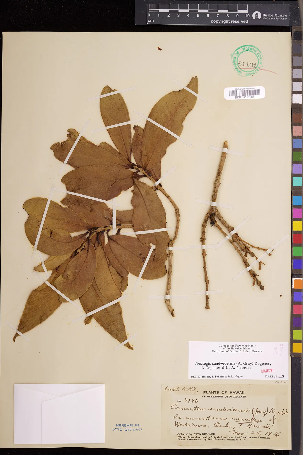 Wagner et al. 1990:992 (K, O, Mo, L, M, H [as Nestegis sandwicensis]); Dupin et al. 2022:16 (COMBNOV, Syn. Nestegis sandwicensis = Notelaea sandwicensis)