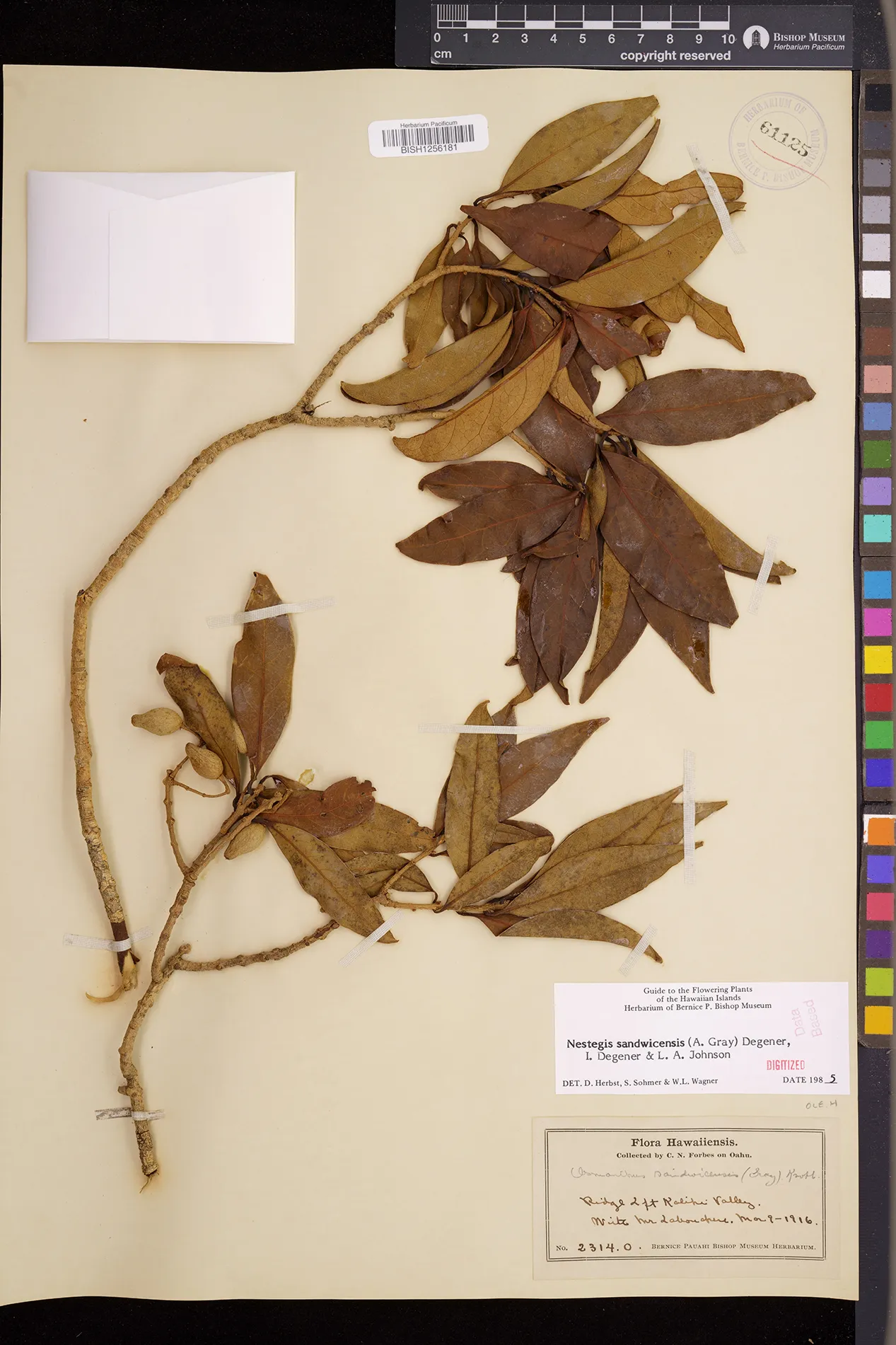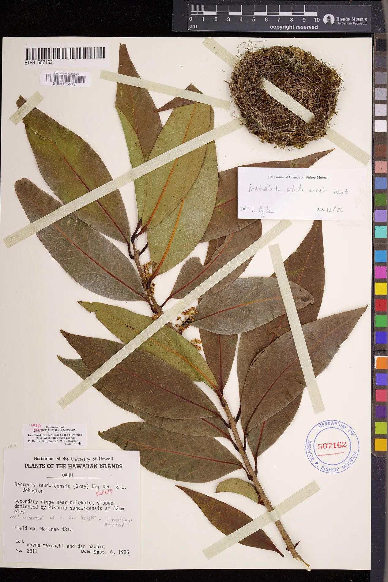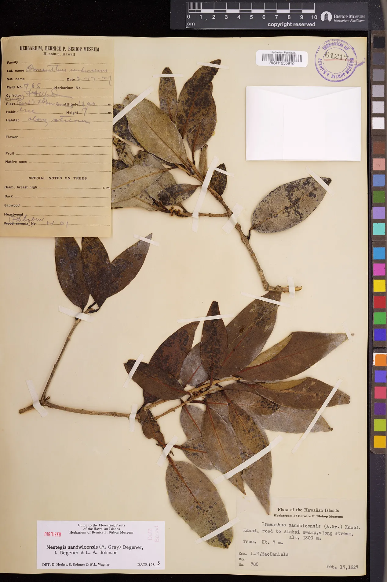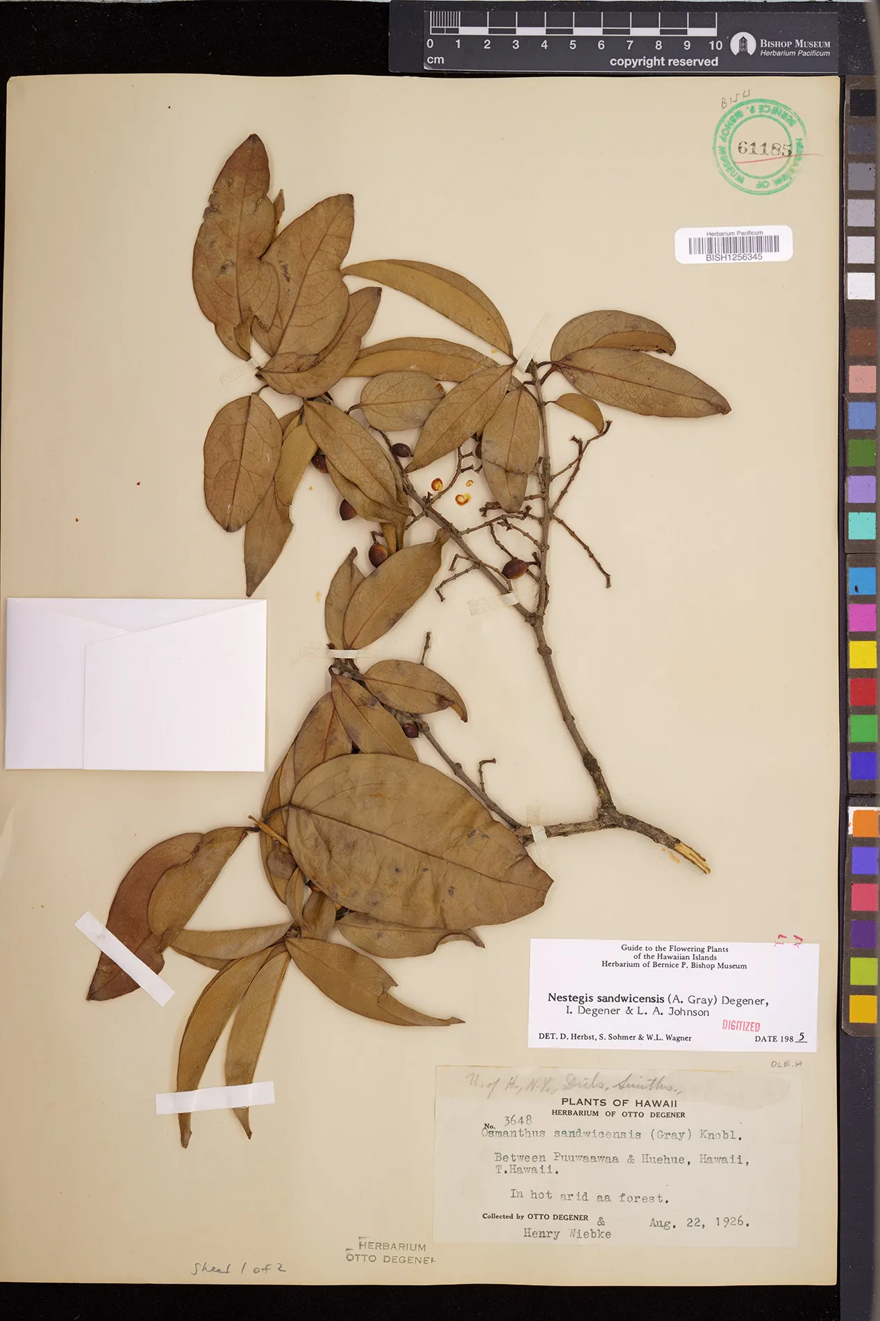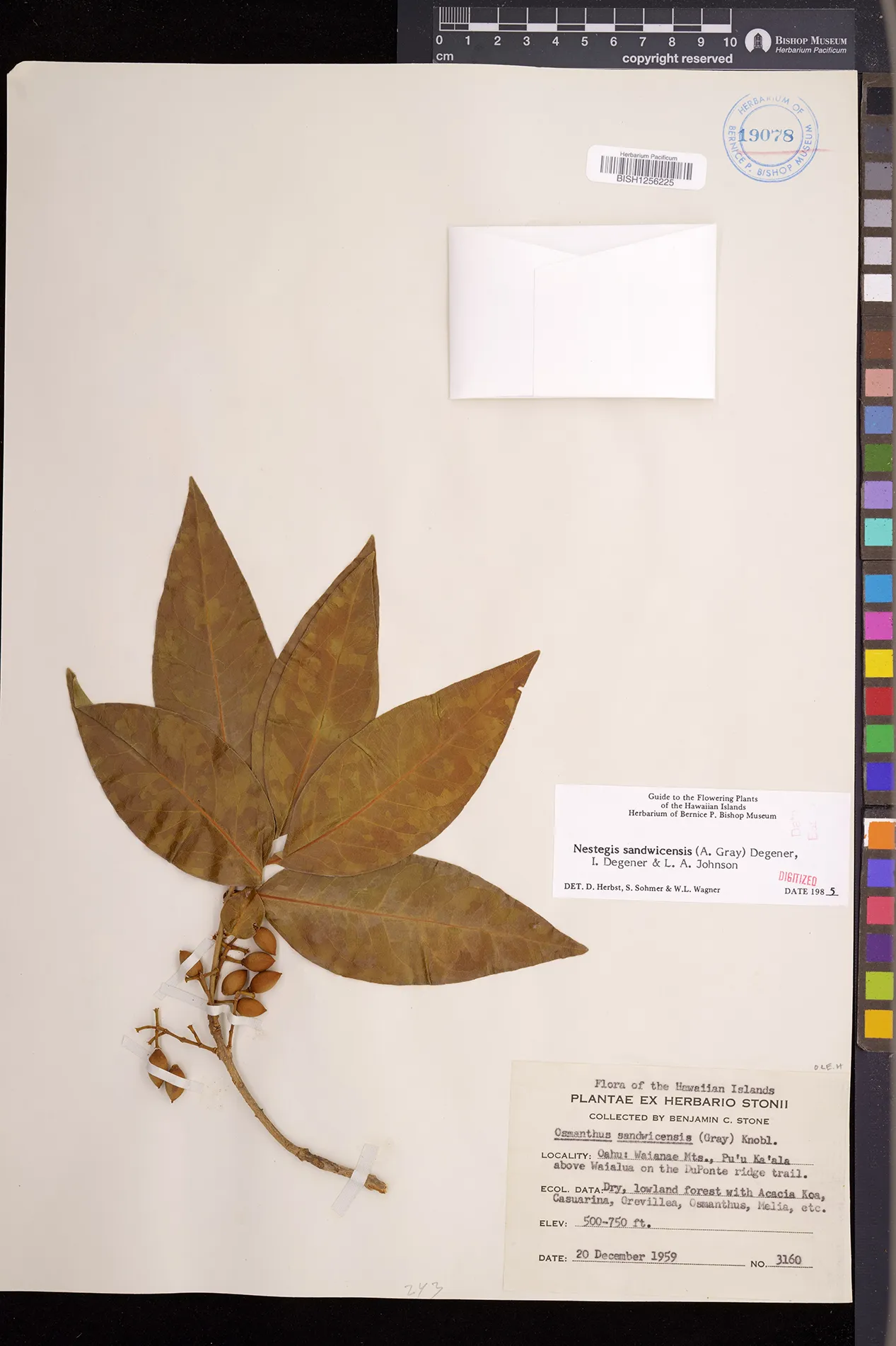 Wagner et al. 1990:992 (K, O, Mo, L, M, H [as Nestegis sandwicensis]); Dupin et al. 2022:16 (COMBNOV, Syn. Nestegis sandwicensis = Notelaea sandwicensis)