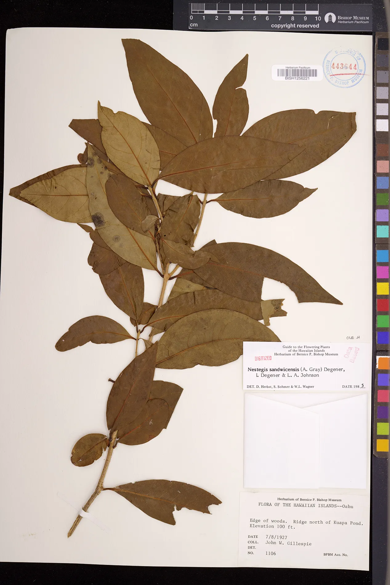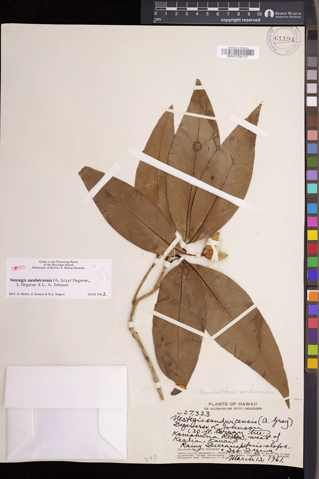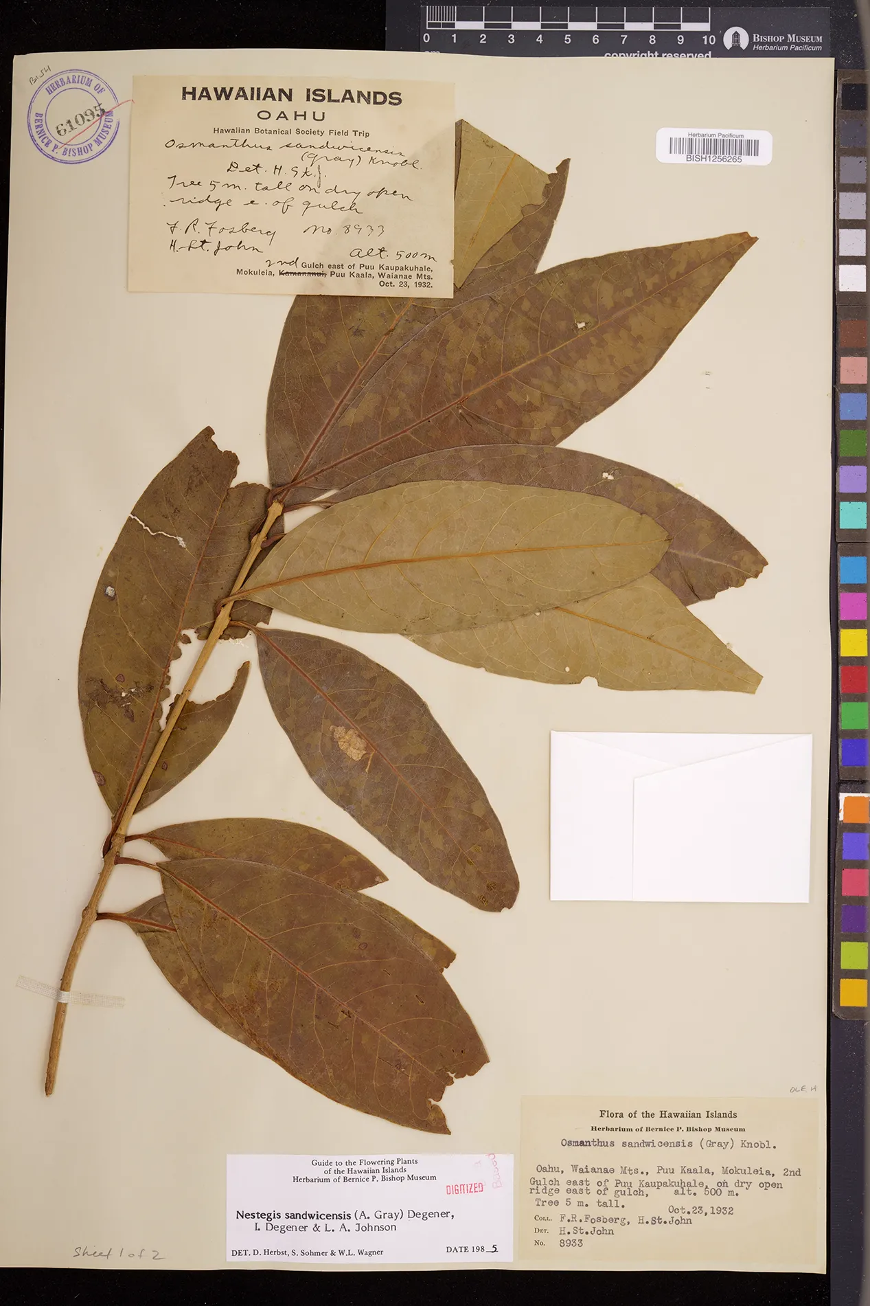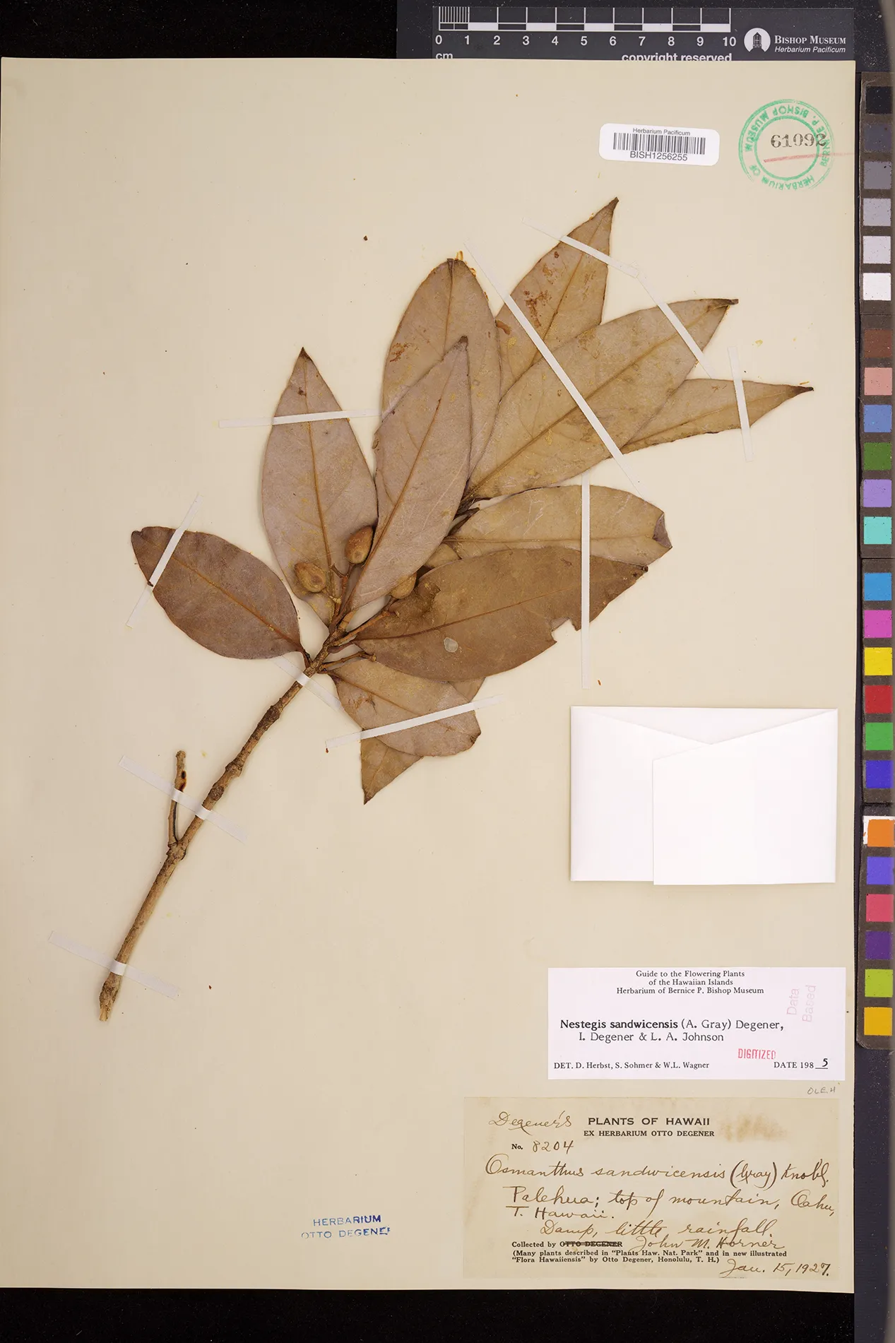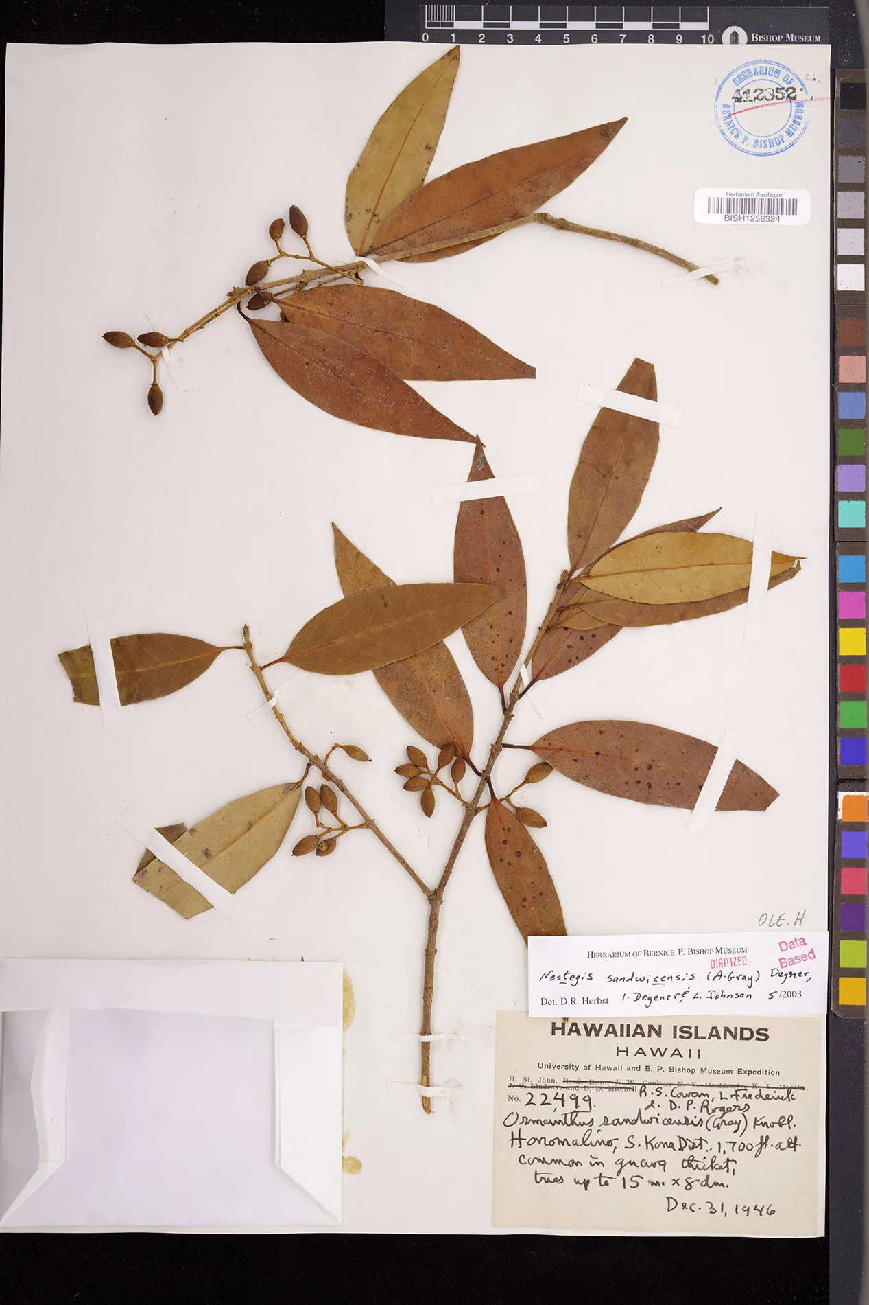 Wagner et al. 1990:992 (K, O, Mo, L, M, H [as Nestegis sandwicensis]); Dupin et al. 2022:16 (COMBNOV, Syn. Nestegis sandwicensis = Notelaea sandwicensis)