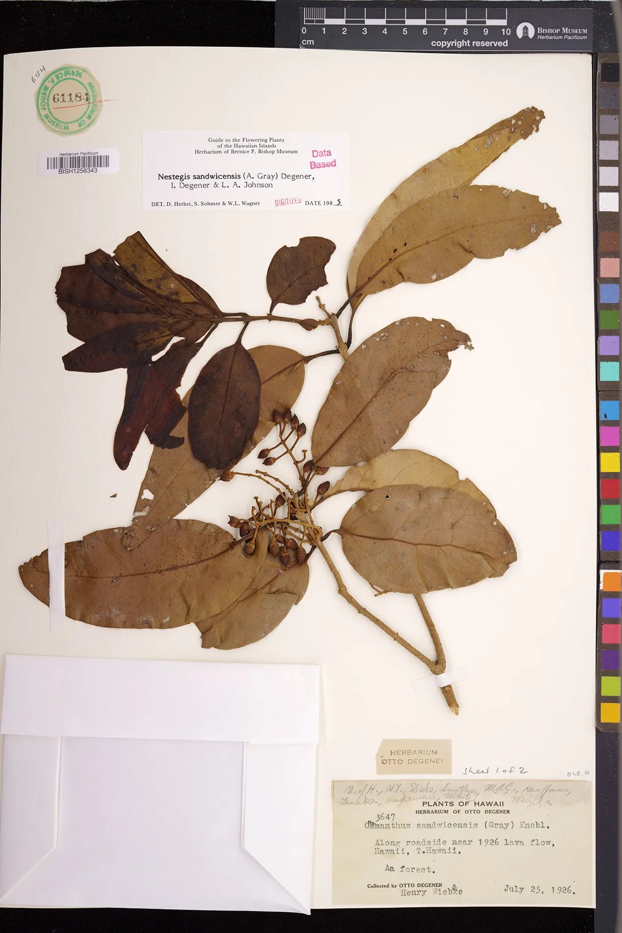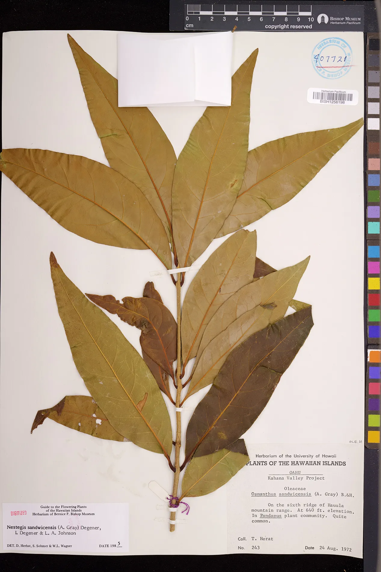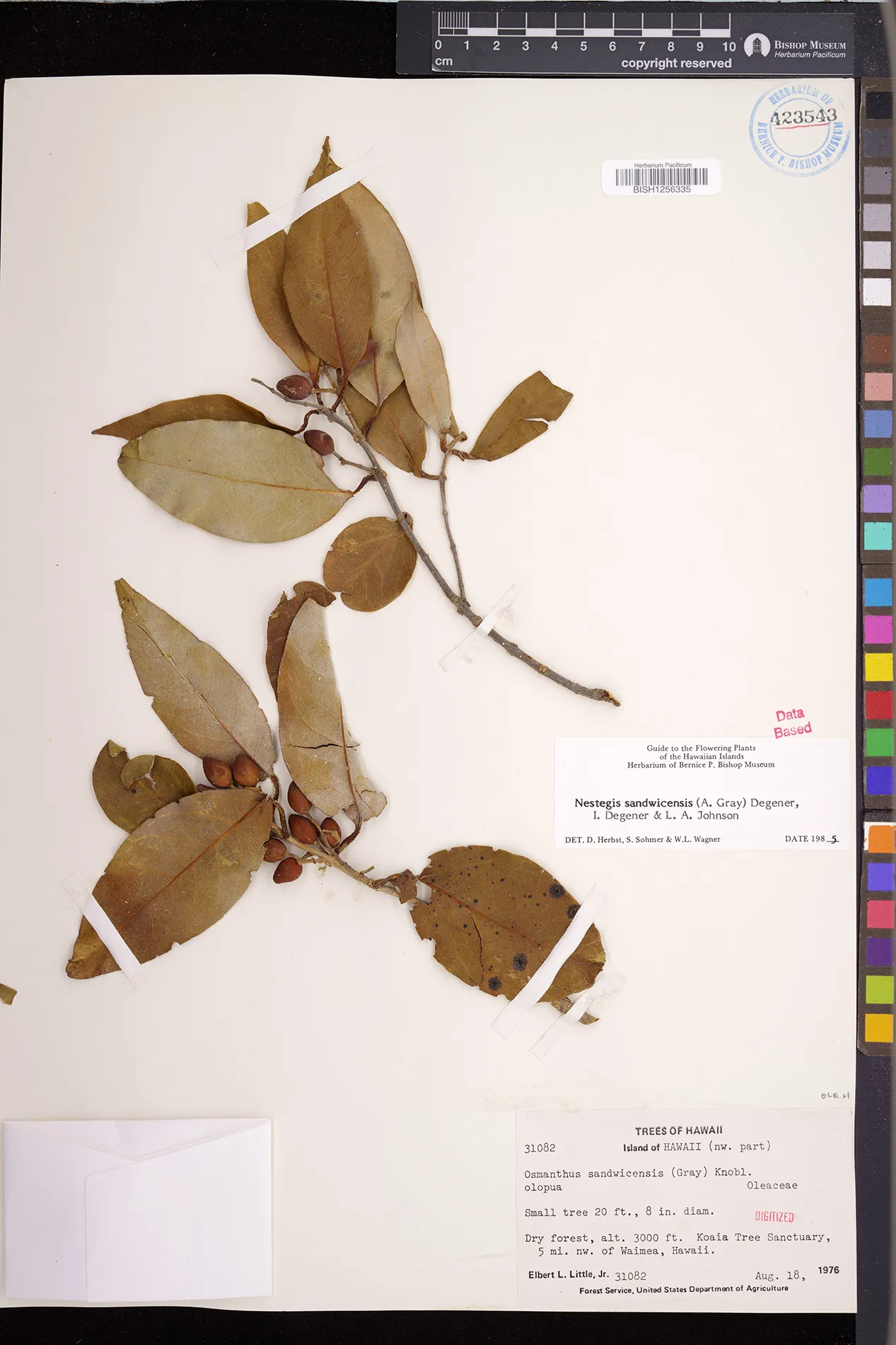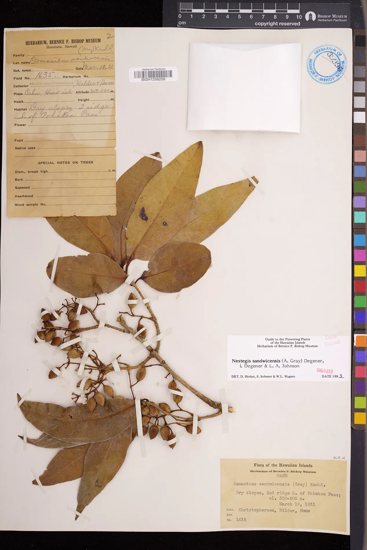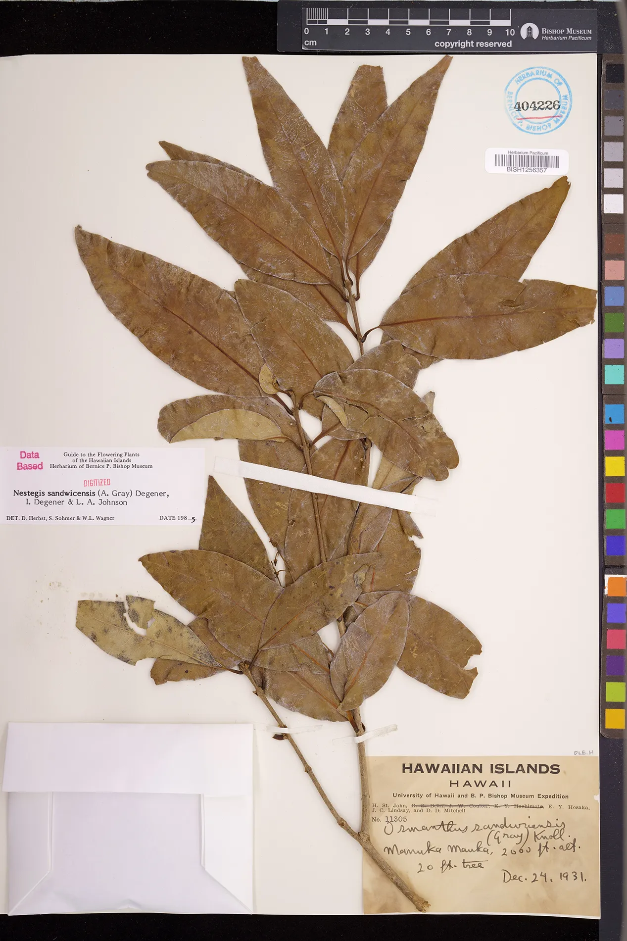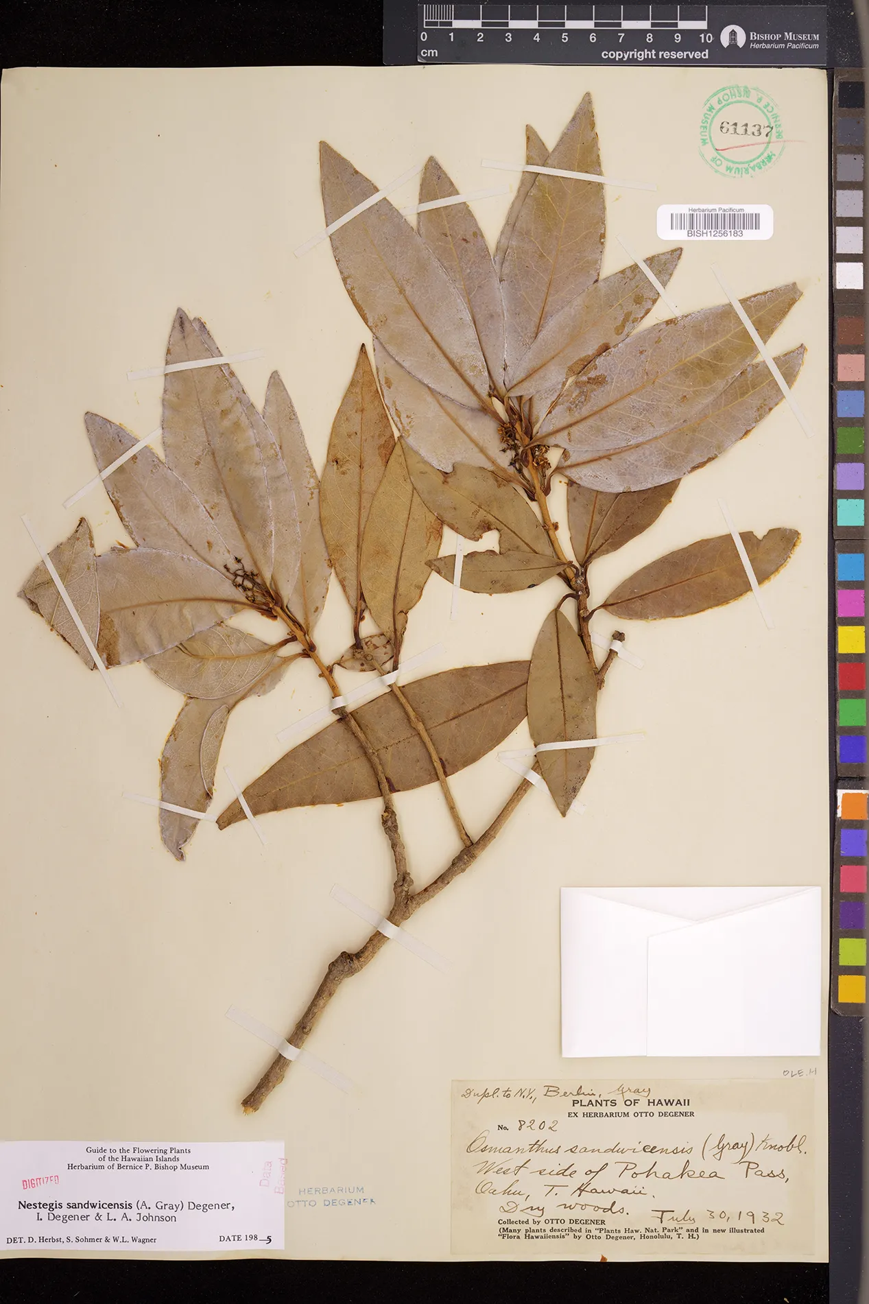 Wagner et al. 1990:992 (K, O, Mo, L, M, H [as Nestegis sandwicensis]); Dupin et al. 2022:16 (COMBNOV, Syn. Nestegis sandwicensis = Notelaea sandwicensis)