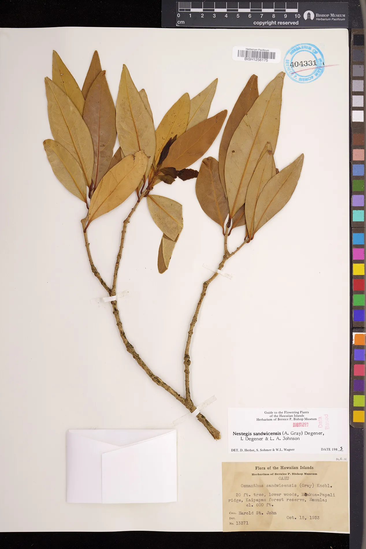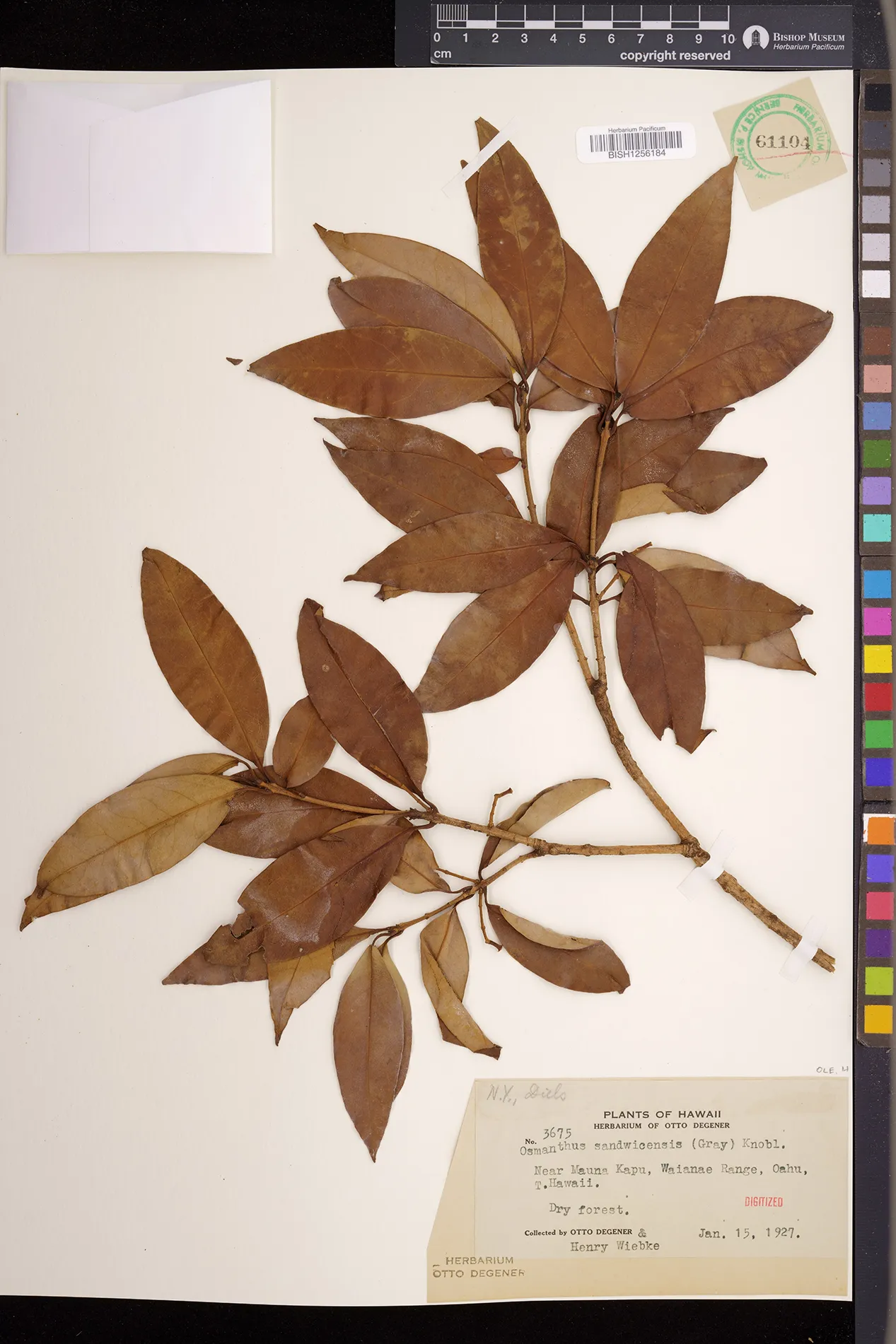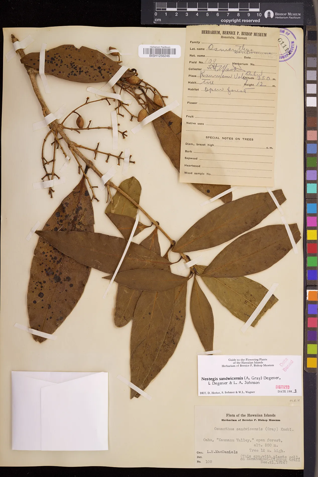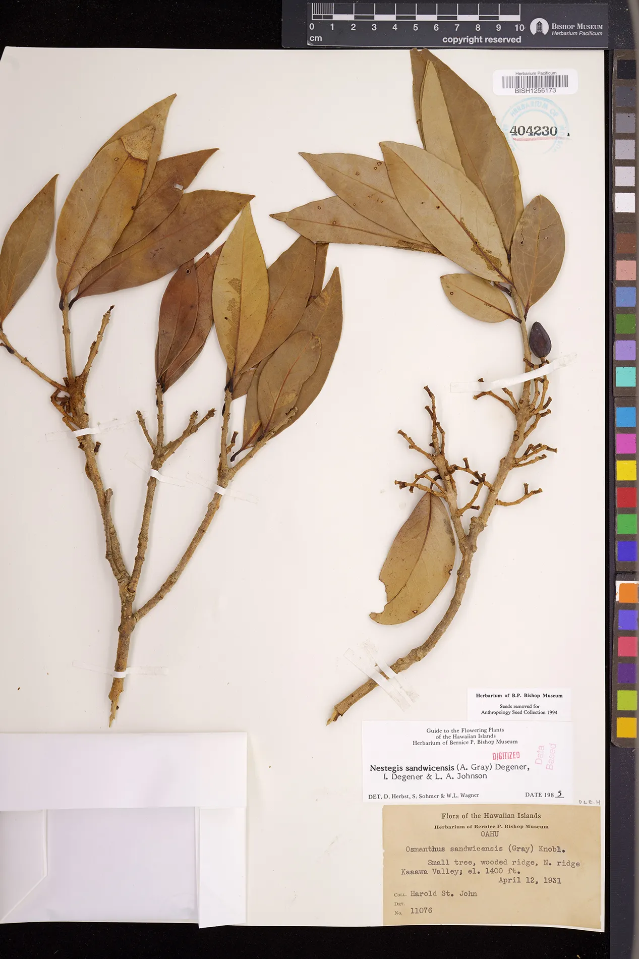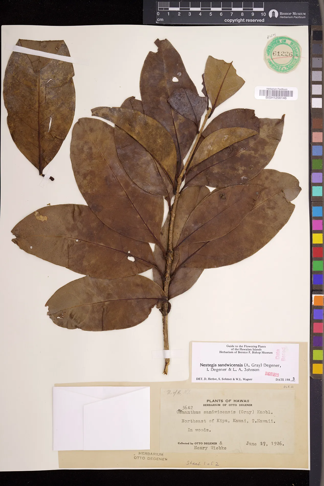 Wagner et al. 1990:992 (K, O, Mo, L, M, H [as Nestegis sandwicensis]); Dupin et al. 2022:16 (COMBNOV, Syn. Nestegis sandwicensis = Notelaea sandwicensis)