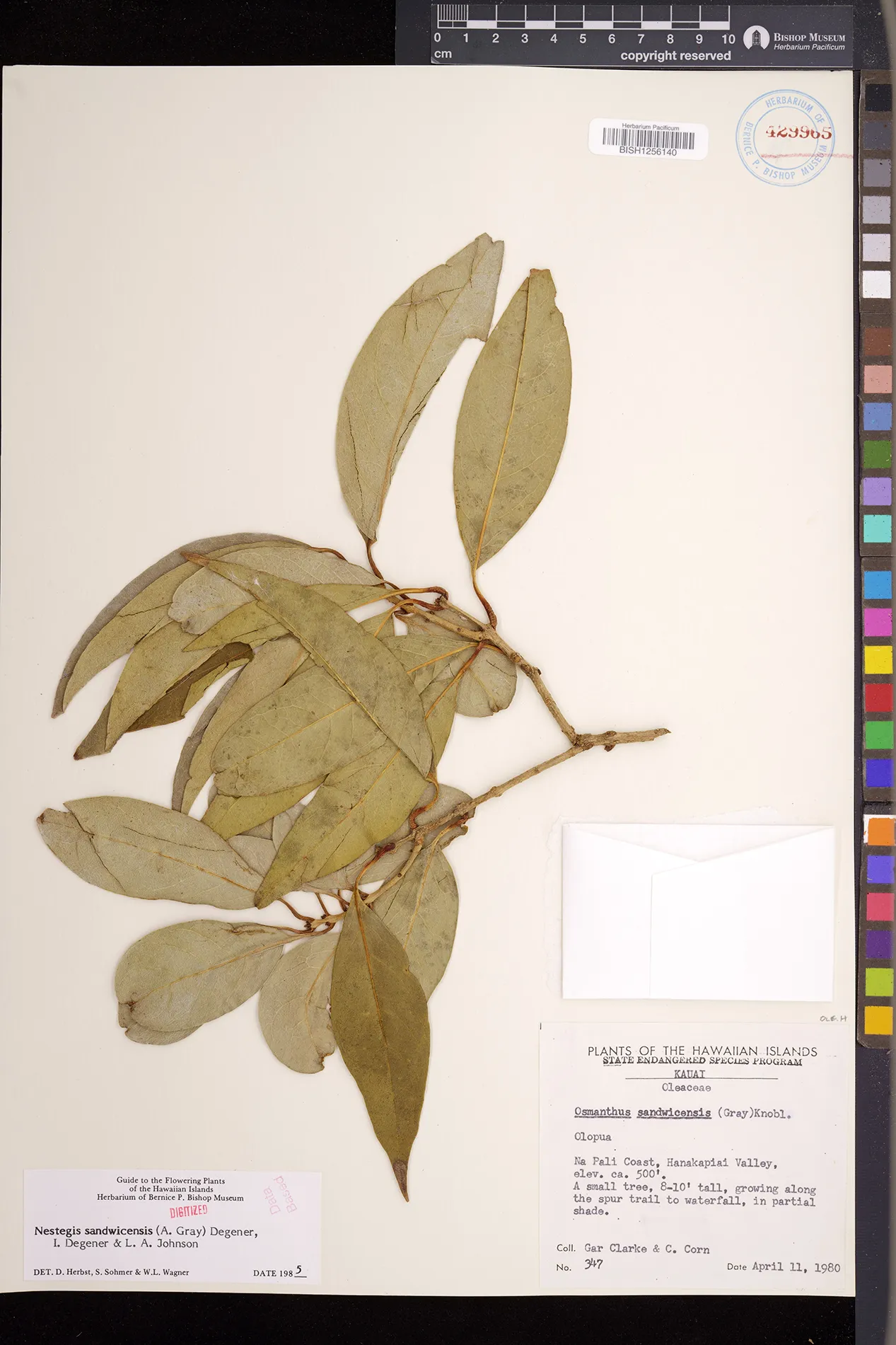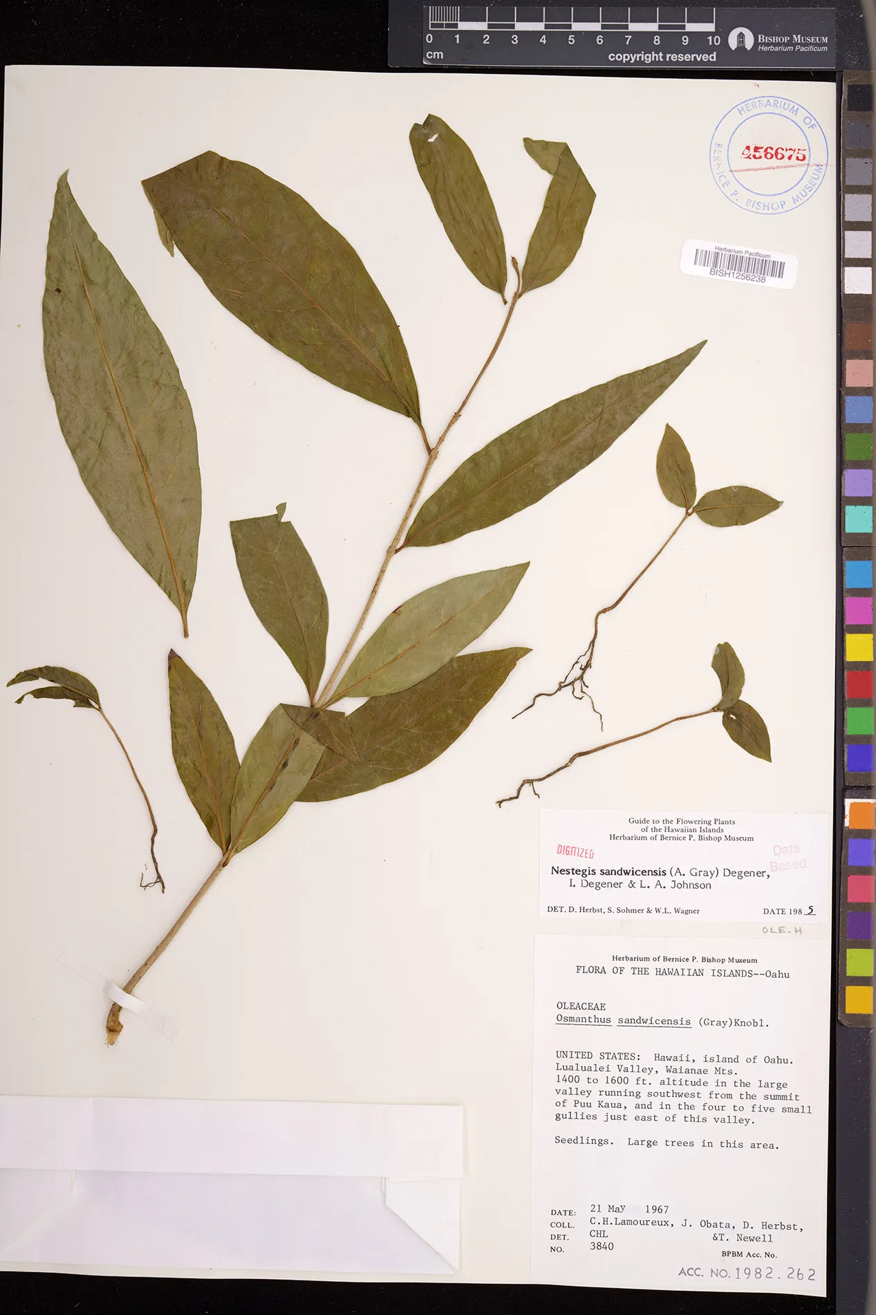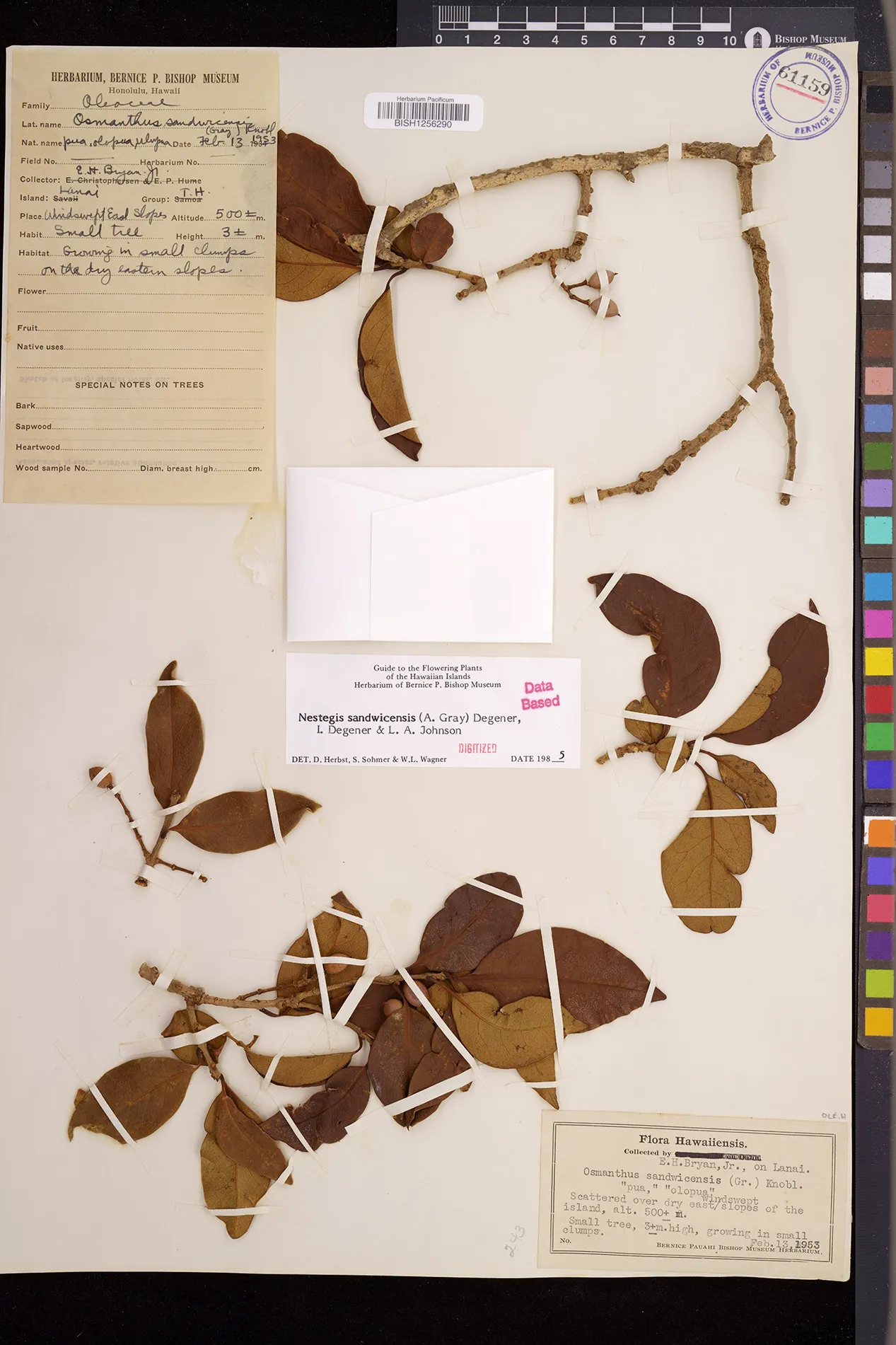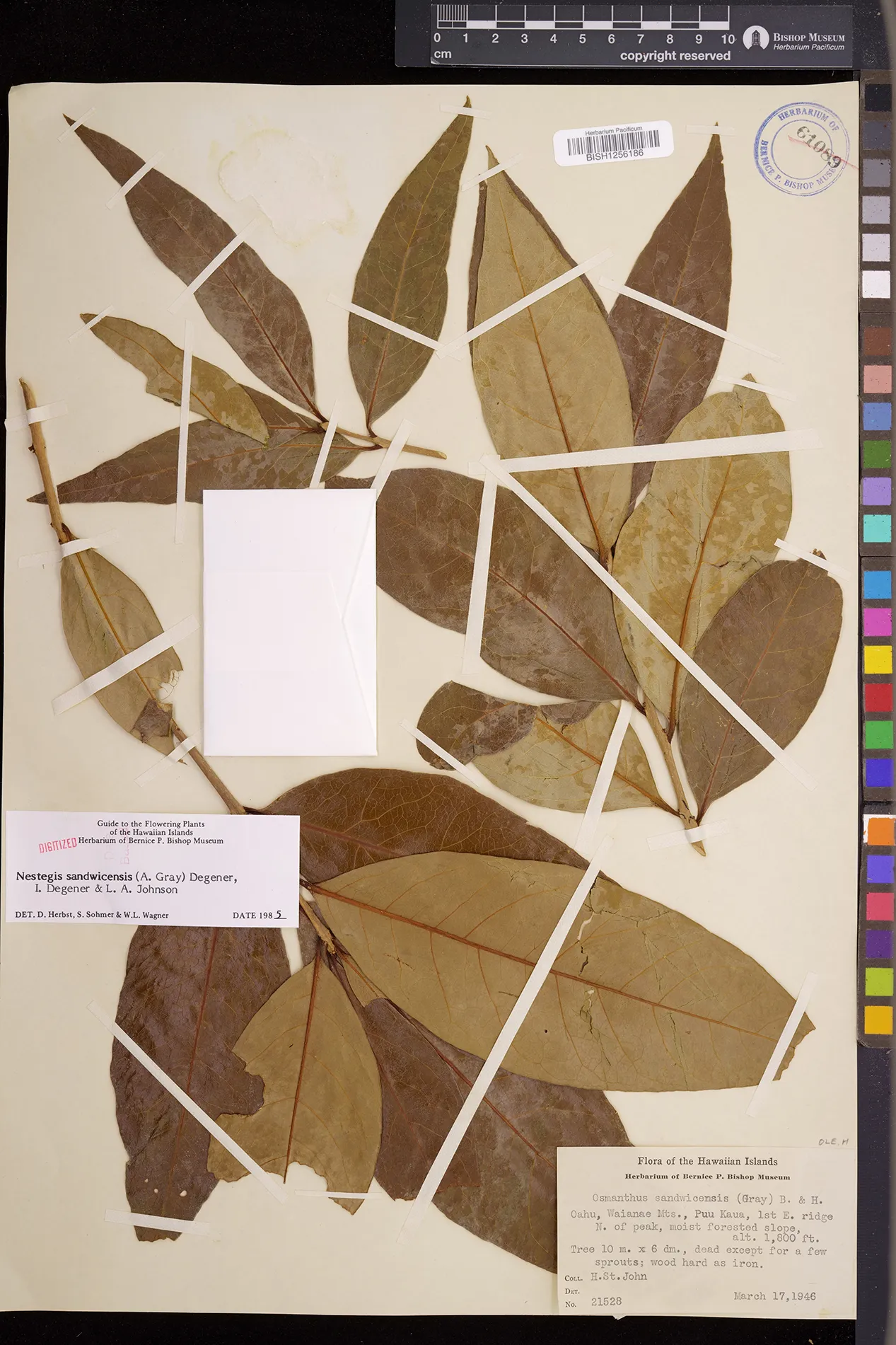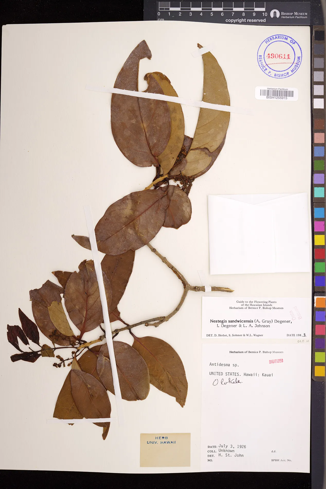 Wagner et al. 1990:992 (K, O, Mo, L, M, H [as Nestegis sandwicensis]); Dupin et al. 2022:16 (COMBNOV, Syn. Nestegis sandwicensis = Notelaea sandwicensis)