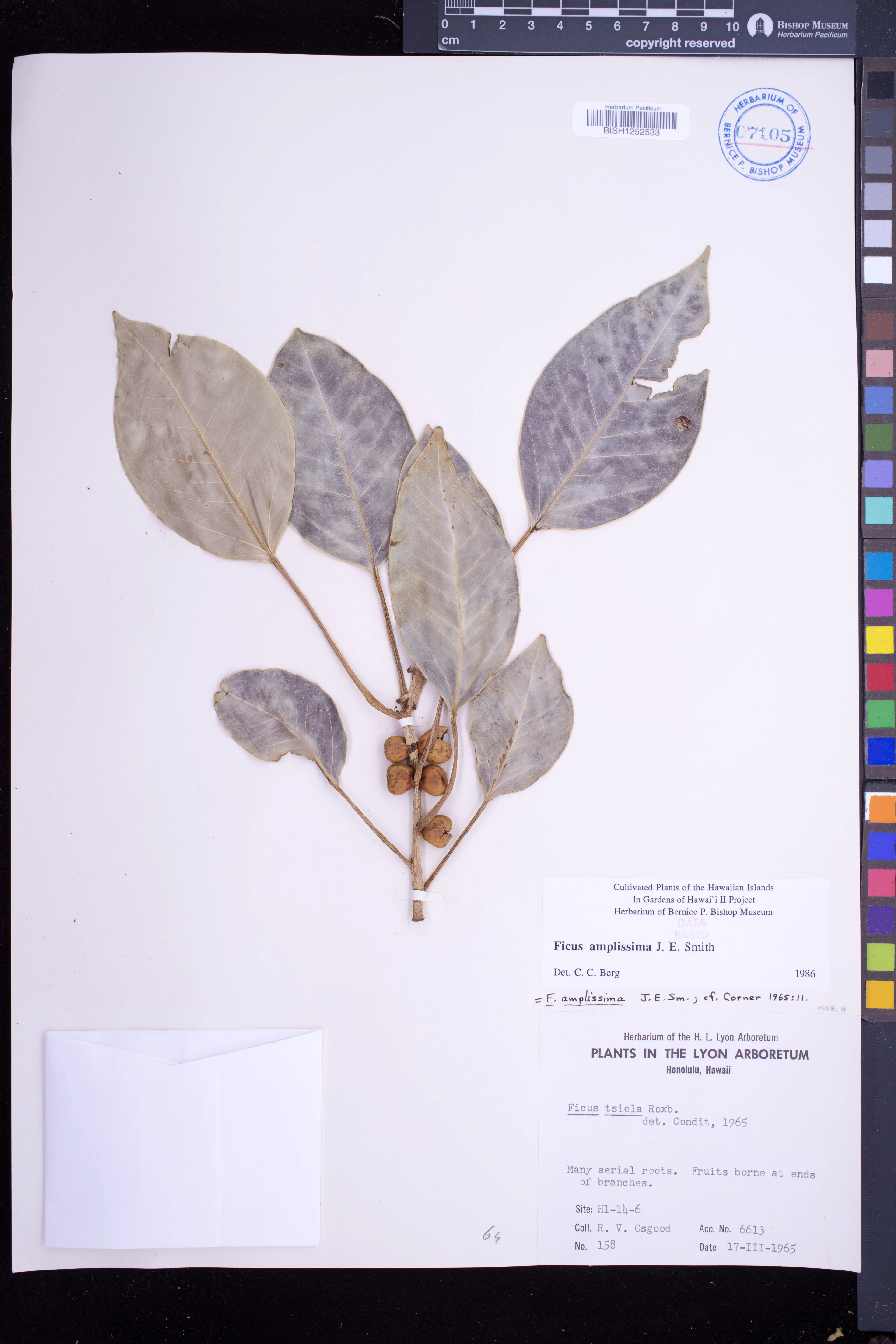 | 8 | Ficus amplissima | Sm. | Lyon Arboretum; 1-14-6 | PRESERVED_SPECIMEN | Anderson, D. | s.n. | Oahu | BISH | 4/29/1959 |