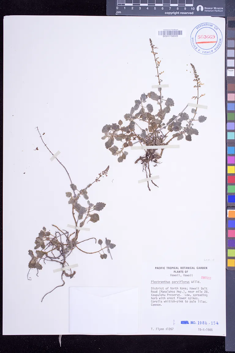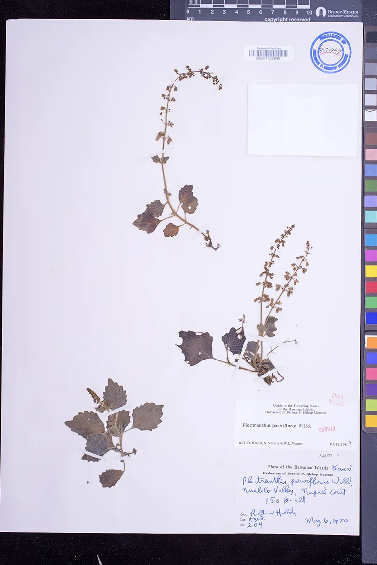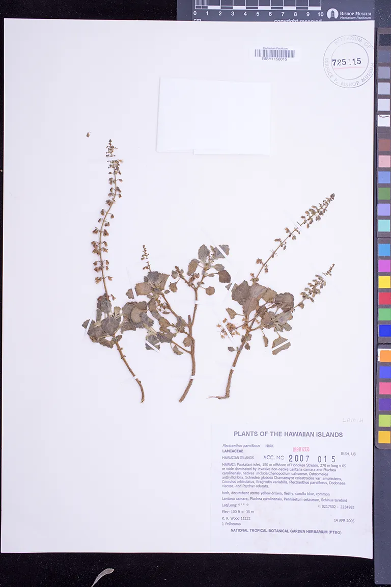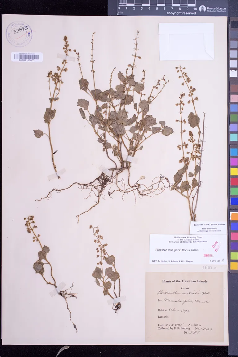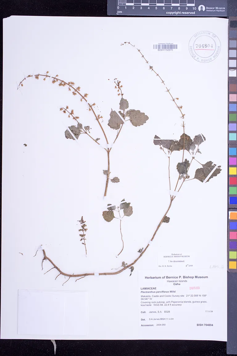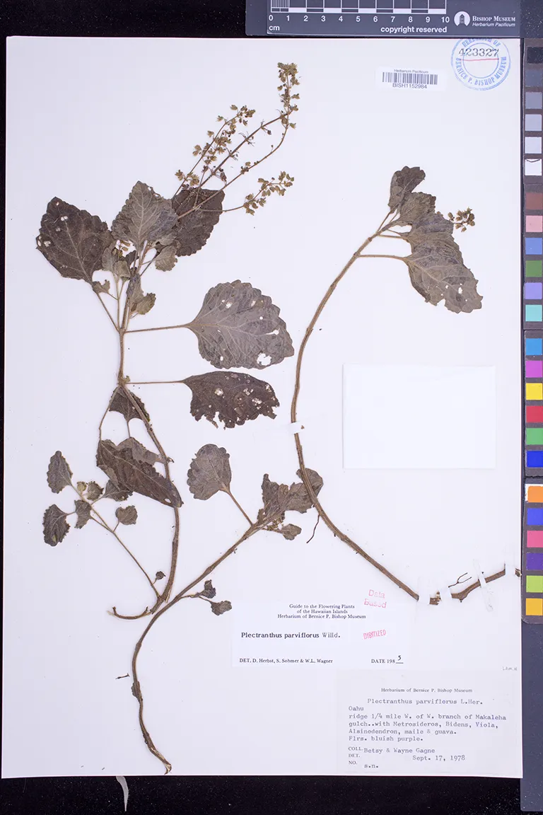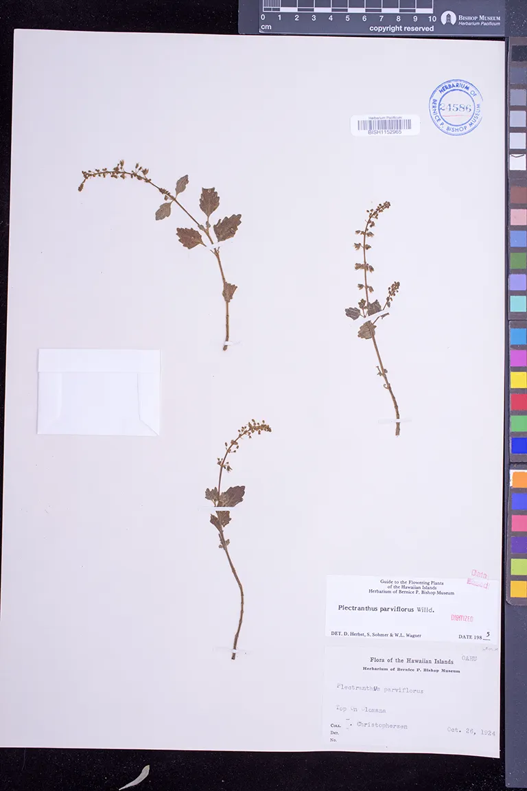 • The fruits of Plectranthus parviflorus are small brown nuts less than 1/4 inch long. To collect them, remove the flower spikes from the plants after they flowers have fallen off and place them on a piece of paper or in a paper bag.