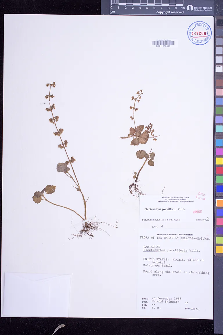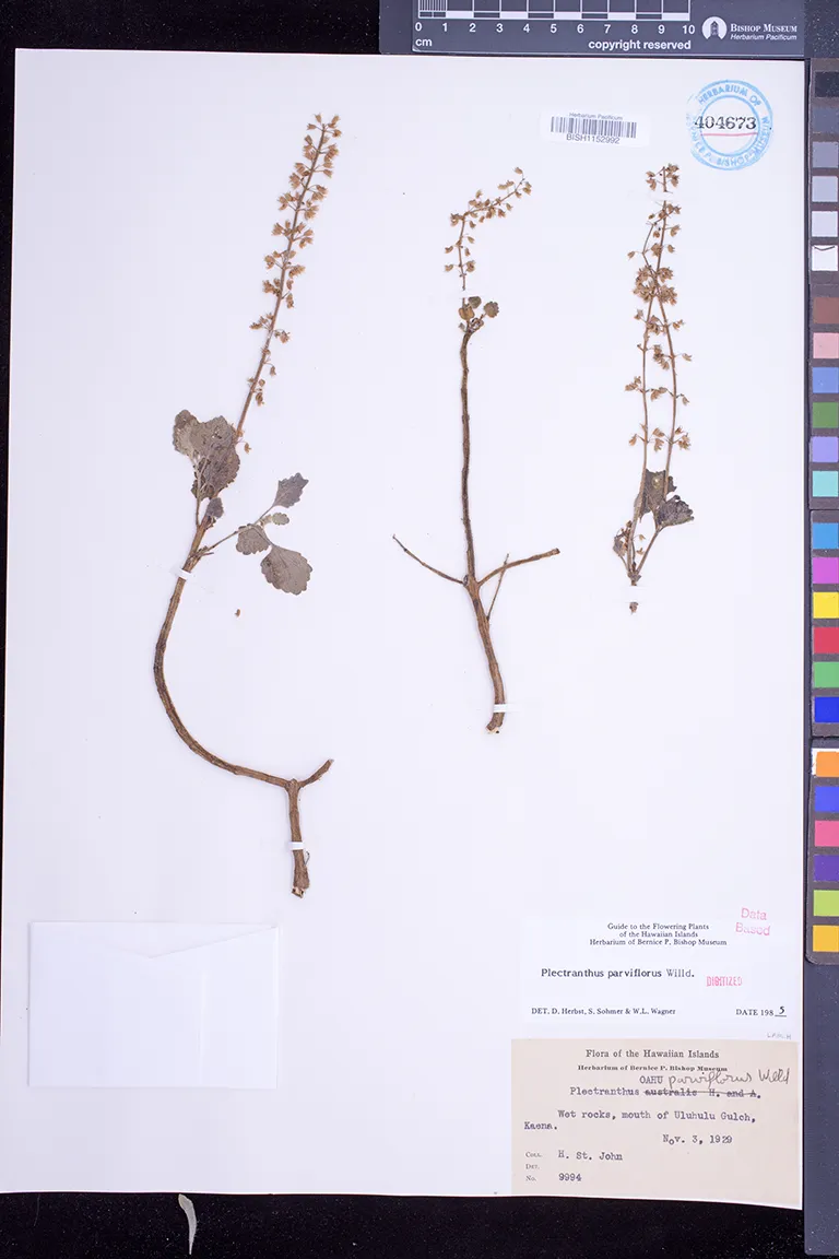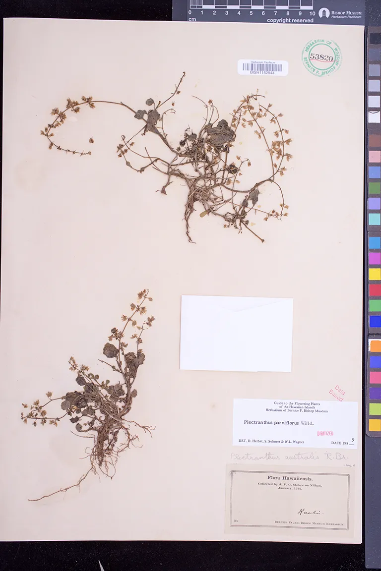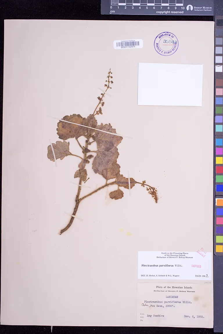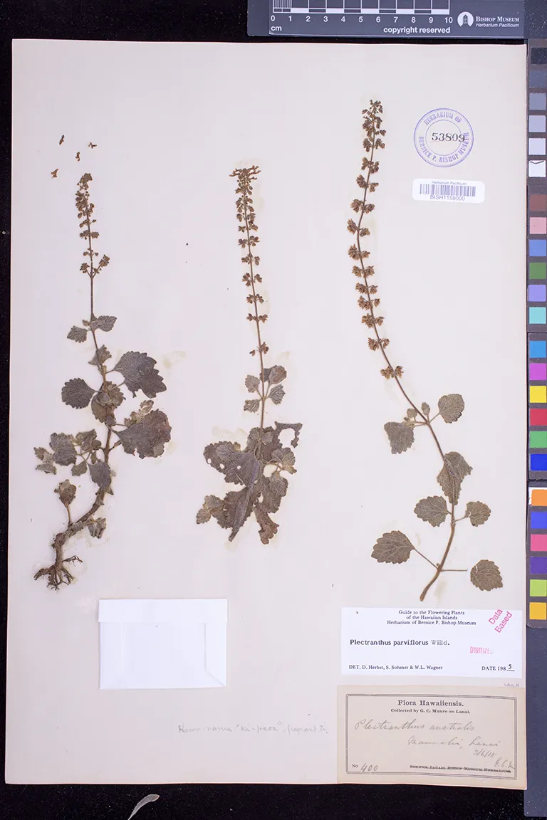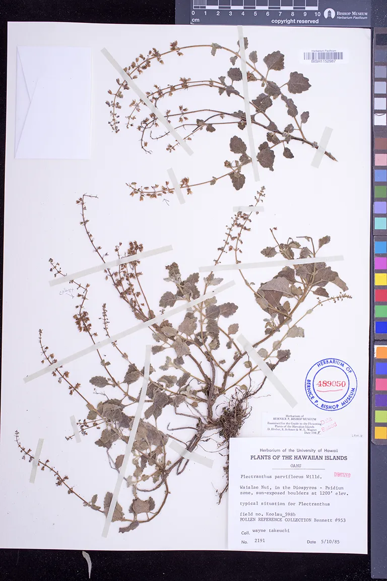 • The fruits of Plectranthus parviflorus are small brown nuts less than 1/4 inch long. To collect them, remove the flower spikes from the plants after they flowers have fallen off and place them on a piece of paper or in a paper bag.