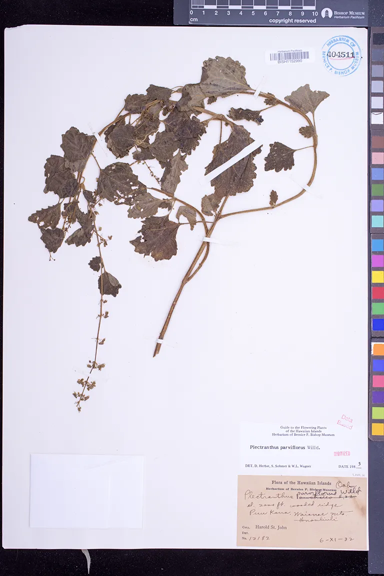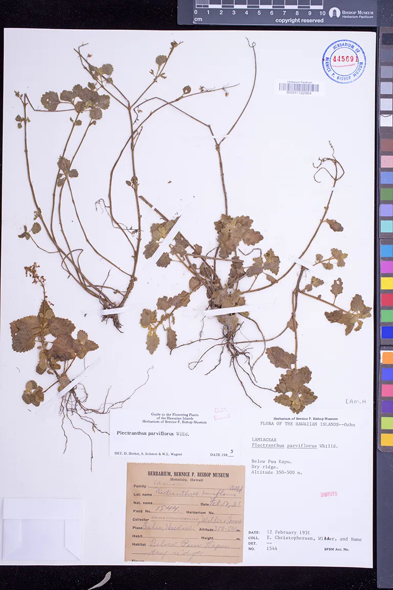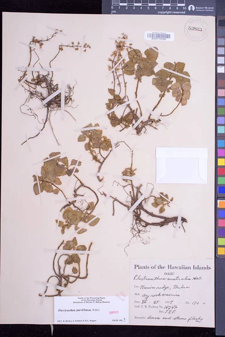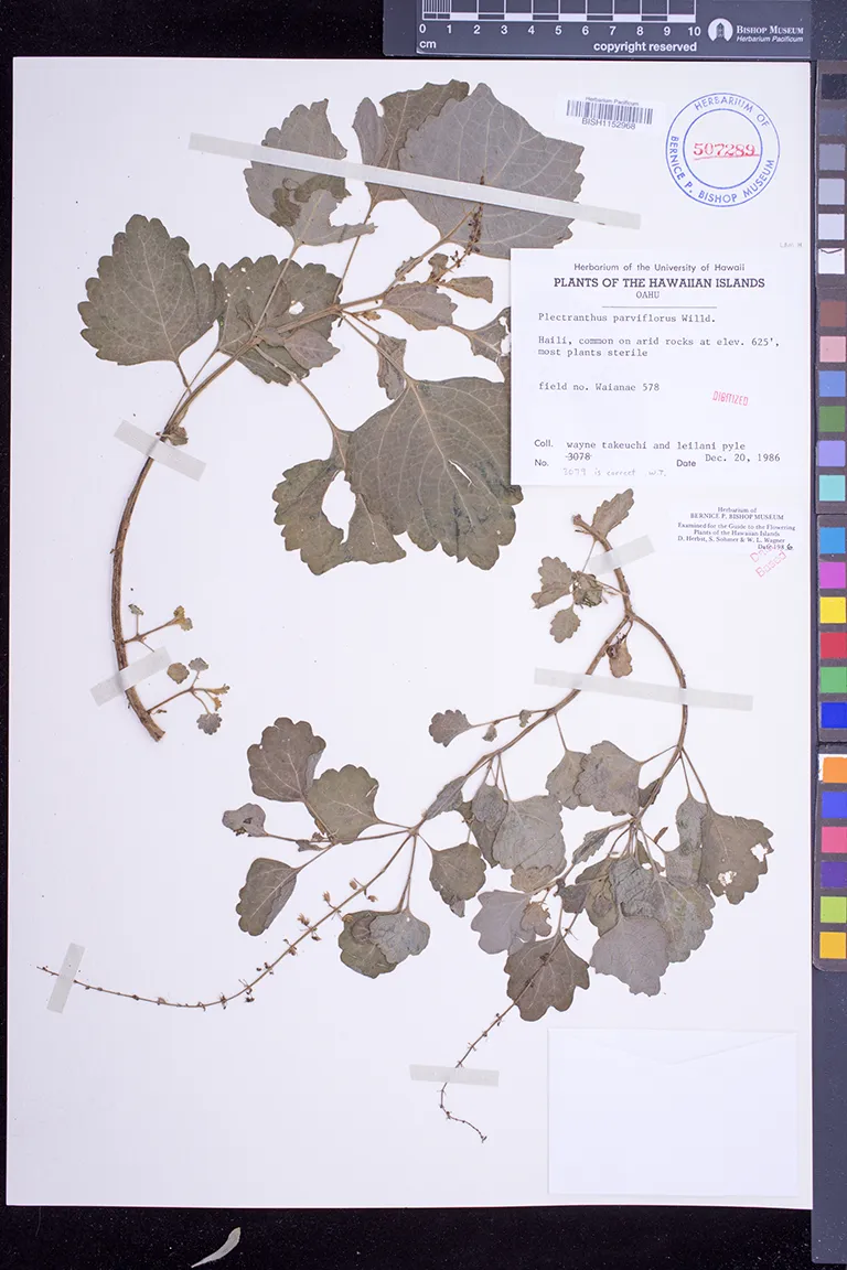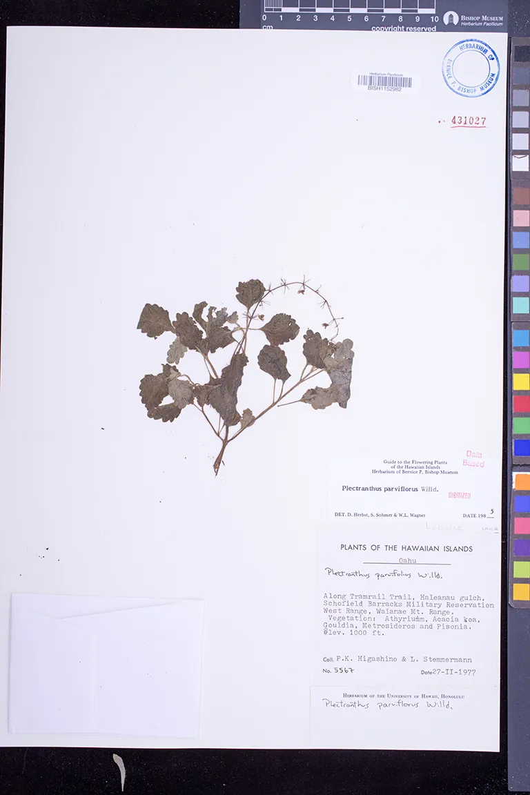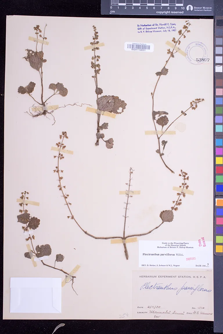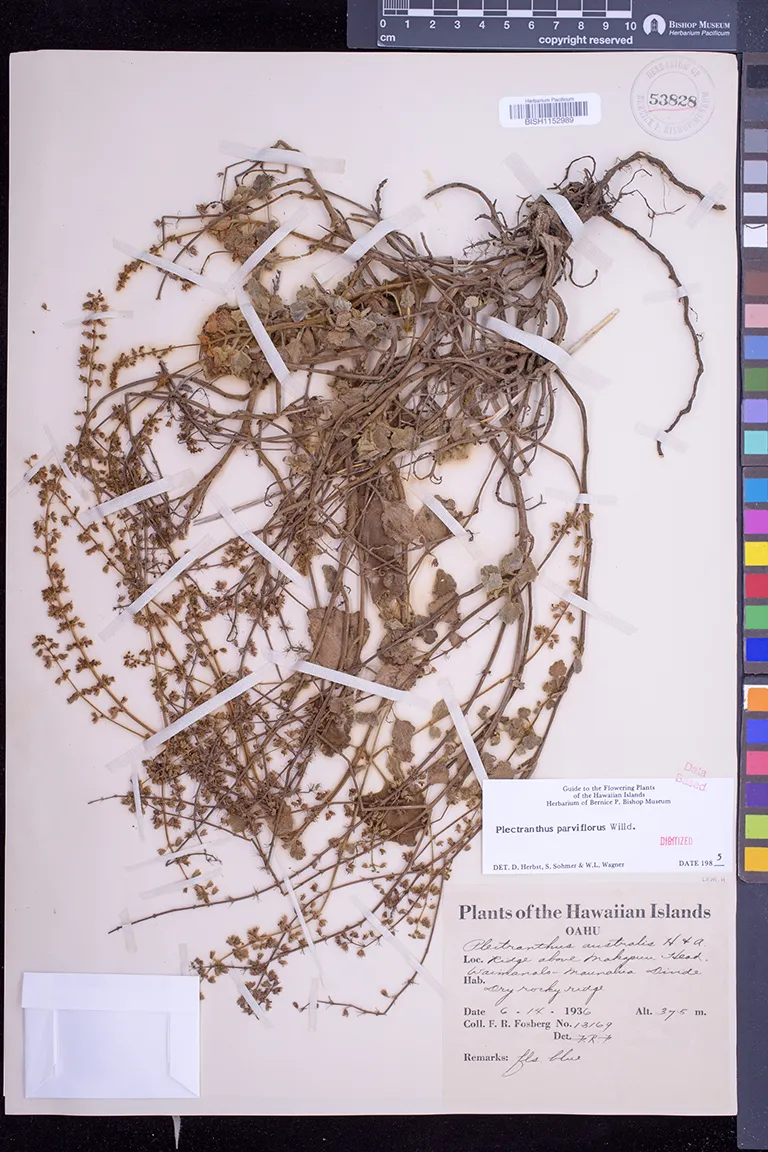 • The fruits of Plectranthus parviflorus are small brown nuts less than 1/4 inch long. To collect them, remove the flower spikes from the plants after they flowers have fallen off and place them on a piece of paper or in a paper bag.