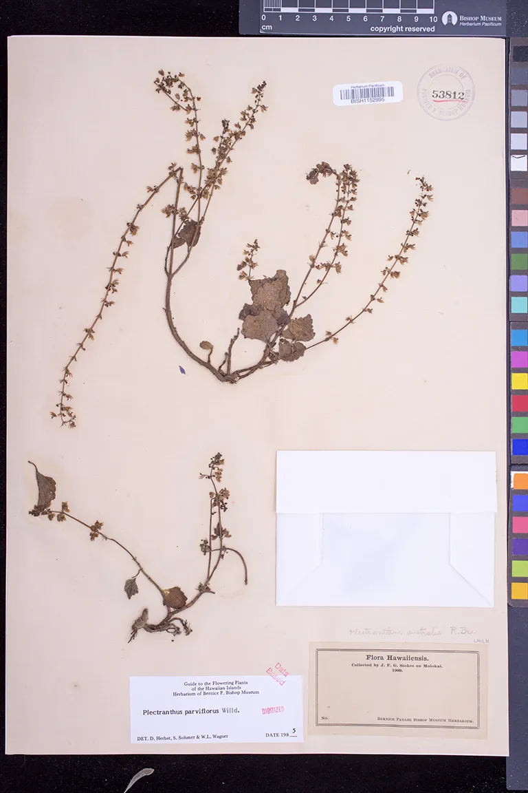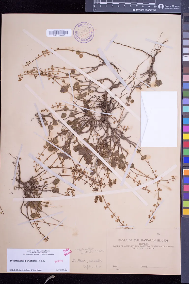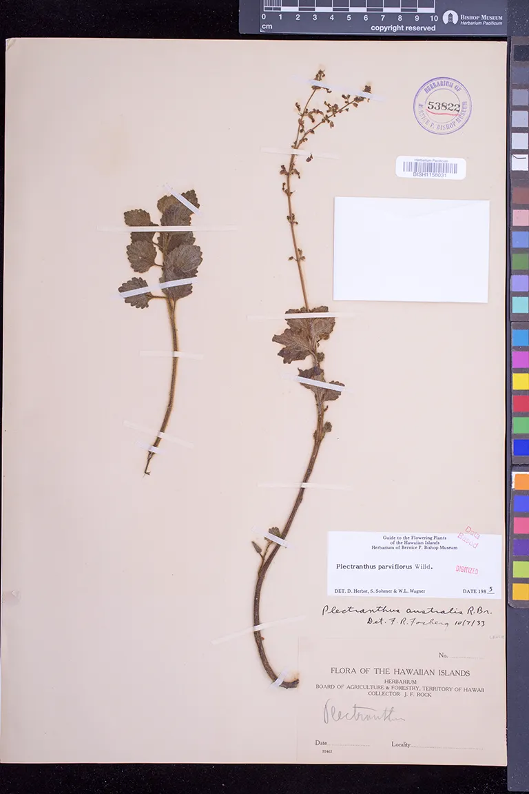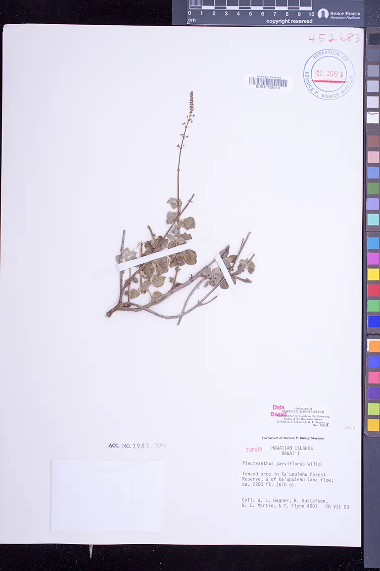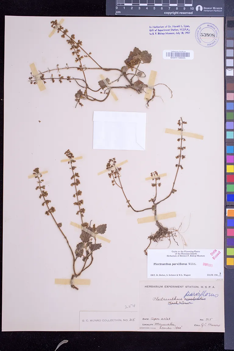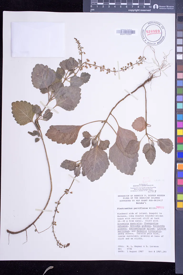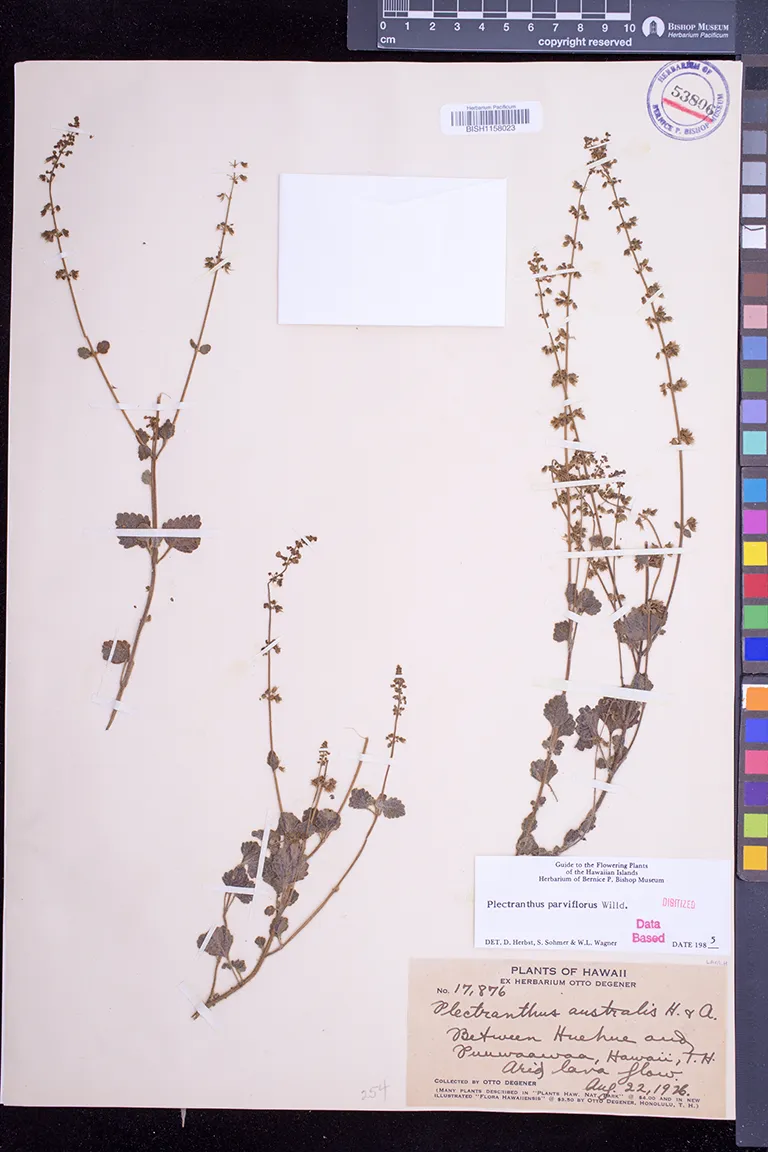Wagner et al. 1990:827 (Ni, K, O, Mo, L, M, H [as Plectranthus parviflorus]); Paton et al. 2019:21 (Syn. P. parviflorus = C. australis)