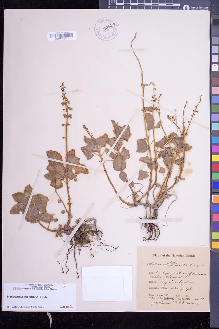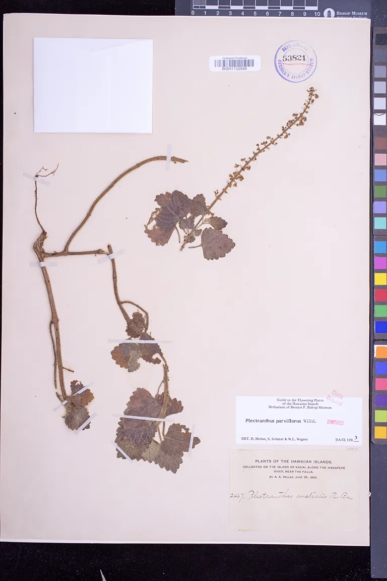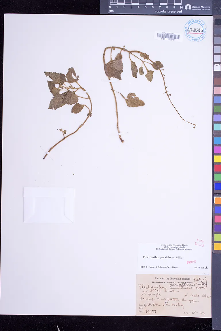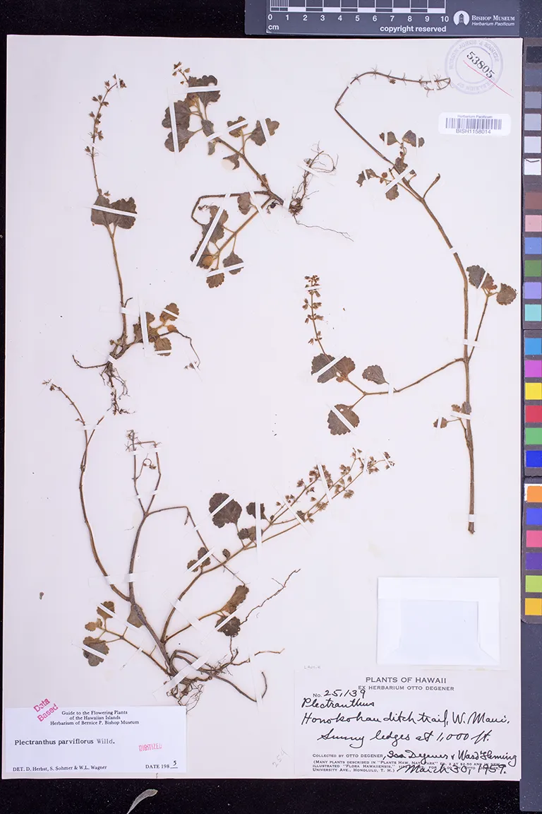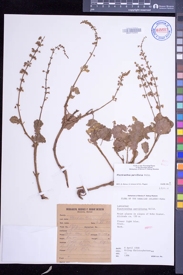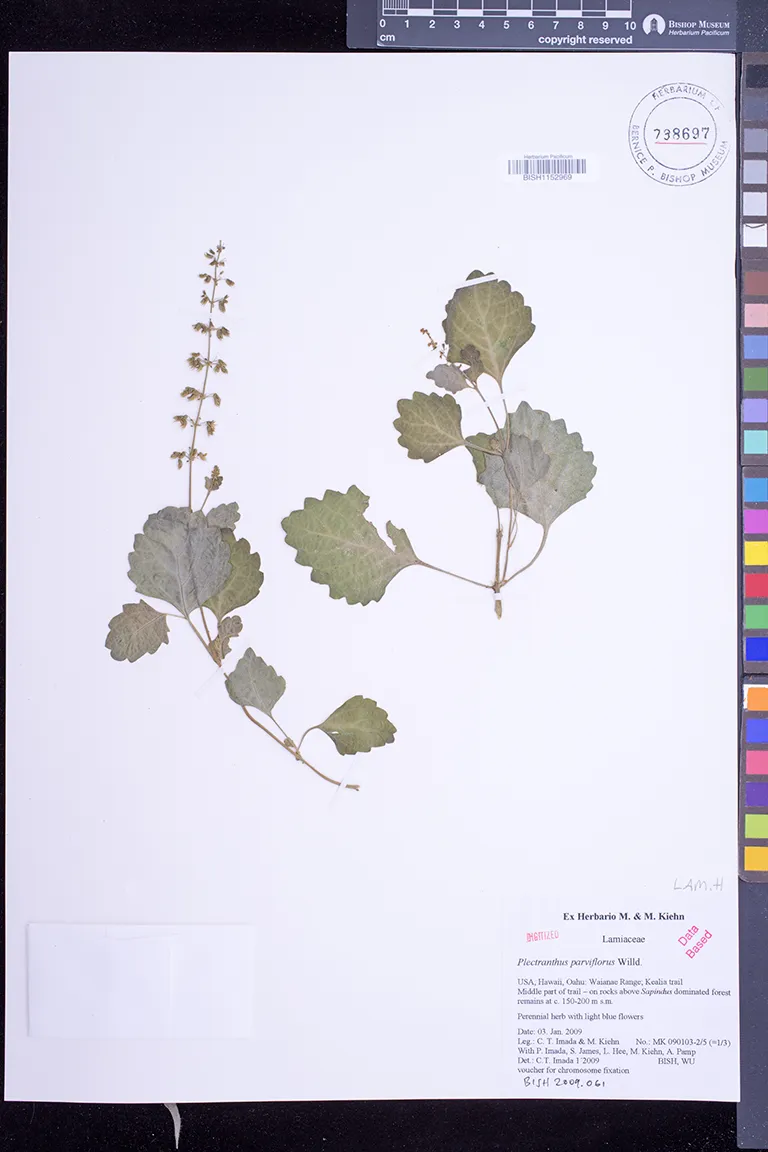 Wagner et al. 1990:827 (Ni, K, O, Mo, L, M, H [as Plectranthus parviflorus]); Paton et al. 2019:21 (Syn. P. parviflorus = C. australis)