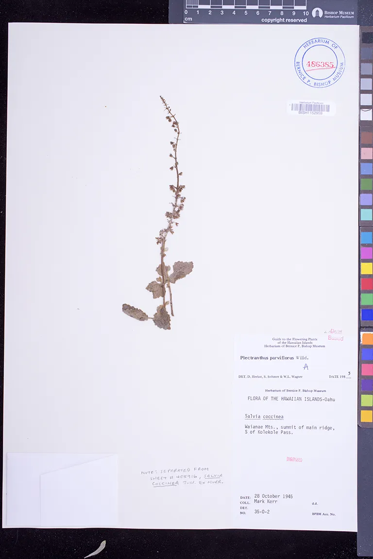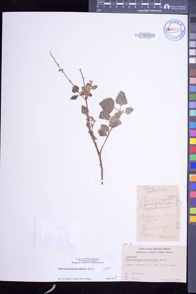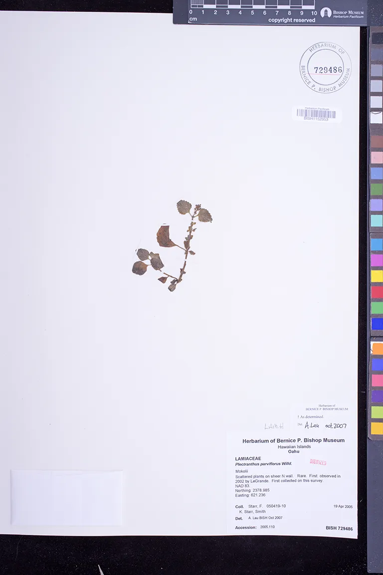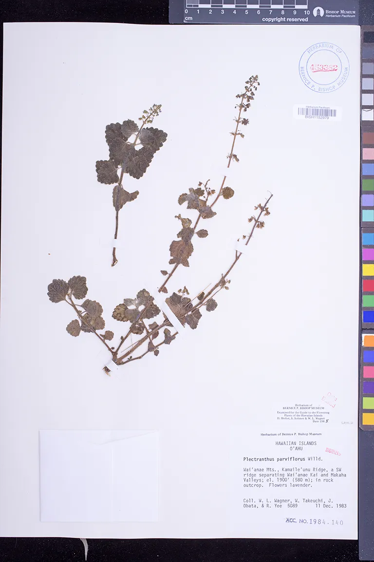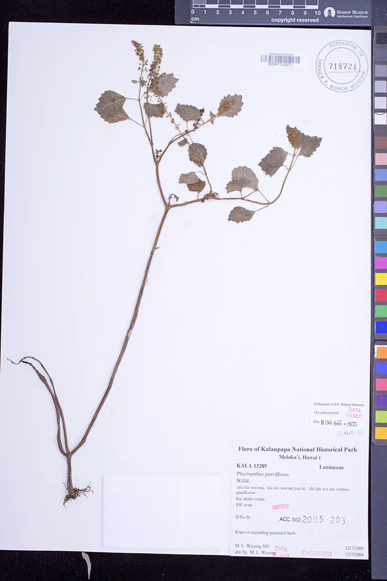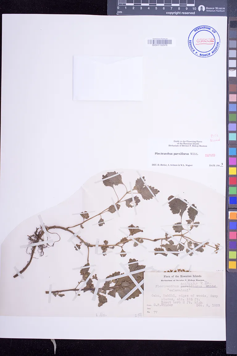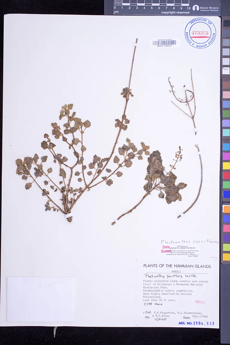 Wagner et al. 1990:827 (Ni, K, O, Mo, L, M, H [as Plectranthus parviflorus]); Paton et al. 2019:21 (Syn. P. parviflorus = C. australis)