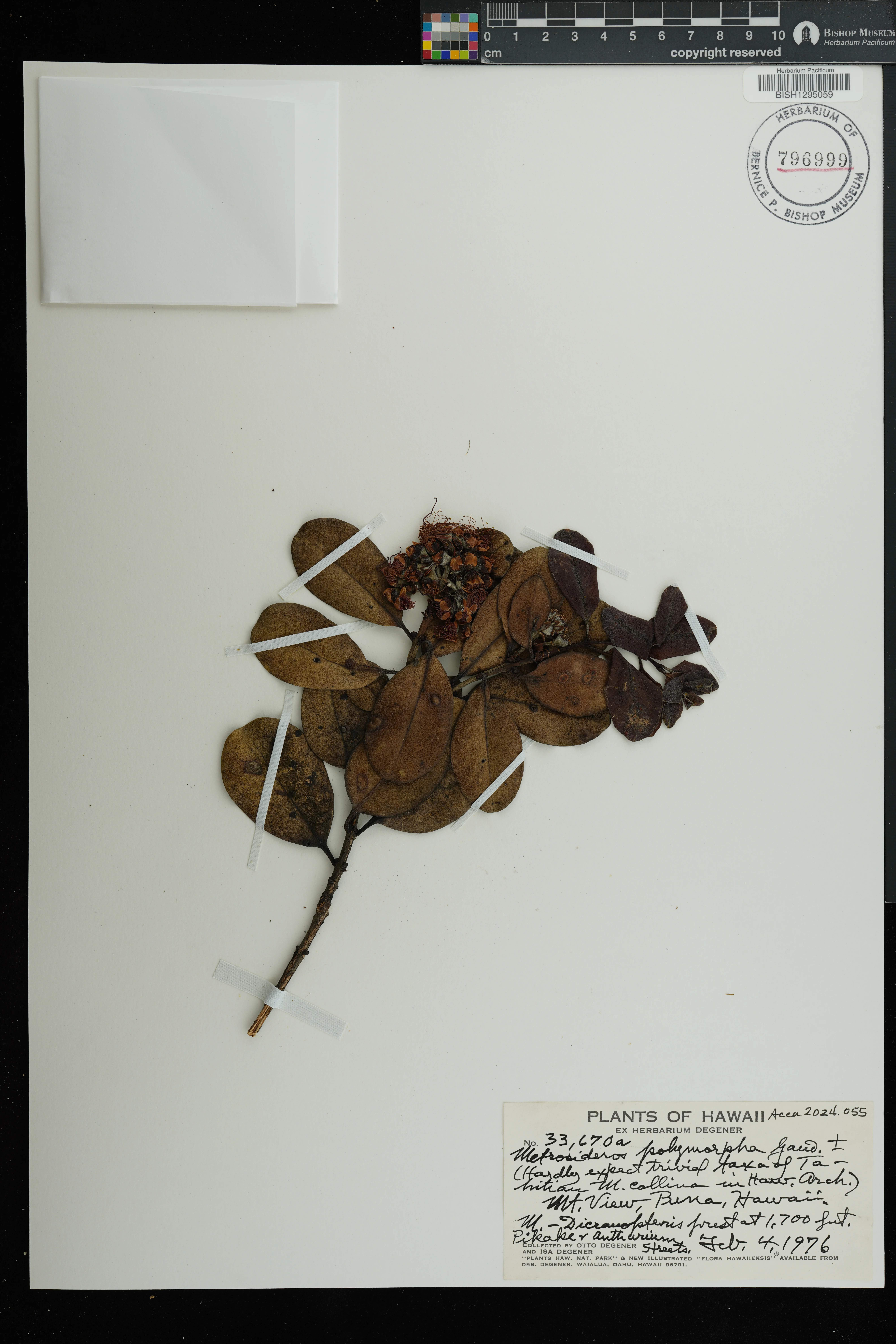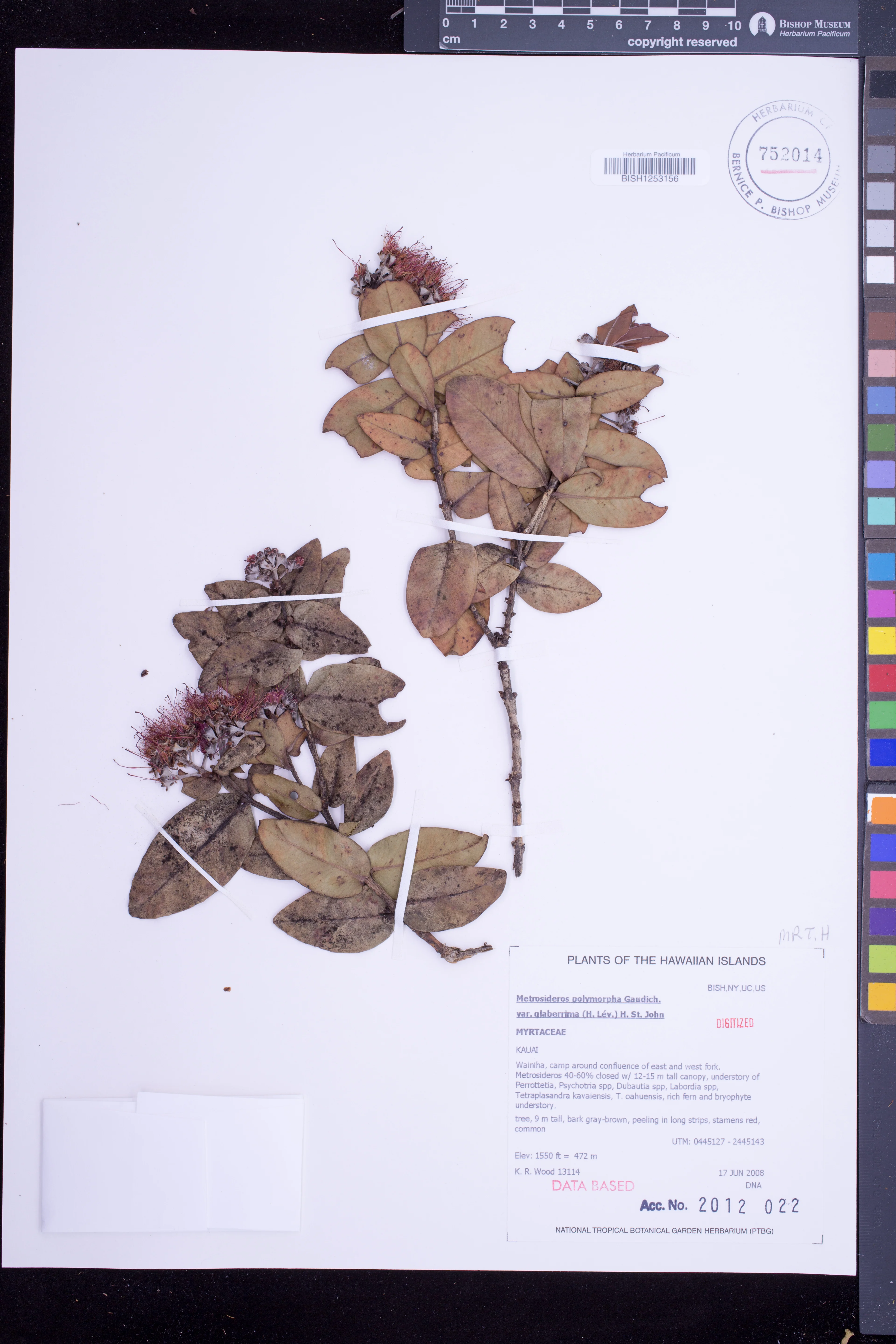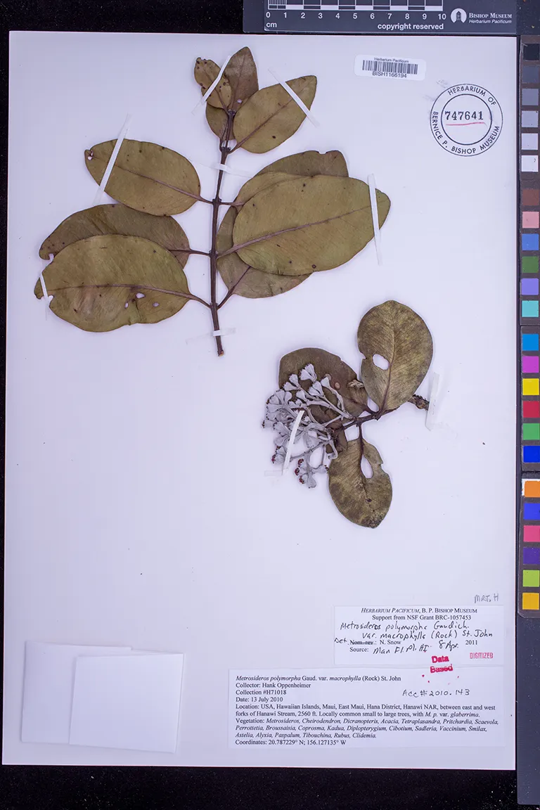 Kawaipapa stream, along stream on wet cliff walls, above Nahikuhana area Metrosideros - Cheirodendron trigynum wet forest with Sadleria spp., Pipturus albidus, Clemontia kakeana, Polyscias oah |