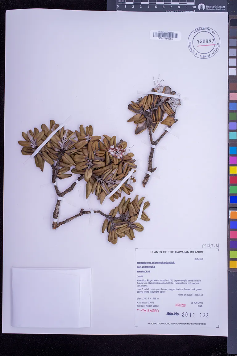 Mesic shrubland. W/ Leptecophylla tameiameiae, Acacia koa, Osteomeles anthyllidifolia, Metrosideros polymorpha var incana. |