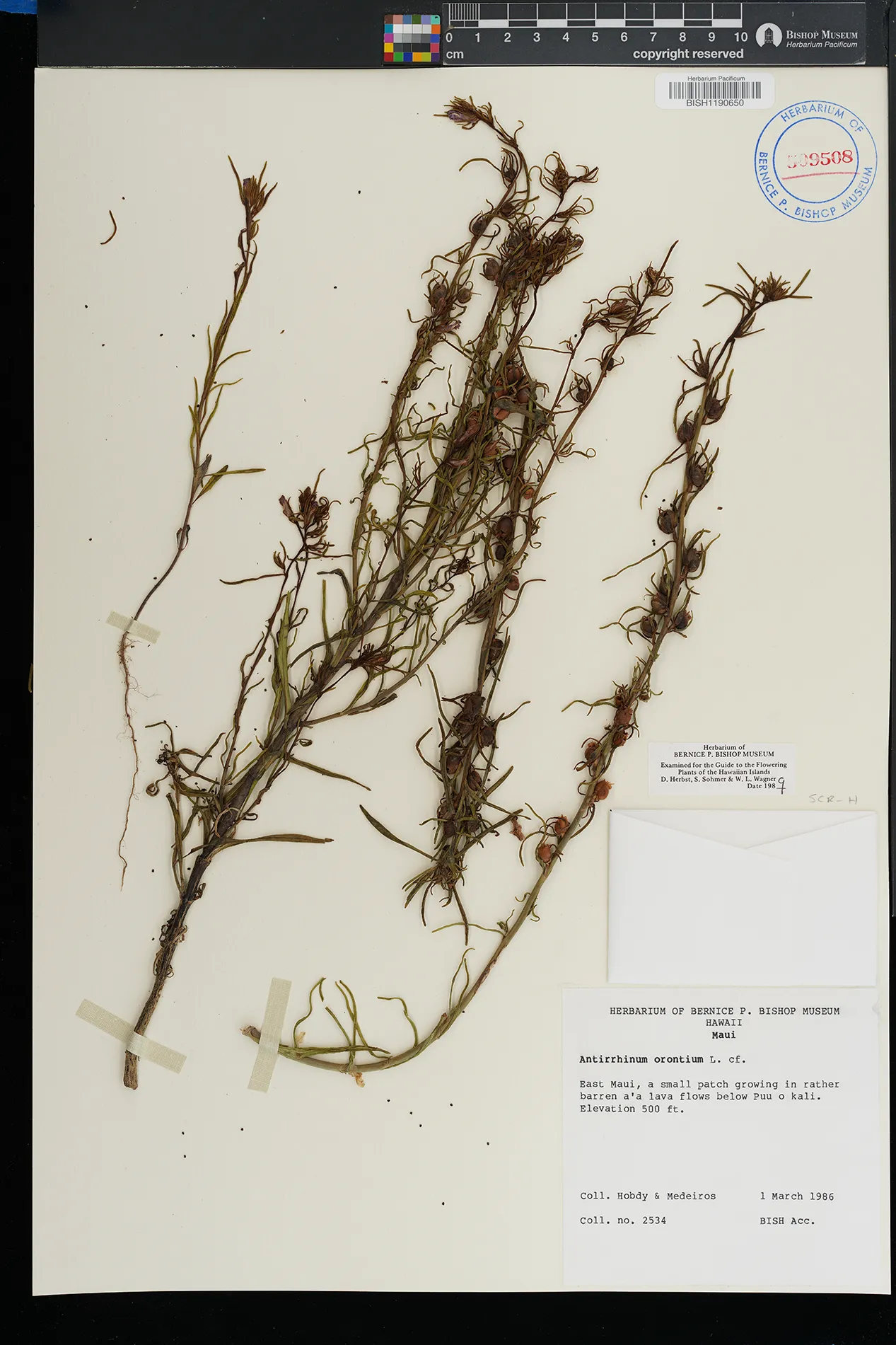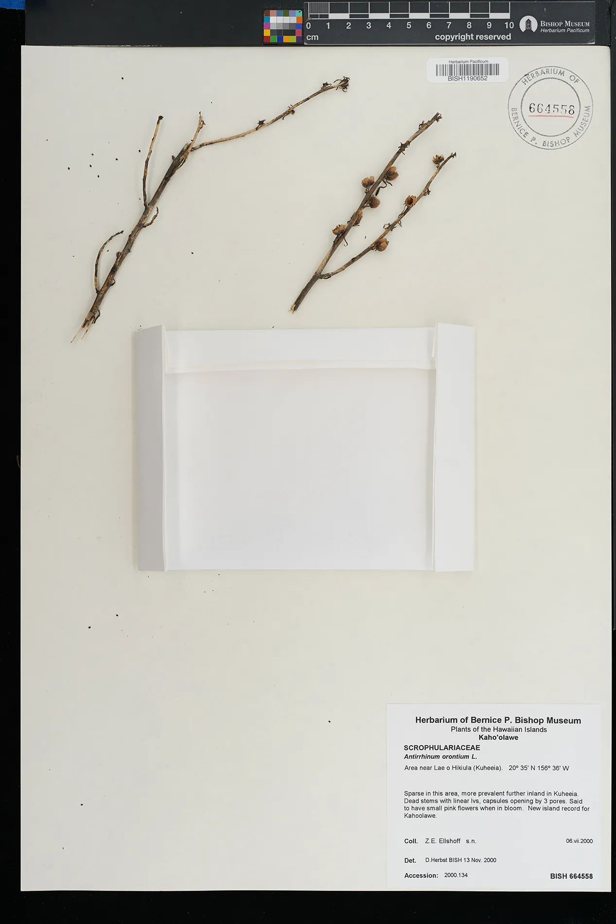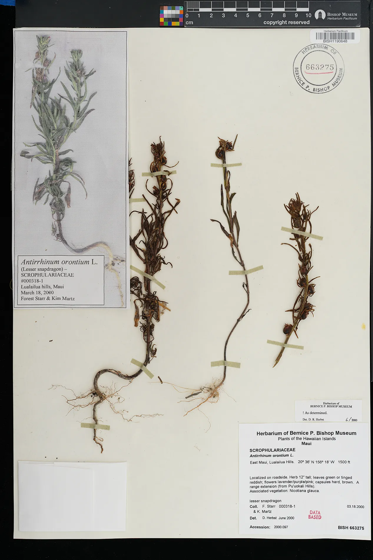 MAUI: W. Maui, Wailuku District, along unpaved road west of Malalowaiaole Gulch, in dry, open Prosopis/Cenchrus old pasture. NAD 83 UTM Zone 4. Northing: 2300614.11; Easting: 757013.05. |