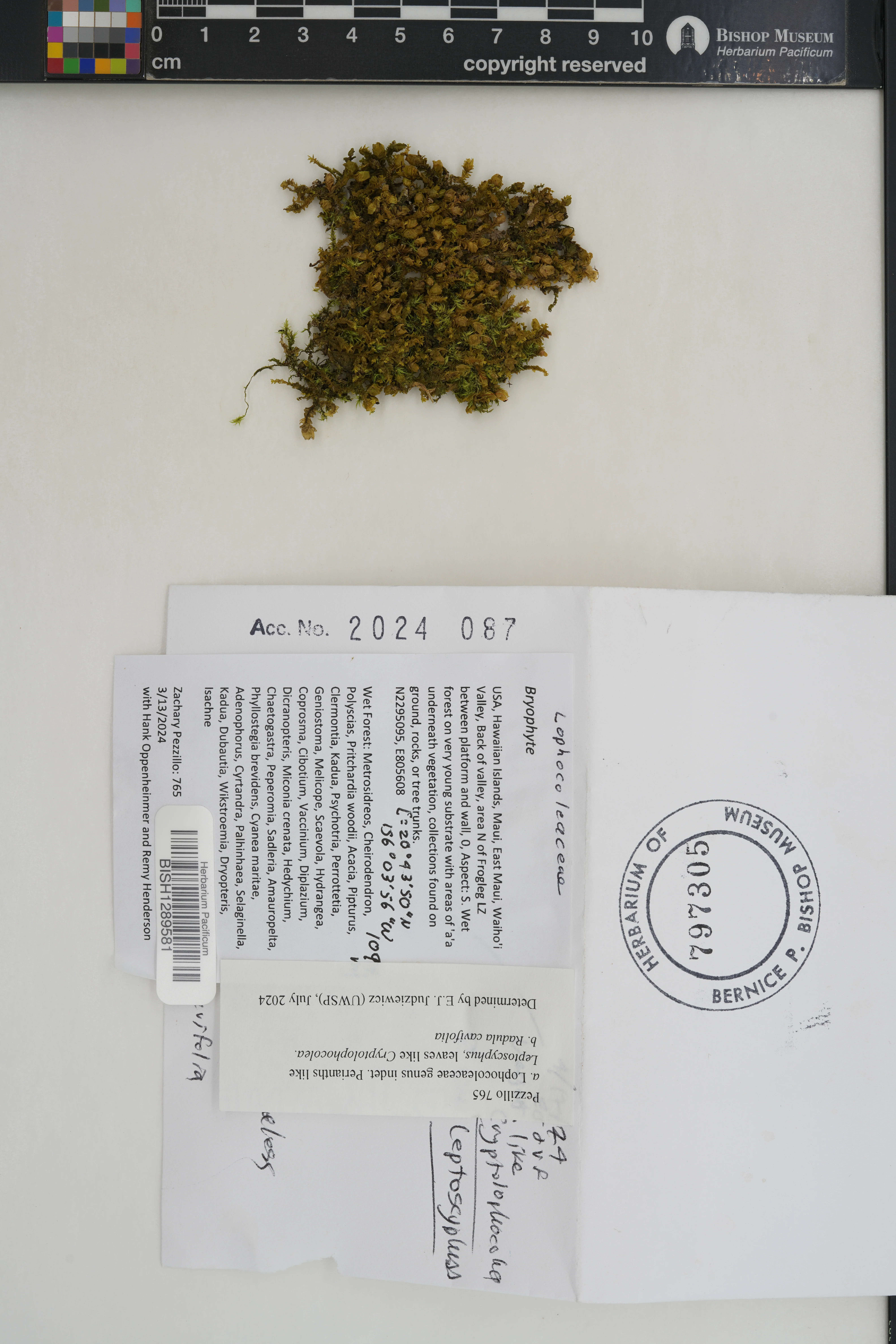 Kingdom: Viridiplantae Phylum: Marchantiophyta Class/Clade: Jungermanniopsida Order: Jungermanniales Family: Lophocoleaceae Genus: