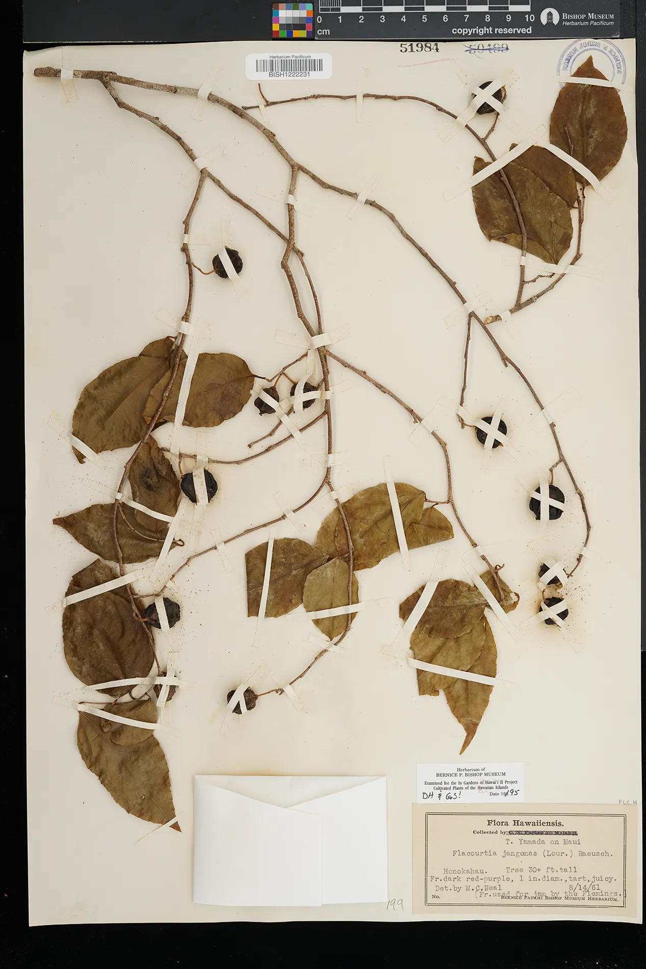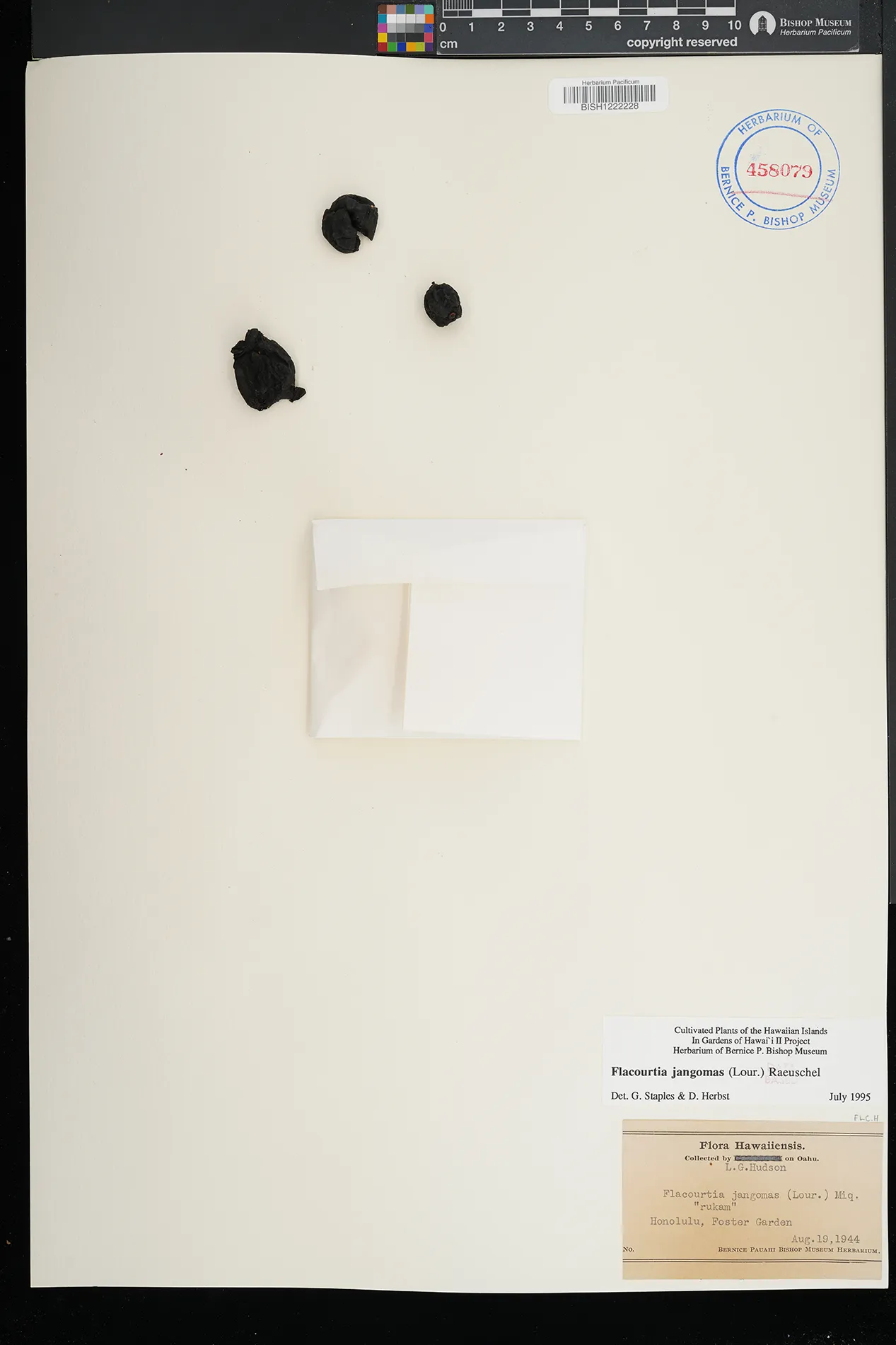 | 8 | Flacourtia jangomas | (Lour.) Raeusch. | Honolulu, Foster Garden | PRESERVED_SPECIMEN | Hudson, L.G. | s.n. | Oahu | BISH | 8/19/1944 | |