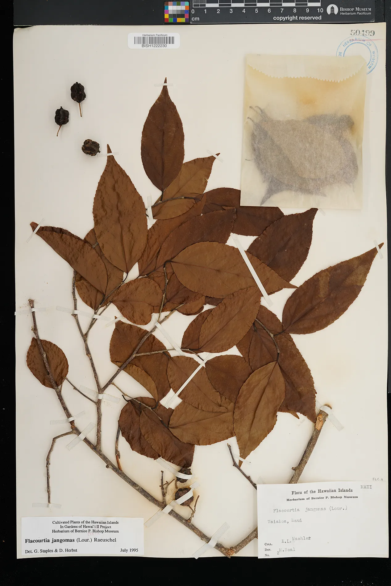 | 5 | Flacourtia jangomas | (Lour.) Raeusch. | waiakoa | PRESERVED_SPECIMEN | maehler, k.l. | collector number: 2 | Maui | BISH | ||