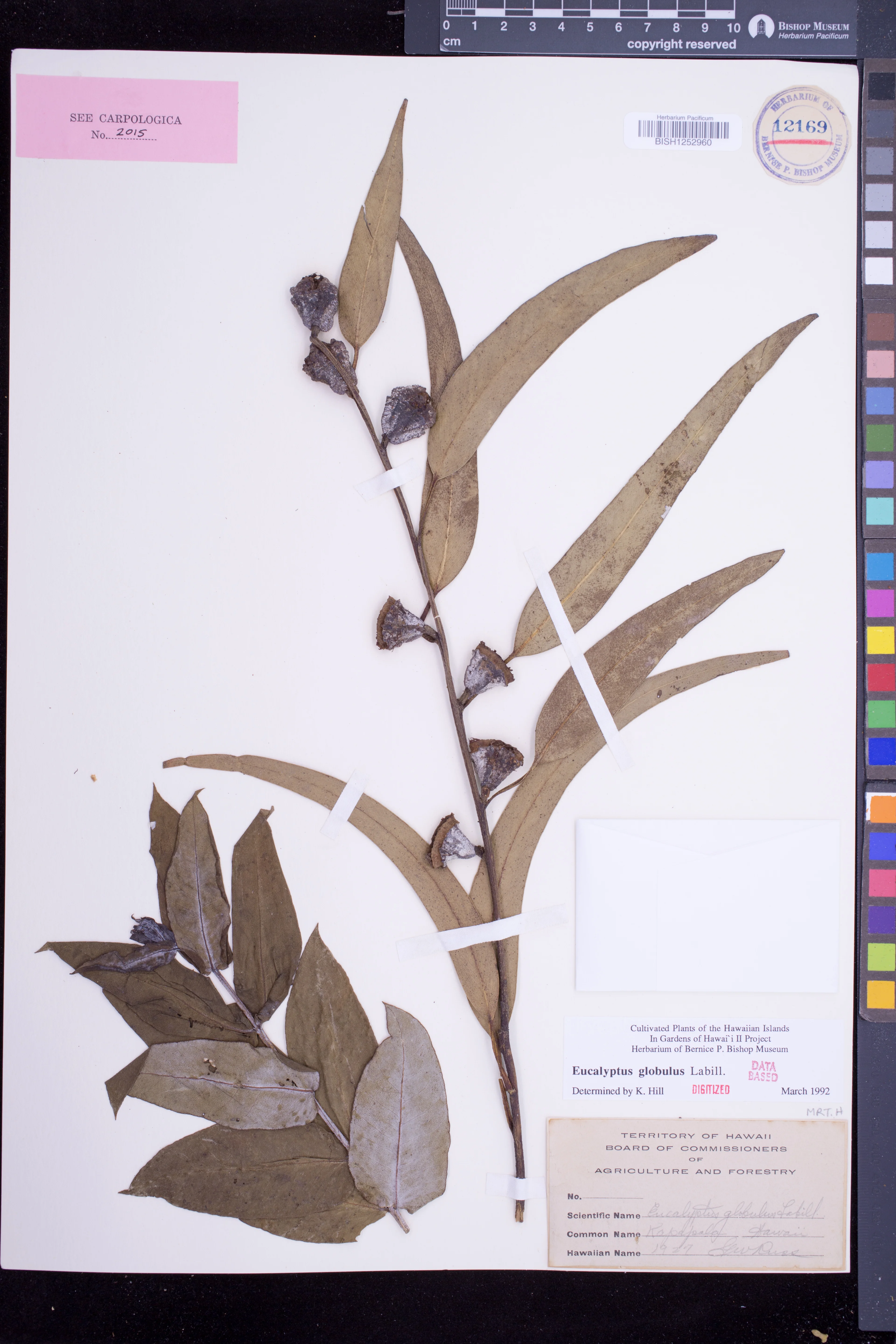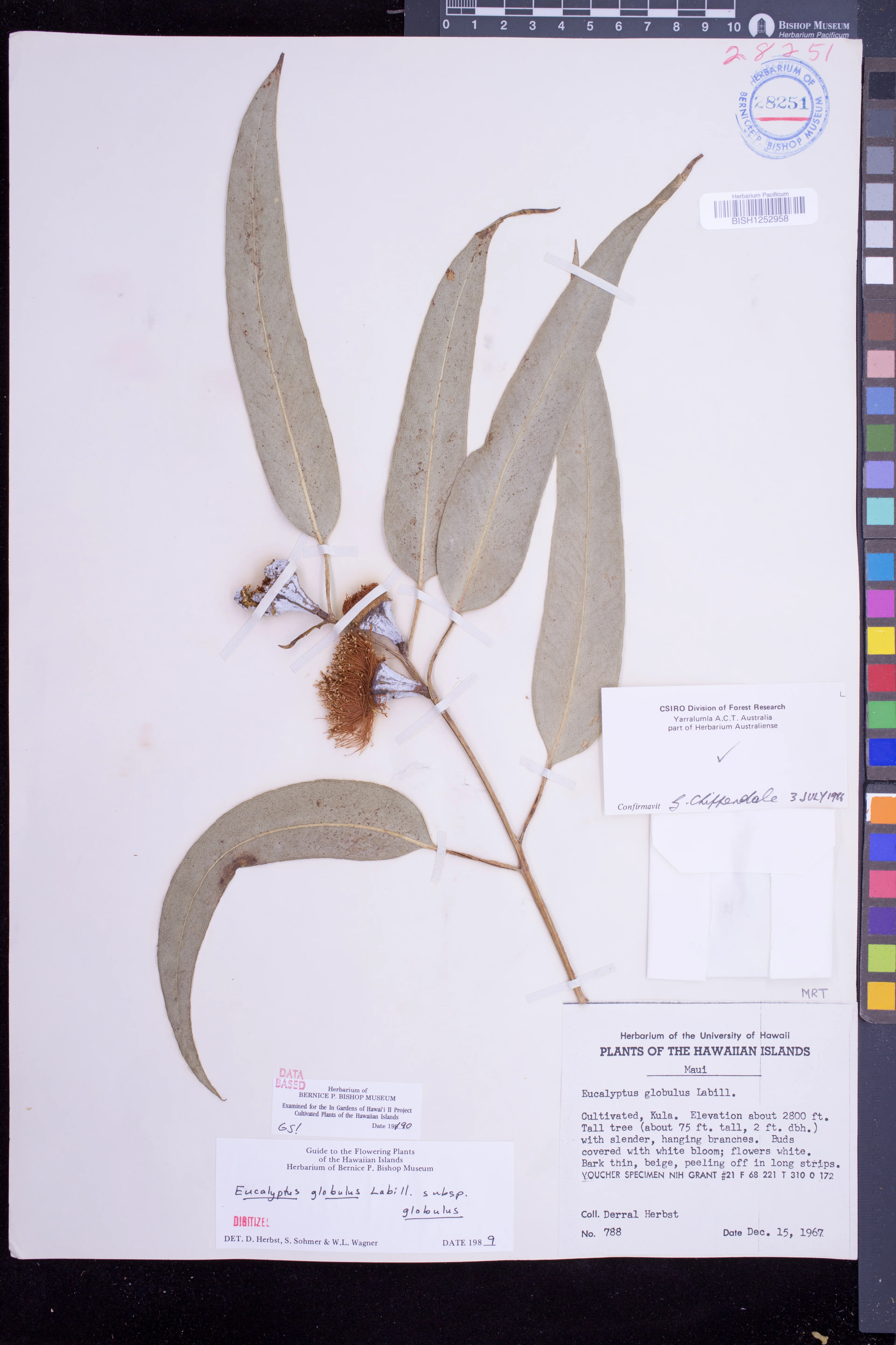 | 15 | Eucalyptus globulus | Labill. | Koele | PRESERVED_SPECIMEN | Munro, G.C. | 357 | Lanai | BISH | 1/5/1916 | |
