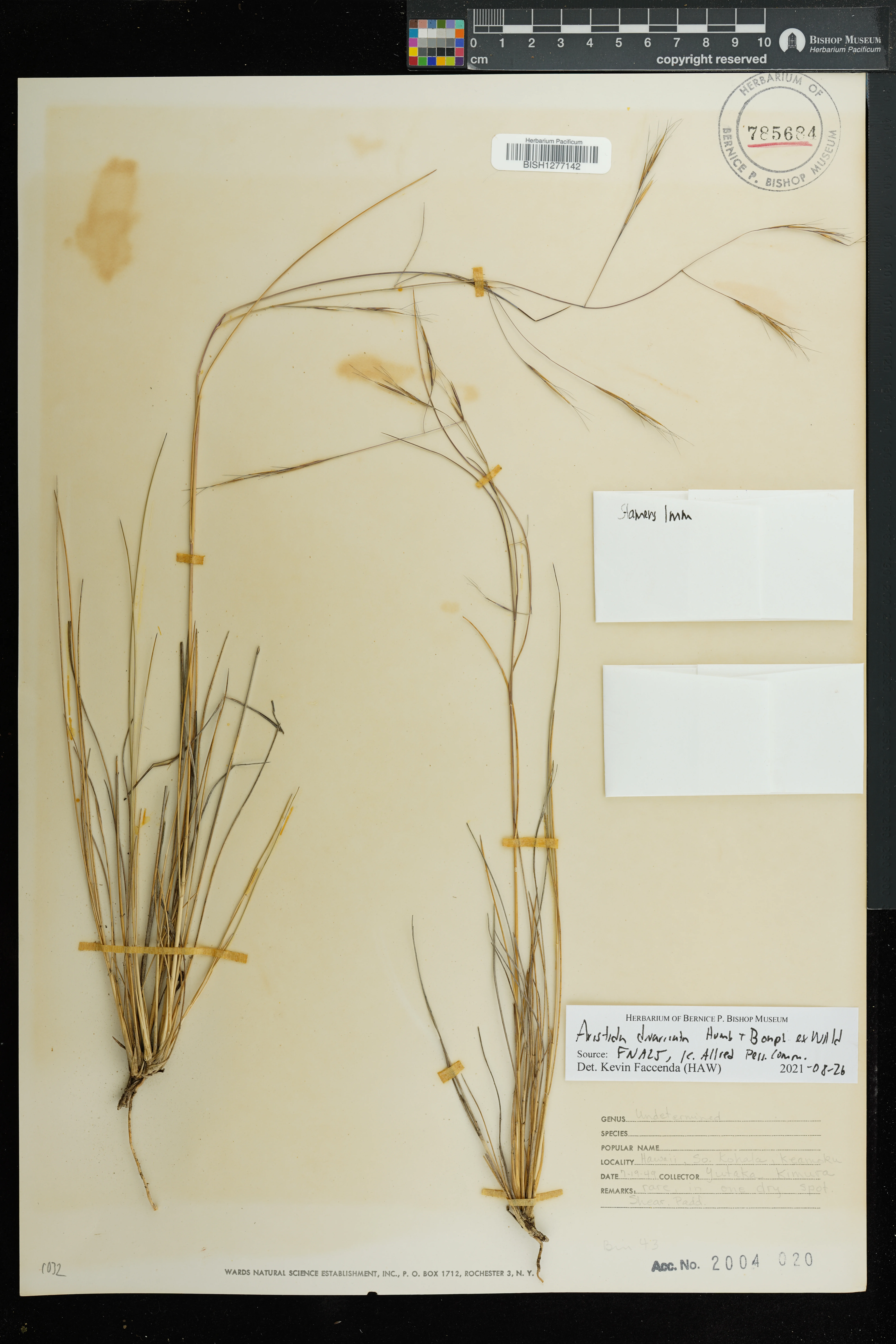 Kingdom: Viridiplantae Phylum: Magnoliophyta Class/Clade: Monocots Order: Poales Family: Poaceae Genus: Aristida