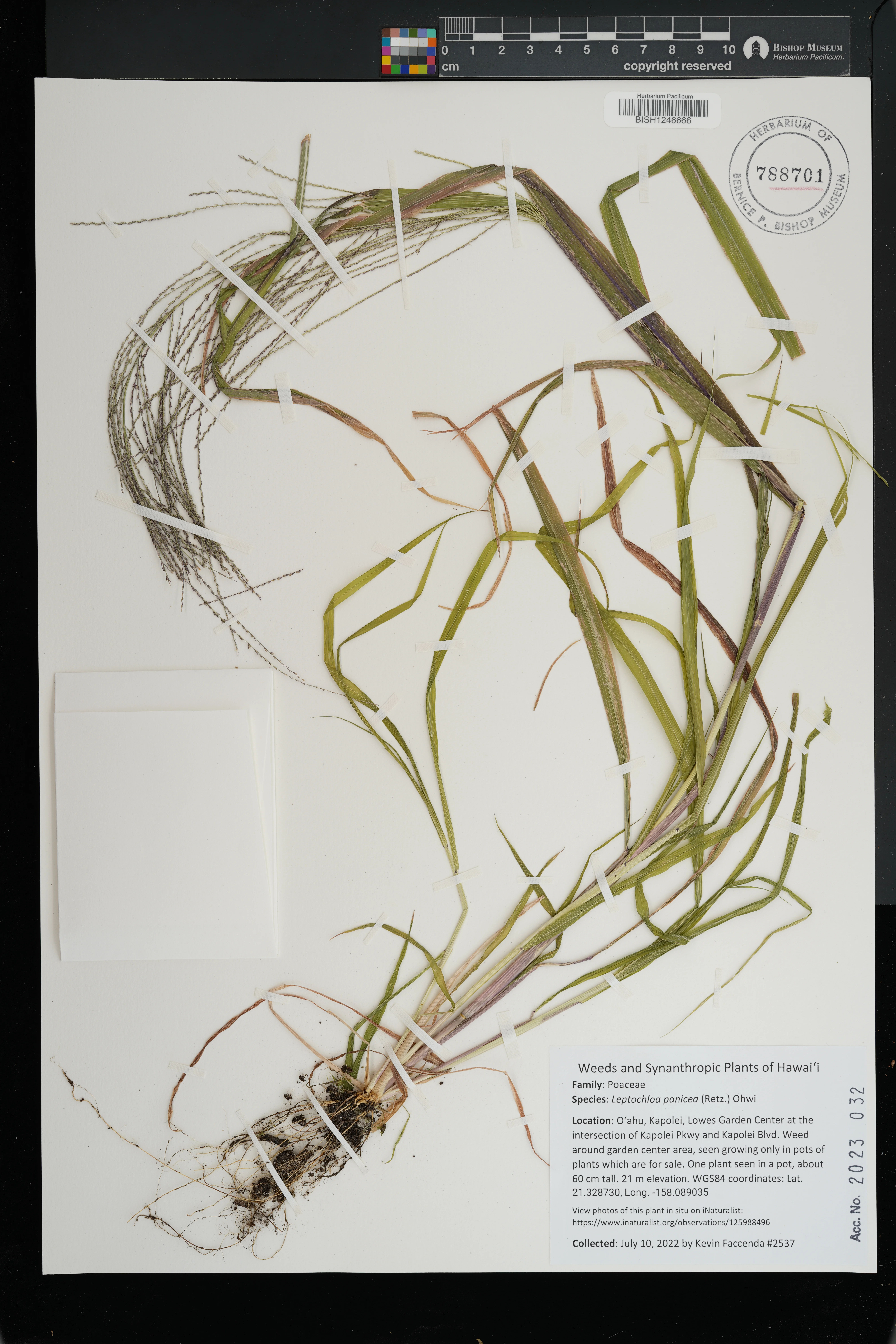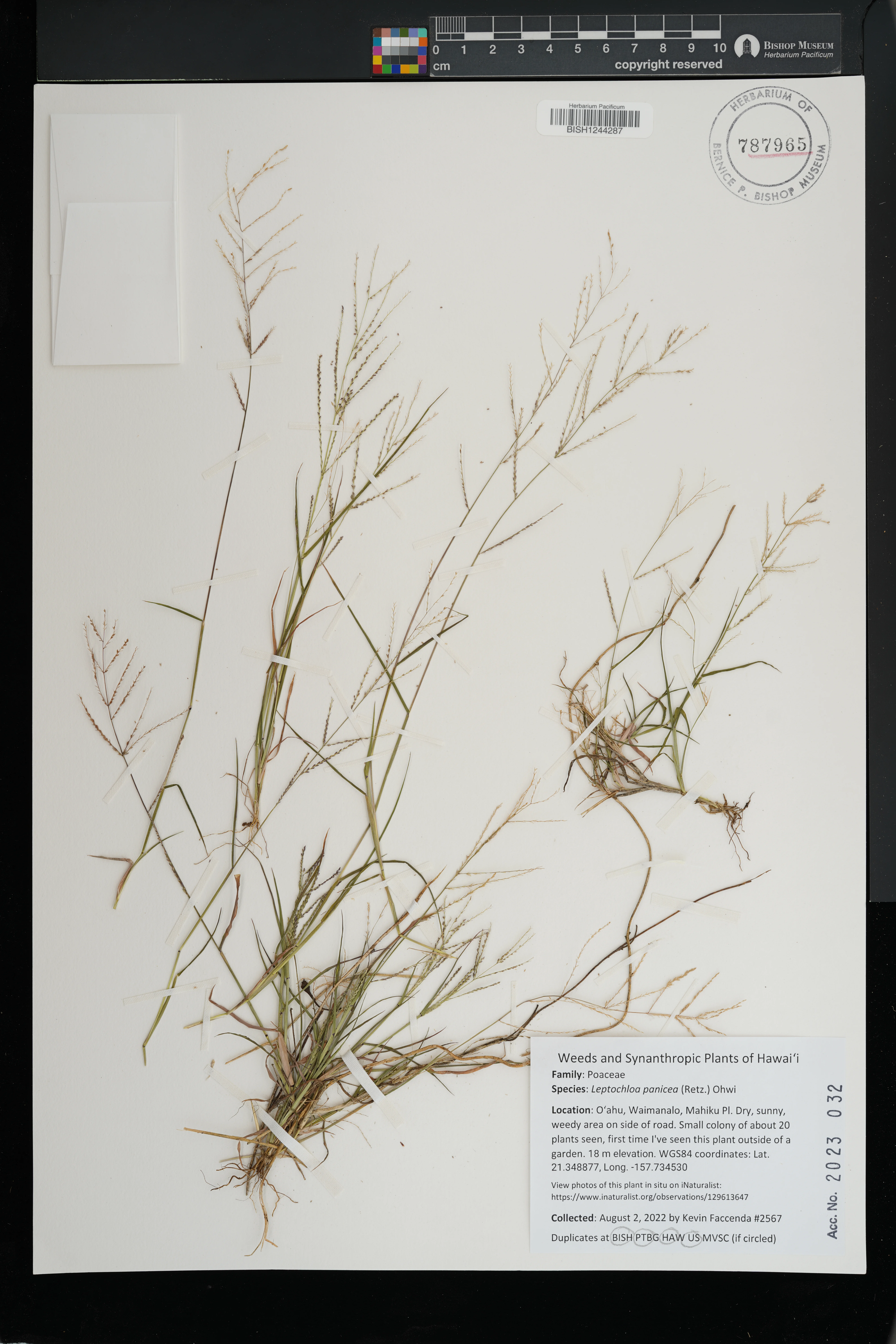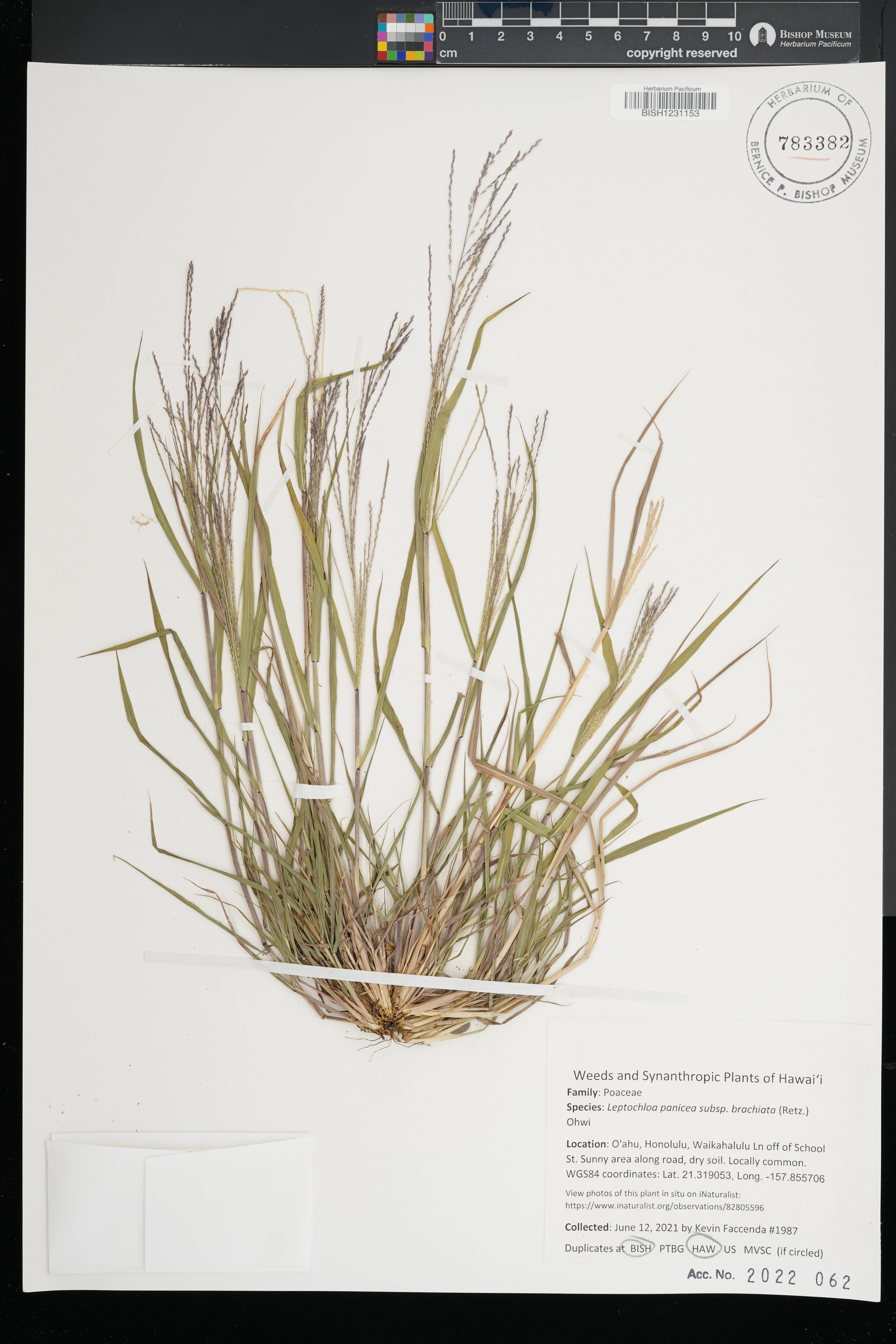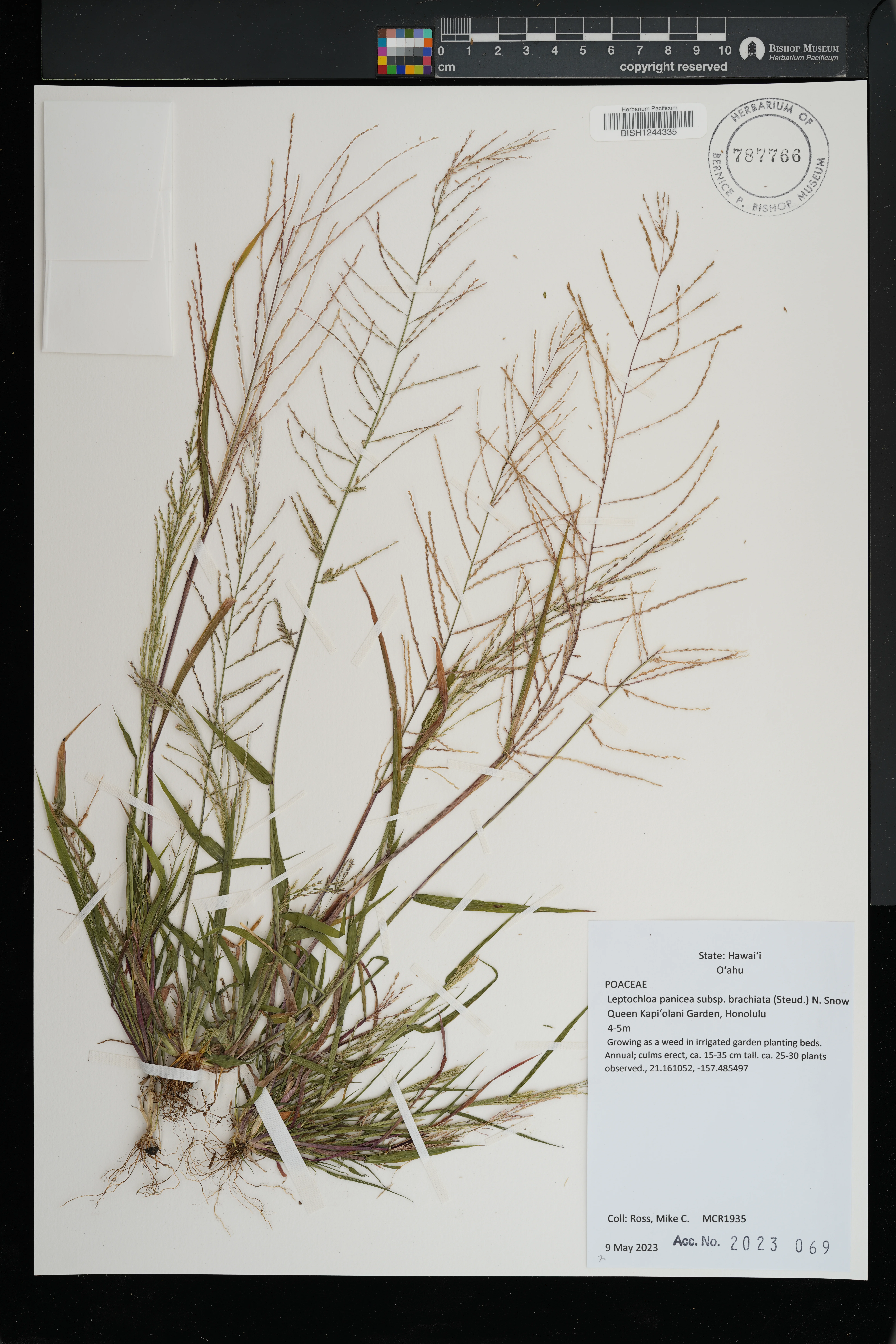 Frohlich & Lau 2012:44 (NEWNAT/O, DESCR [as Leptochloa panicea subsp. brachiata]); Peterson et al. 2012:1326 (Syn. L. p. subsp. brachiata = D. p. subsp. brachiata); Faccenda 2022:75 (KEY)