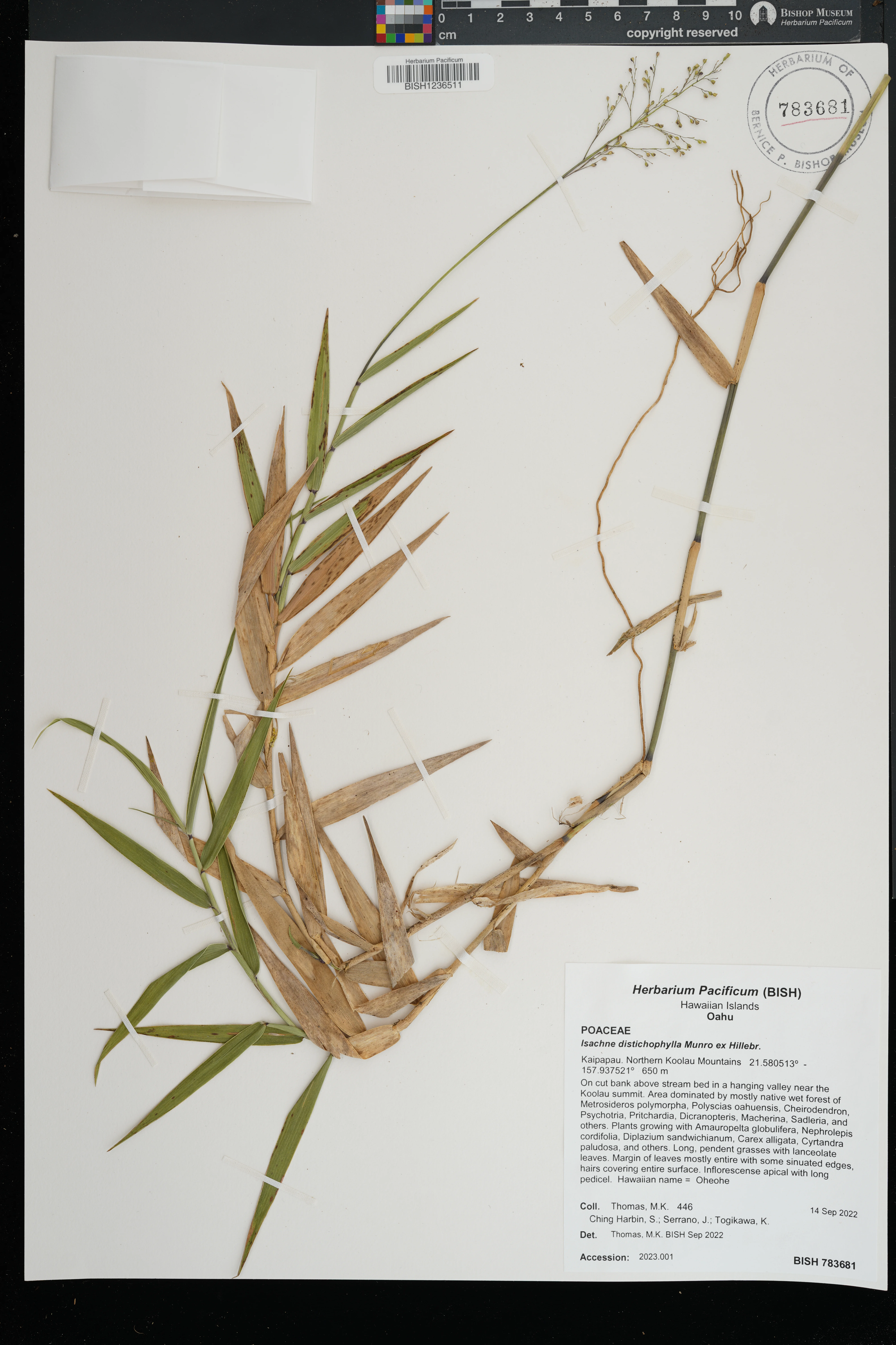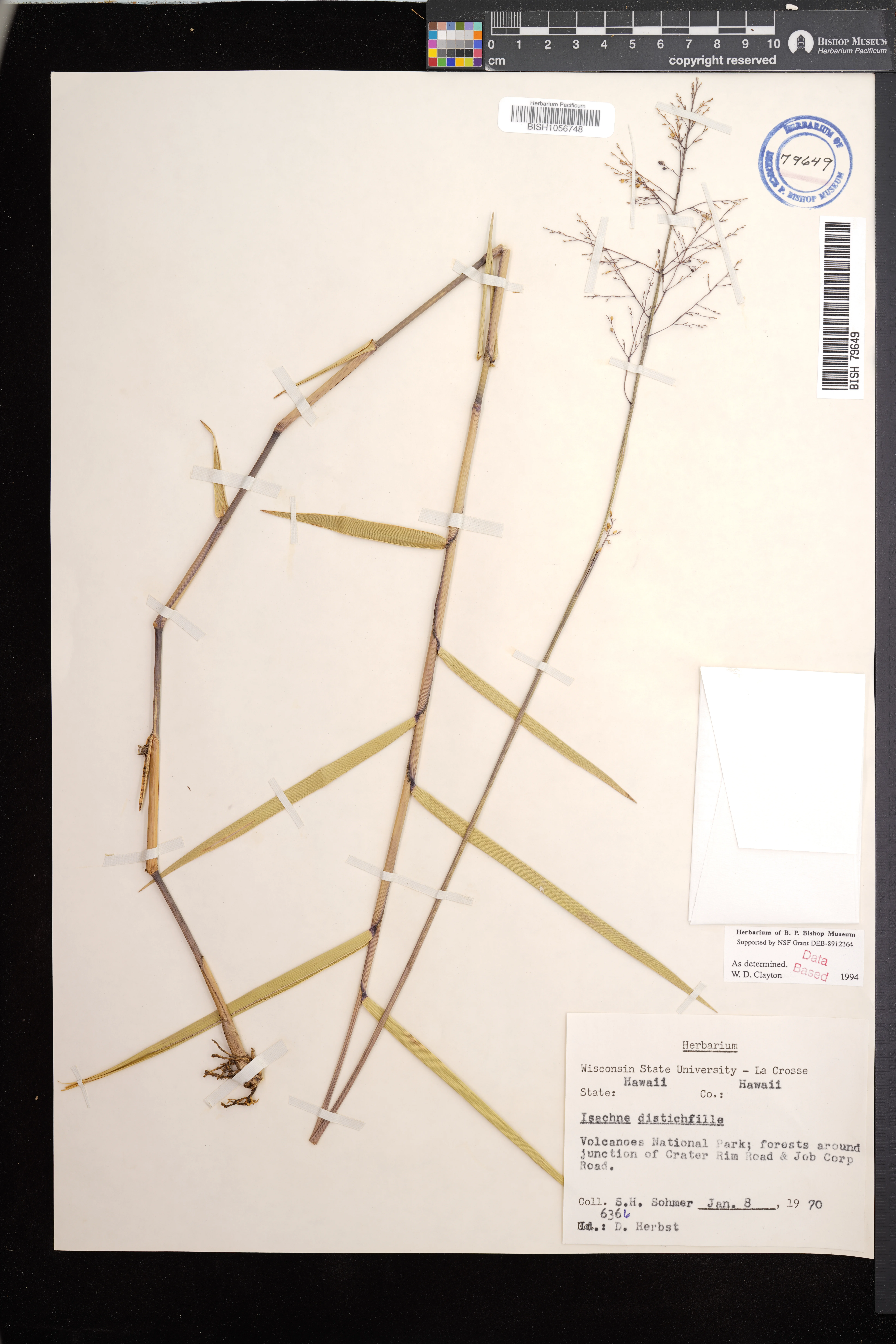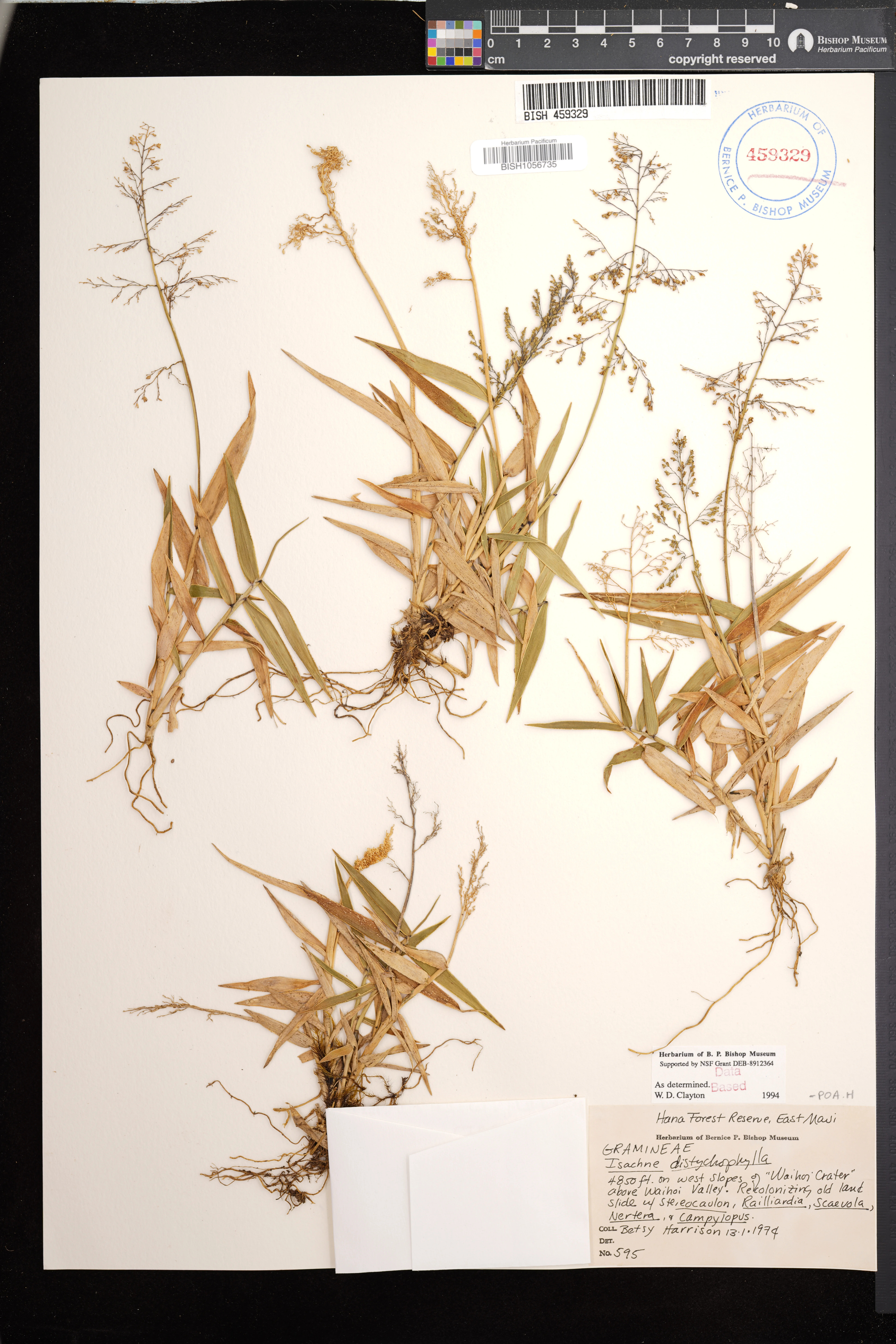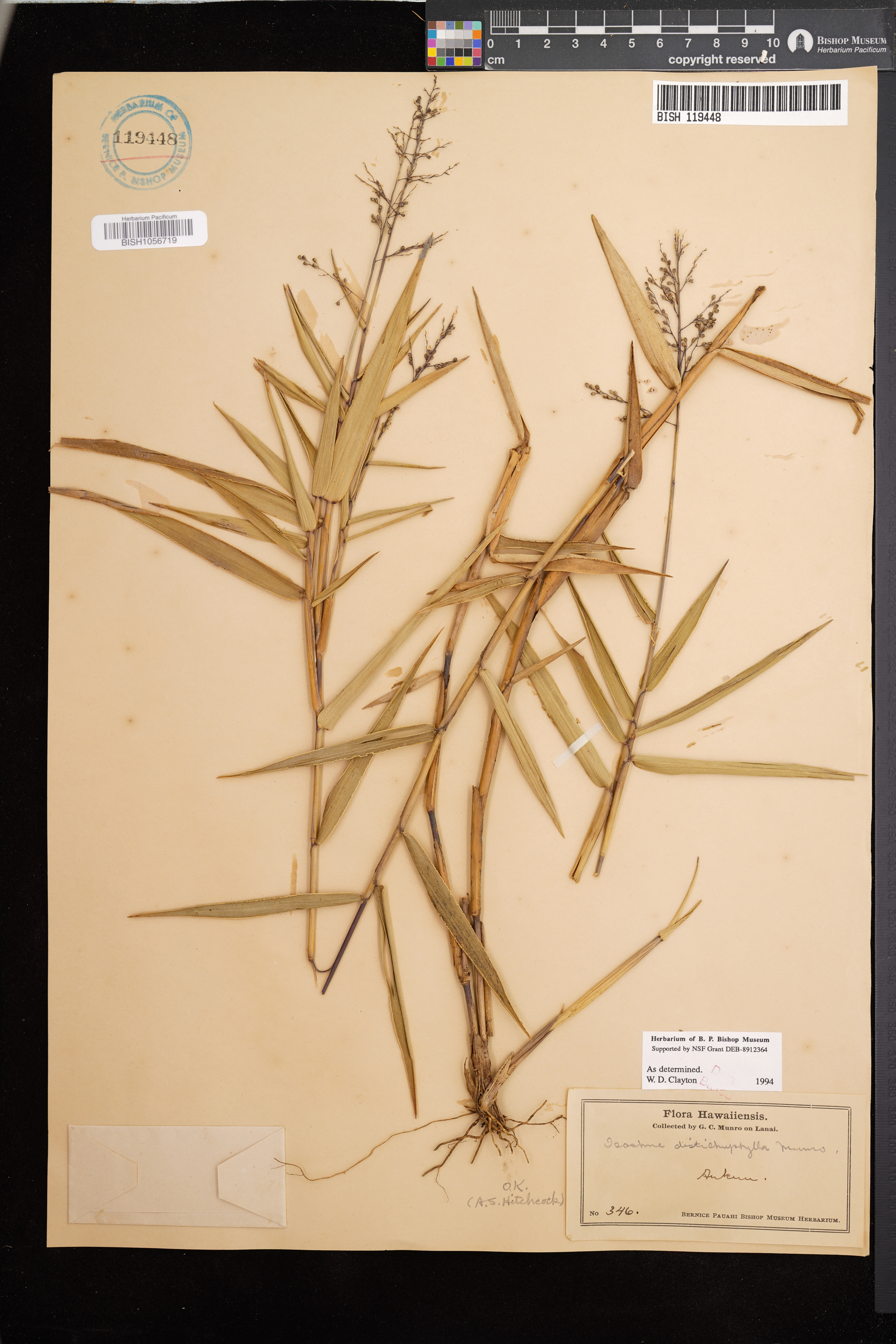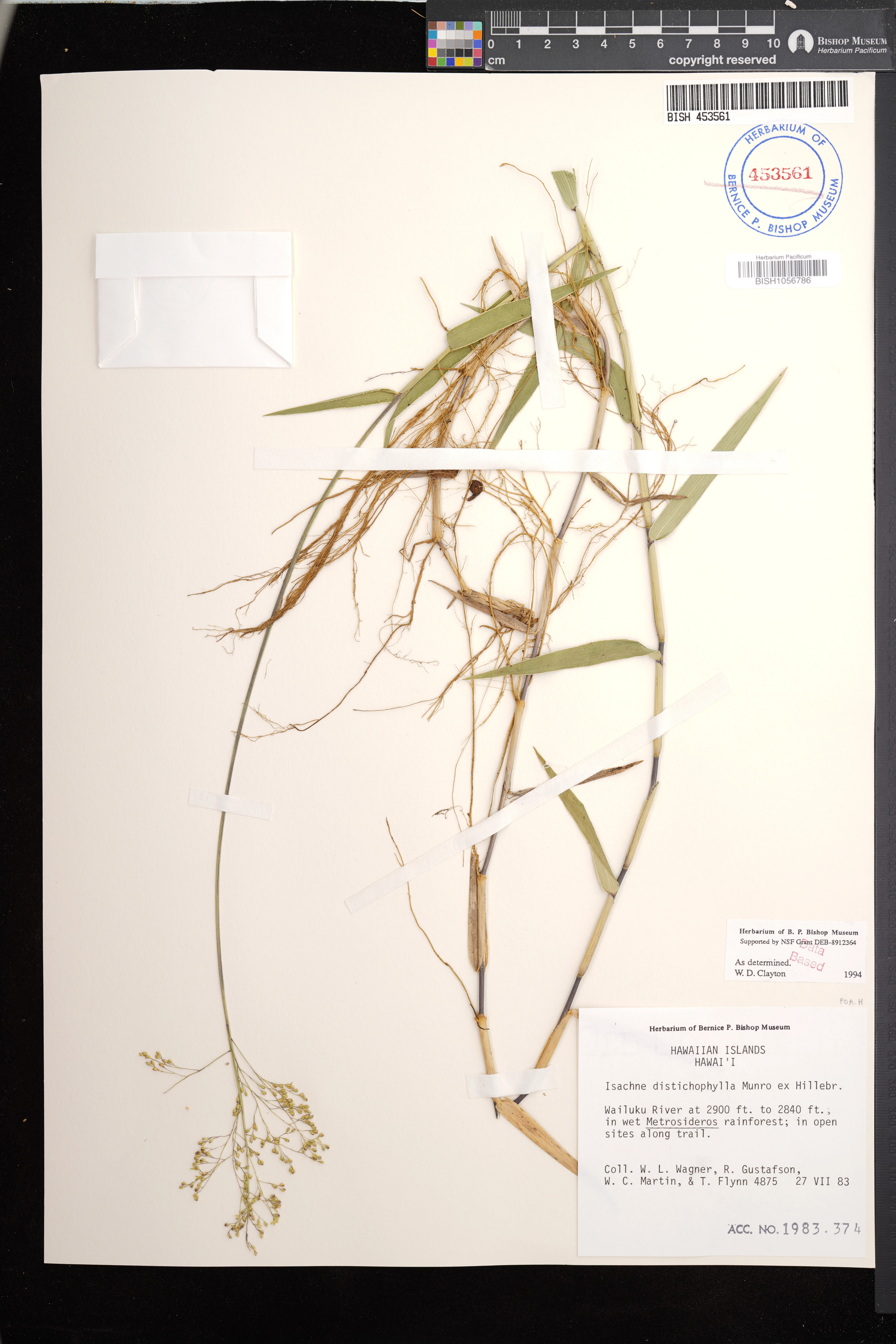 Forming small patches often w/ Oplismenus. Assoc w/Tetraplasandra-Broussaisia-Metrosideros-Dicranopteris. |