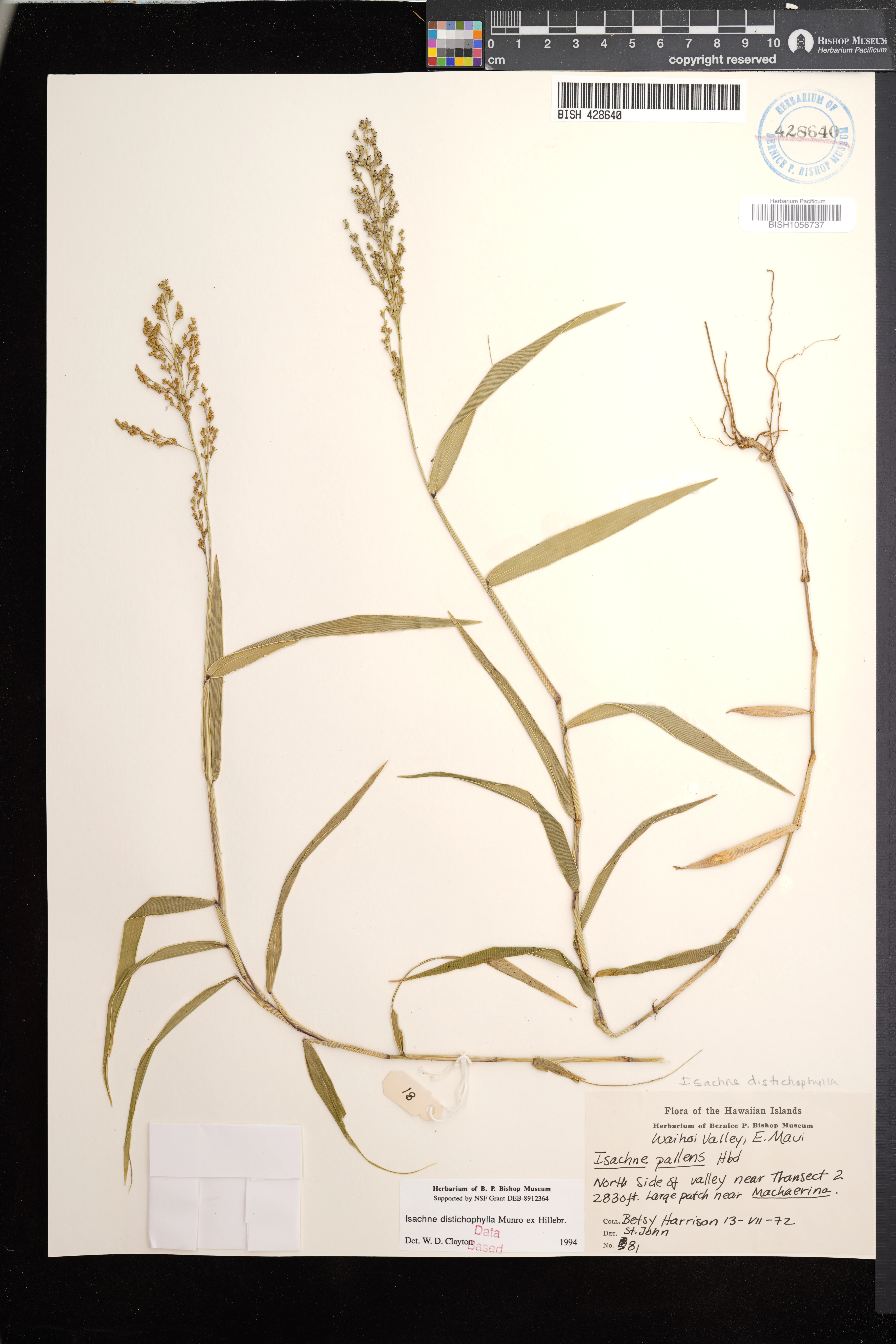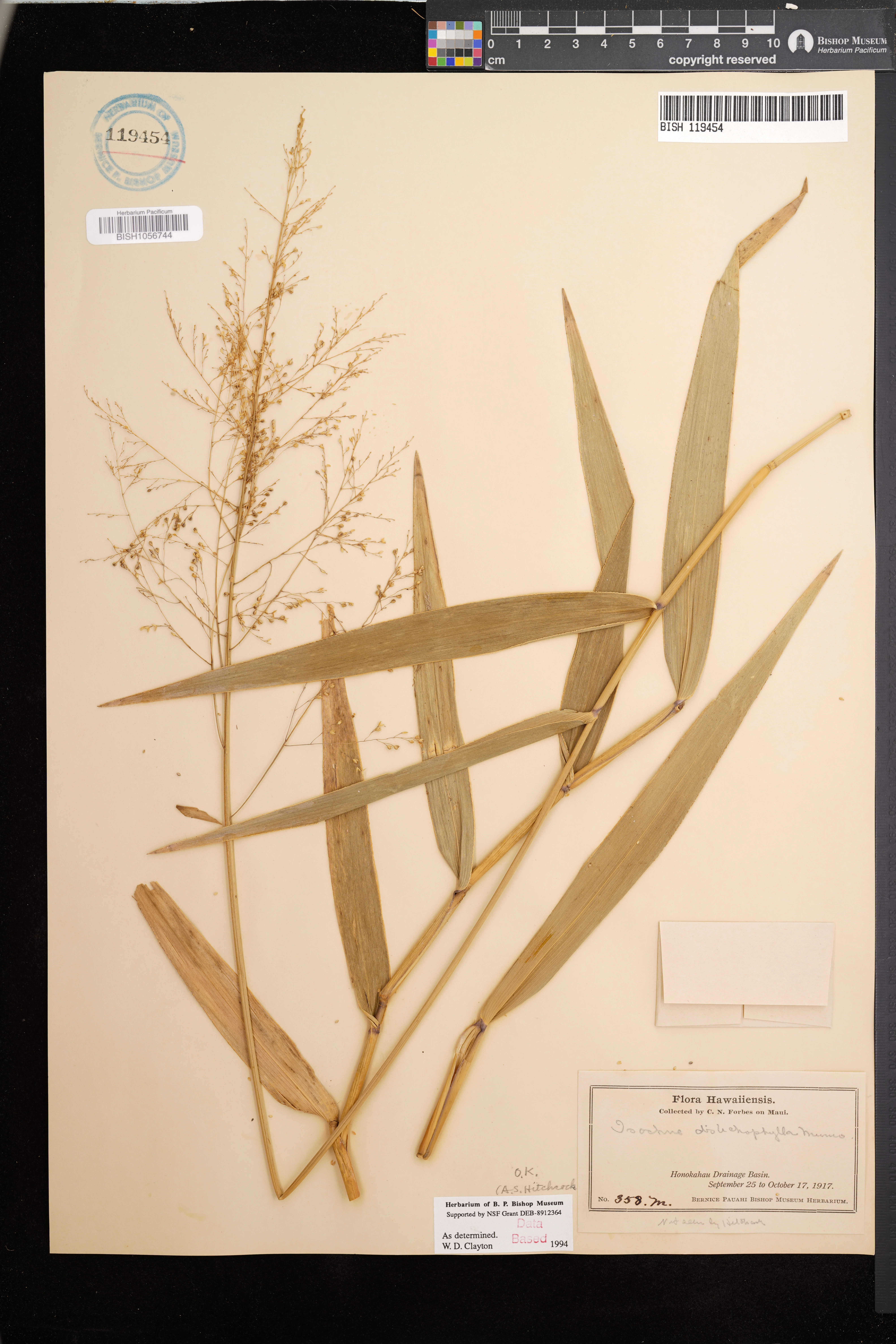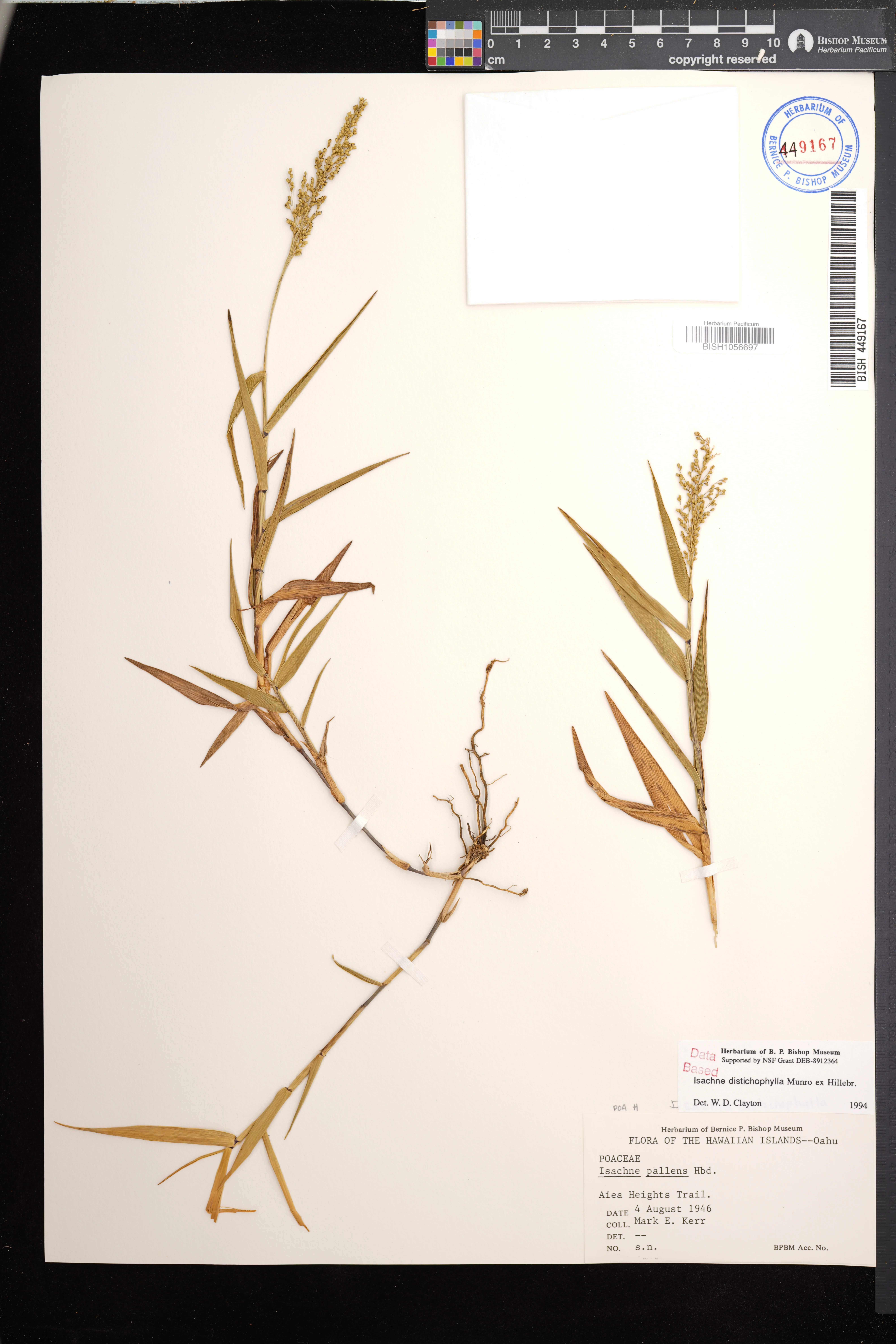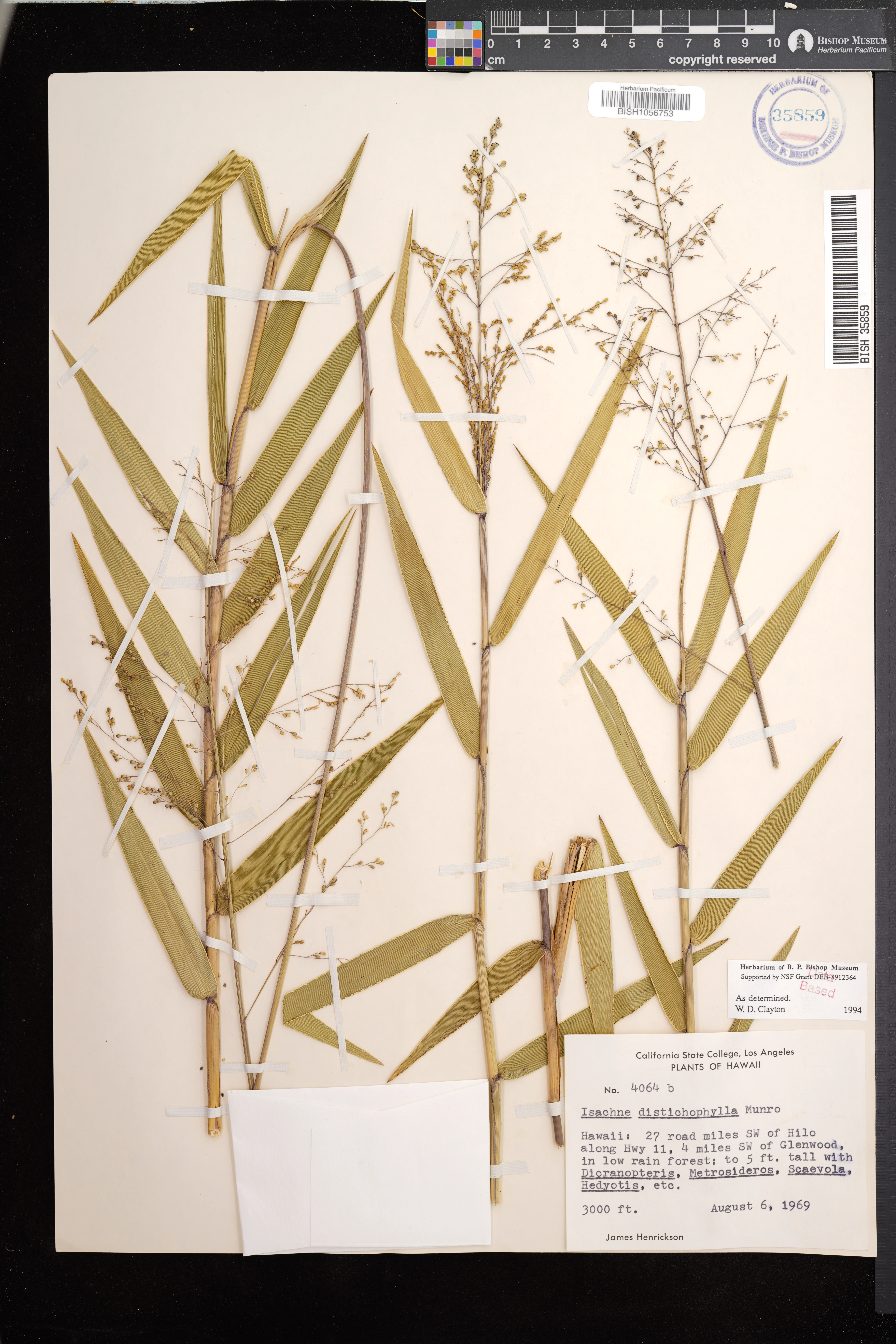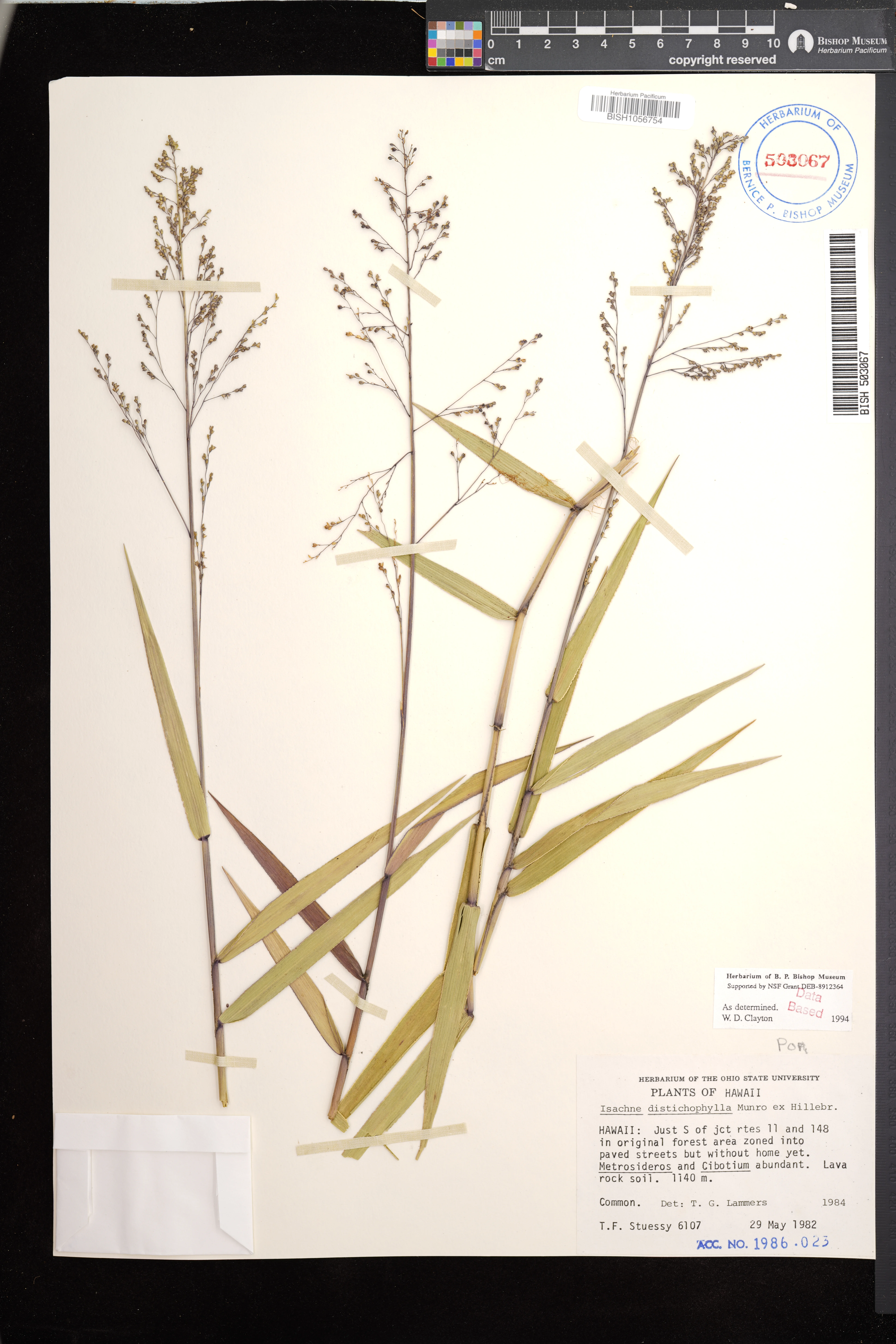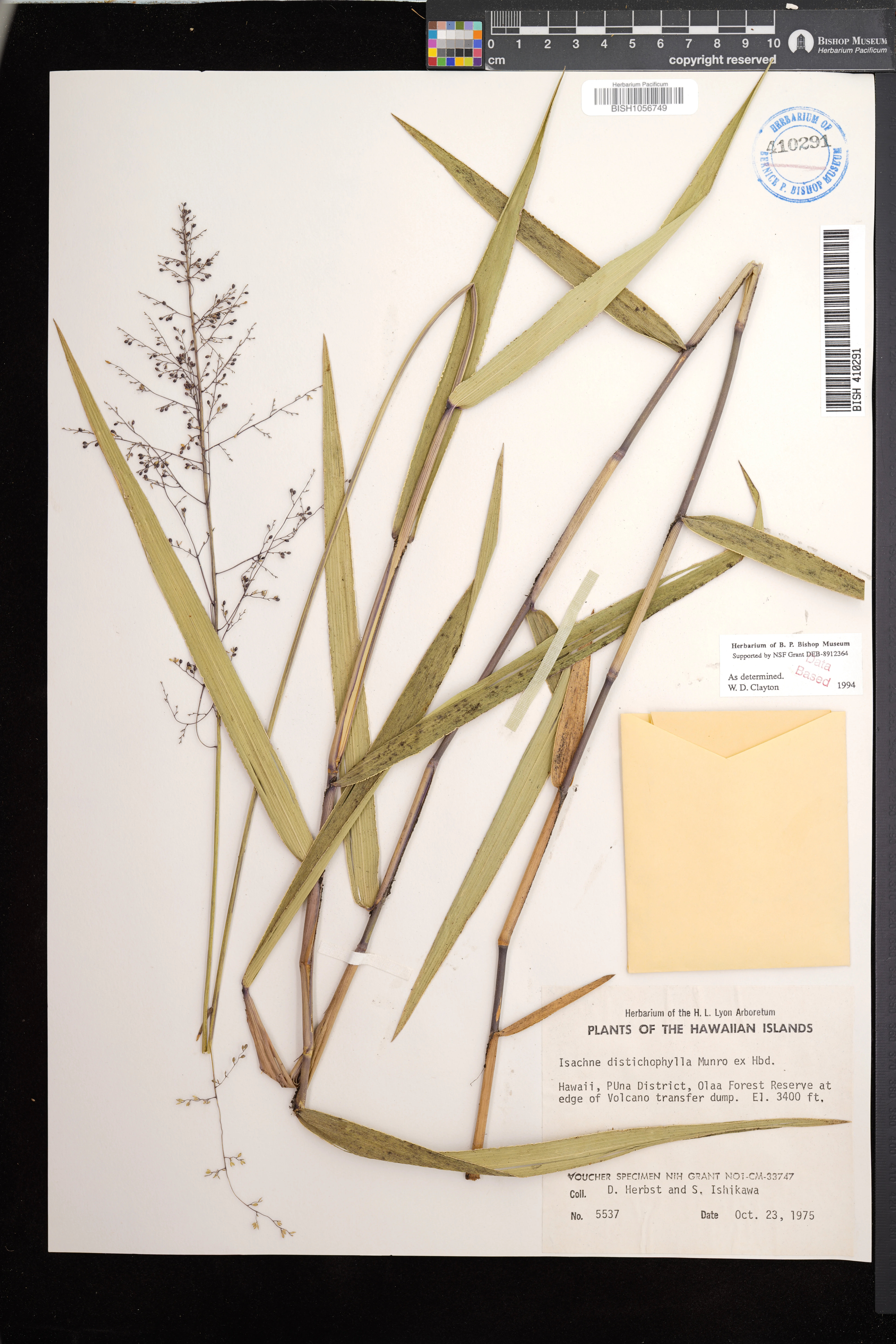 Forming small patches often w/ Oplismenus. Assoc w/Tetraplasandra-Broussaisia-Metrosideros-Dicranopteris. |