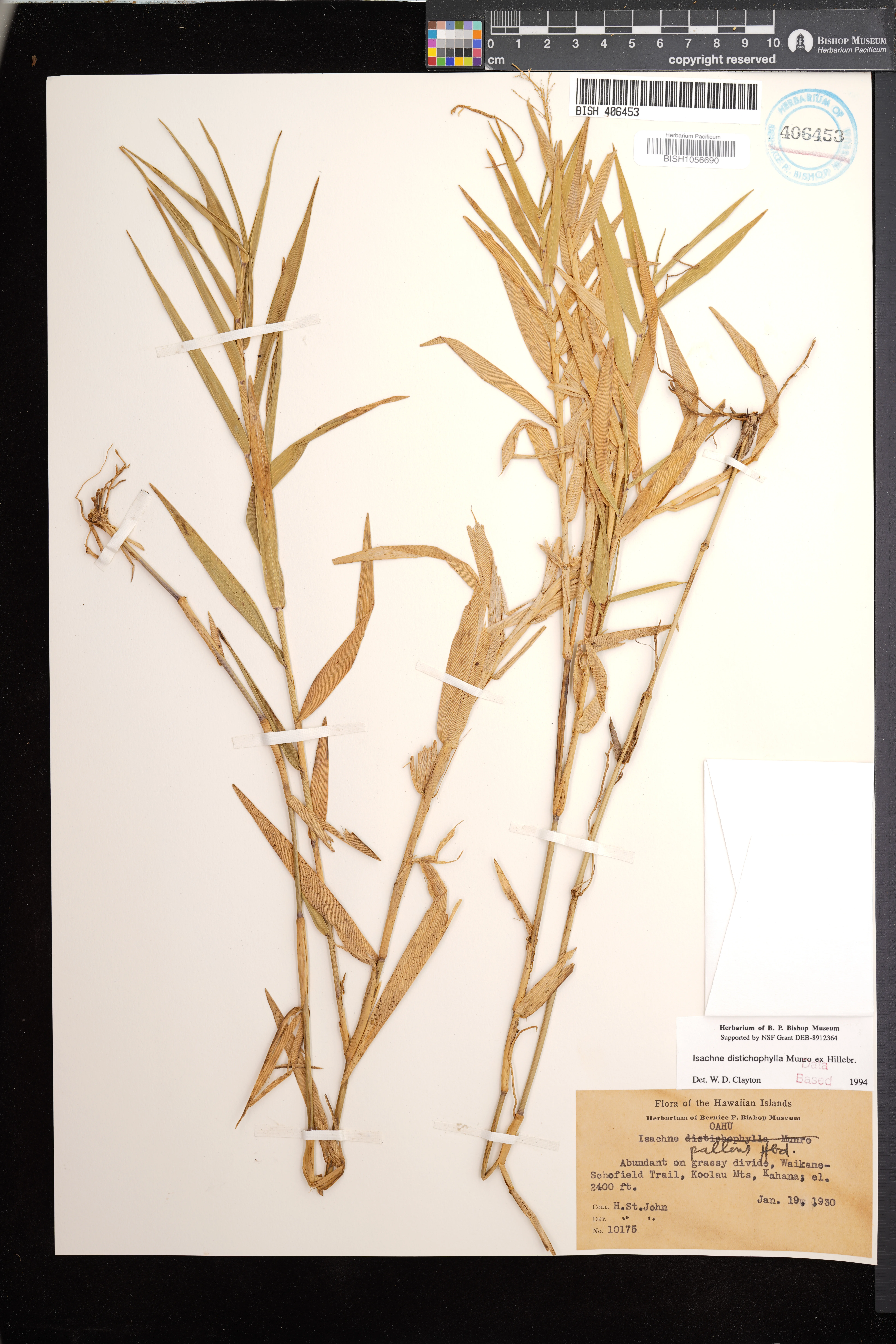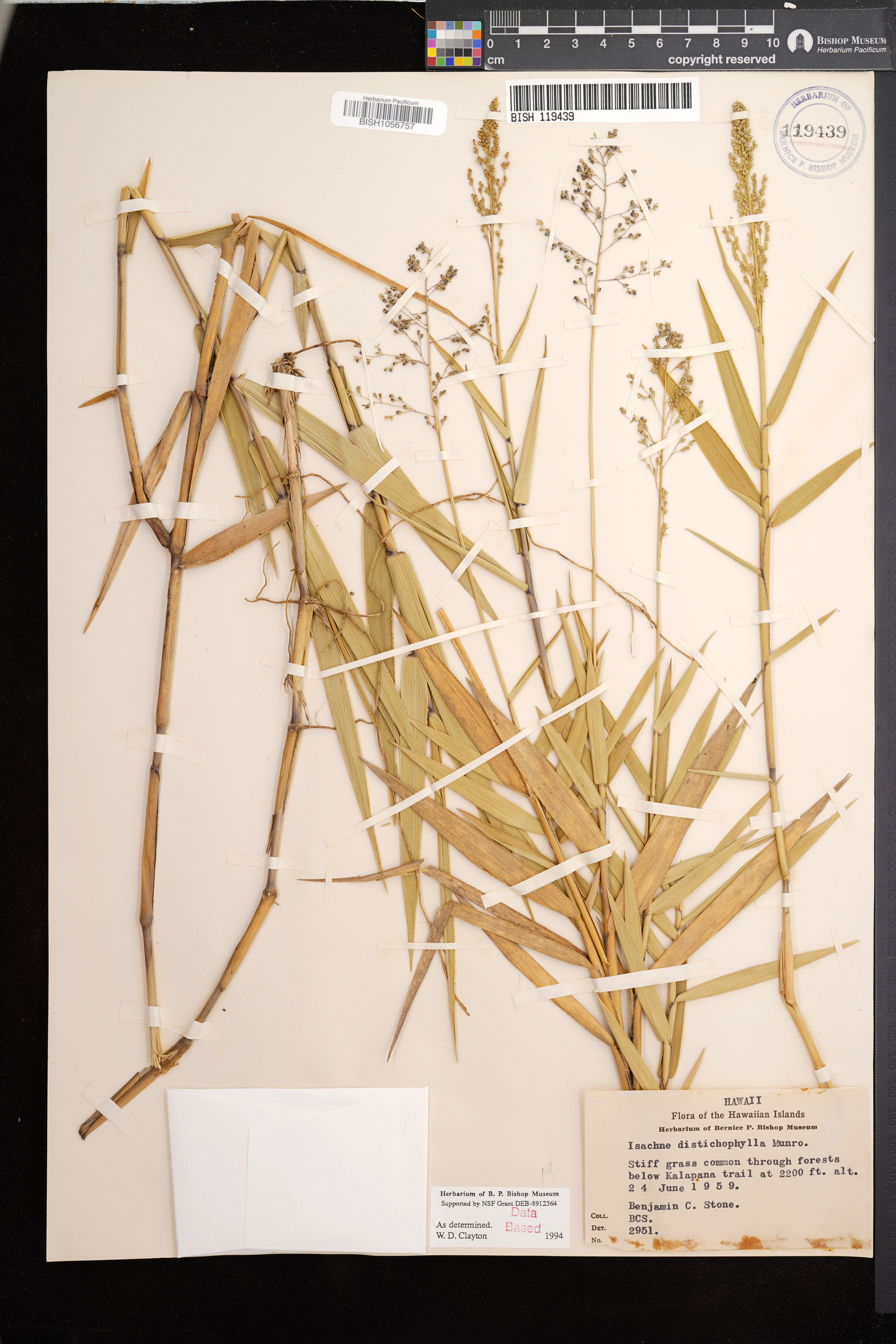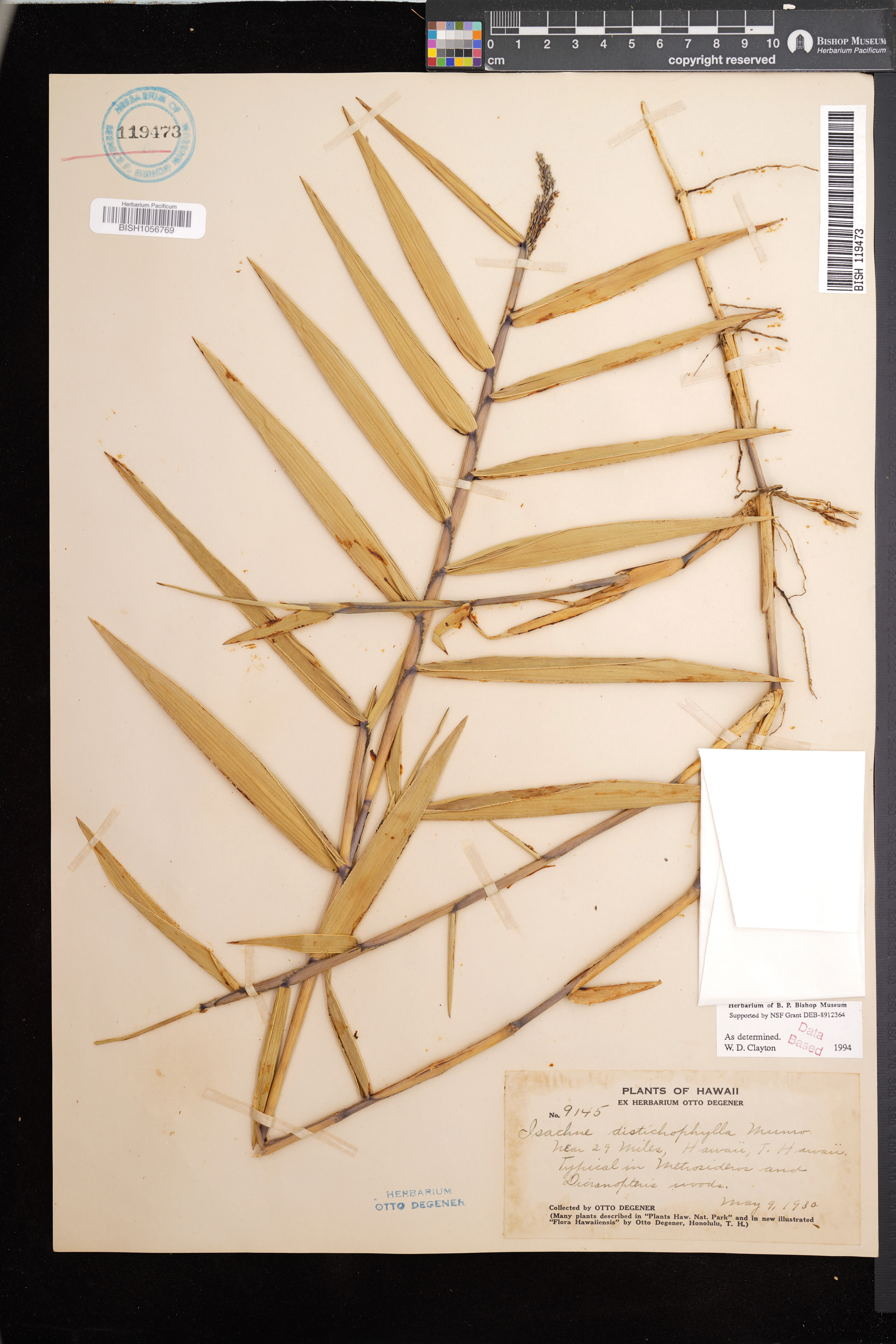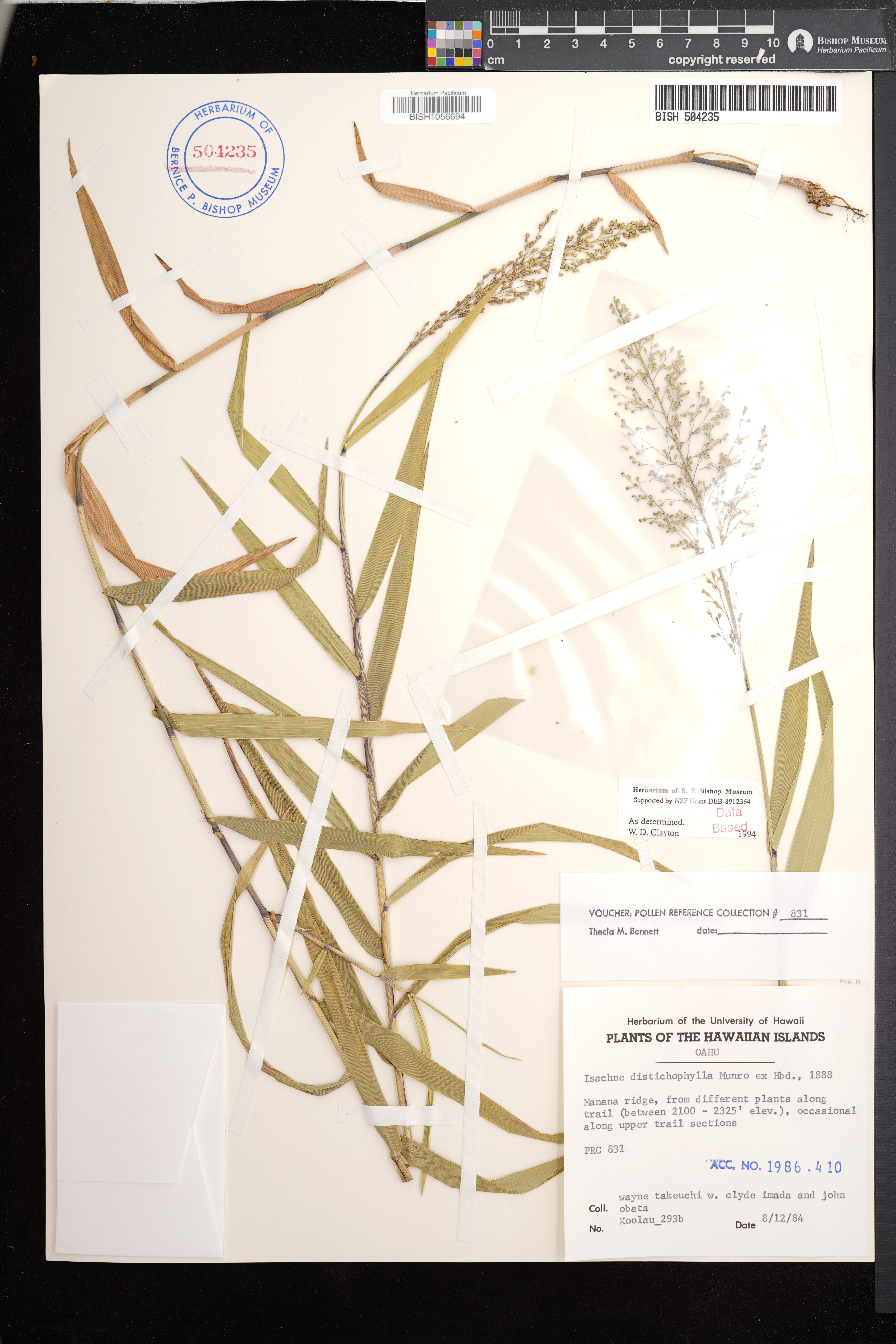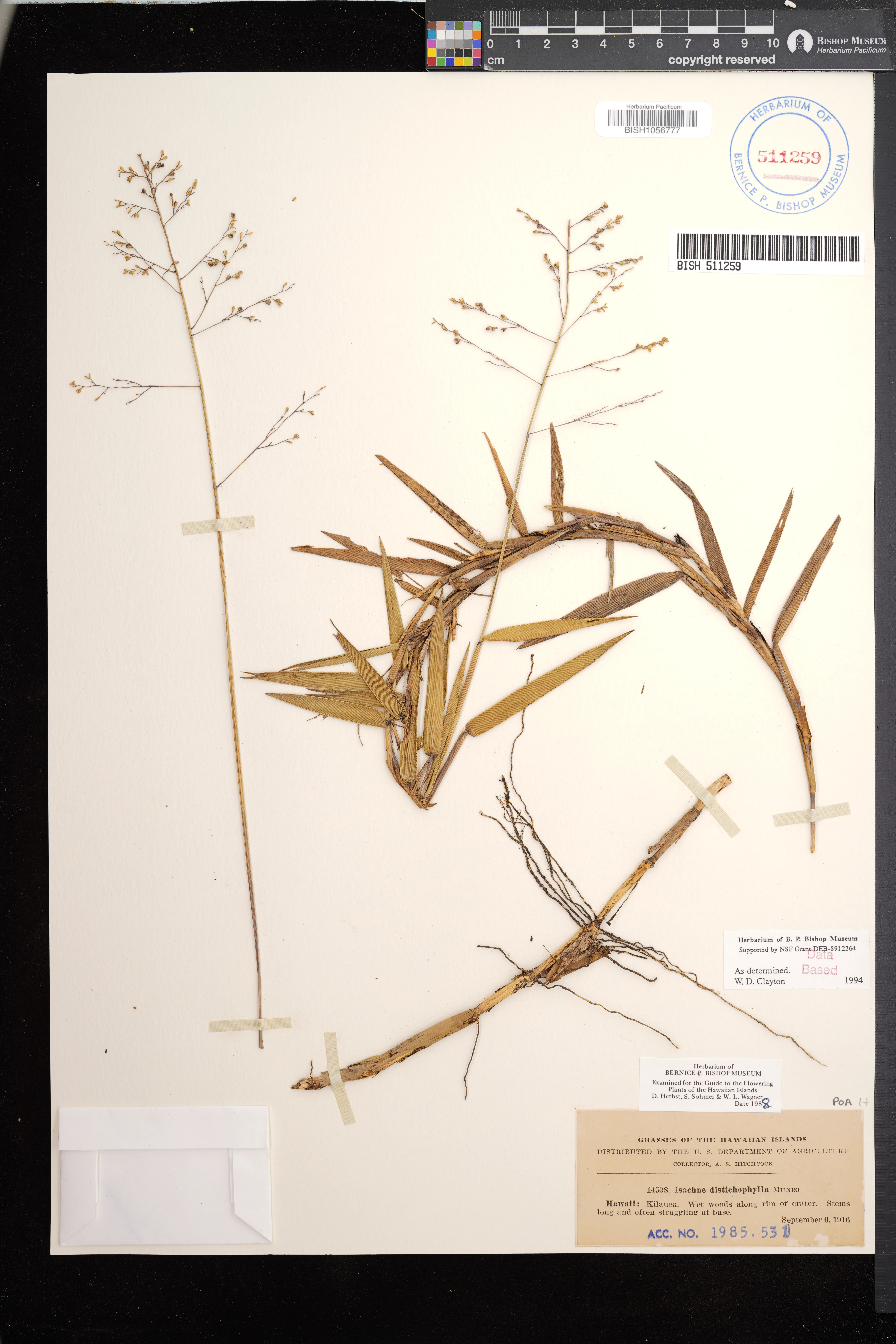 Forming small patches often w/ Oplismenus. Assoc w/Tetraplasandra-Broussaisia-Metrosideros-Dicranopteris. |