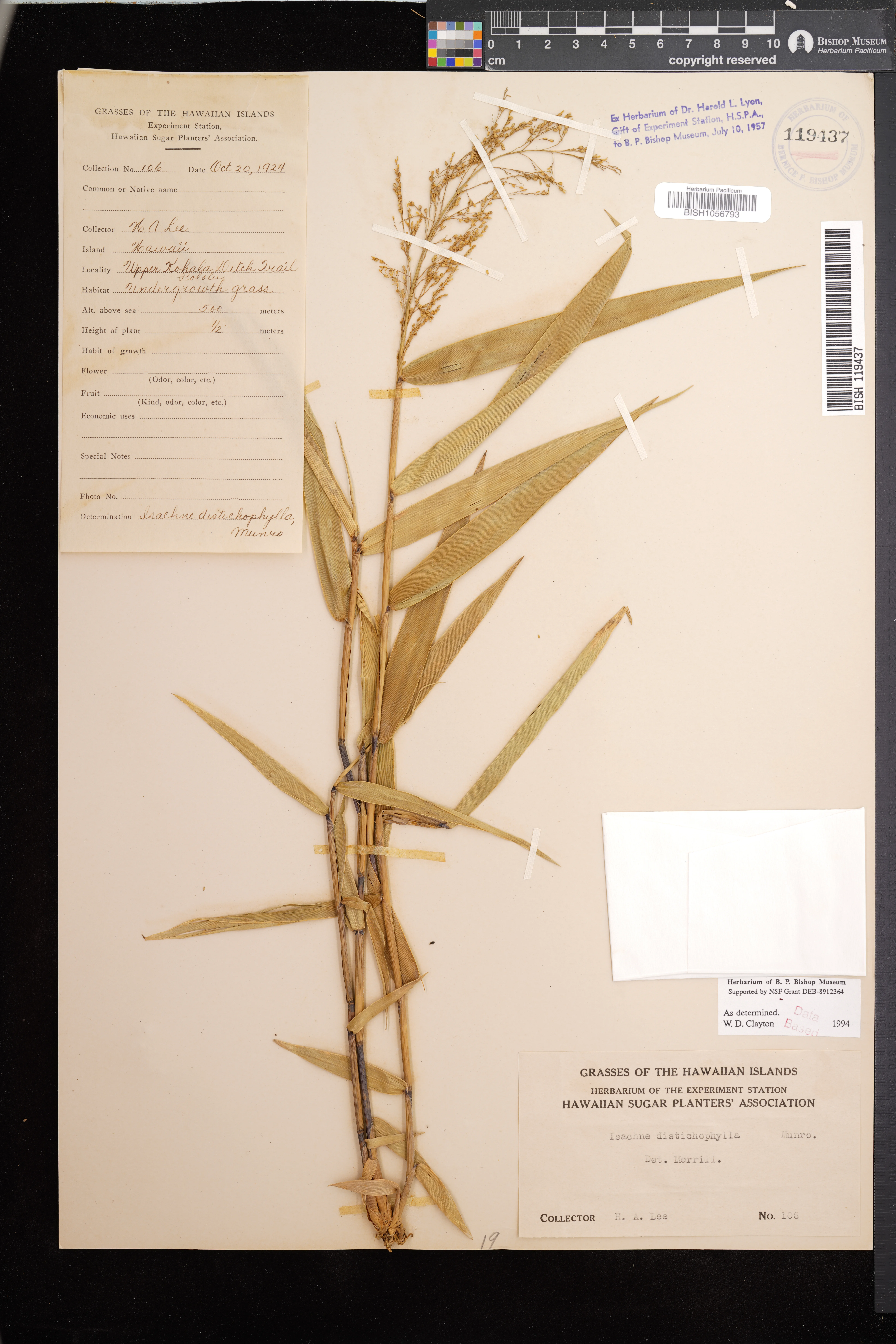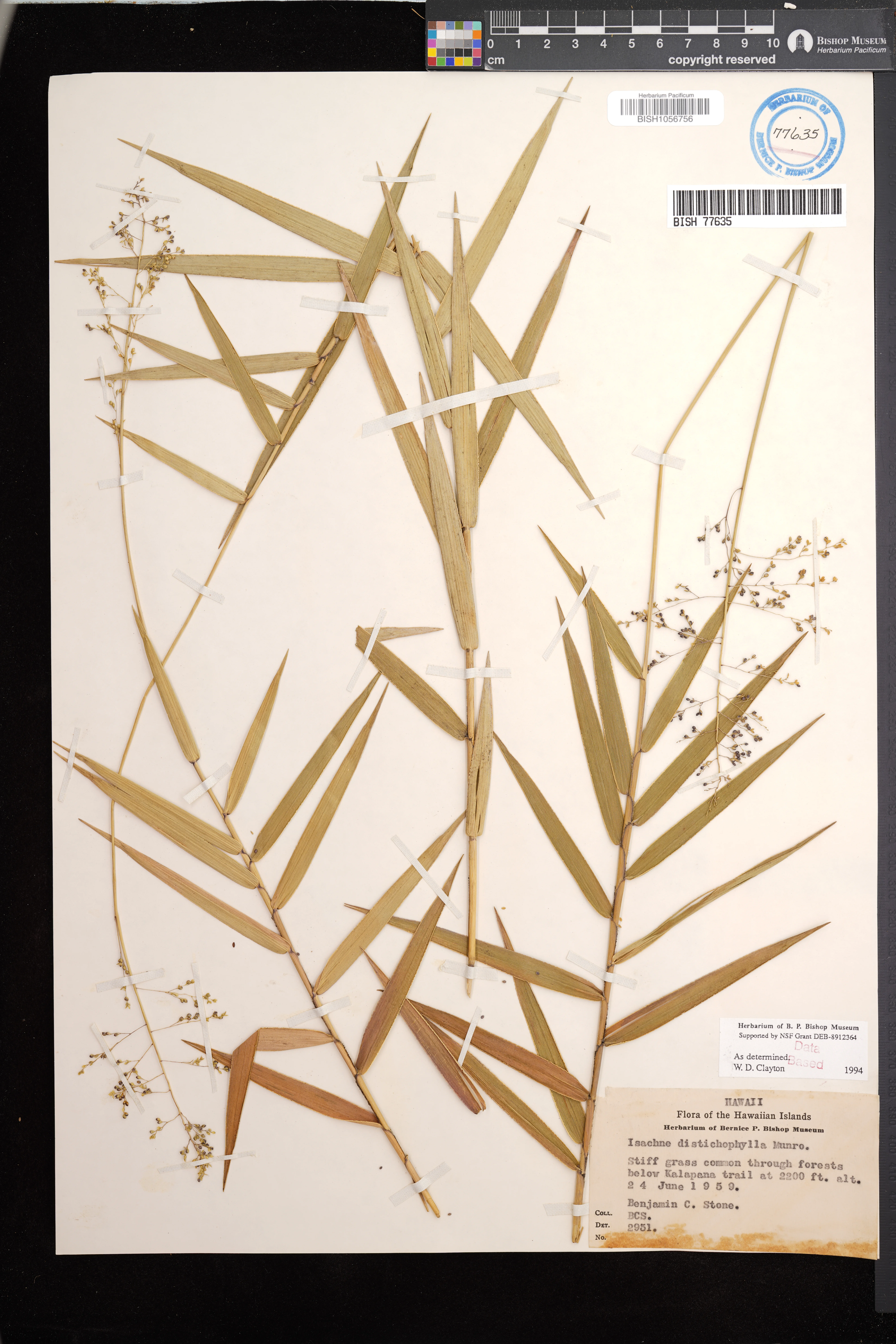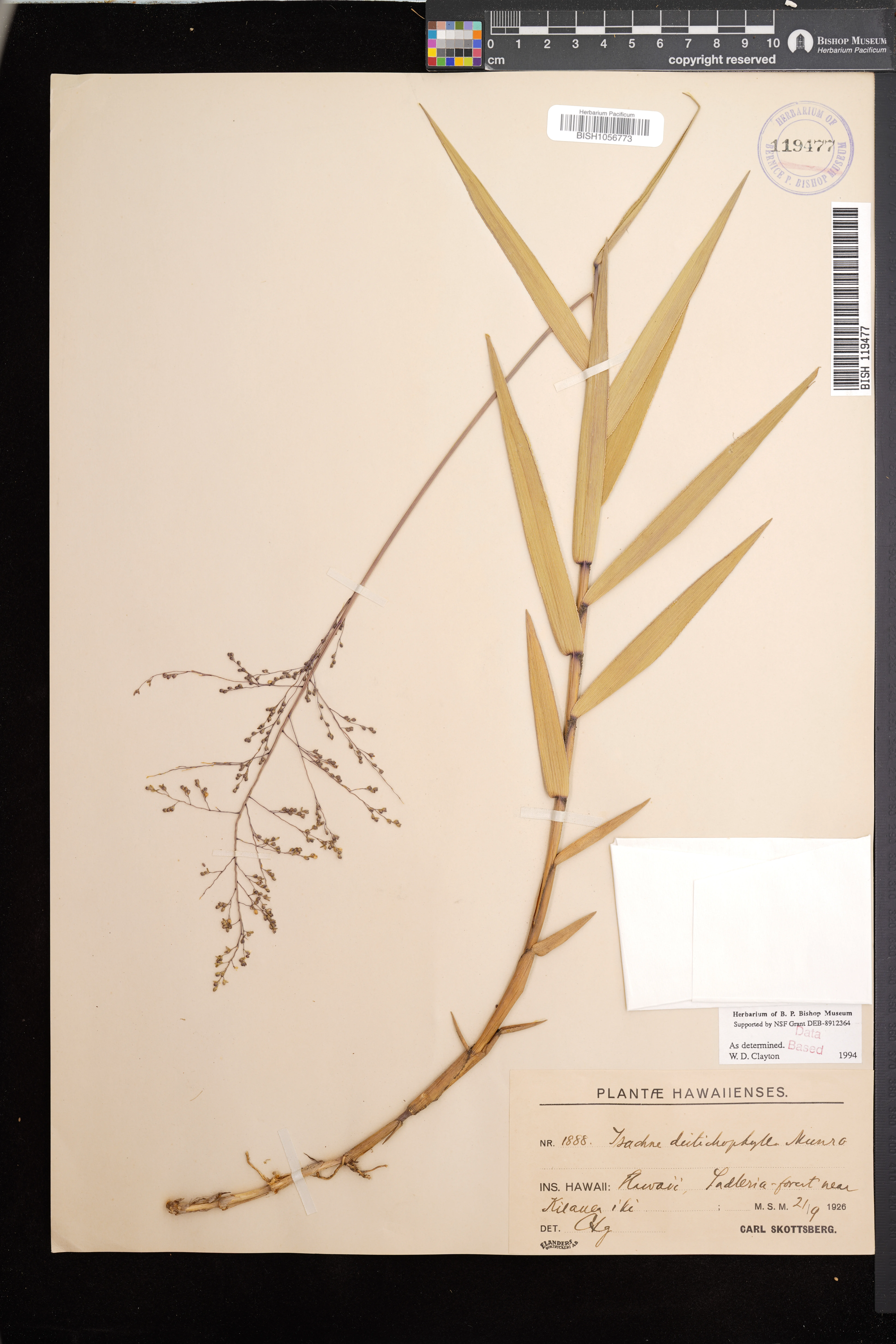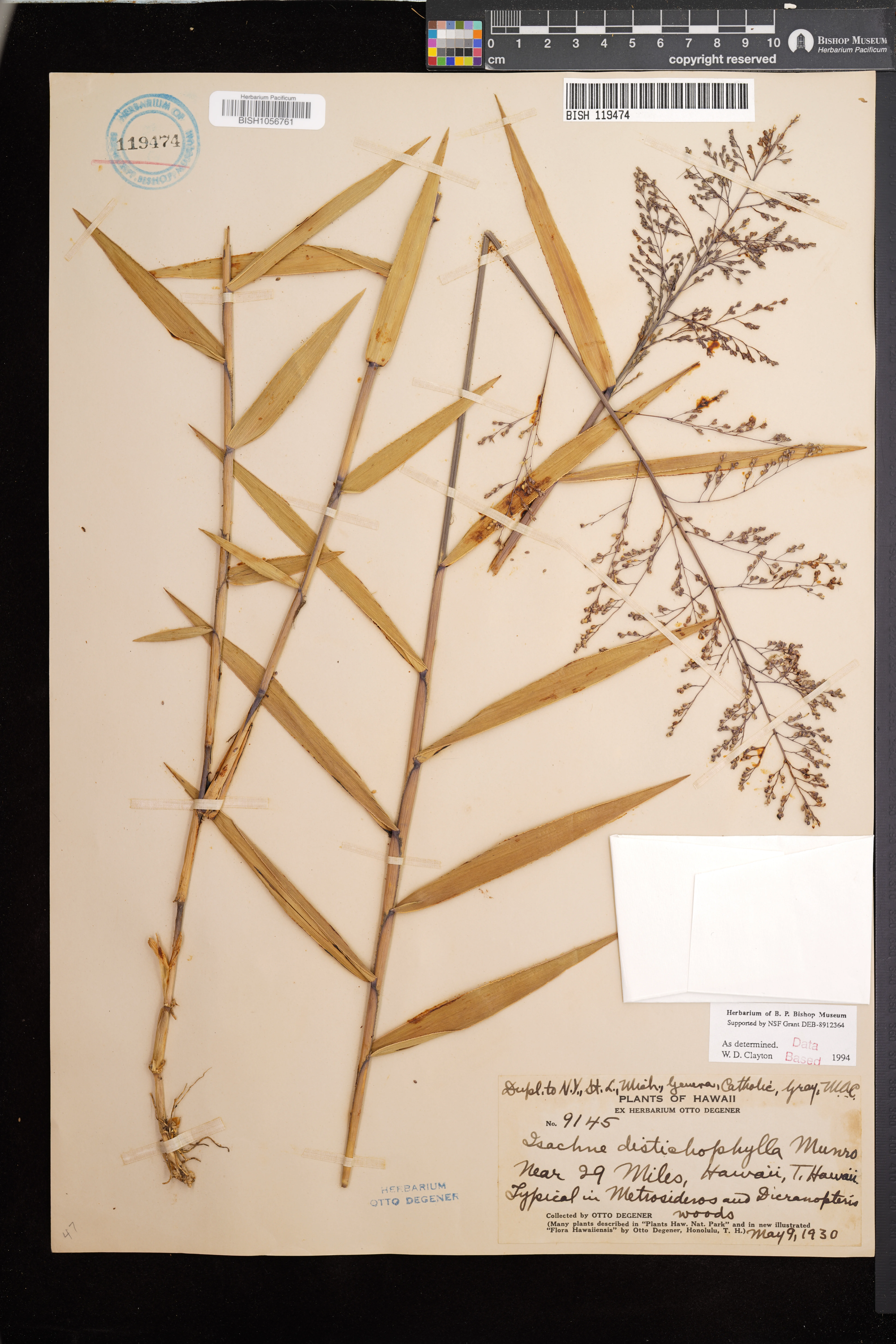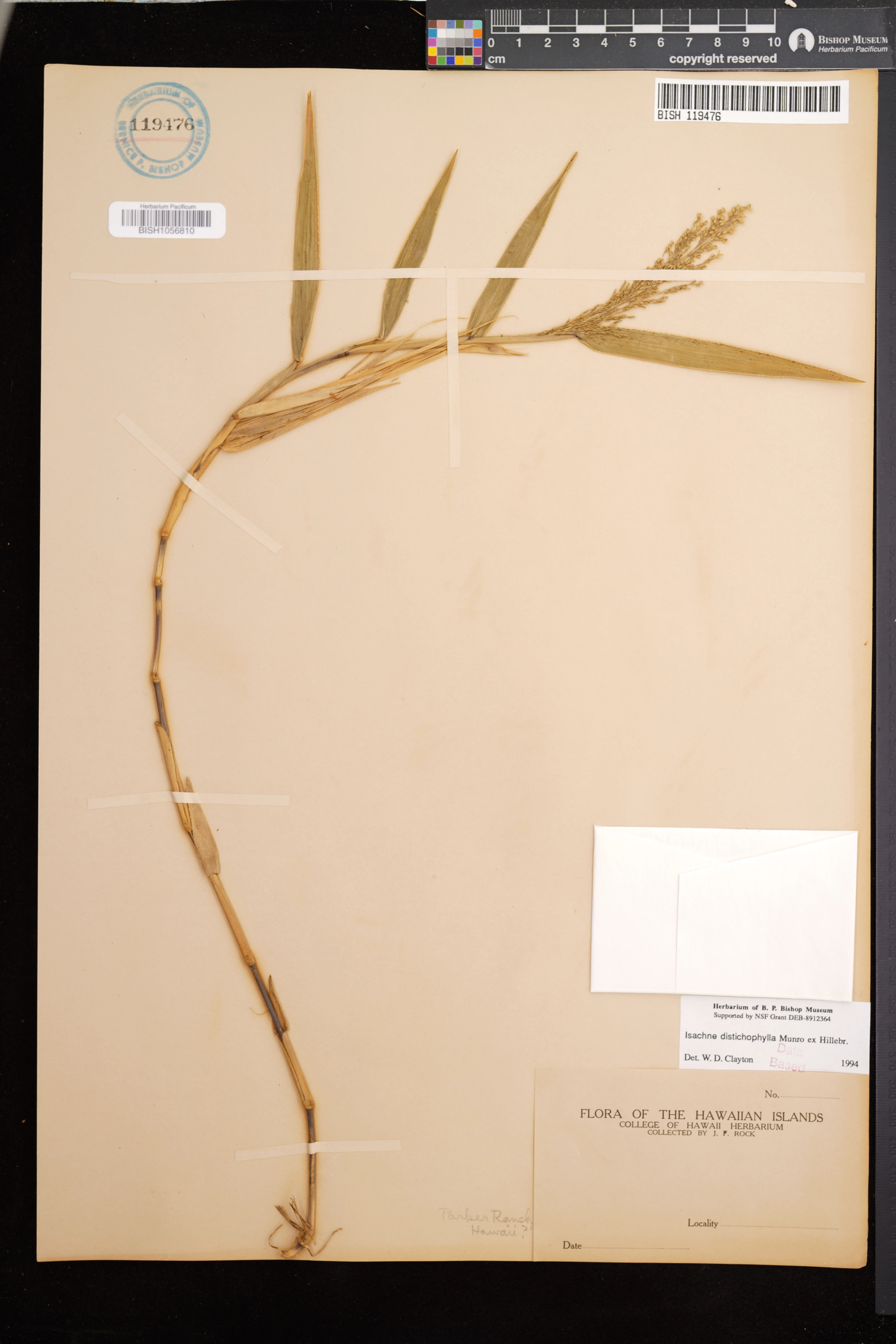 Forming small patches often w/ Oplismenus. Assoc w/Tetraplasandra-Broussaisia-Metrosideros-Dicranopteris. |