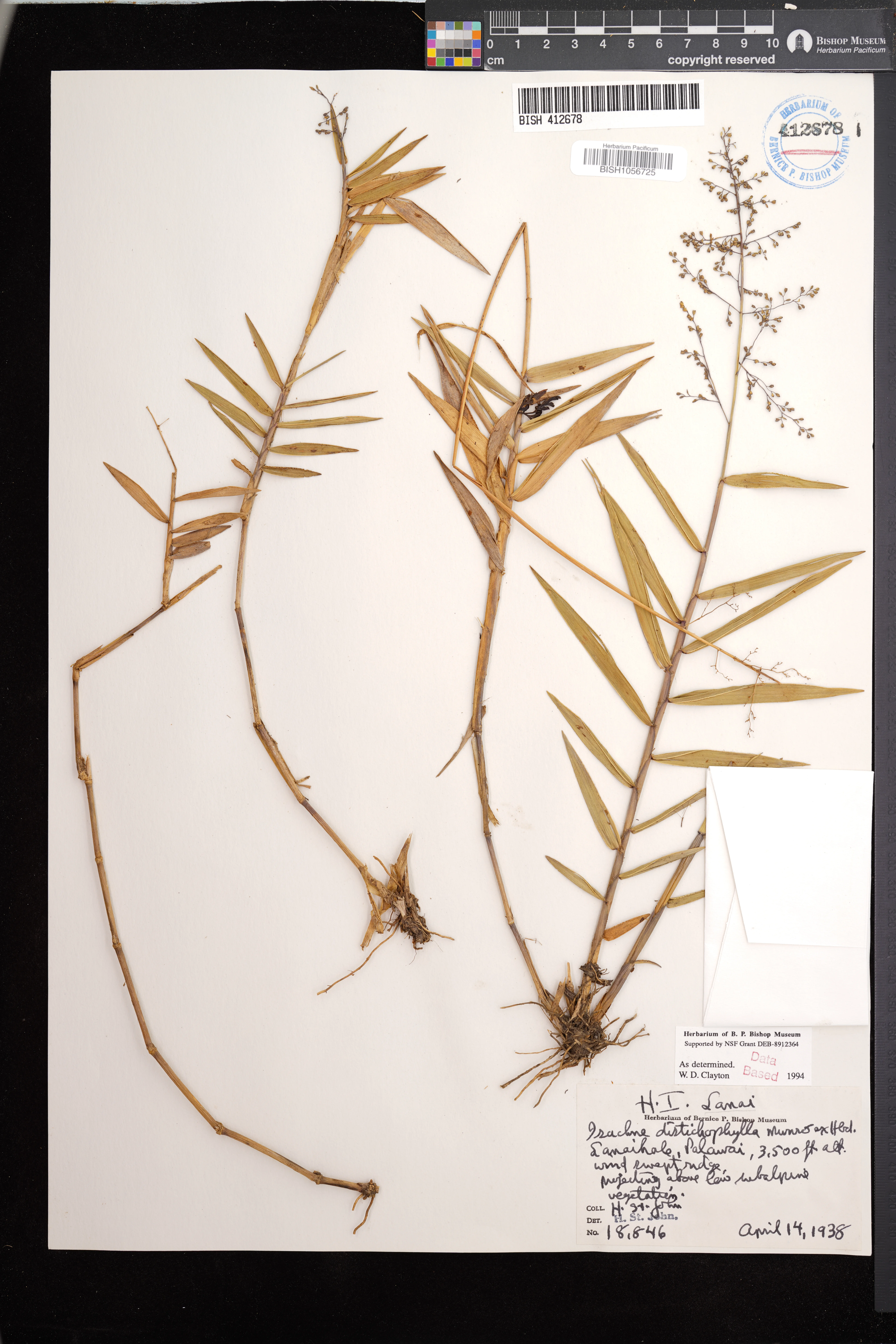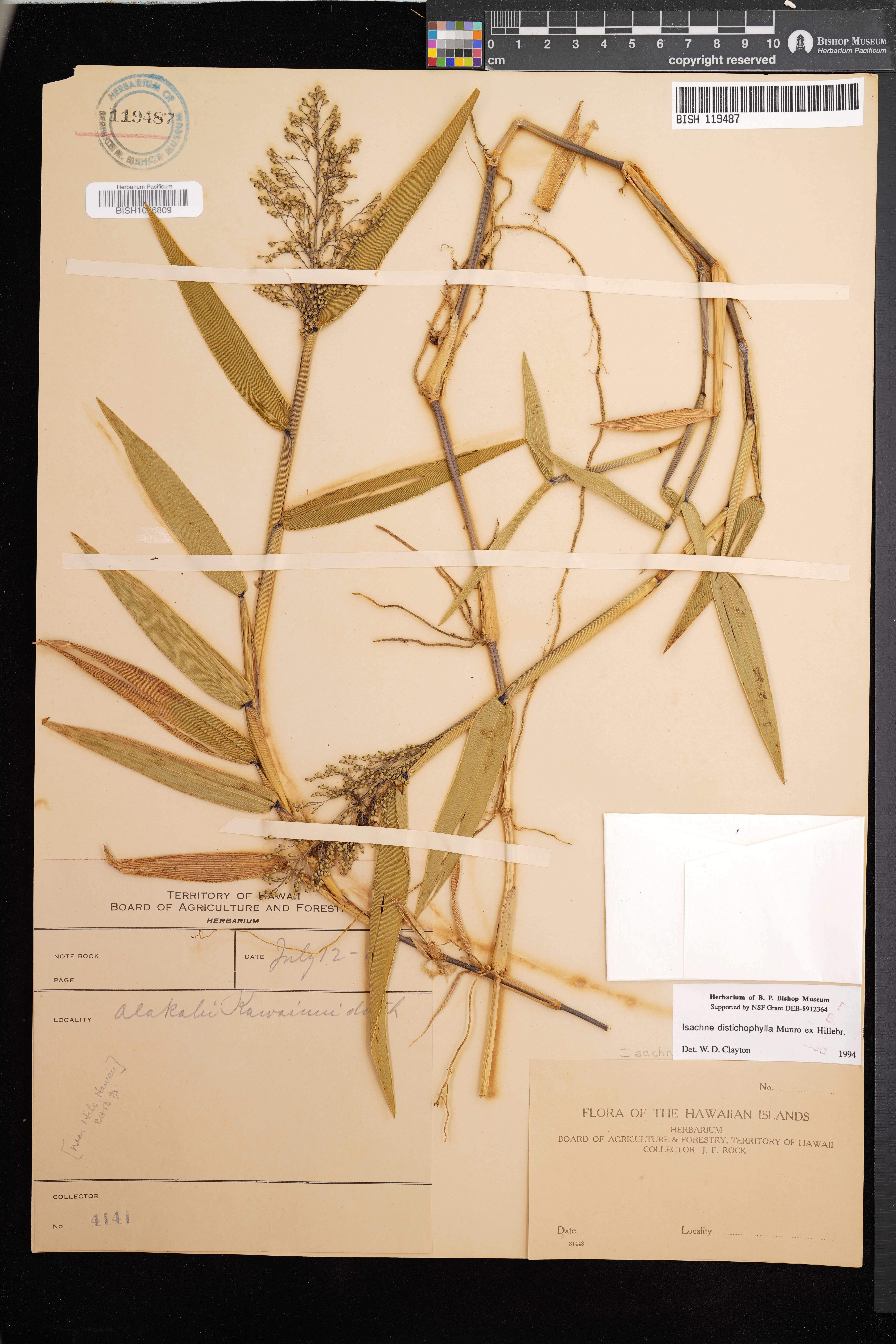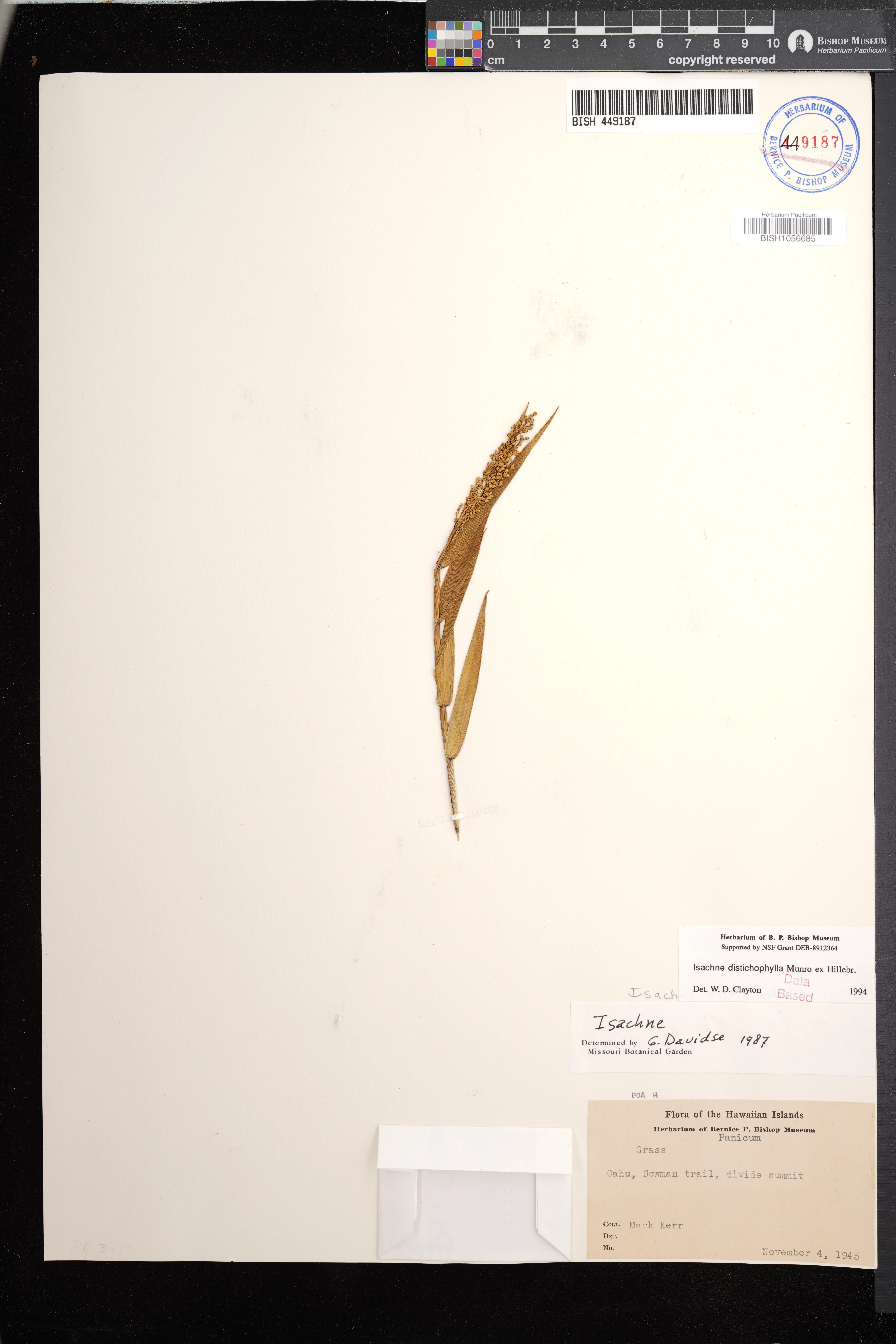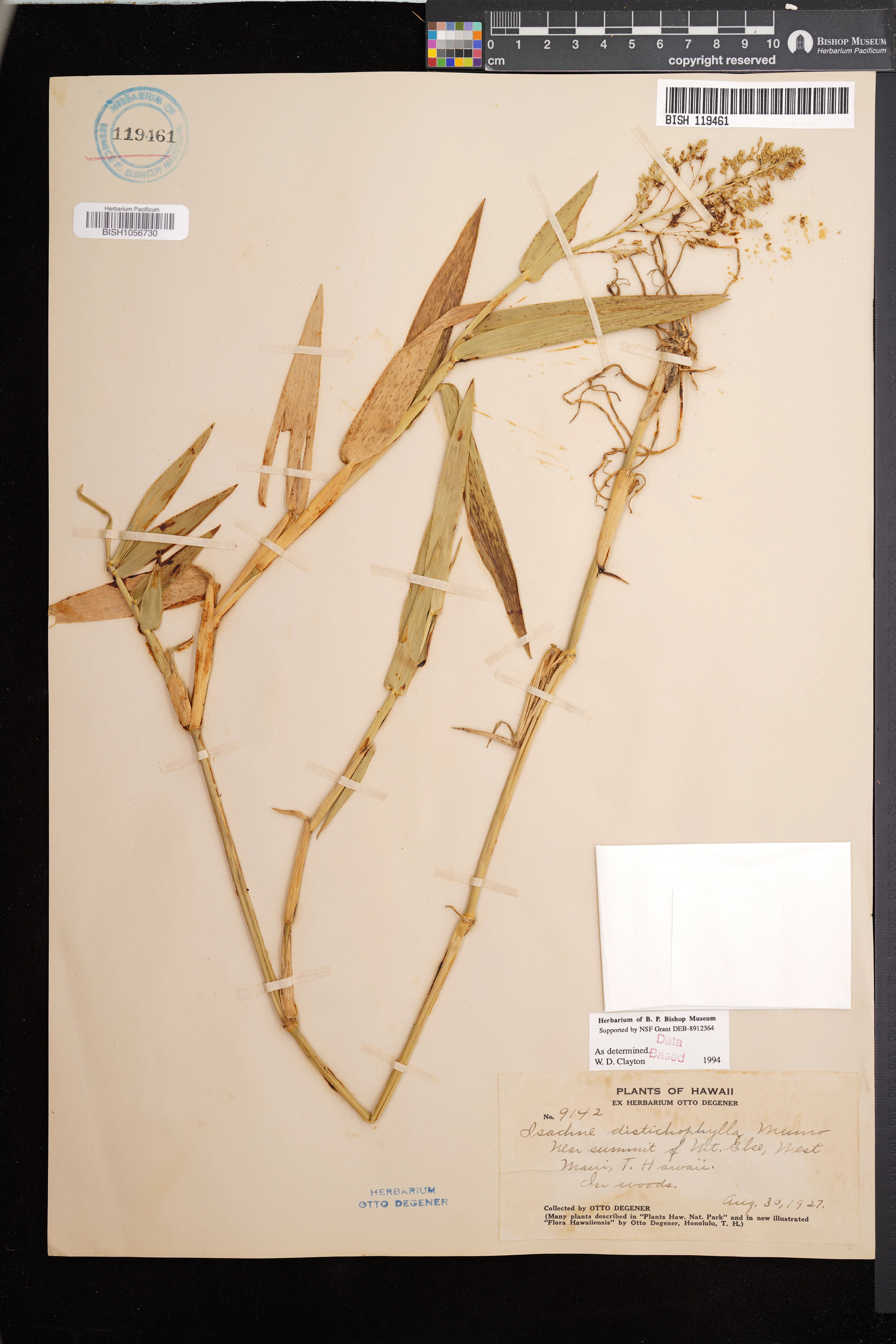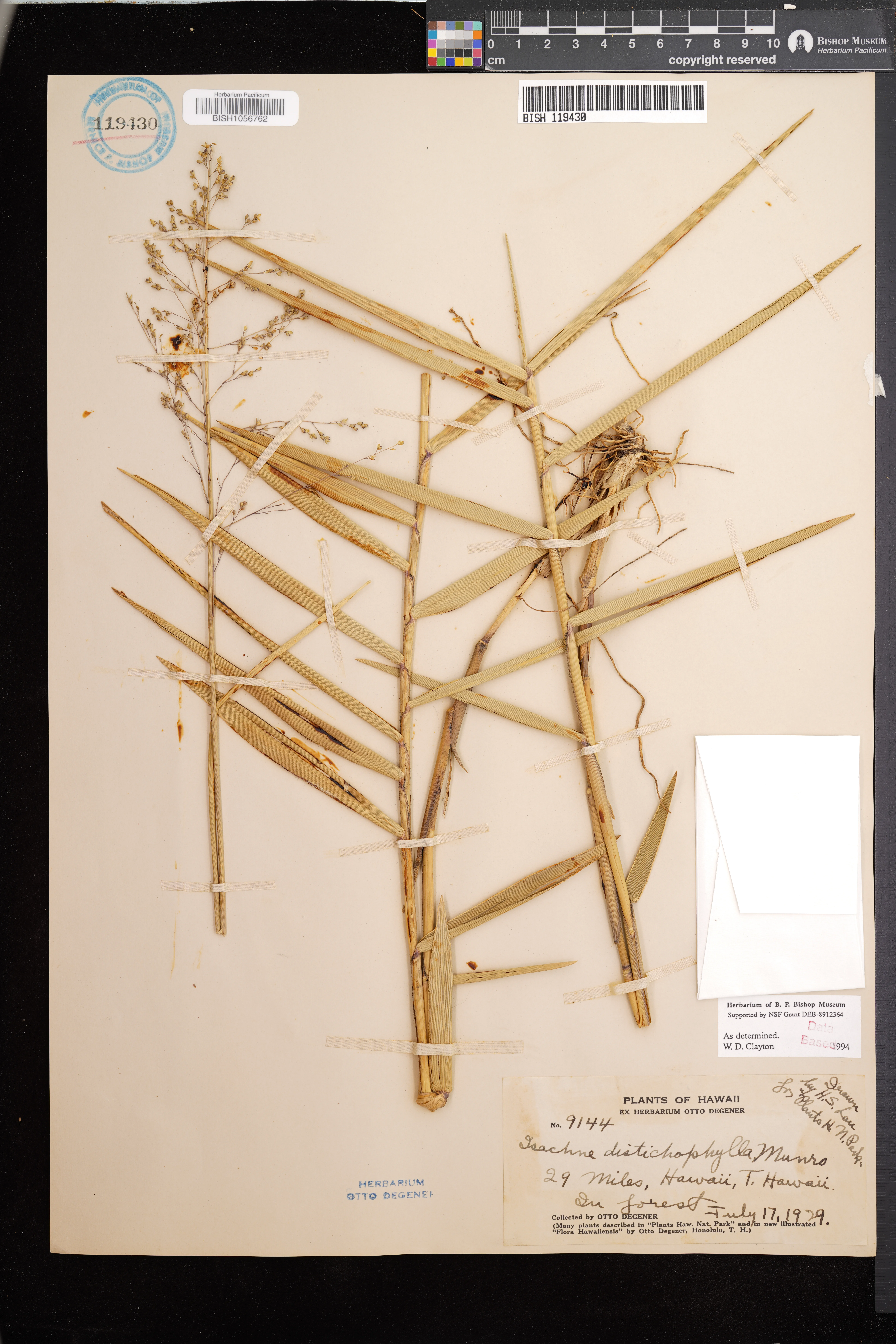 Forming small patches often w/ Oplismenus. Assoc w/Tetraplasandra-Broussaisia-Metrosideros-Dicranopteris. |