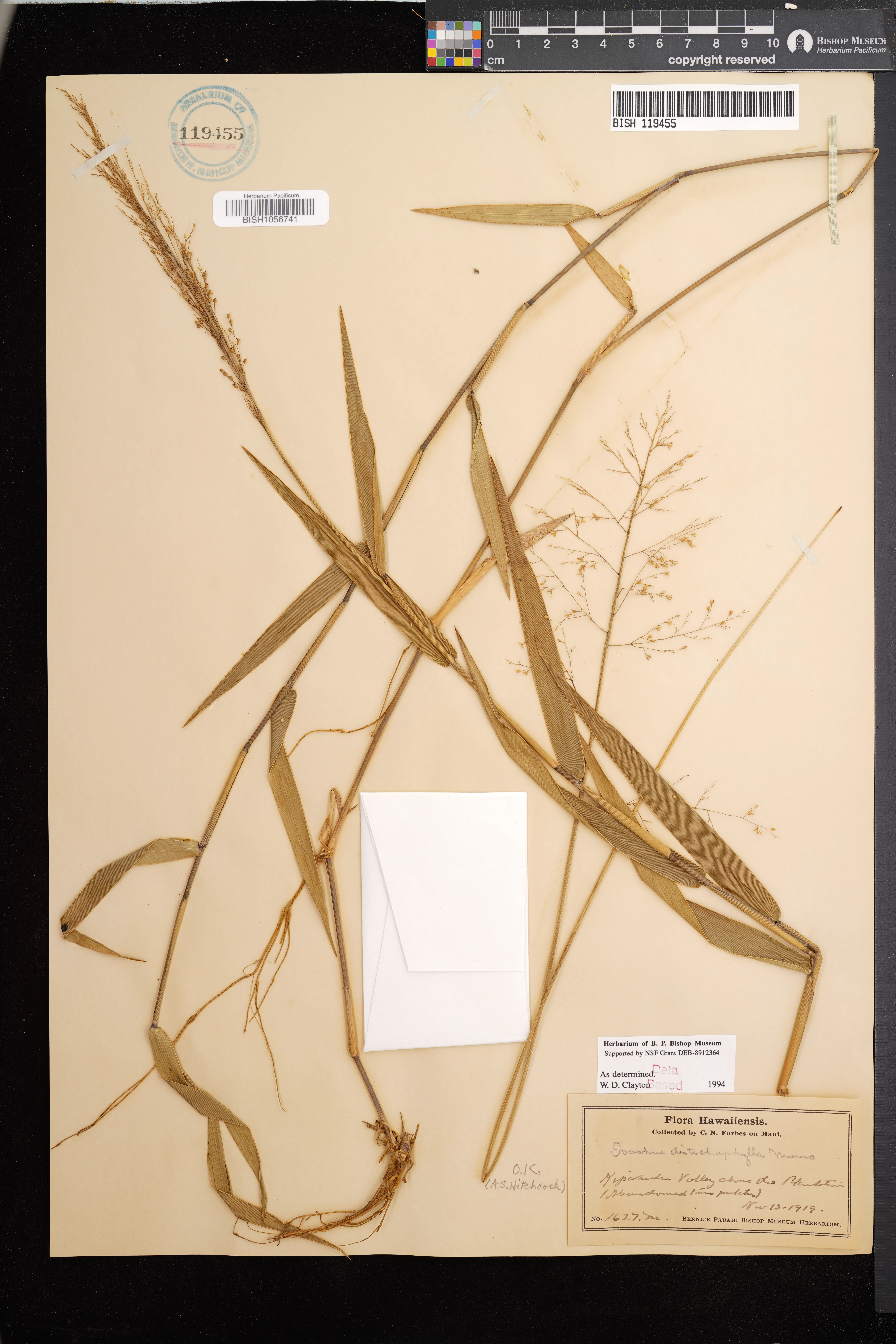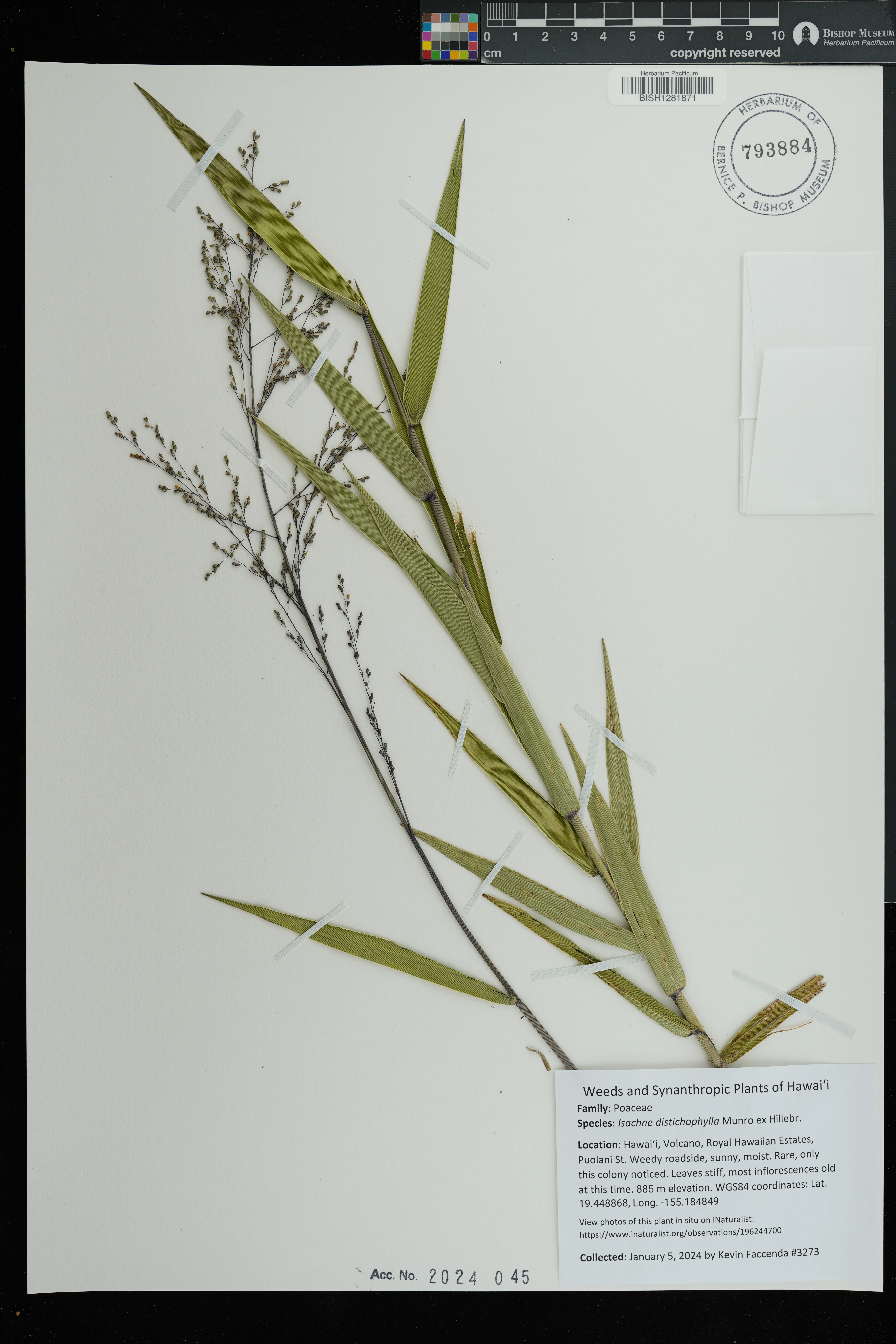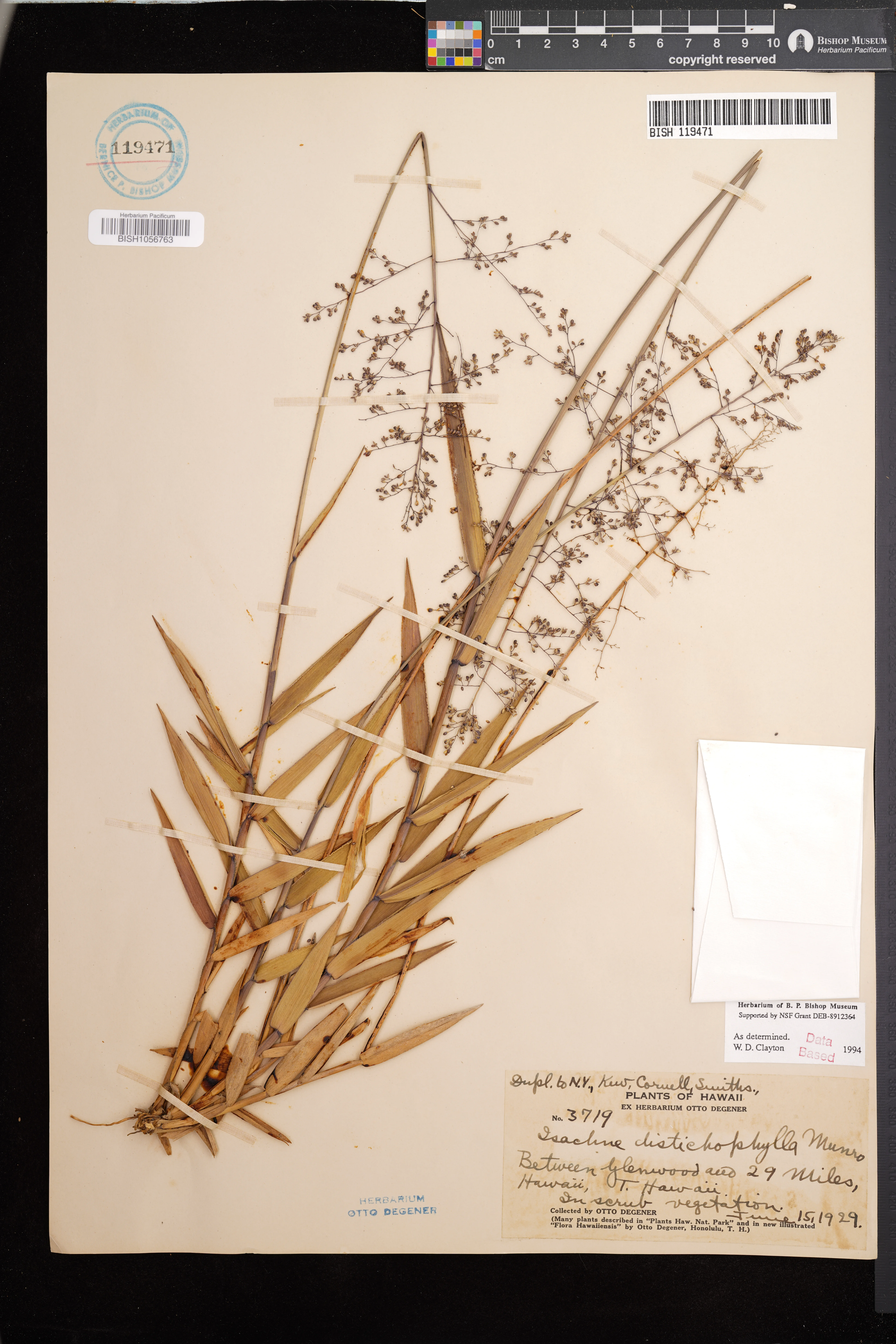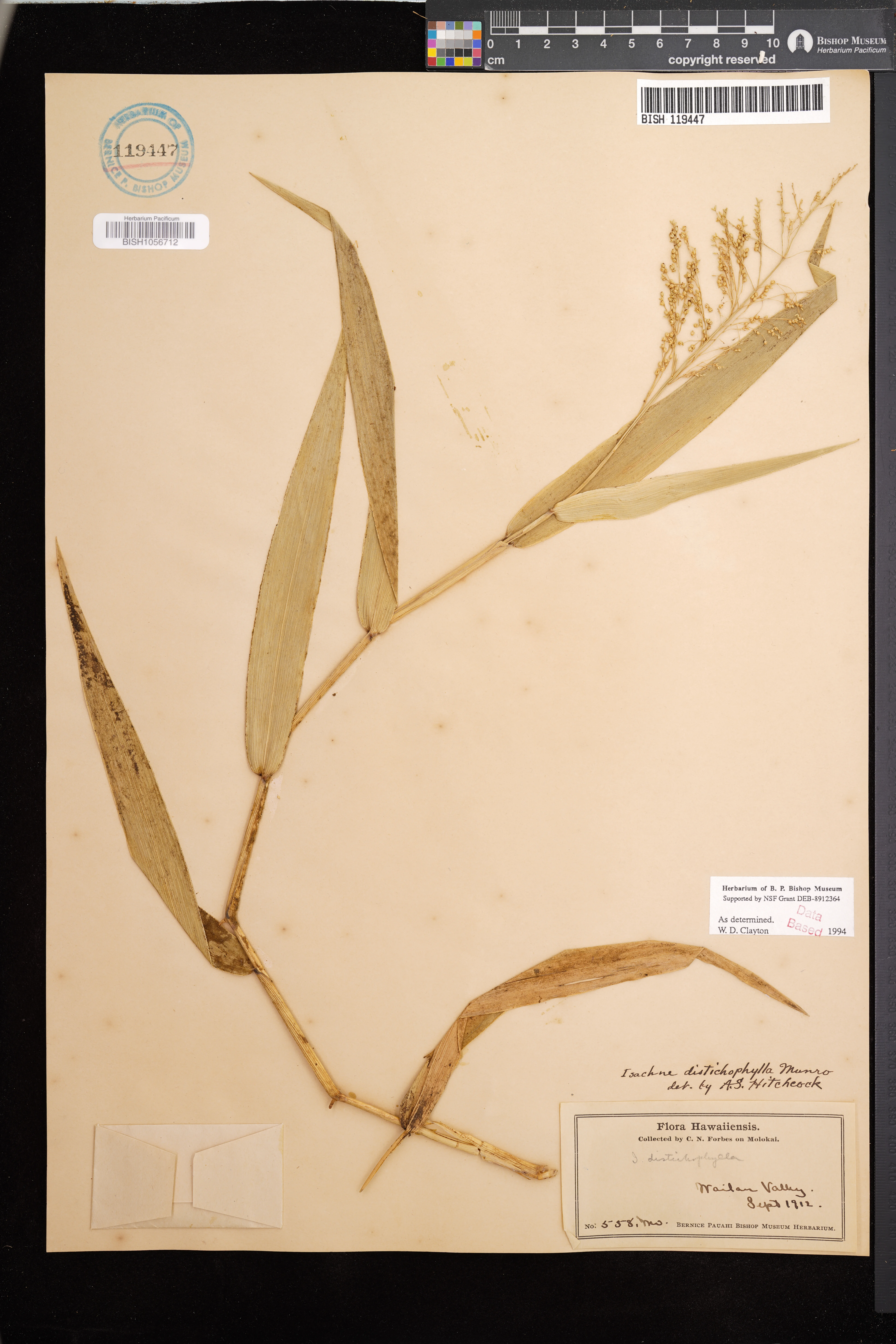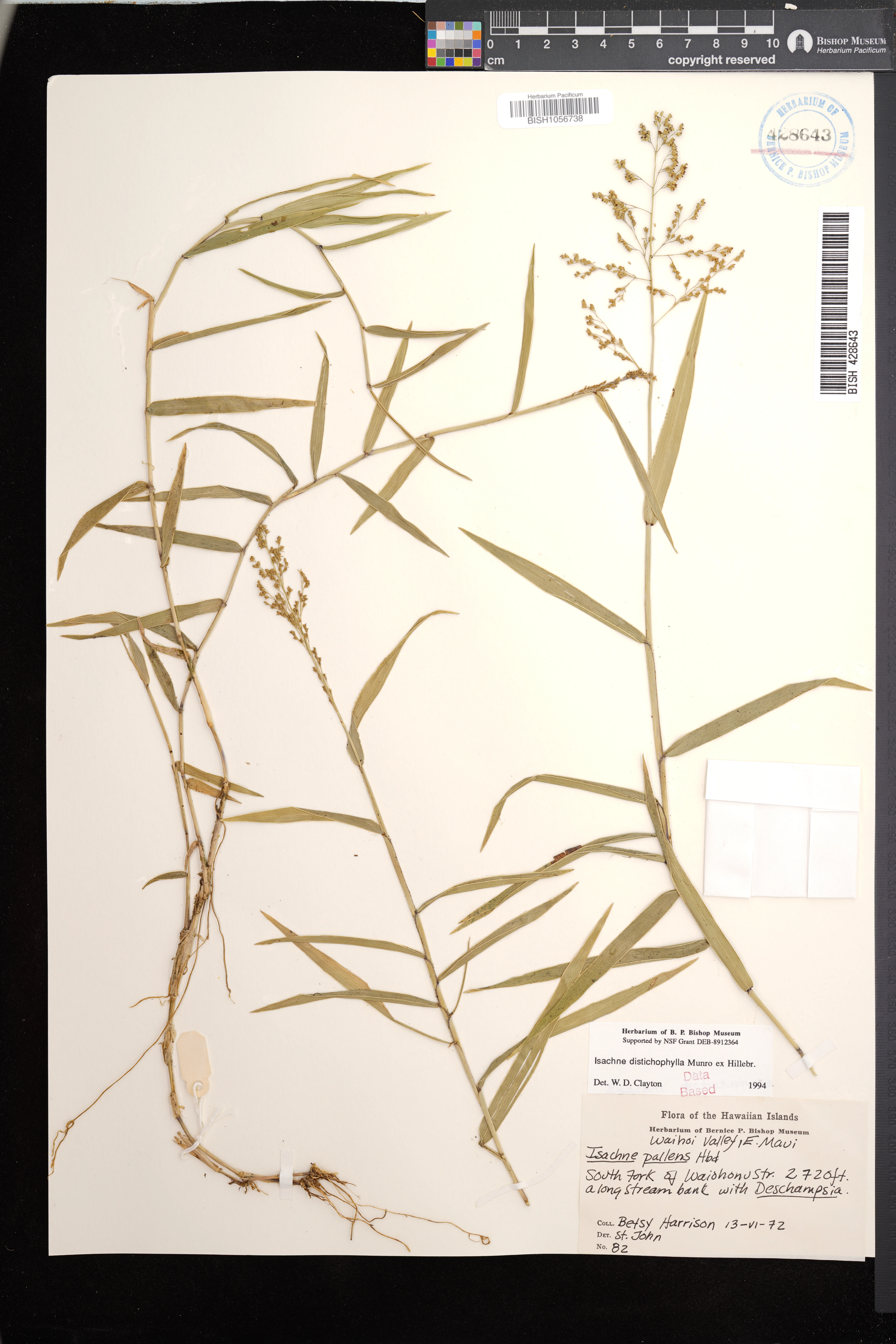 Forming small patches often w/ Oplismenus. Assoc w/Tetraplasandra-Broussaisia-Metrosideros-Dicranopteris. |