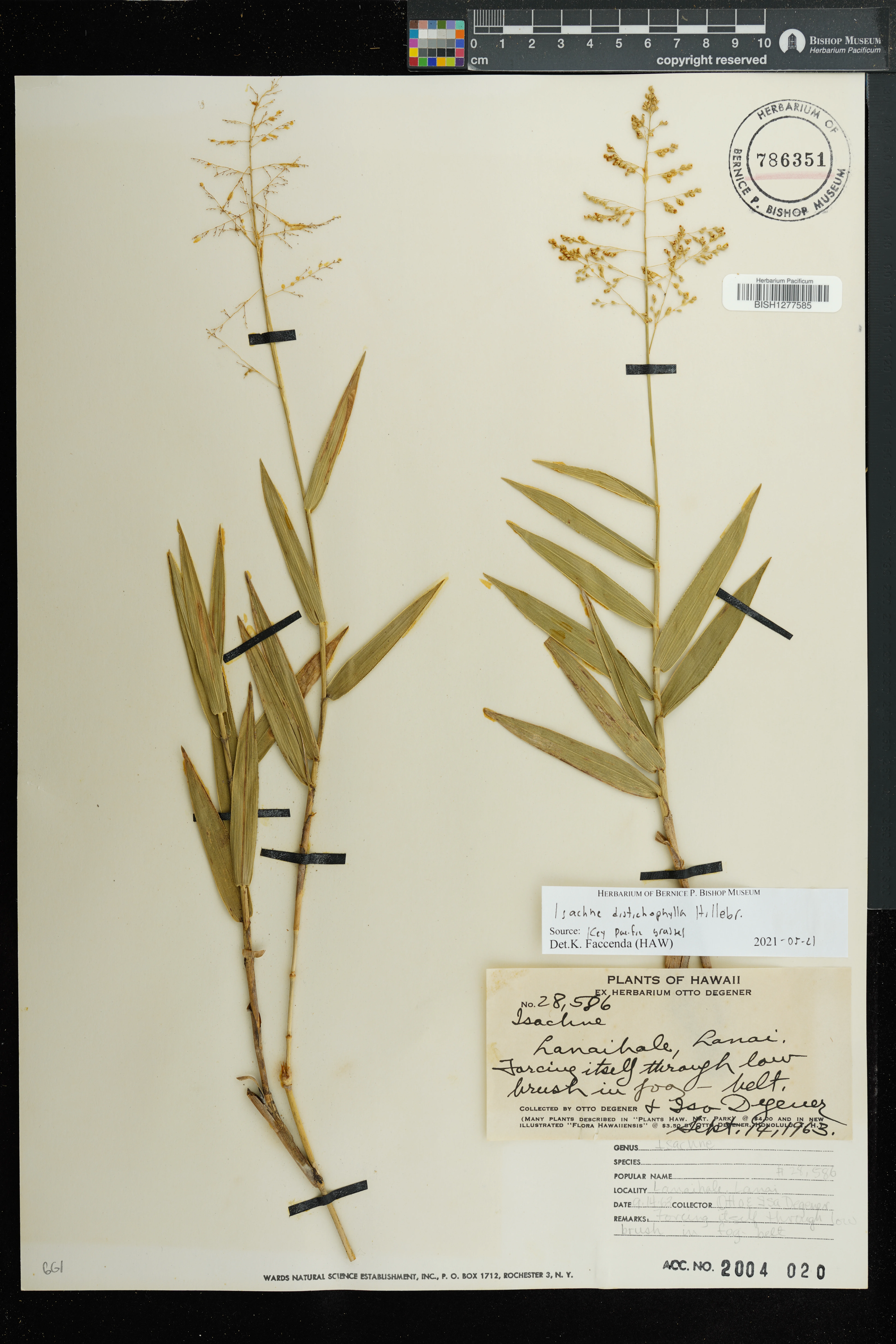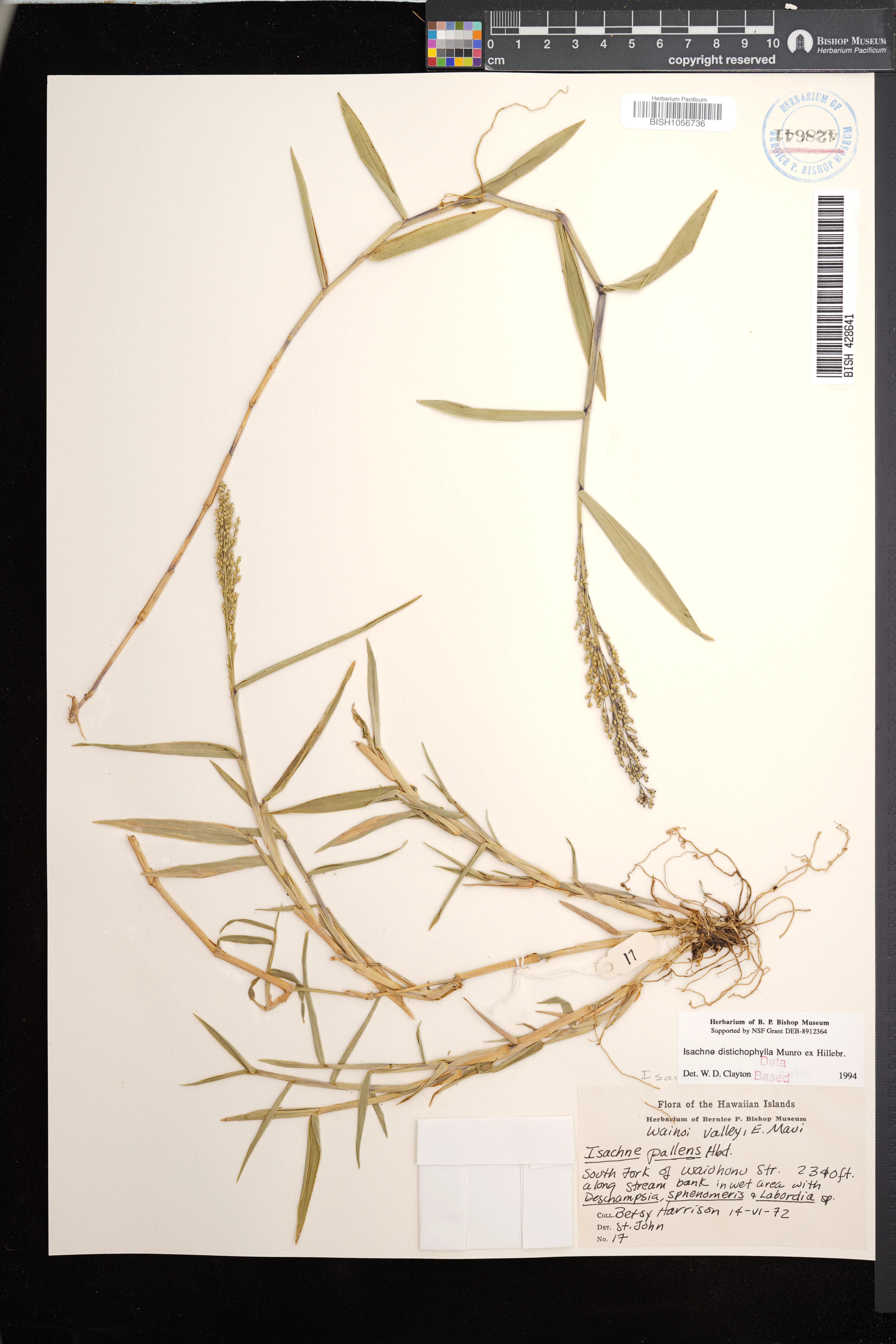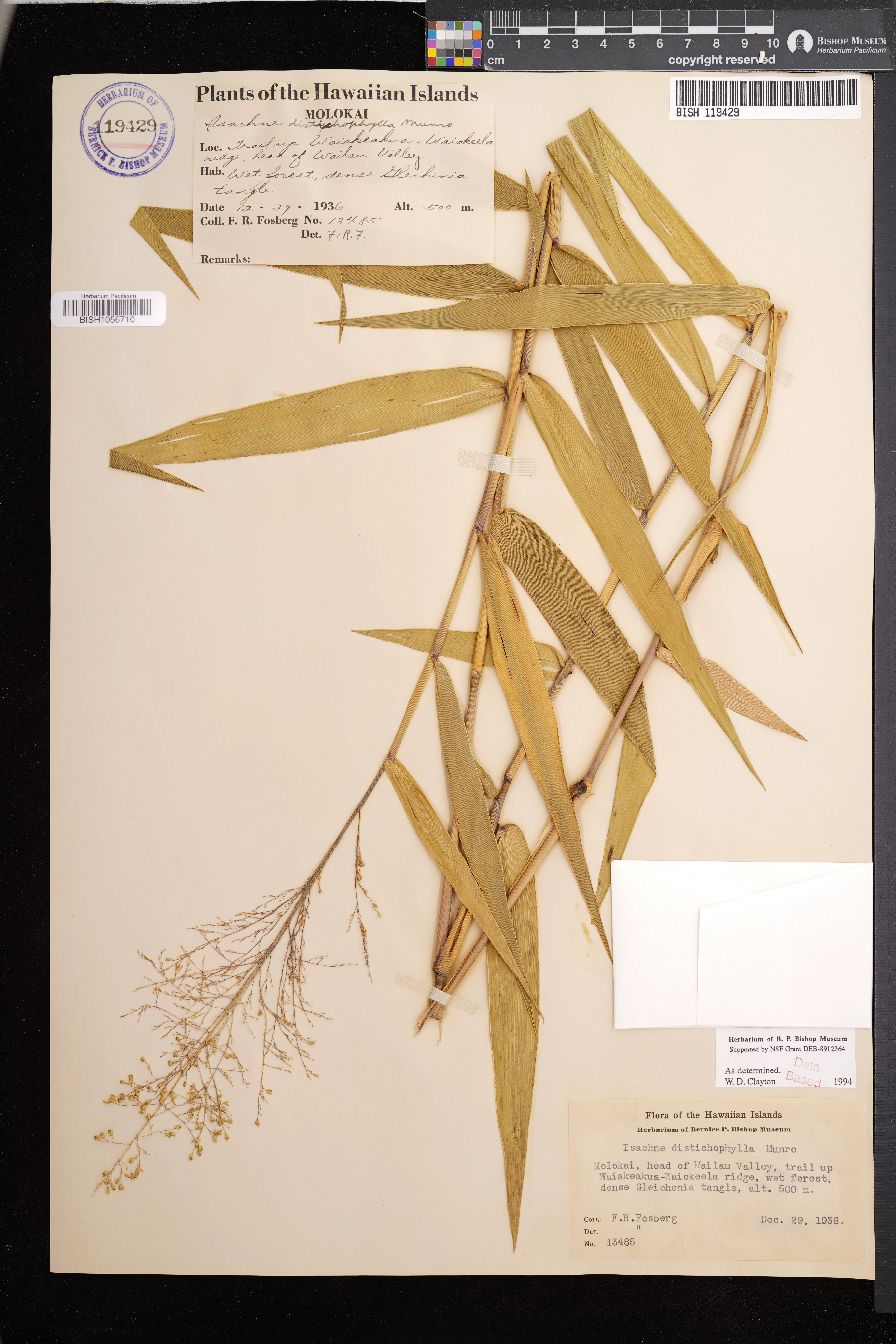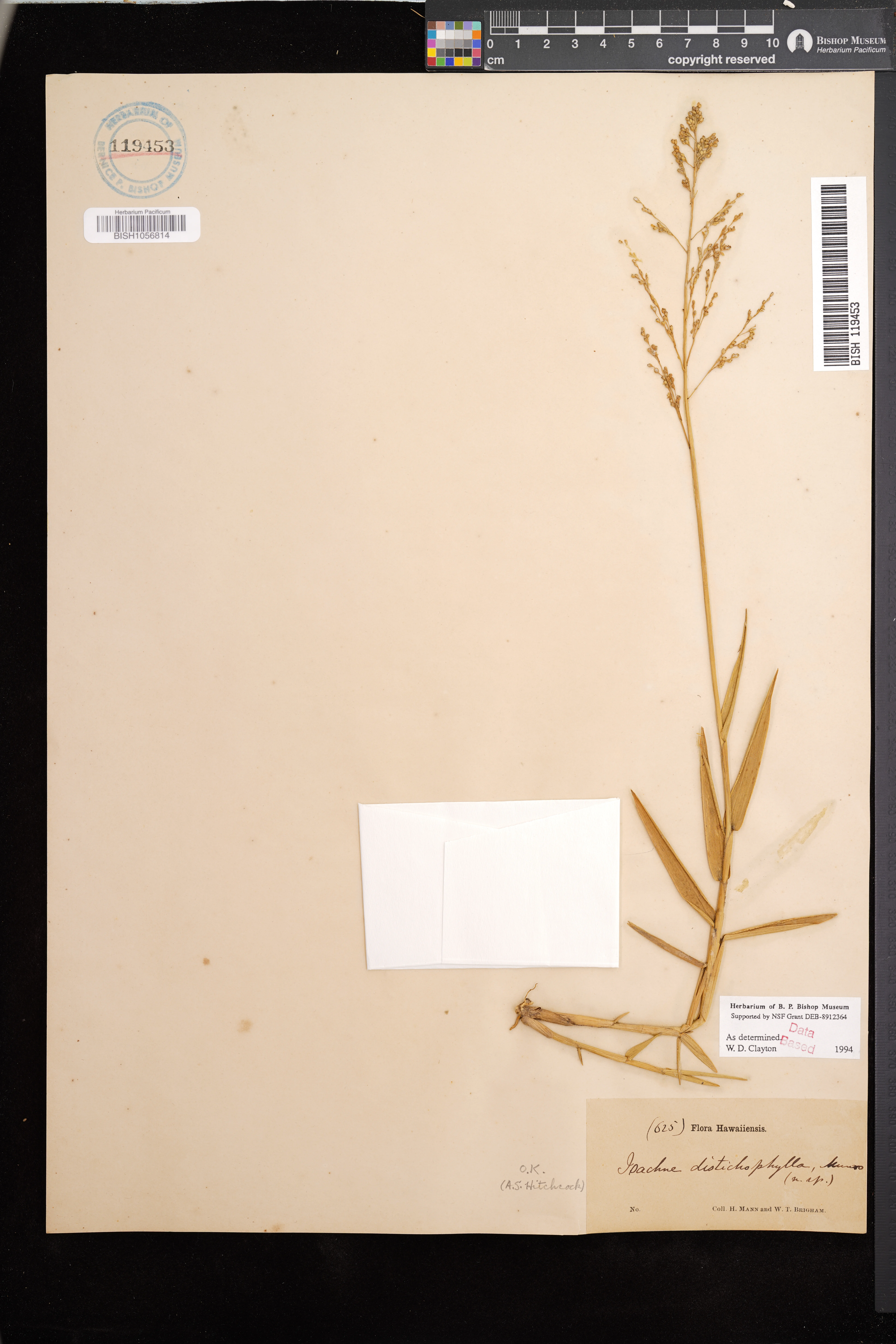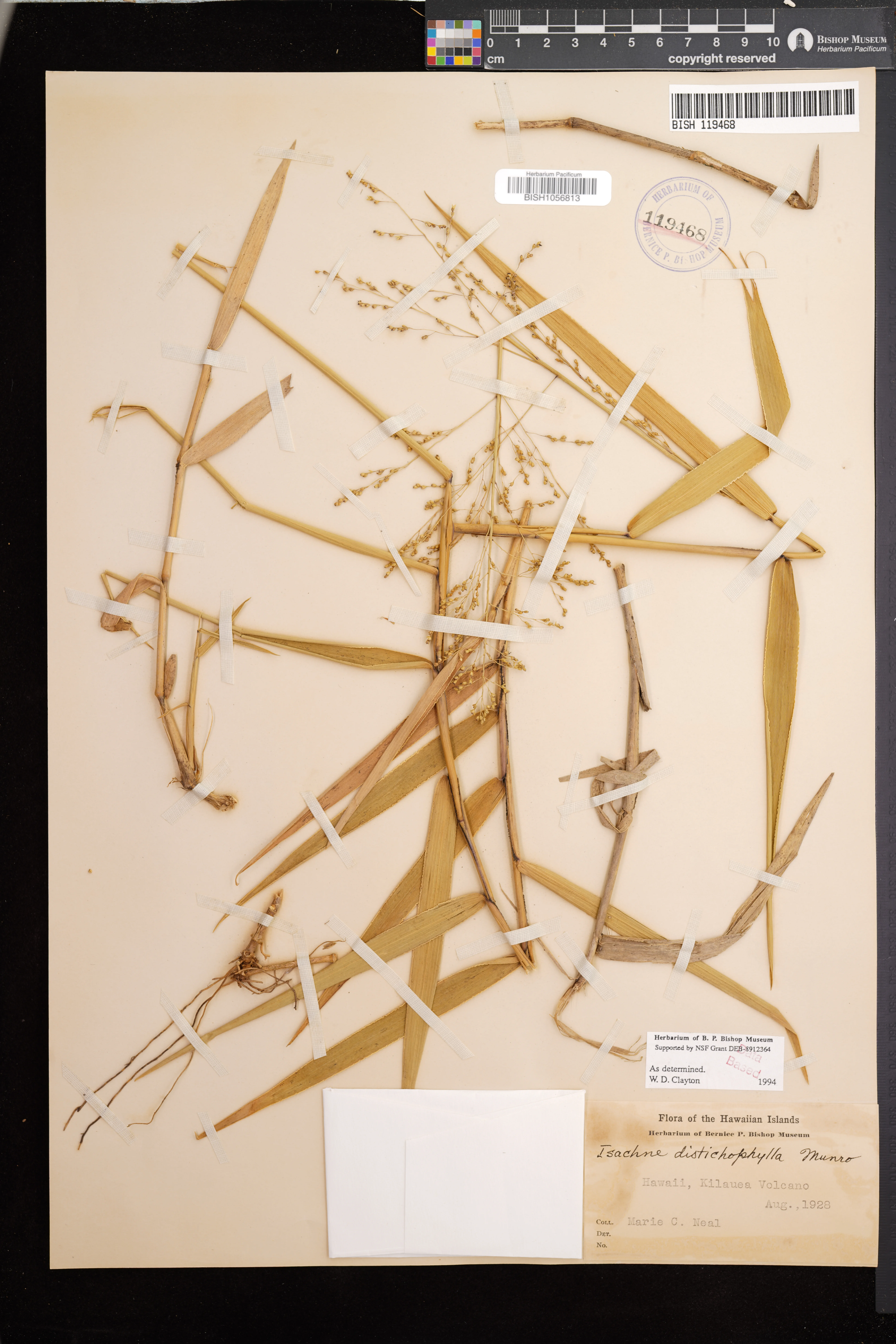 Forming small patches often w/ Oplismenus. Assoc w/Tetraplasandra-Broussaisia-Metrosideros-Dicranopteris. |