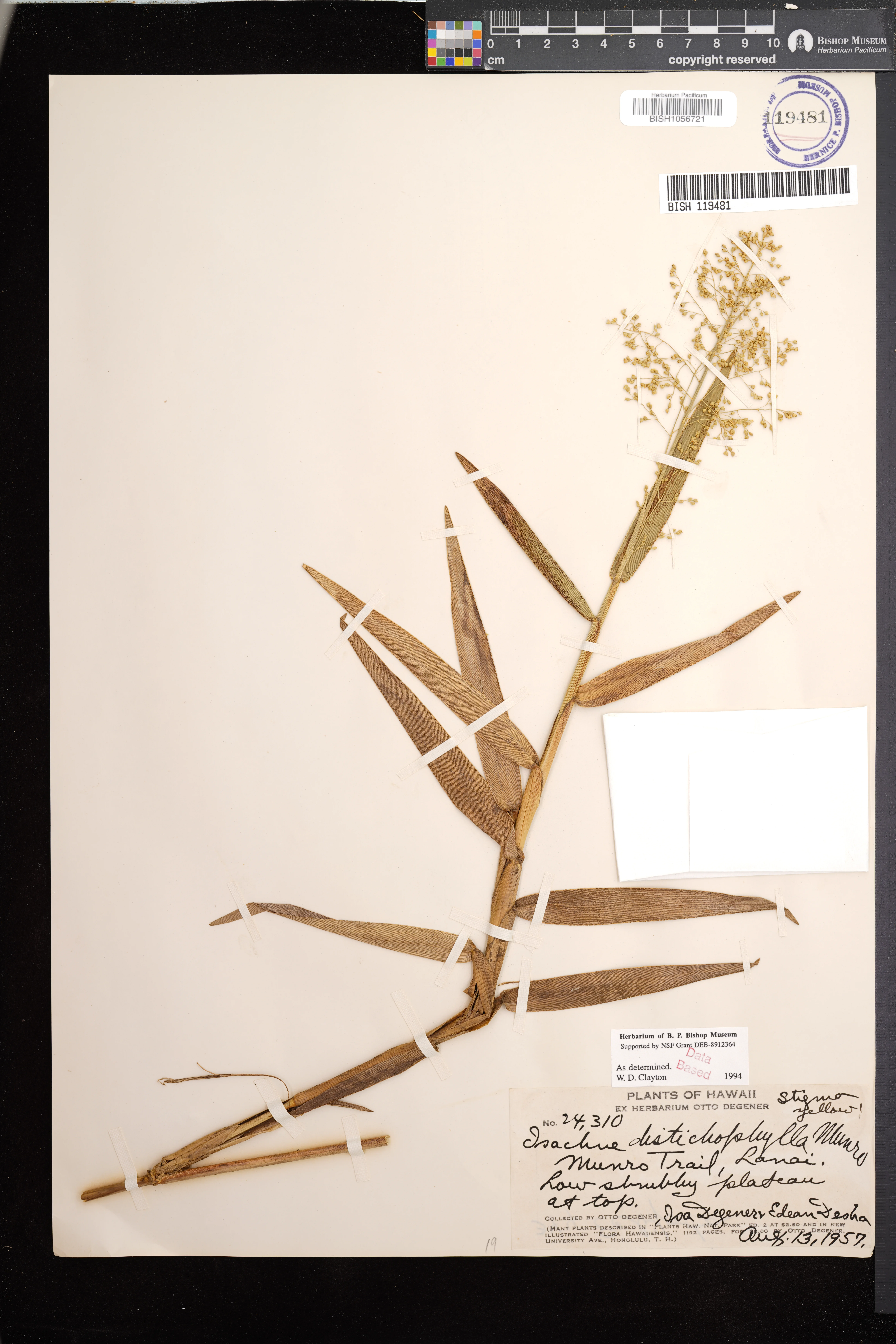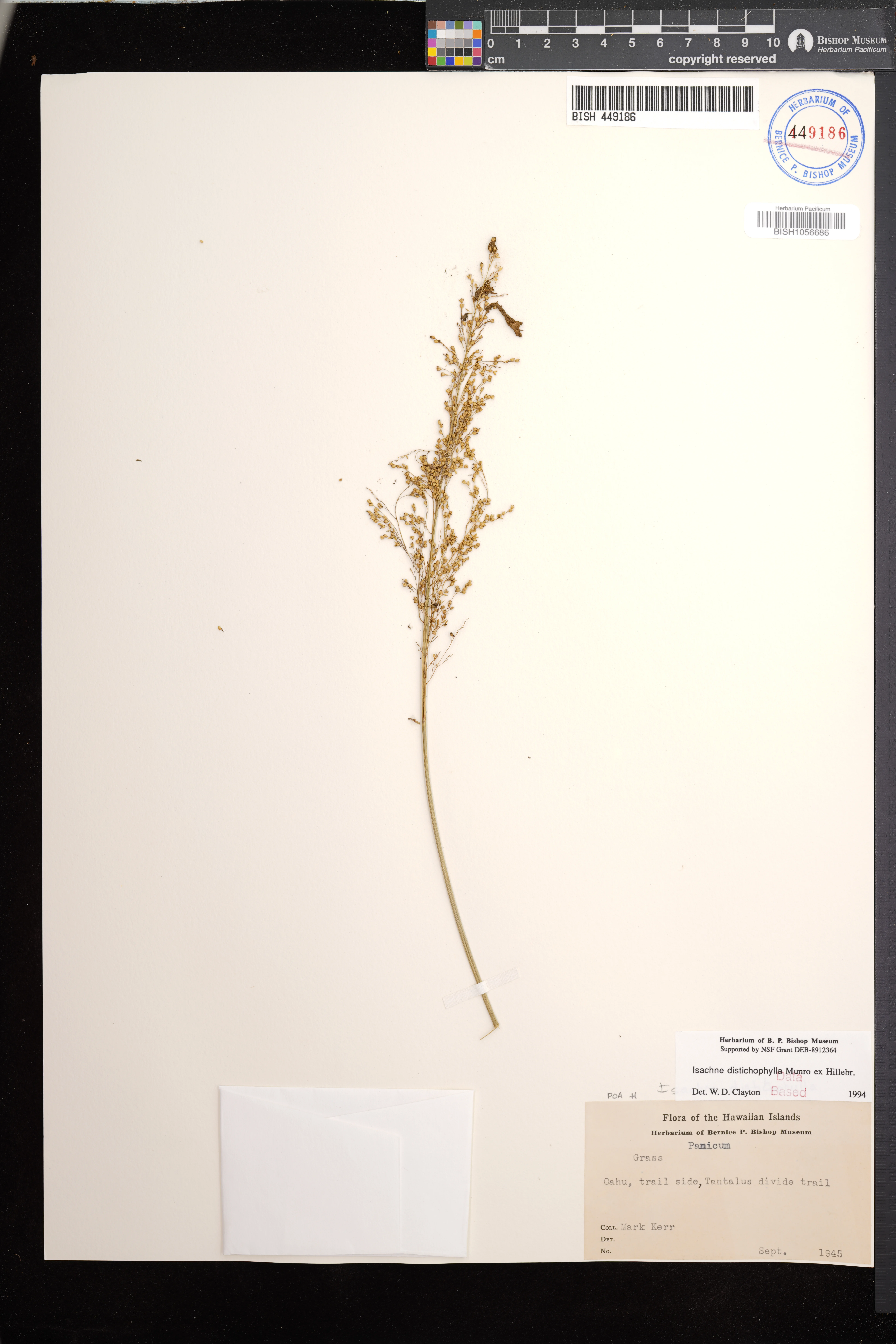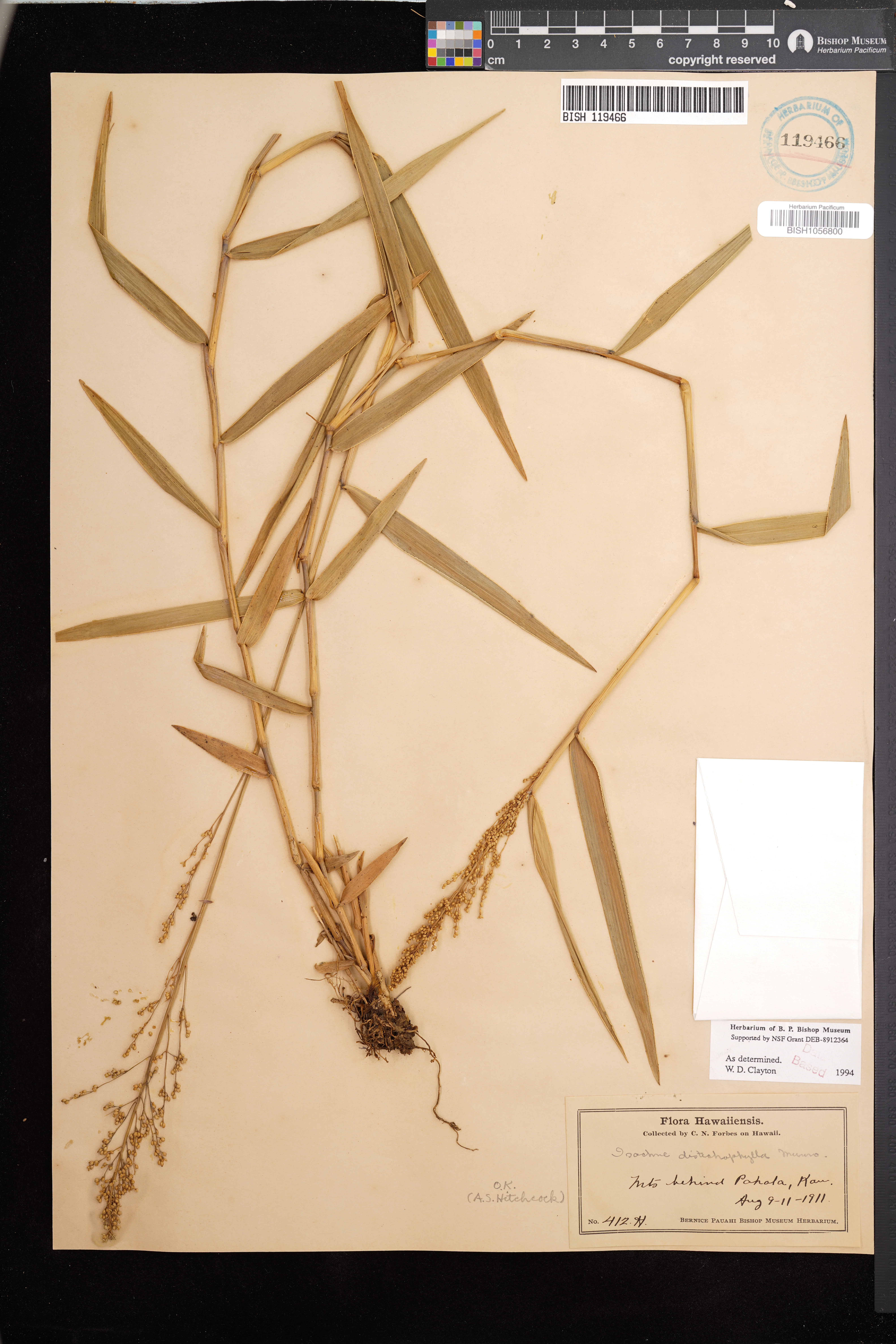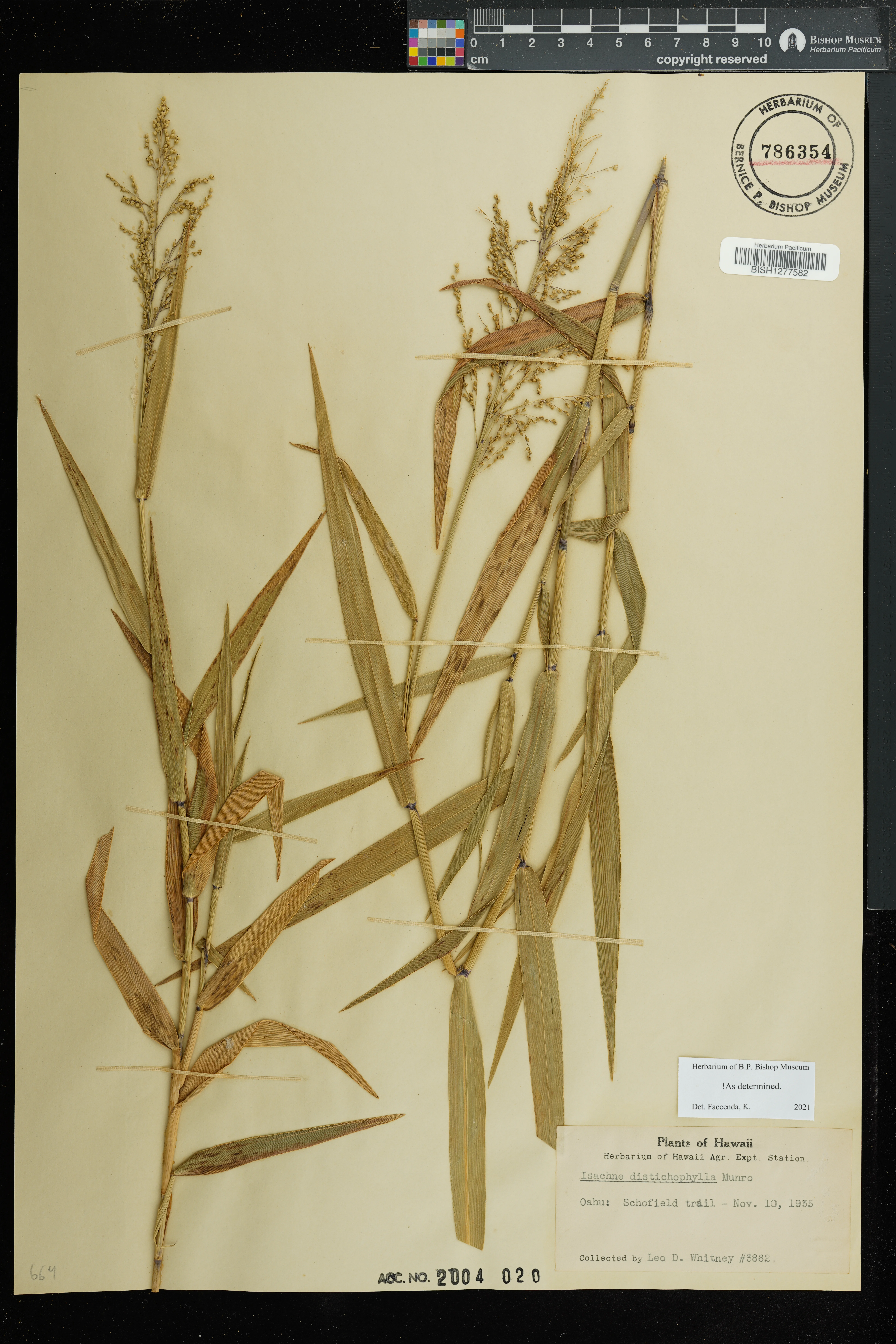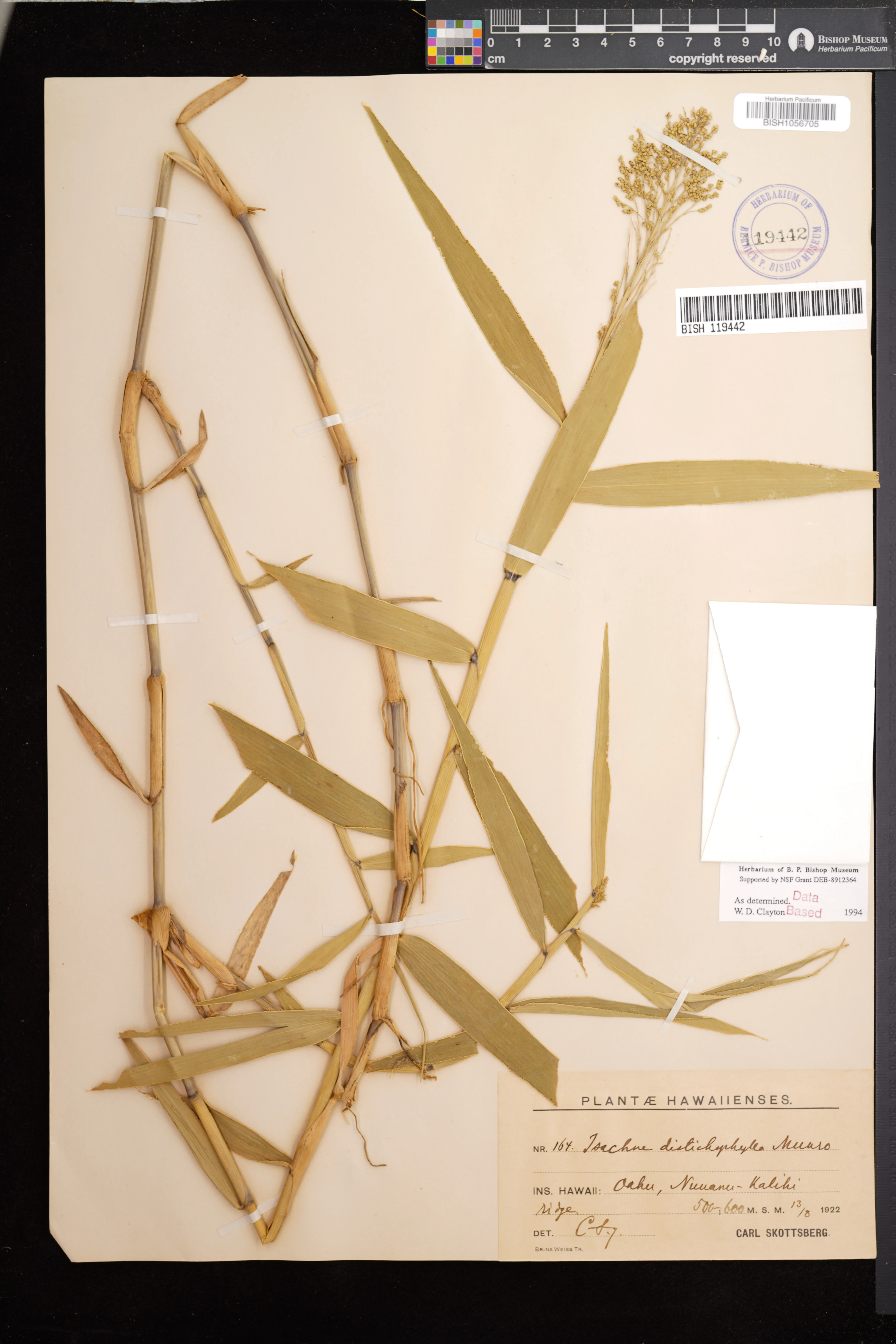 Forming small patches often w/ Oplismenus. Assoc w/Tetraplasandra-Broussaisia-Metrosideros-Dicranopteris. |