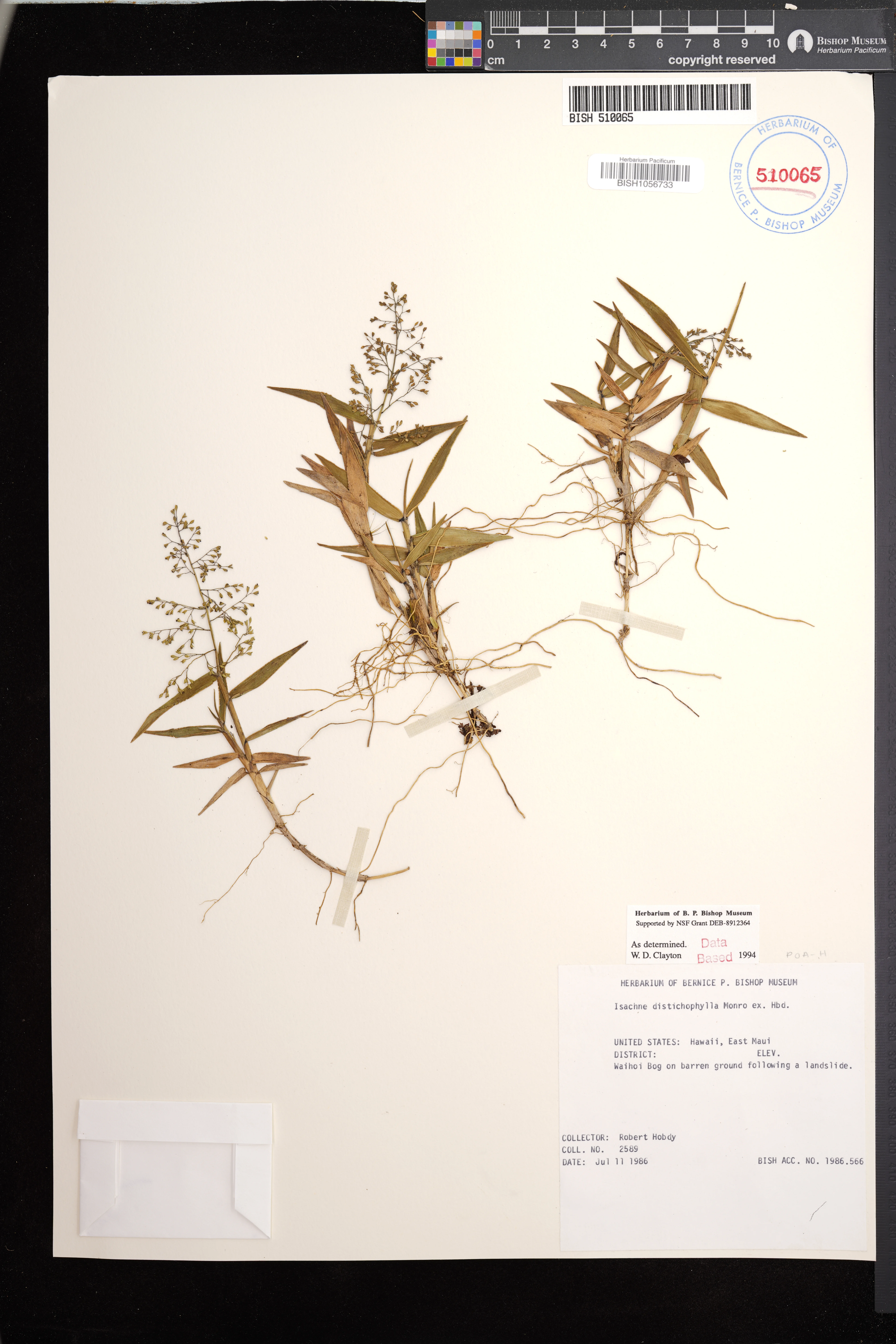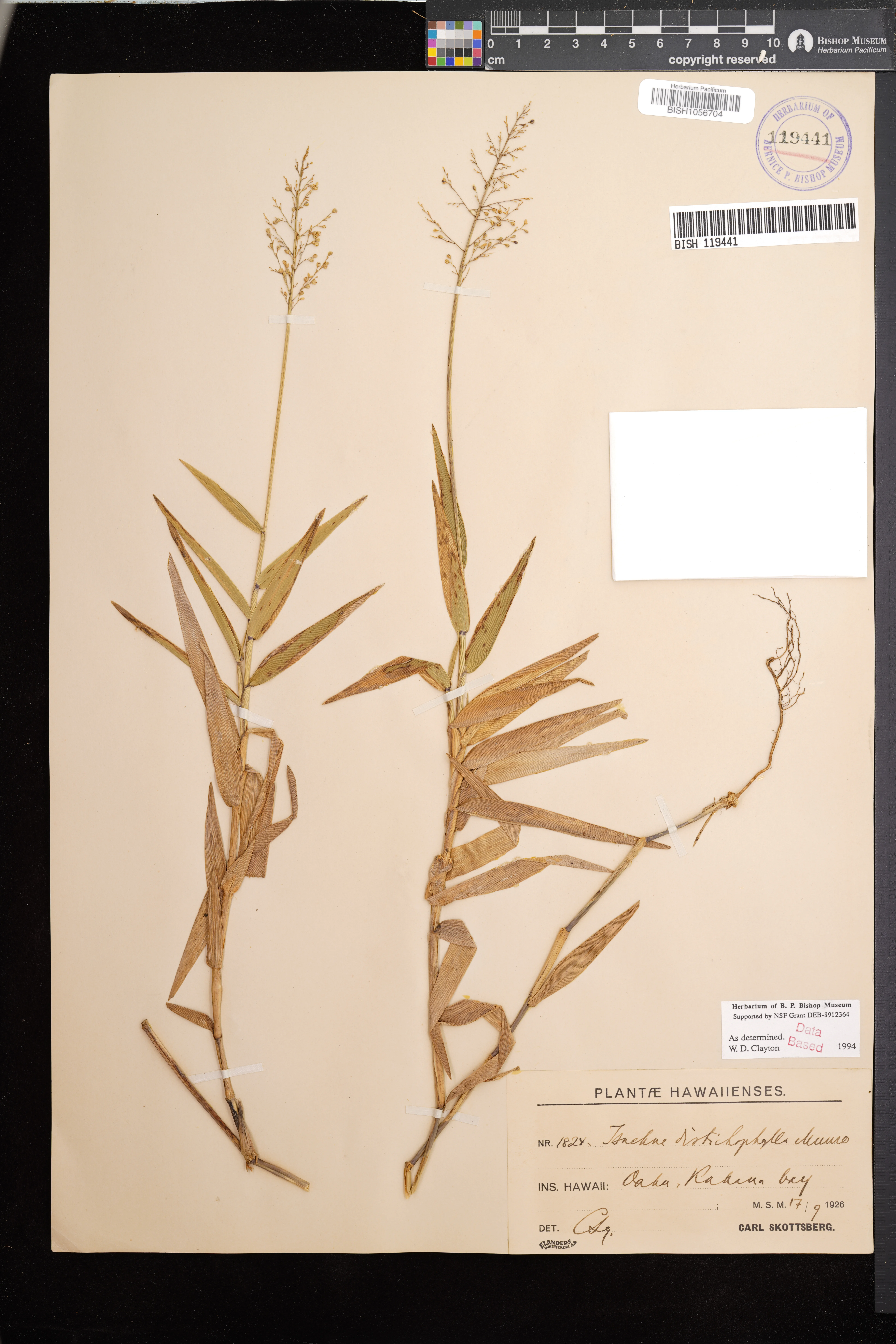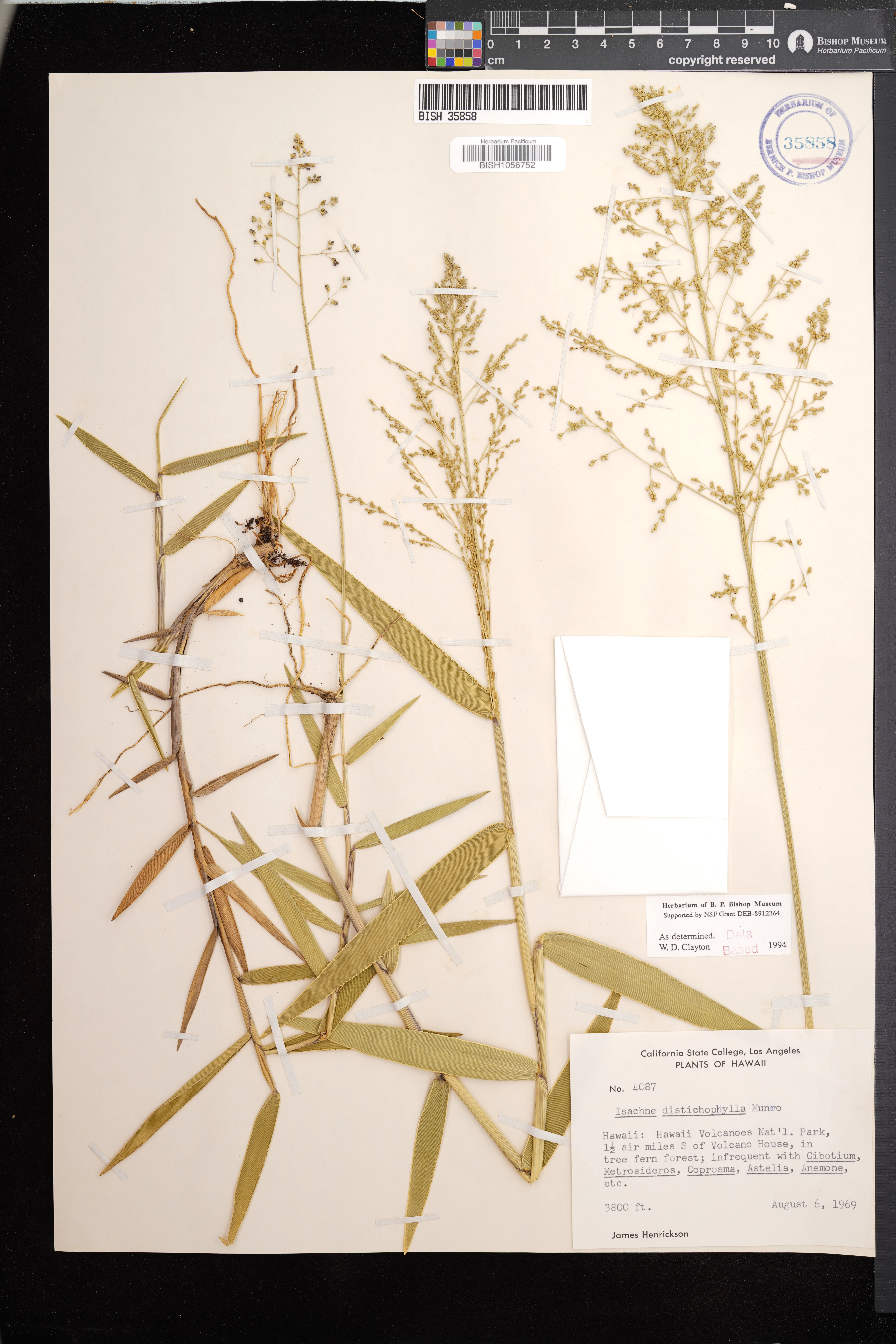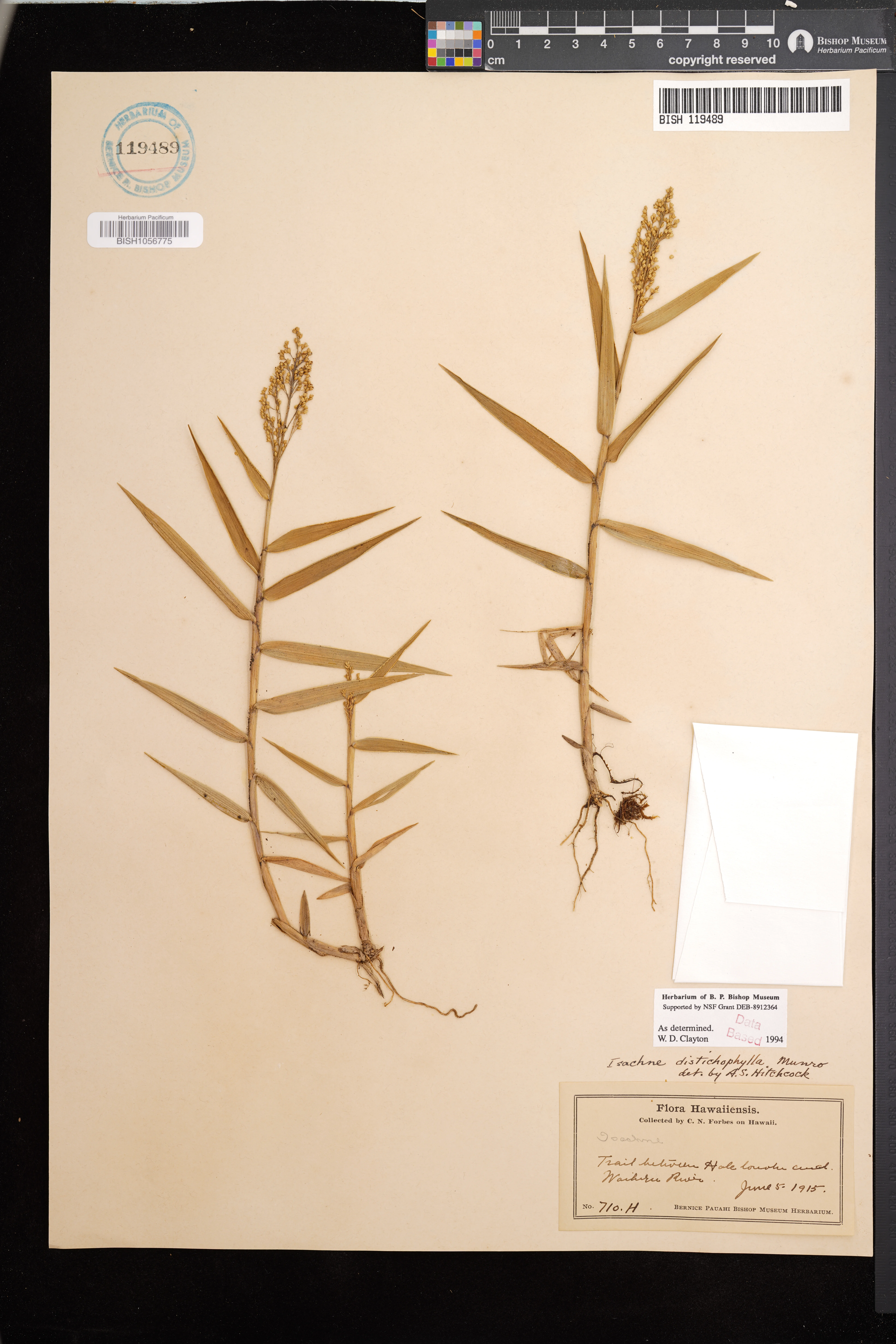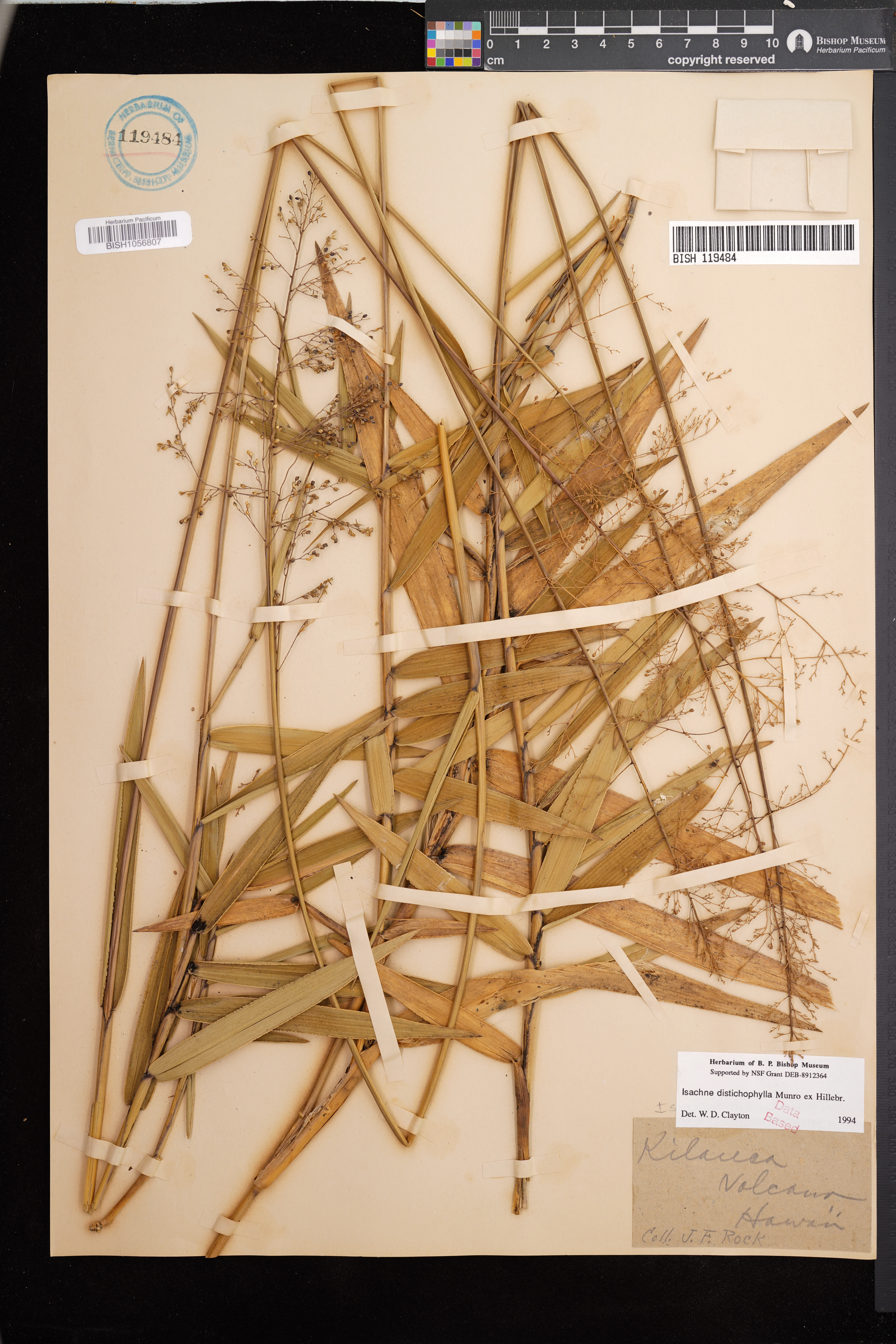 Forming small patches often w/ Oplismenus. Assoc w/Tetraplasandra-Broussaisia-Metrosideros-Dicranopteris. |