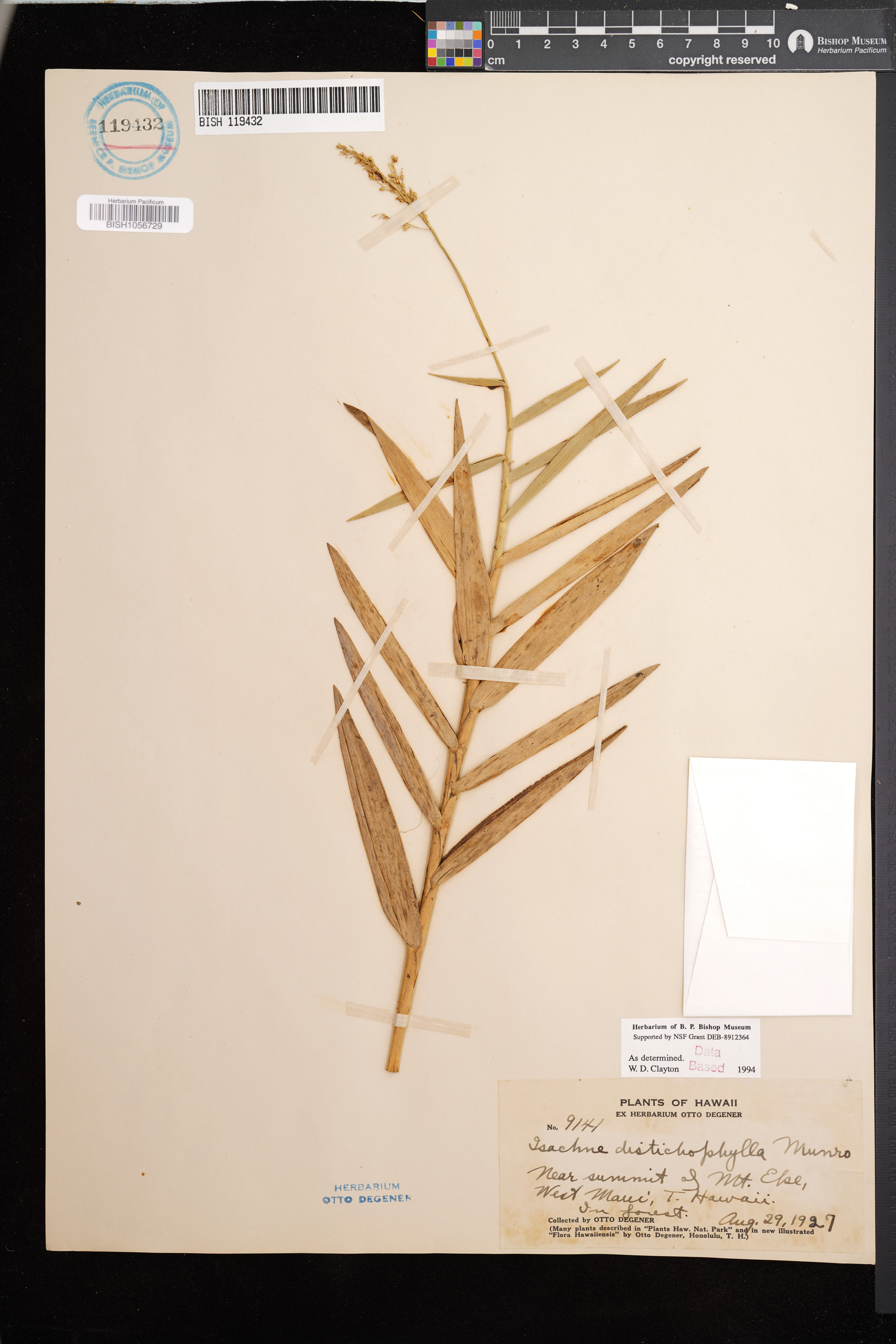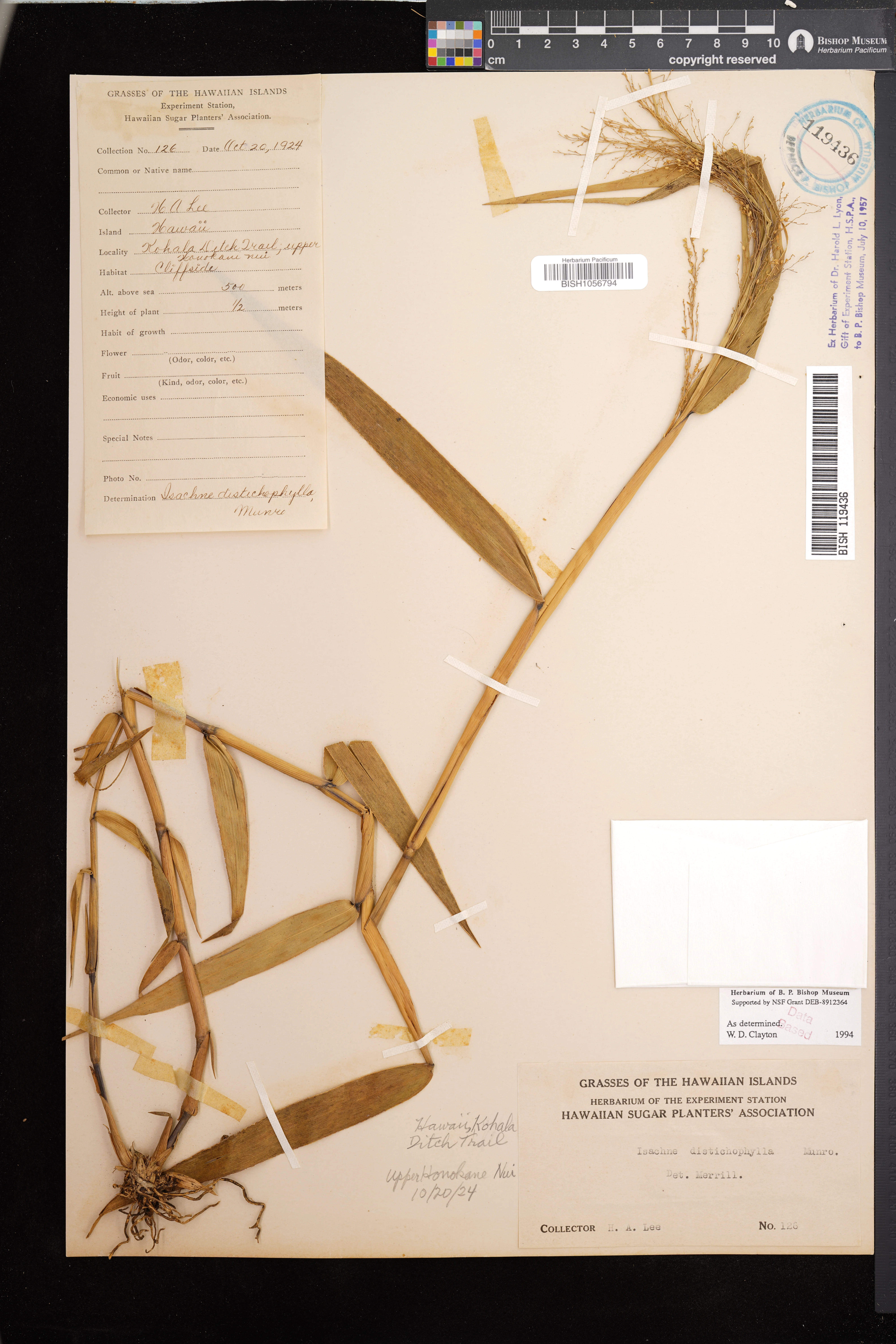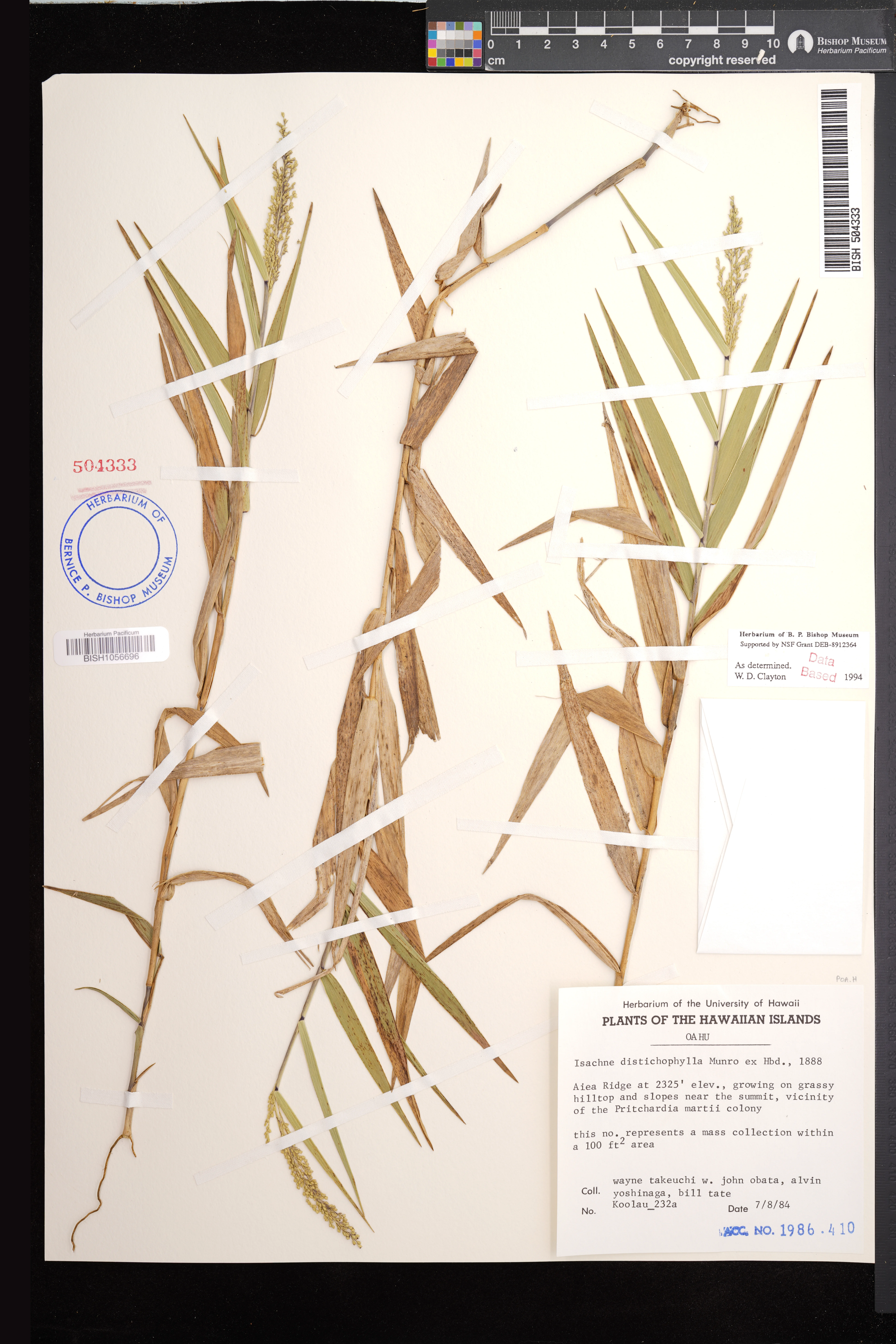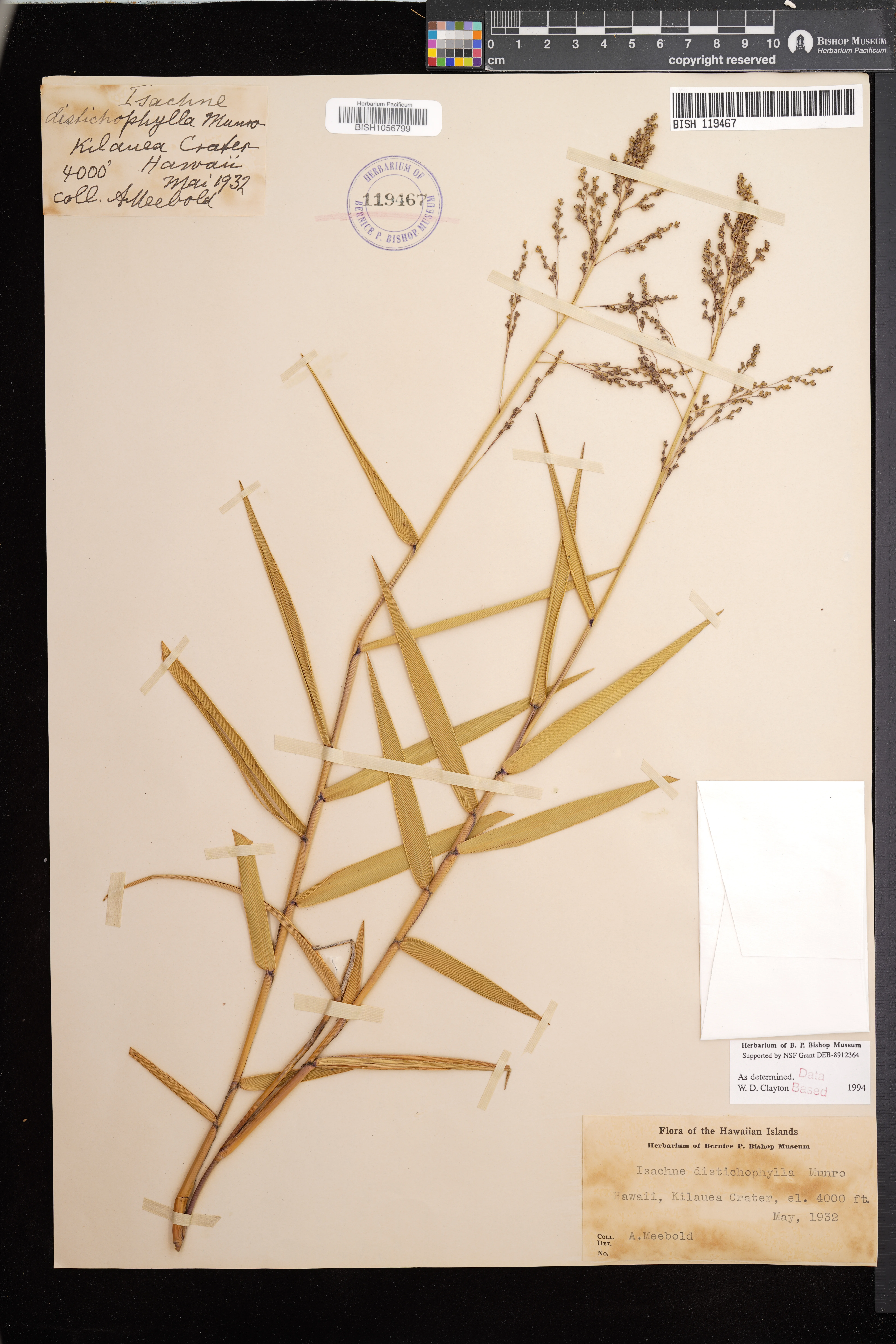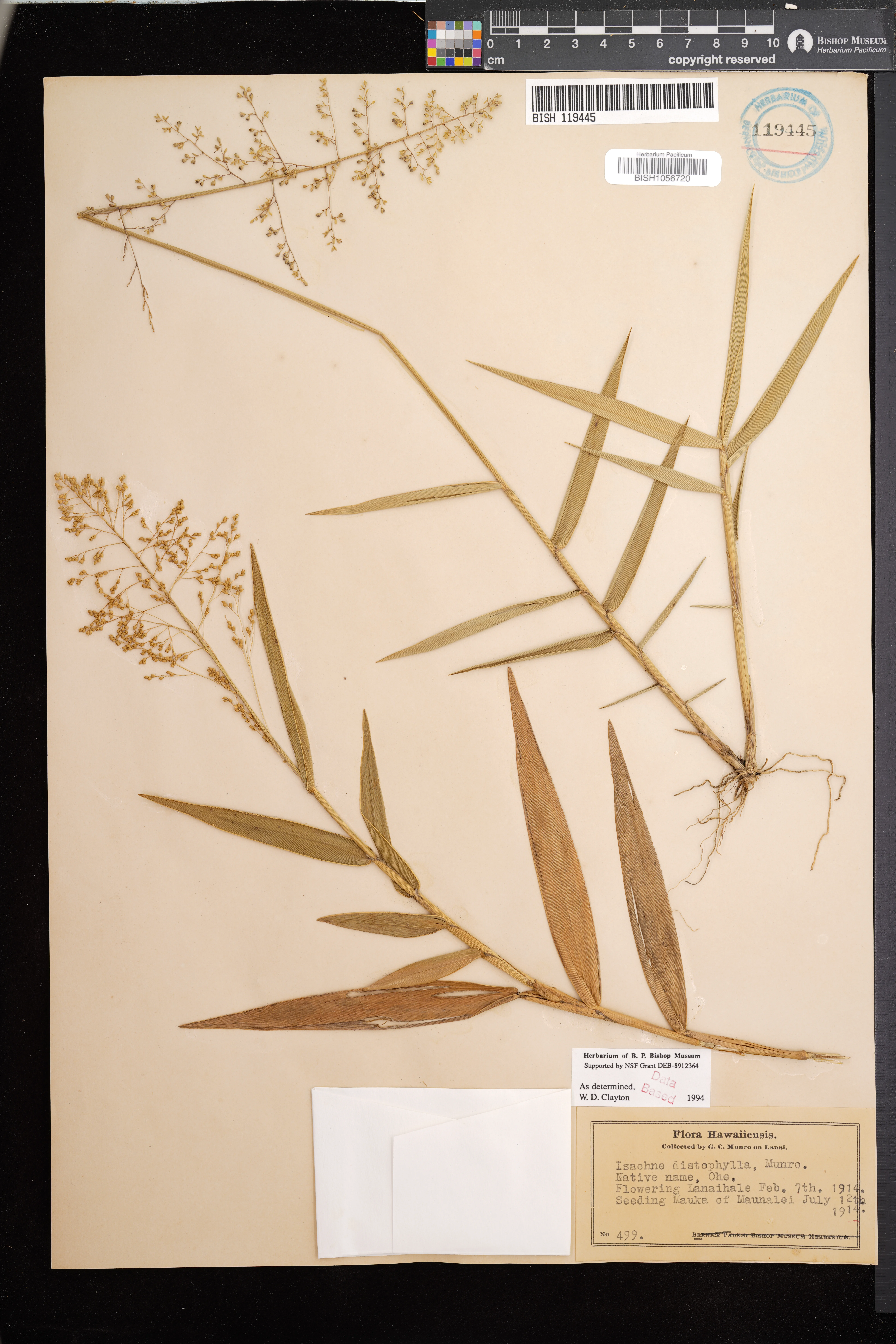 Forming small patches often w/ Oplismenus. Assoc w/Tetraplasandra-Broussaisia-Metrosideros-Dicranopteris. |
