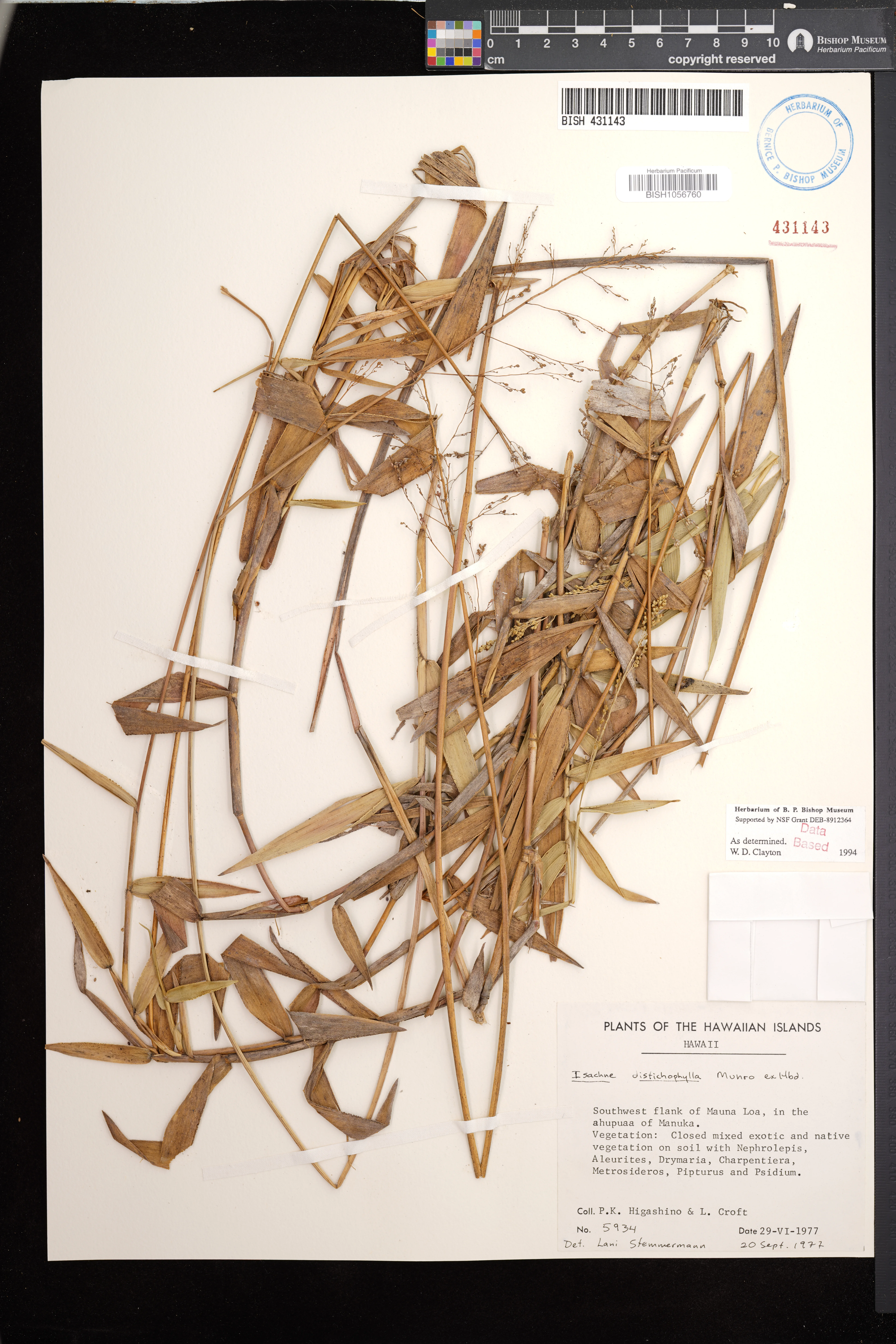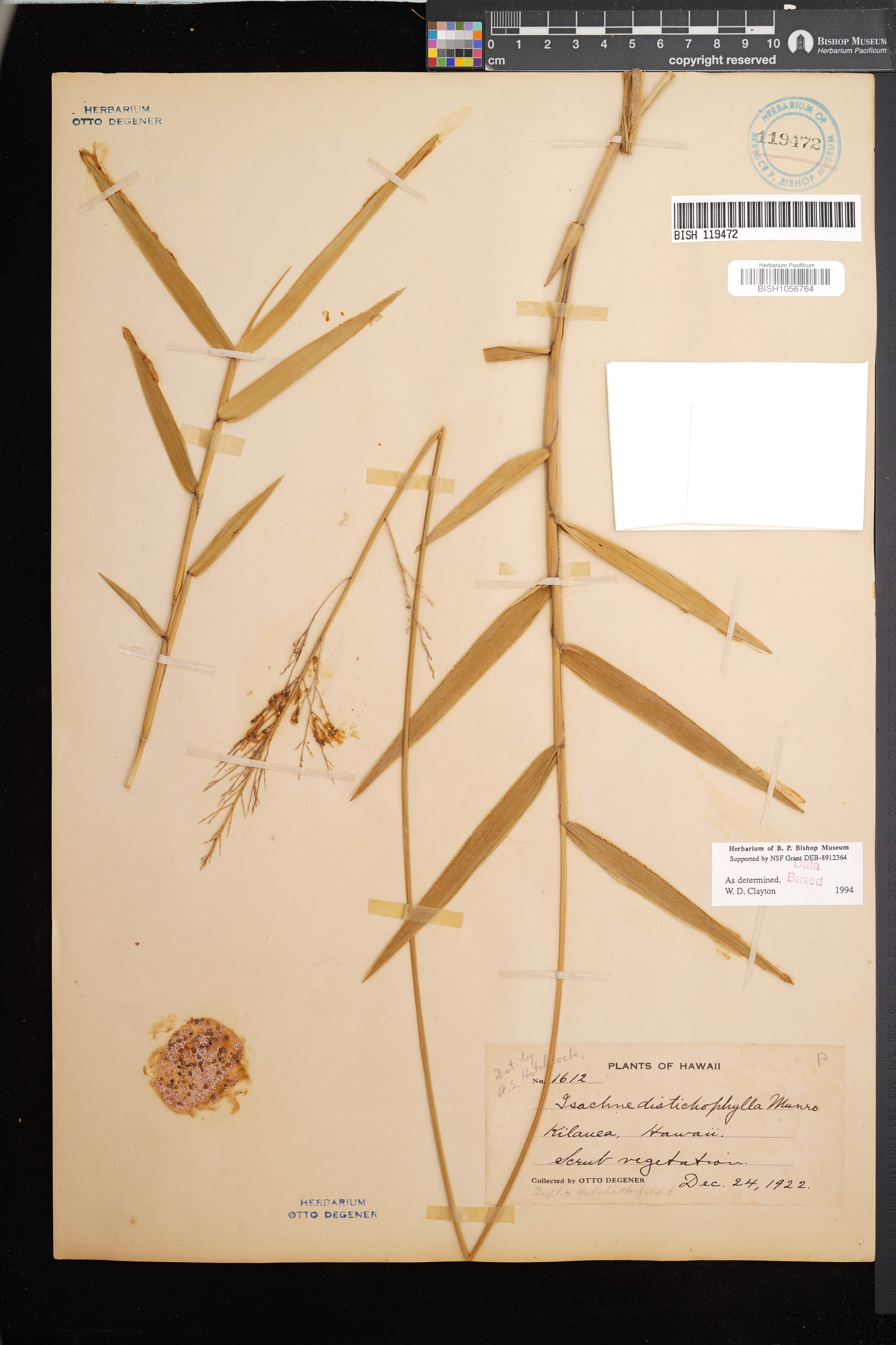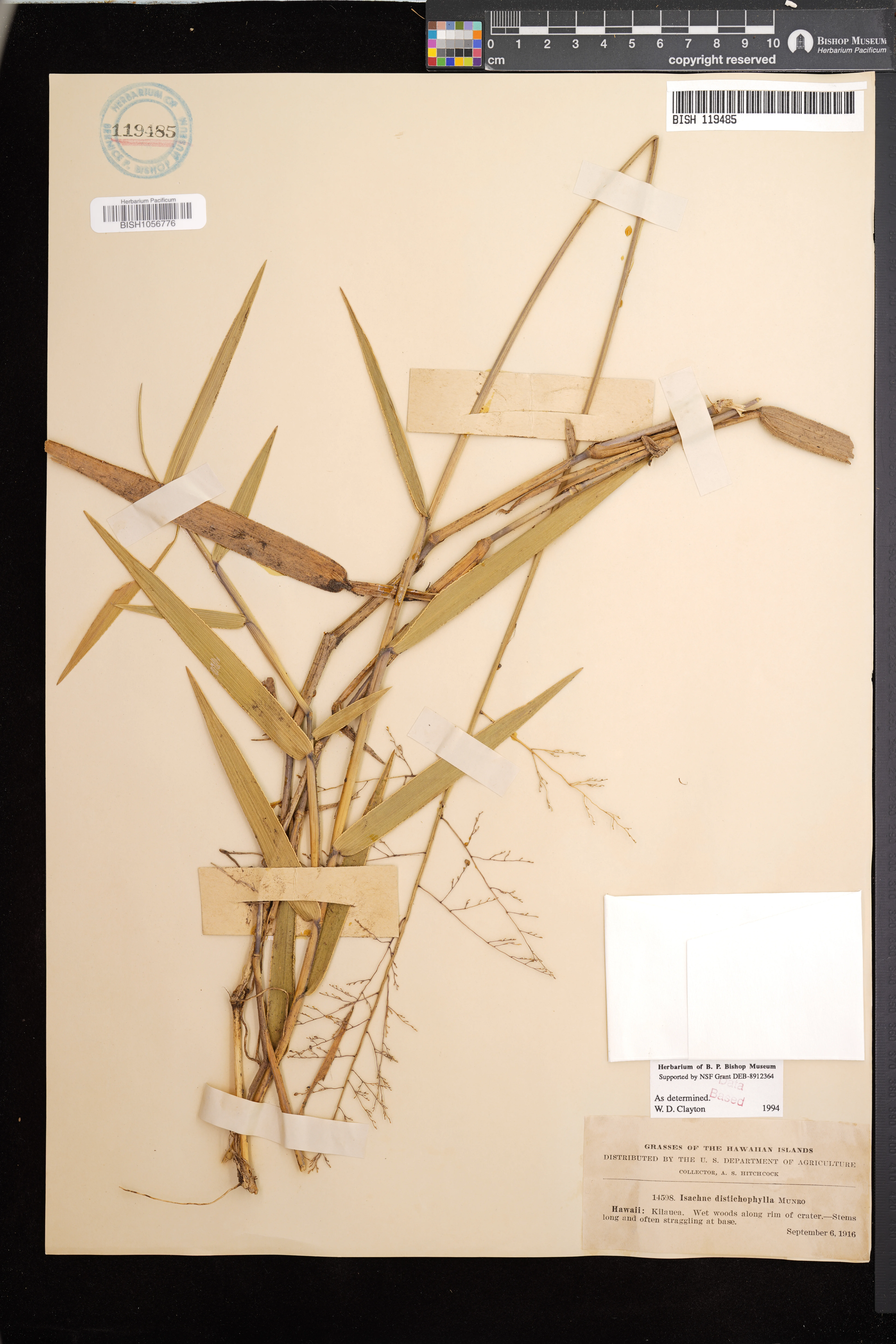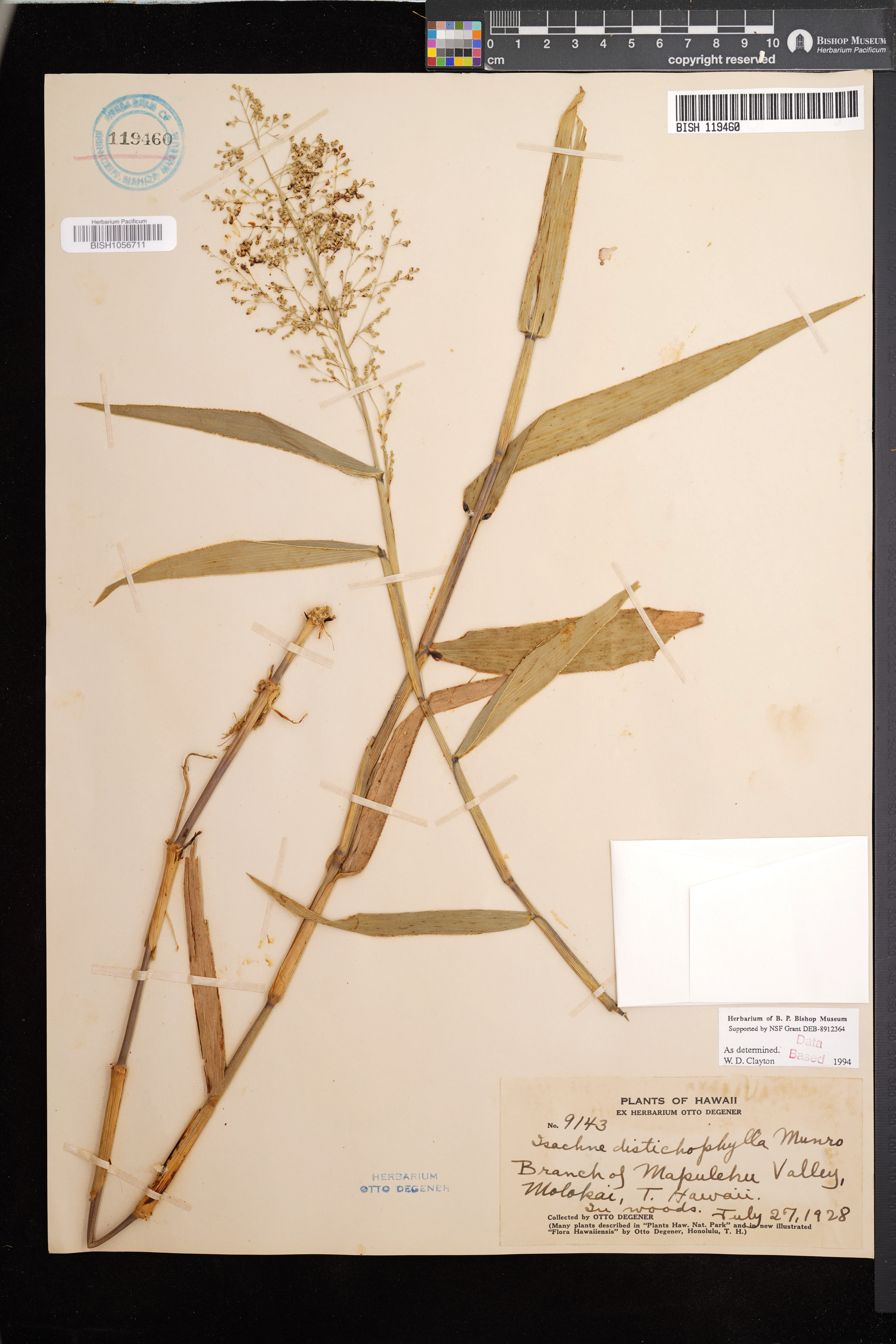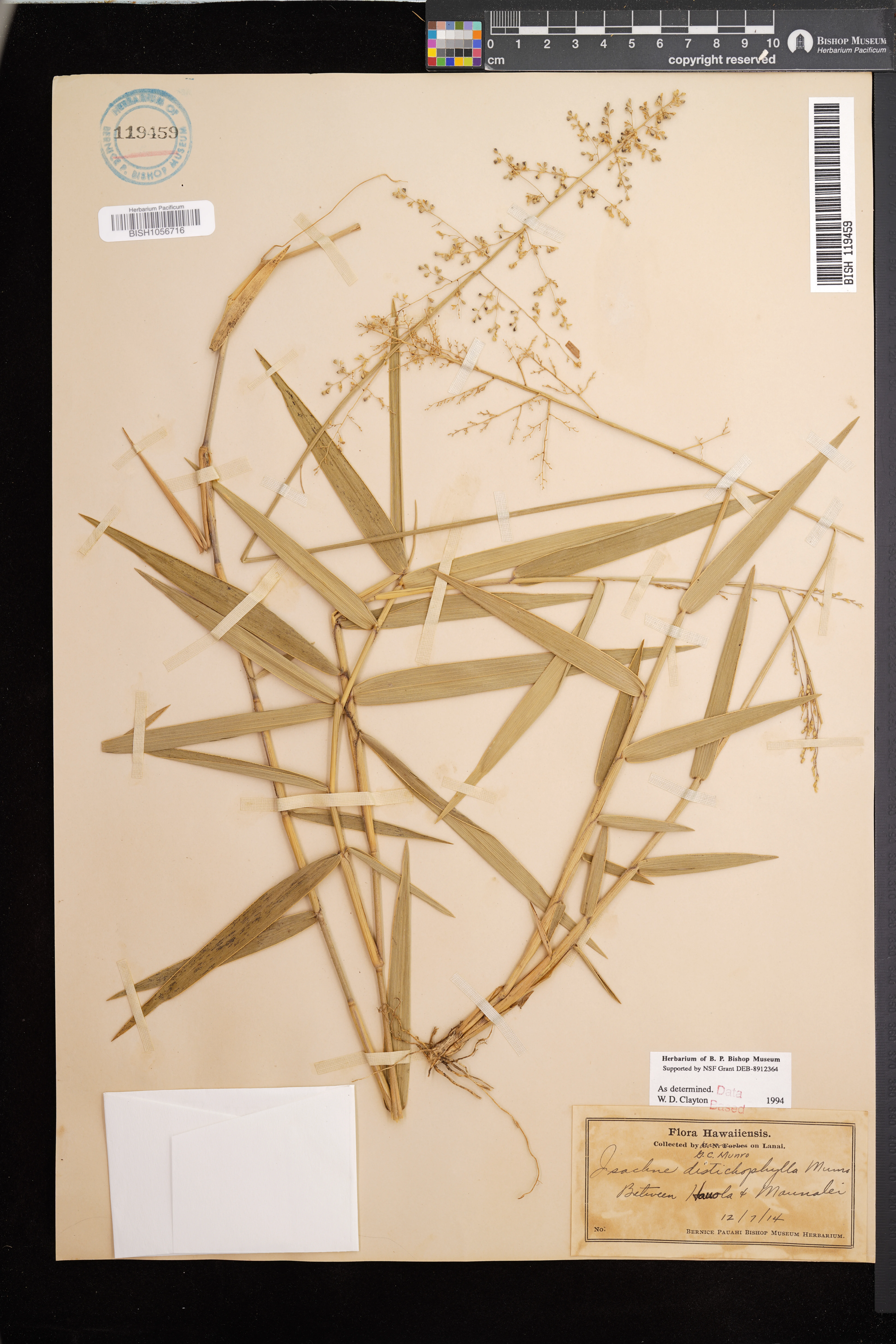 Forming small patches often w/ Oplismenus. Assoc w/Tetraplasandra-Broussaisia-Metrosideros-Dicranopteris. |