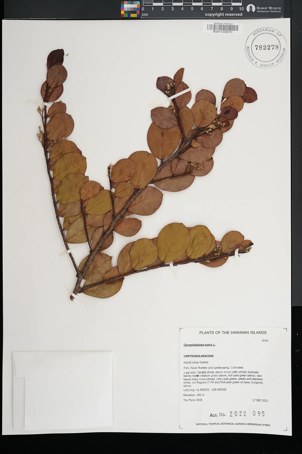 21 Chrysobalanus icaco L. Kohala PRESERVED_SPECIMEN Bond, K.D. s.n. Hawaii BISH 2/13/1962
