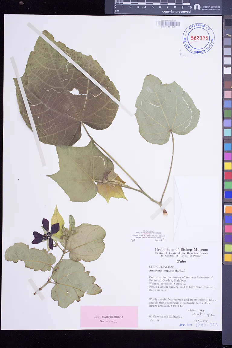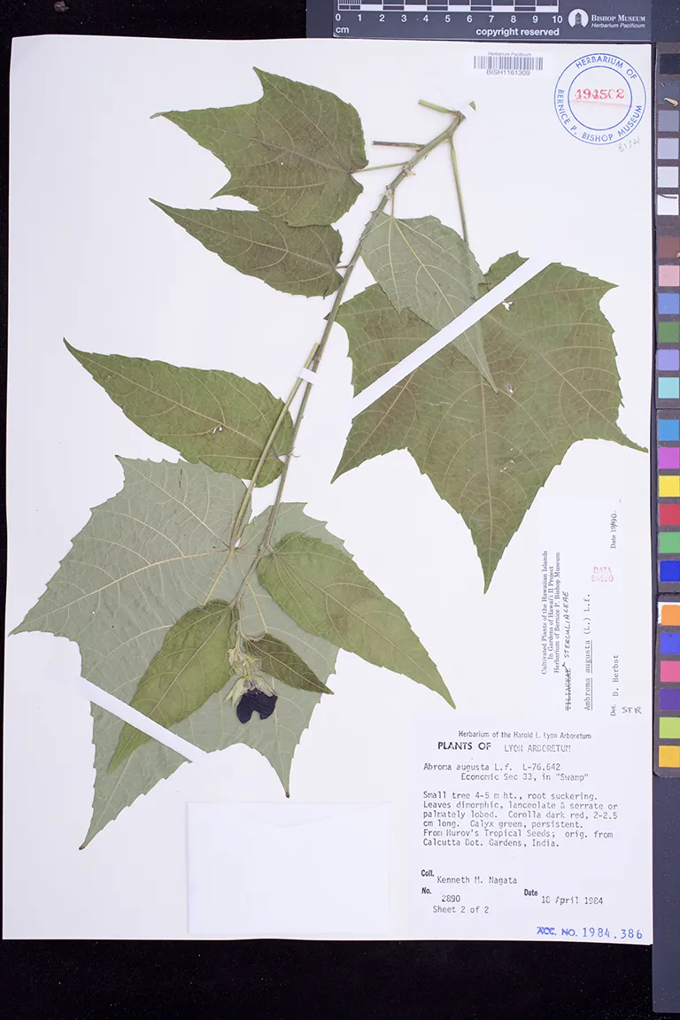 Kingdom: Viridiplantae Phylum: Magnoliophyta Class/Clade: Eudicot-Rosids Order: Malvales Family: Malvaceae Genus: Abroma